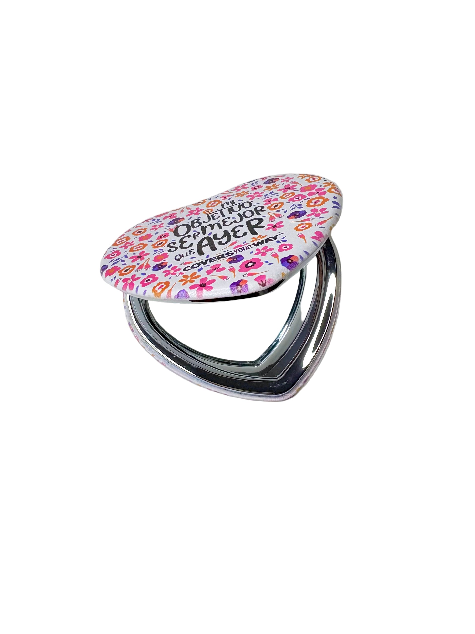 This exclusively designed mirror features the motivational phrase "Mi objetivo: Ser mejor que ayer", making it perfect for starting each day with intention and focus. With an elegant design, lightweight frame, and modern heart-shaped finish, it's ideal for your vanity, desk, or bag. It reflects not only your image but also your commitment to yourself—a daily reminder of growth and self-love.