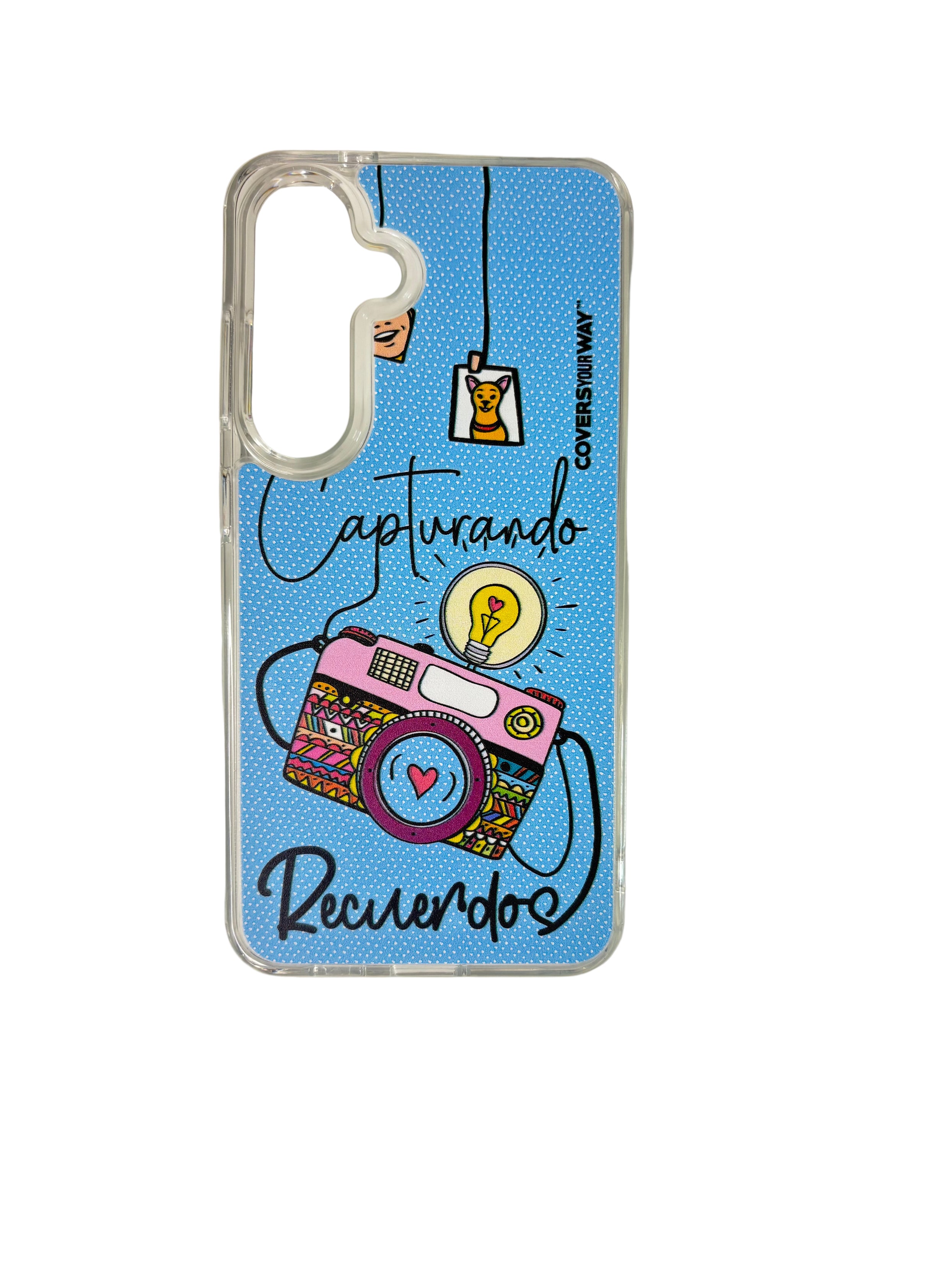Diseñado para los amantes de la fotografía y los momentos inolvidables, este protector exclusivo presenta la frase "Capturando Recuerdos" en un diseño moderno y emotivo. Fabricado con materiales resistentes, ofrece protección confiable mientras celebra la magia de guardar cada instante vivido con estilo y significado.