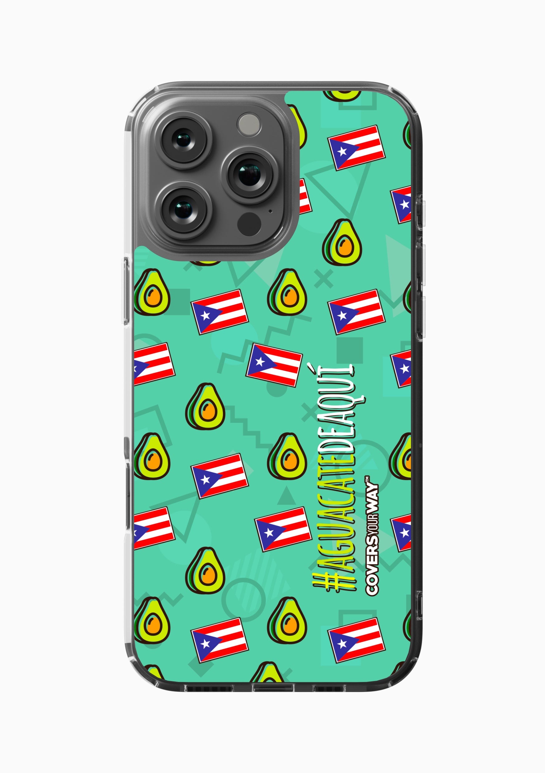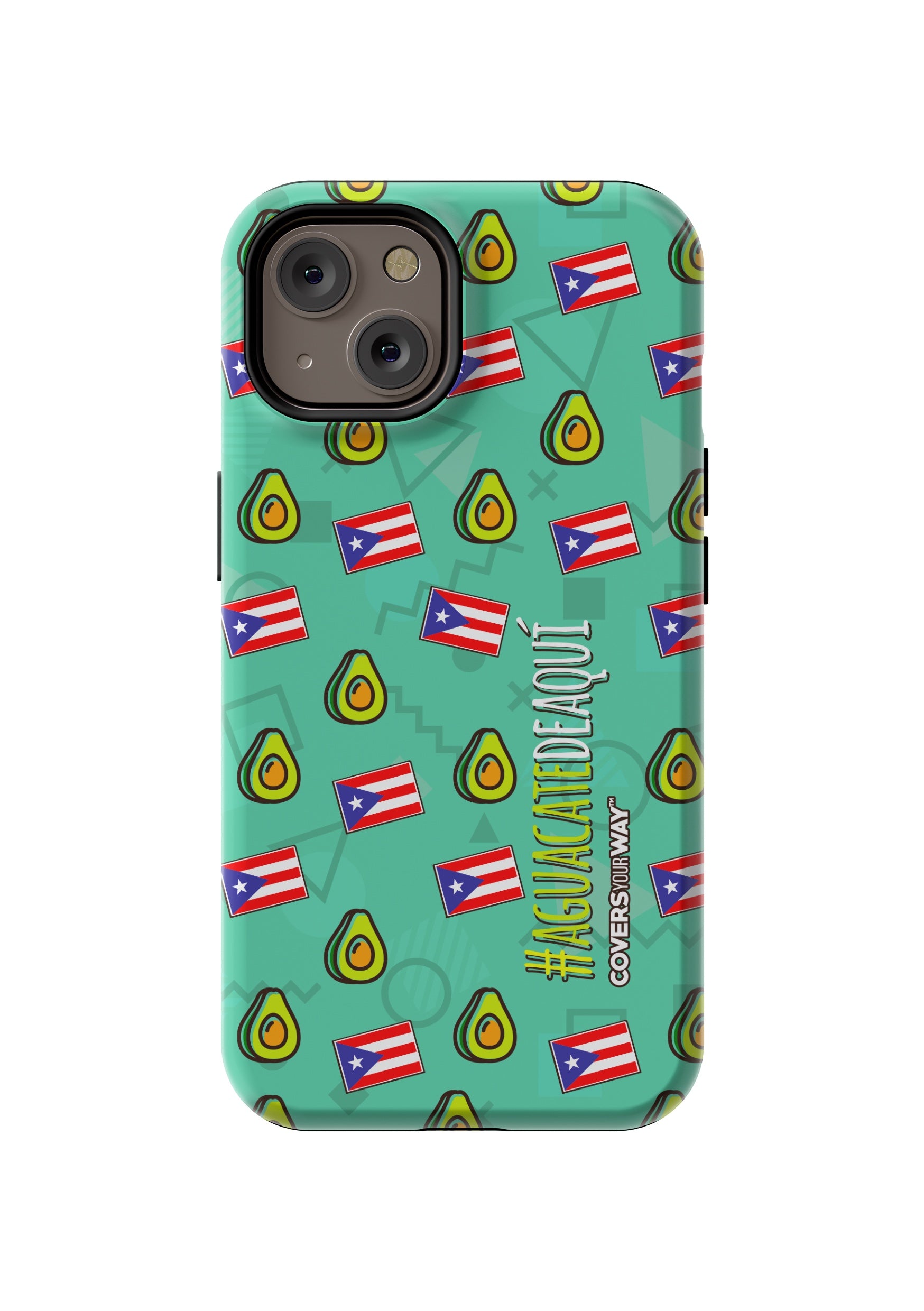 Este protector para celular luce un diseño exclusivo con la frase "#AGUACATEDEAQUÍ" en letras modernas y llamativas, destacada sobre un fondo fresco que incluye ilustraciones de aguacates y la bandera puertorriqueña. Con colores vivos y un estilo divertido, celebra lo local y auténtico. Fabricado con materiales resistentes, ofrece protección con un toque de orgullo y sabor caribeño.