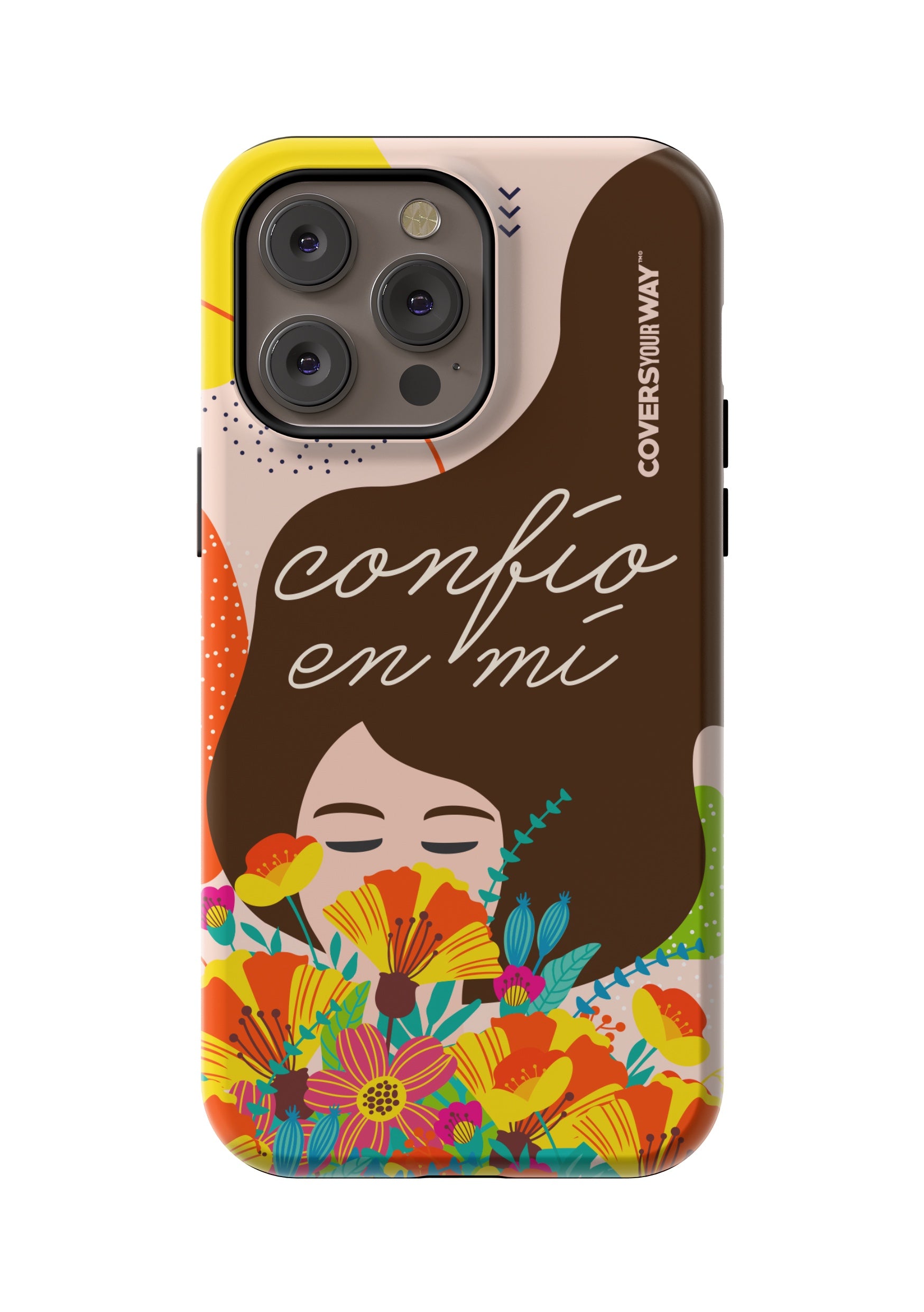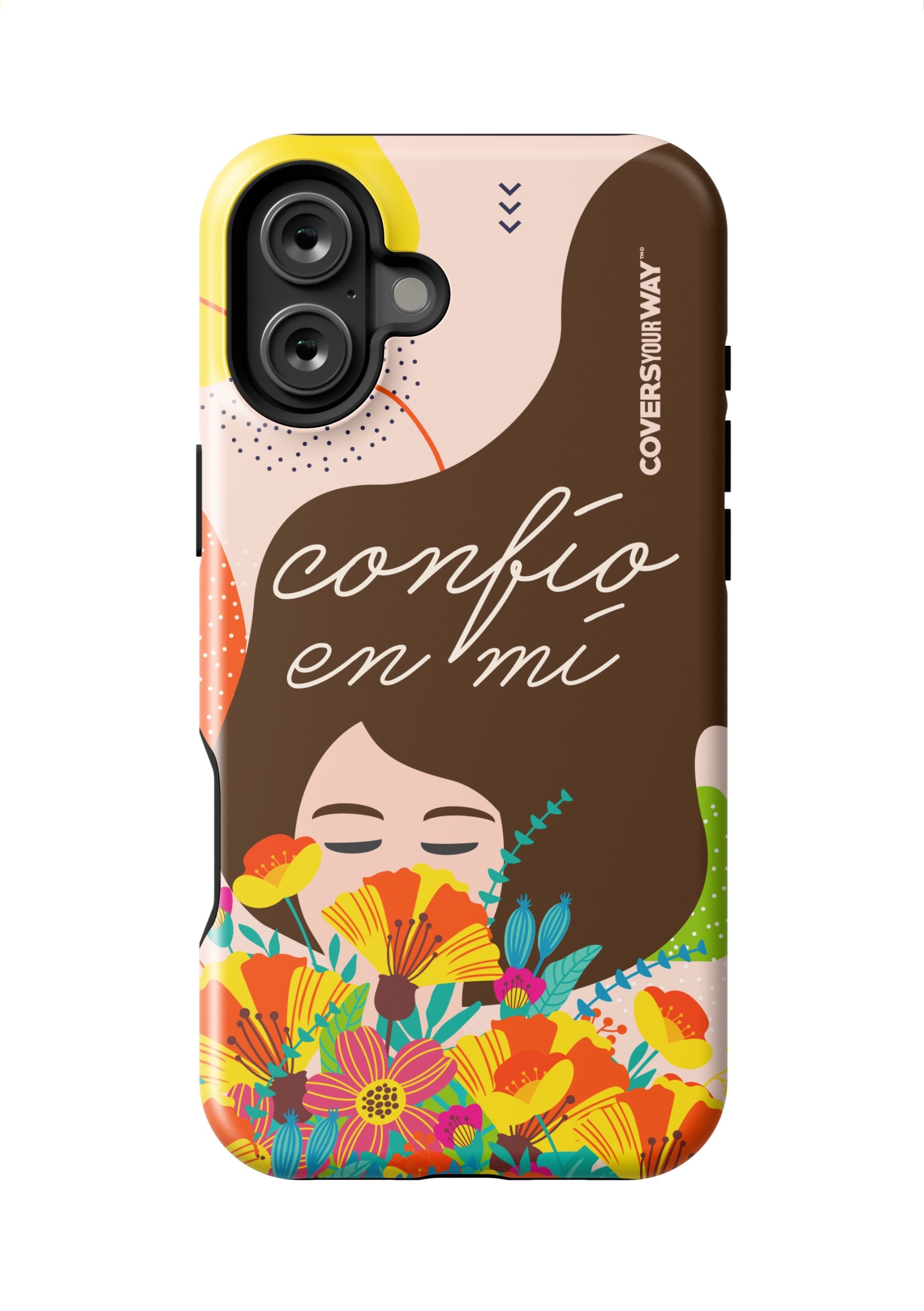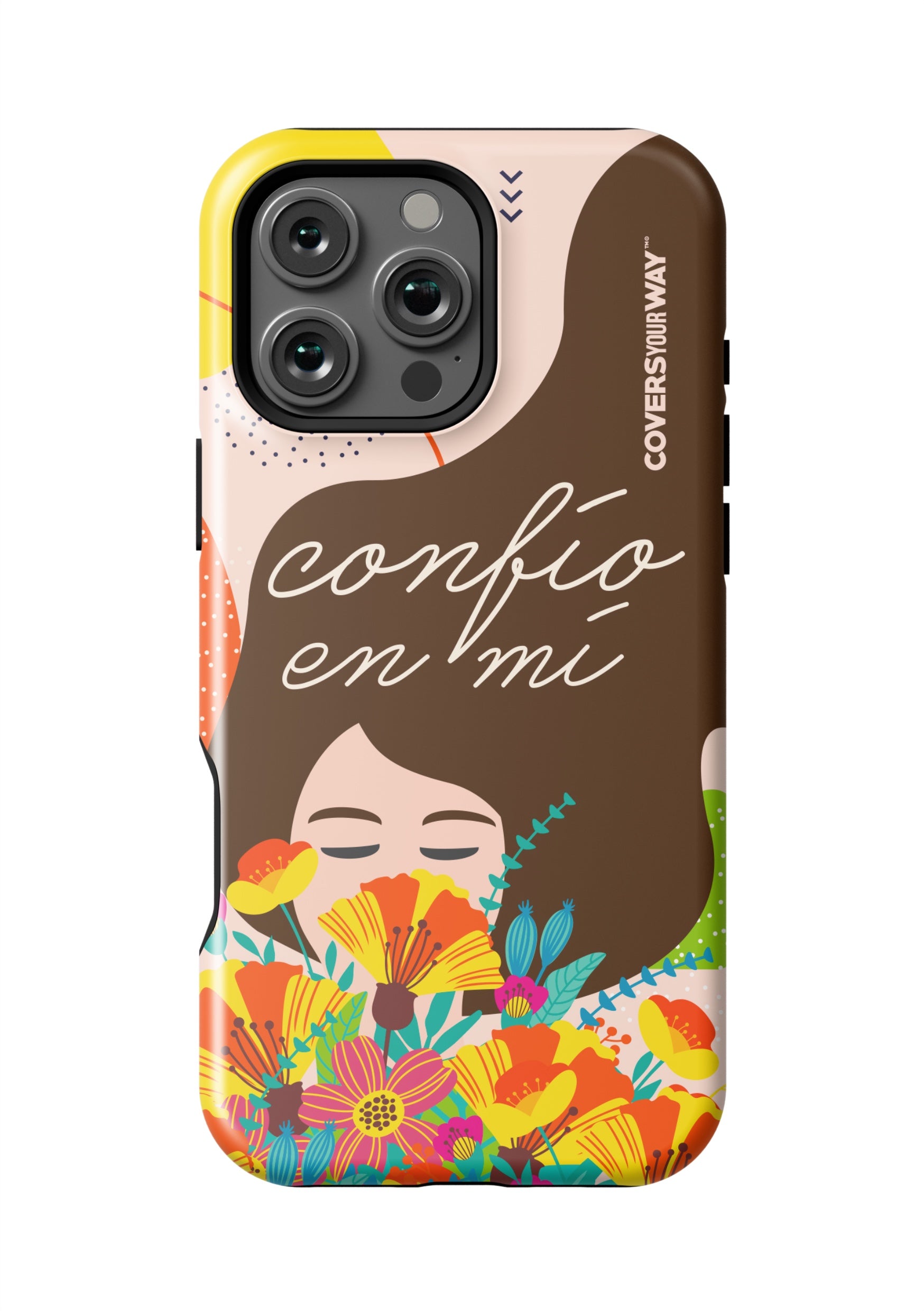 Exclusive phone case that inspires confidence and self-esteem. It features the phrase "Confío en mí" in elegant typography over a calm, harmonious background. Perfect for those who believe in their inner strength. Provides durable protection against bumps and scratches.