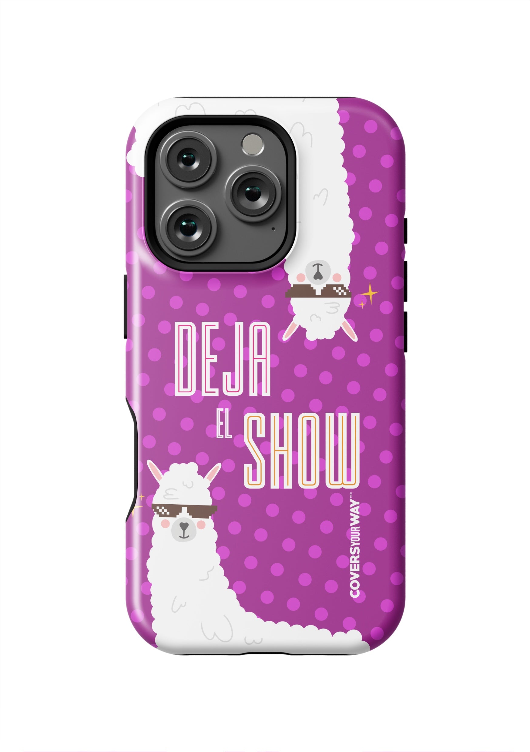Make a bold statement with this exclusive phone case that blends style and attitude. Featuring the phrase “Deja el SHOW” in a modern, edgy design, it's perfect for those who aren’t afraid to stand out and say it all without saying a word.
