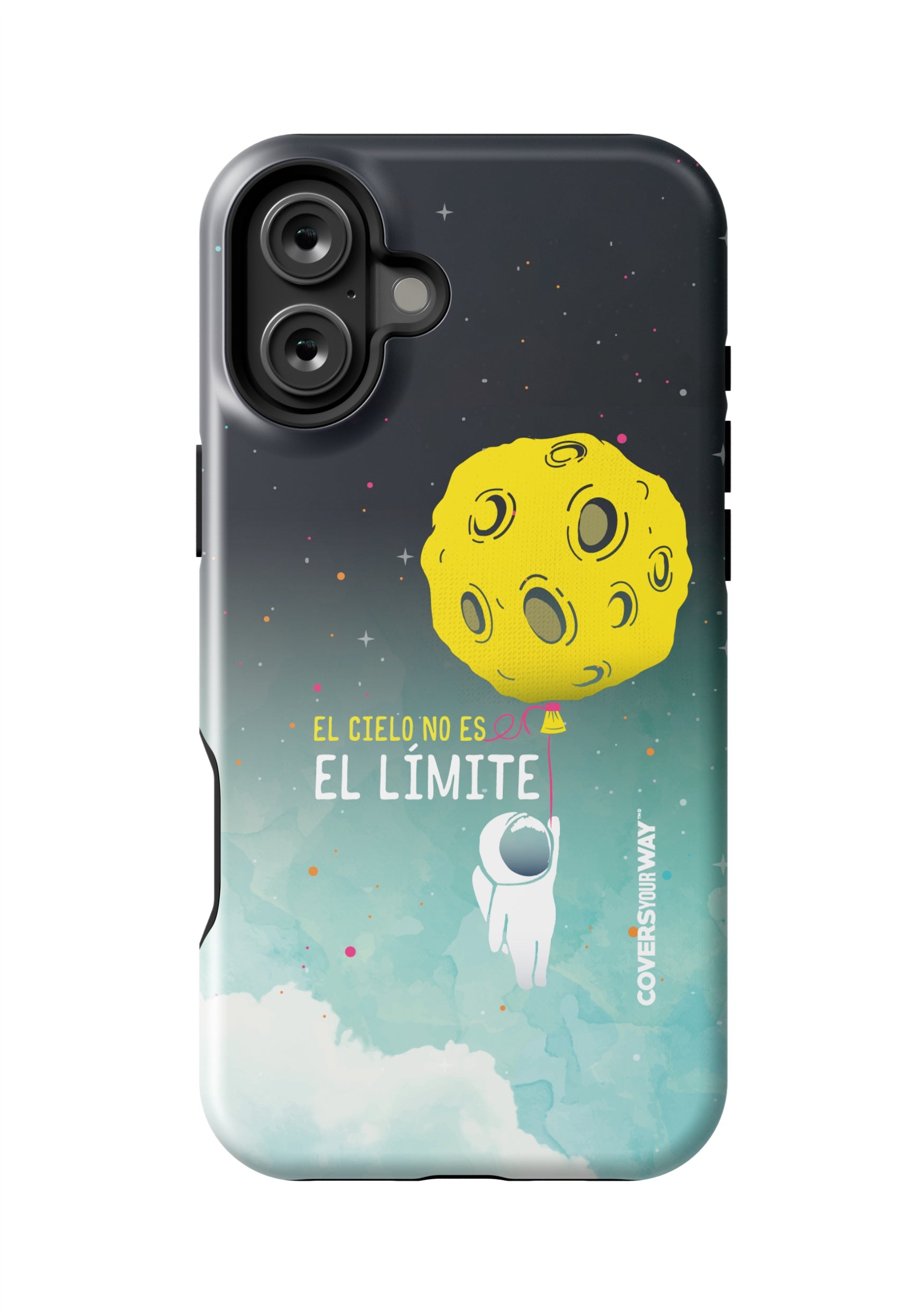 A phone case with the exclusive design featuring the phrase "El cielo no es el límite" inspires big dreams and boundless ambition. Made from durable materials like silicone or polycarbonate, it features a background with illustrations of clouds, stars, and the sky. The phrase, highlighted in an elegant and modern font, encourages pushing past limits and reaching for the impossible. It’s the perfect accessory for dreamers and bold spirits who are always striving for more.