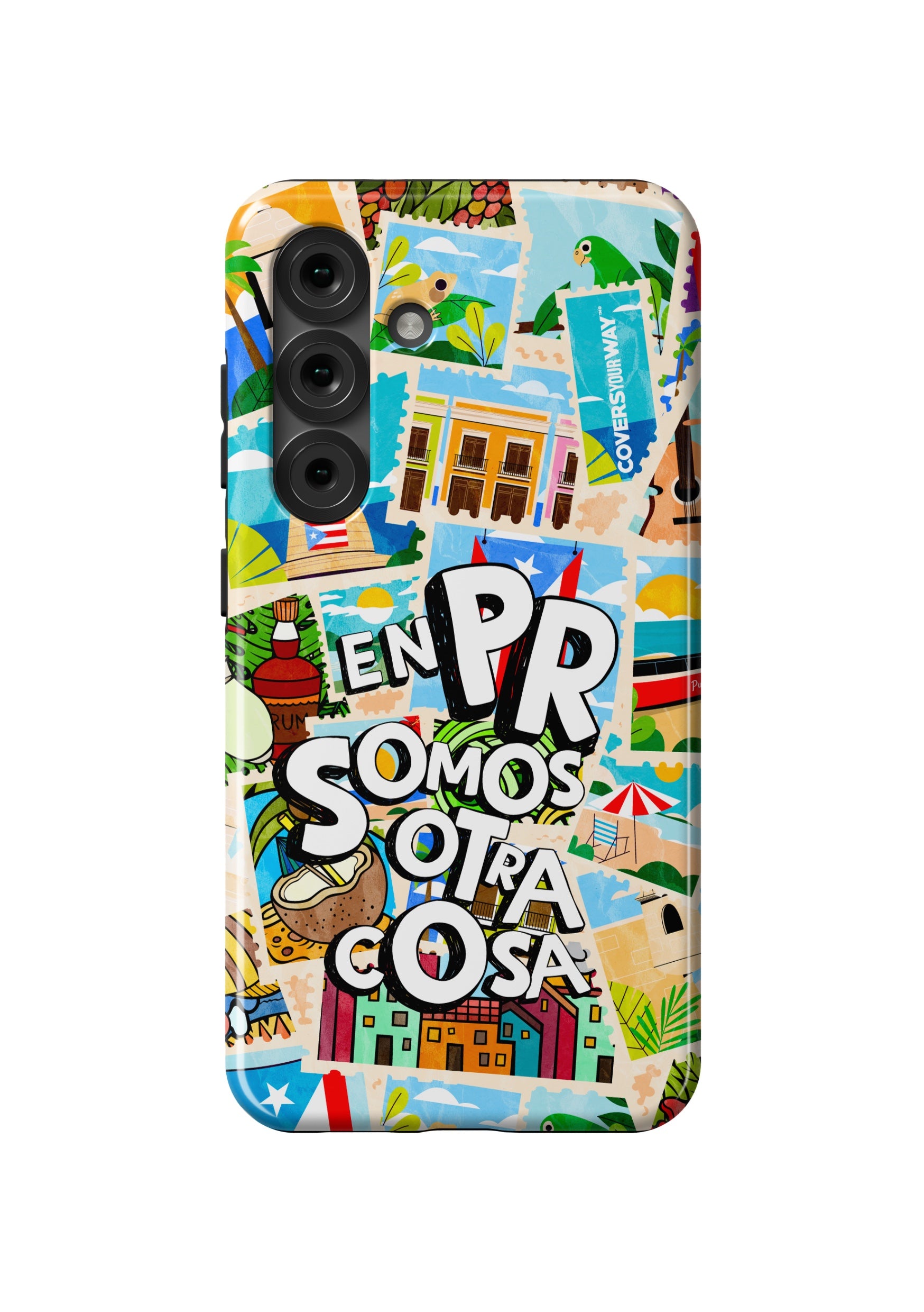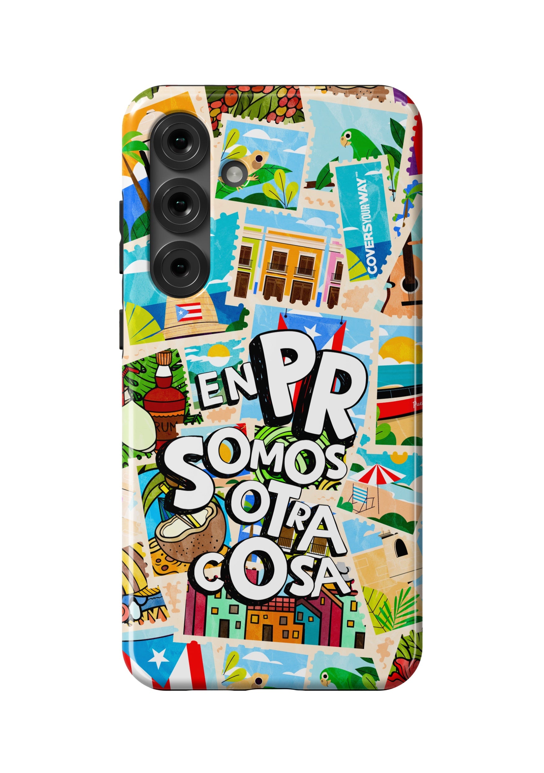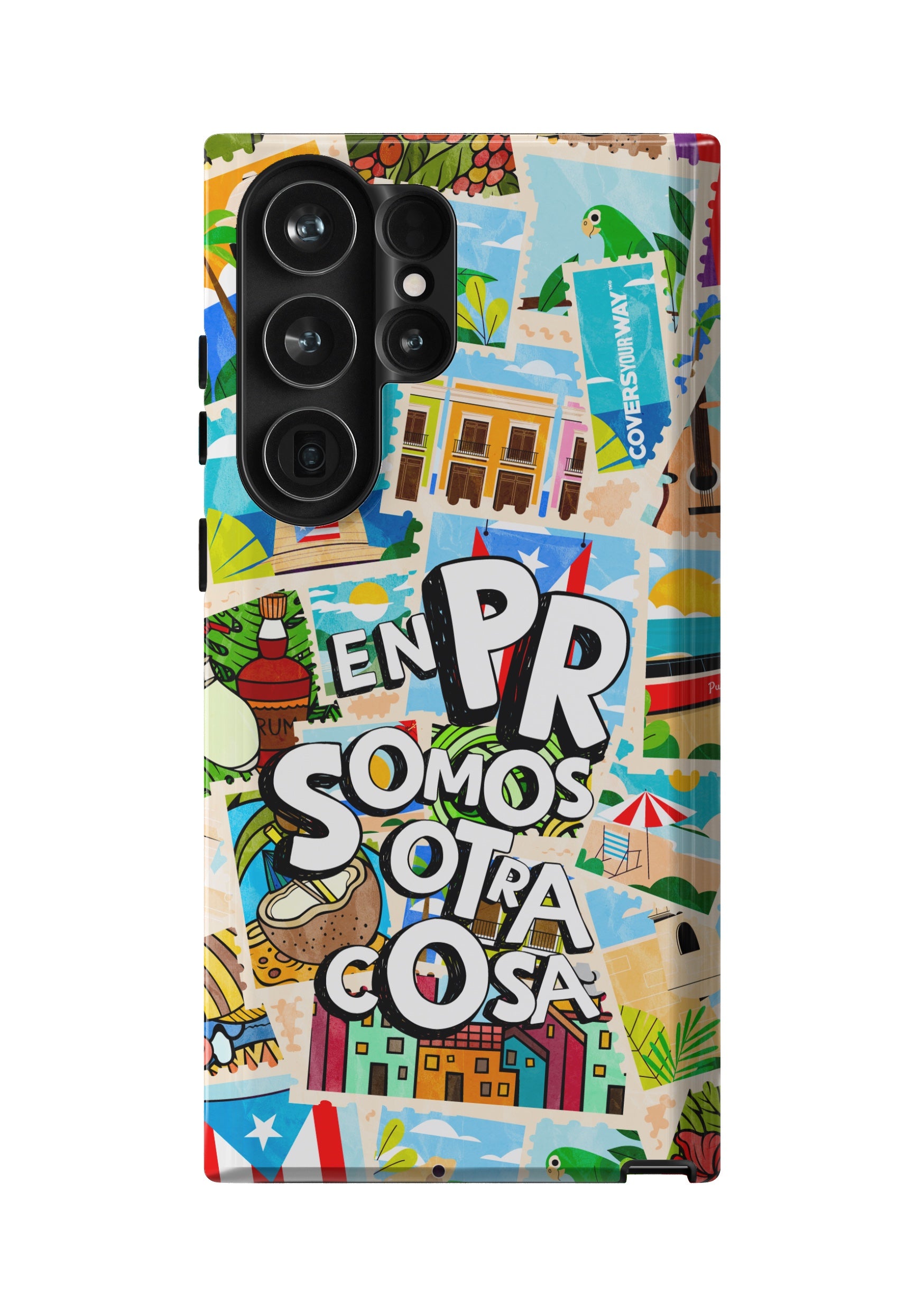 Show off your Boricua pride with this unique and durable phone cover. Featuring an exclusive design with the phrase "En PR somos otra cosa", this accessory not only protects your phone but also reflects your style and love for Puerto Rico. Perfect for standing out from the crowd!