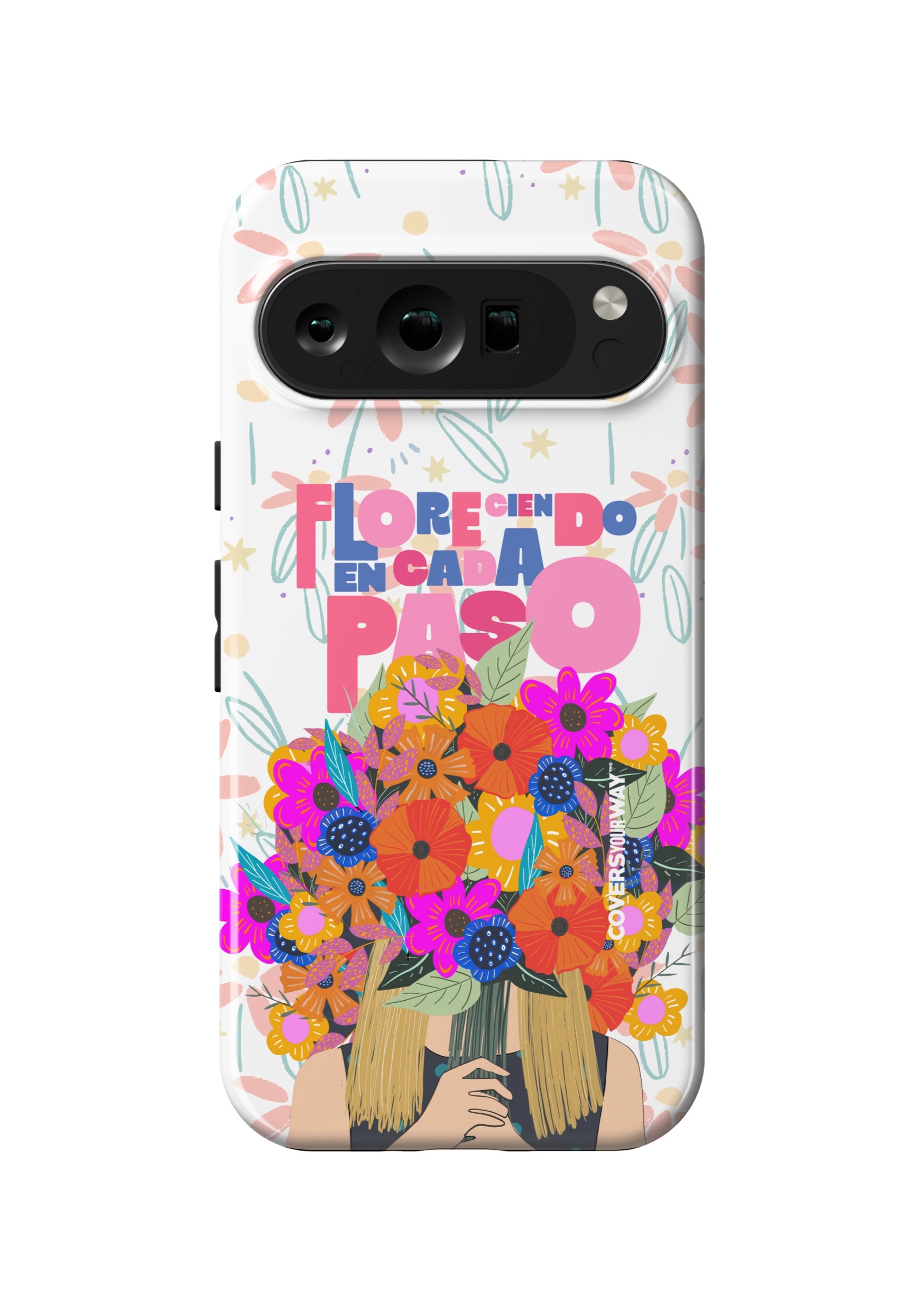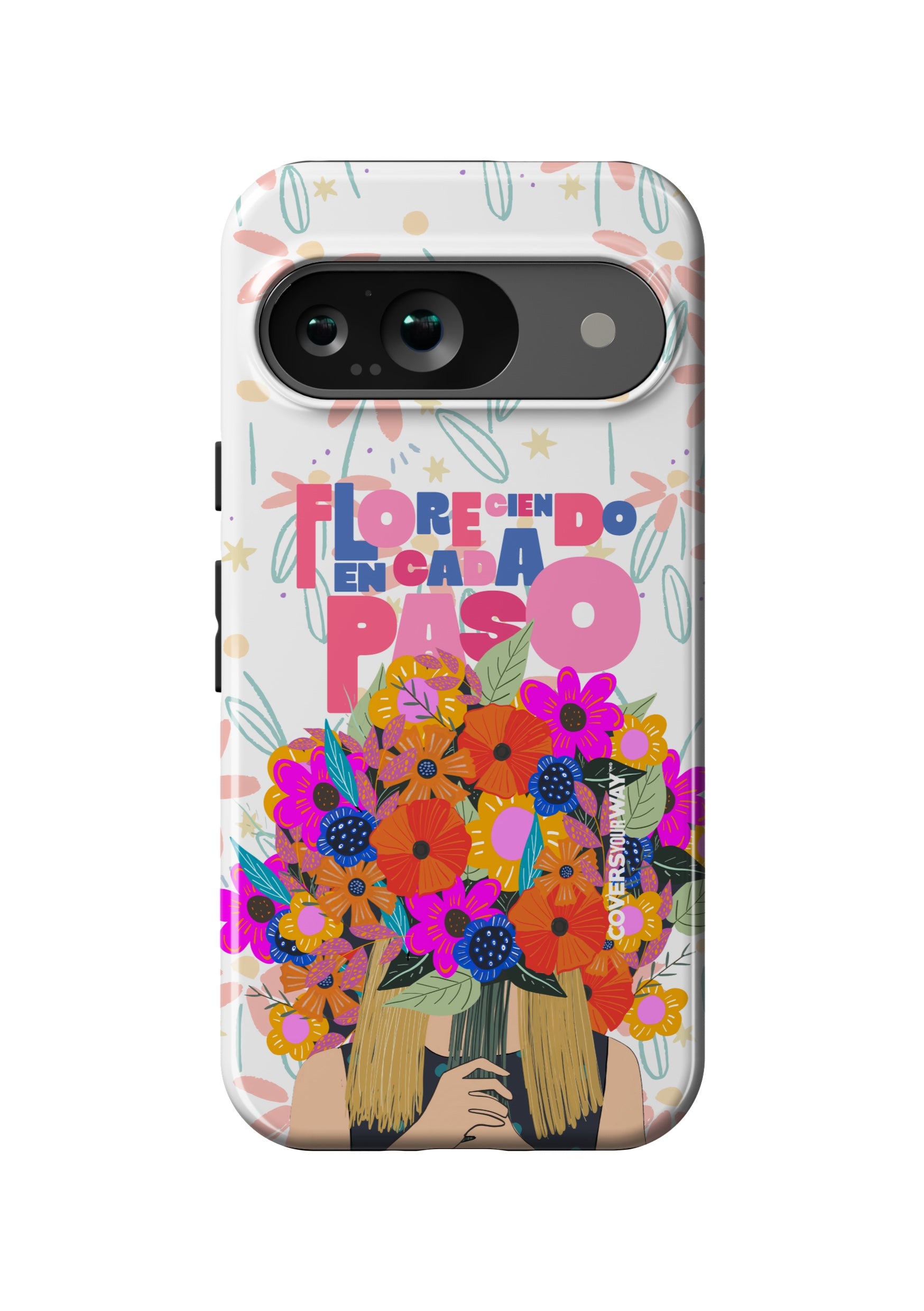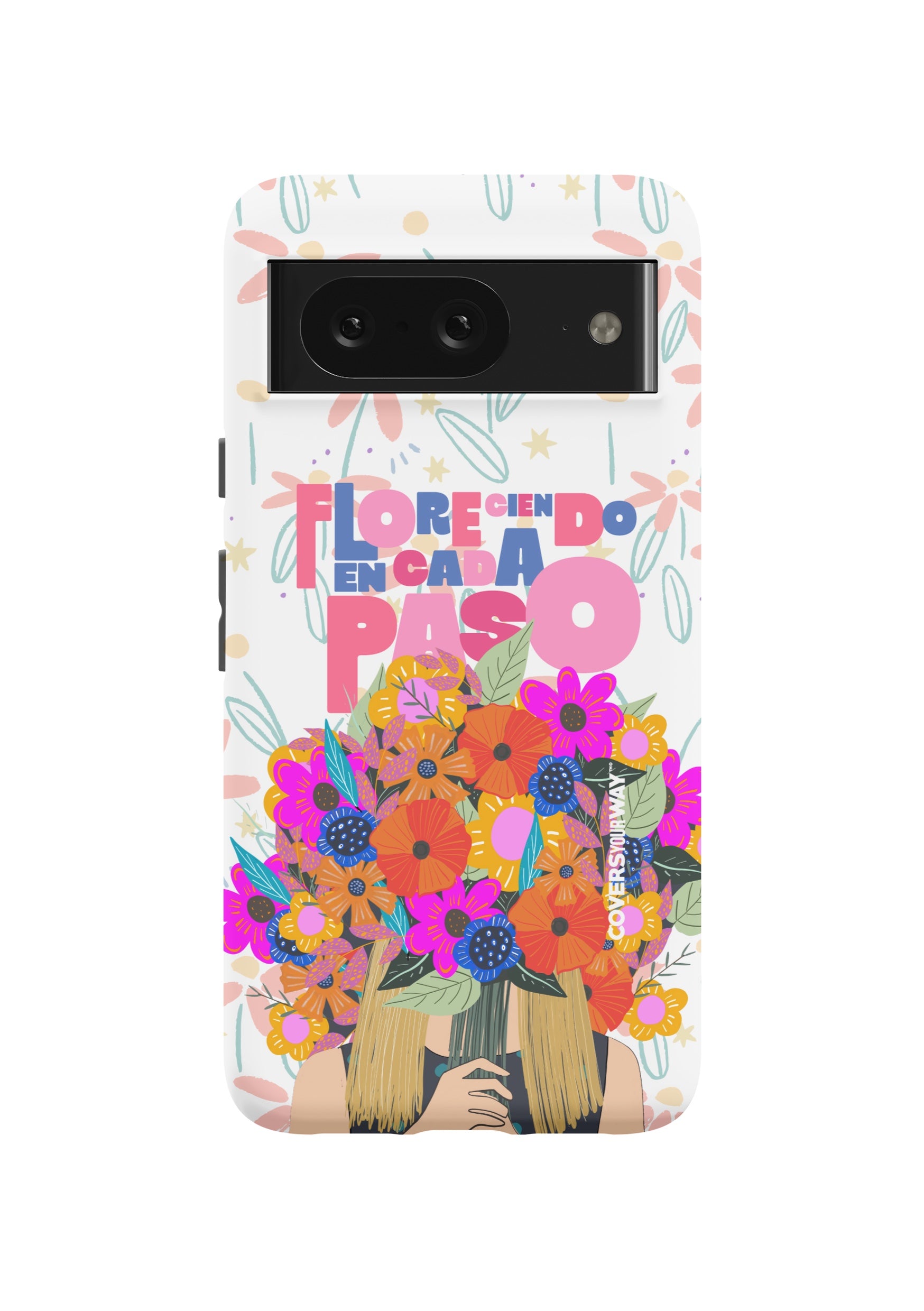 Its delicate design, featuring the phrase "Floreciendo en cada paso", is a gentle reminder that each day is a new chance to grow. Made from durable materials that protect your phone without compromising elegance. Perfect for those who appreciate meaningful details.
