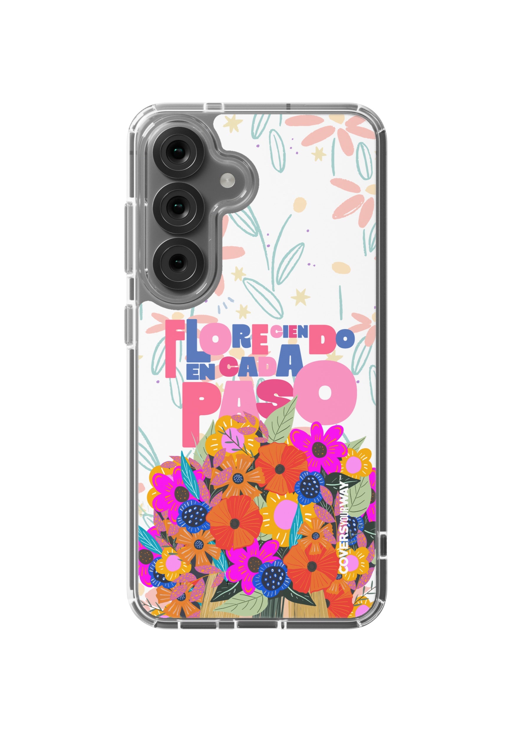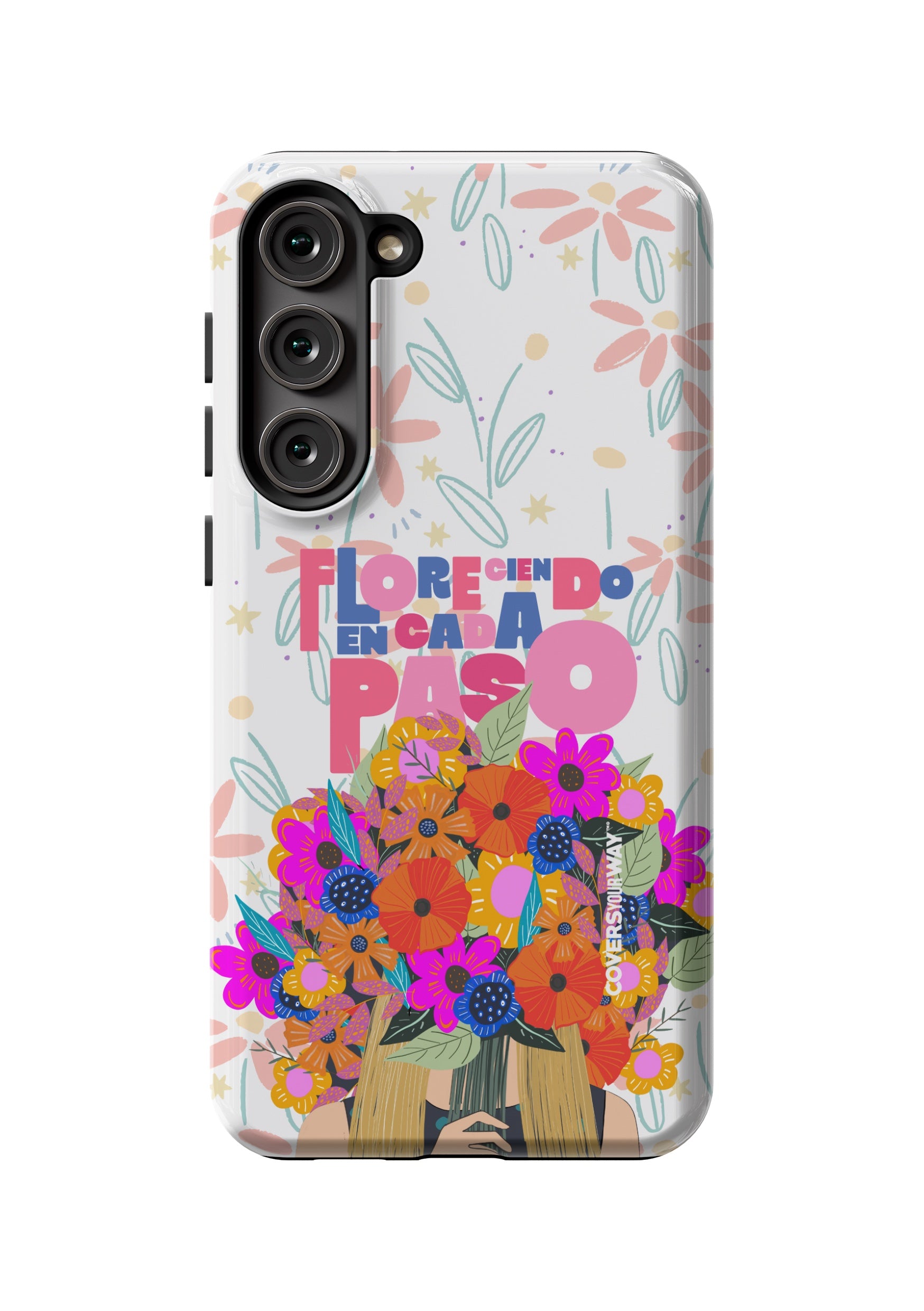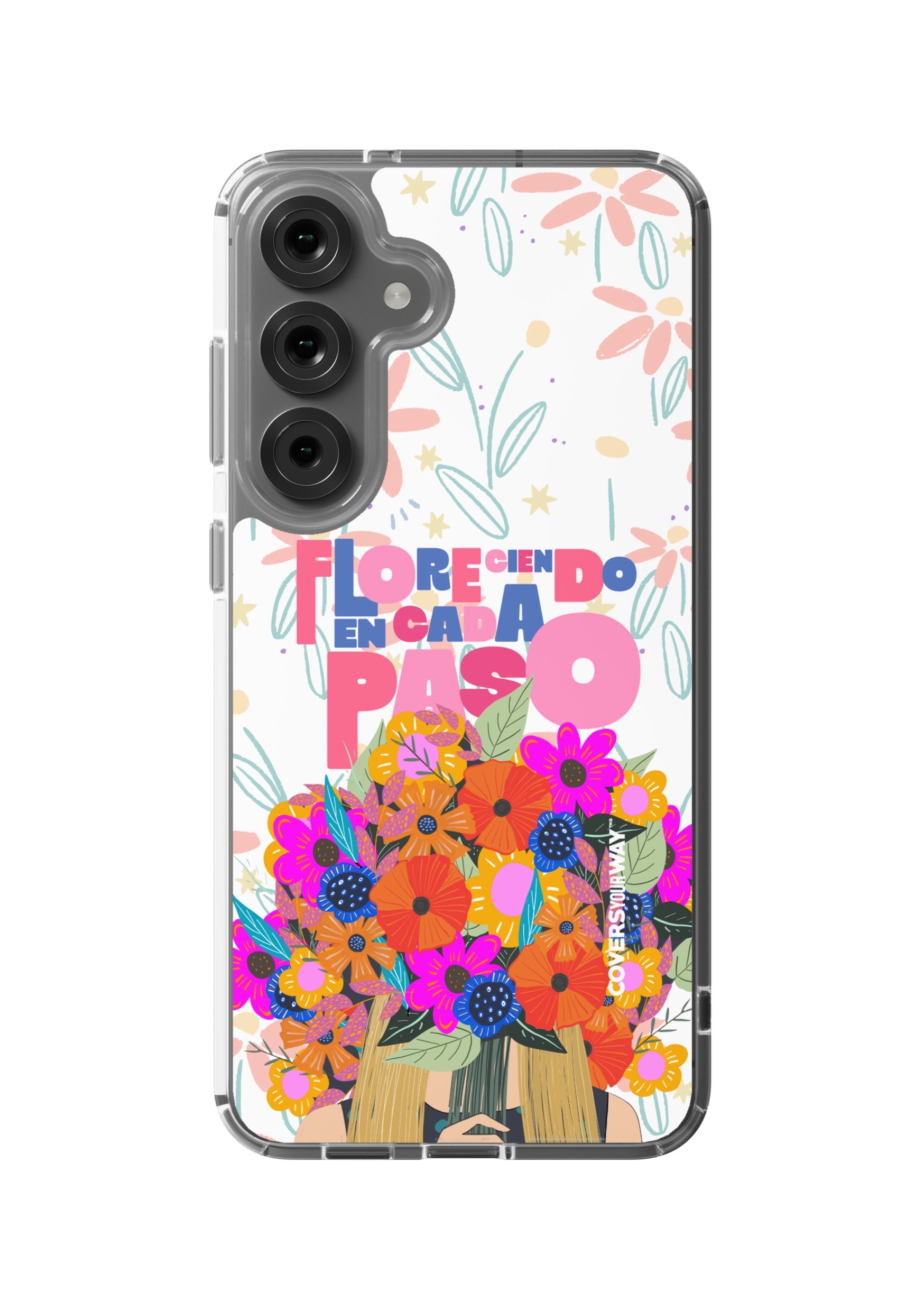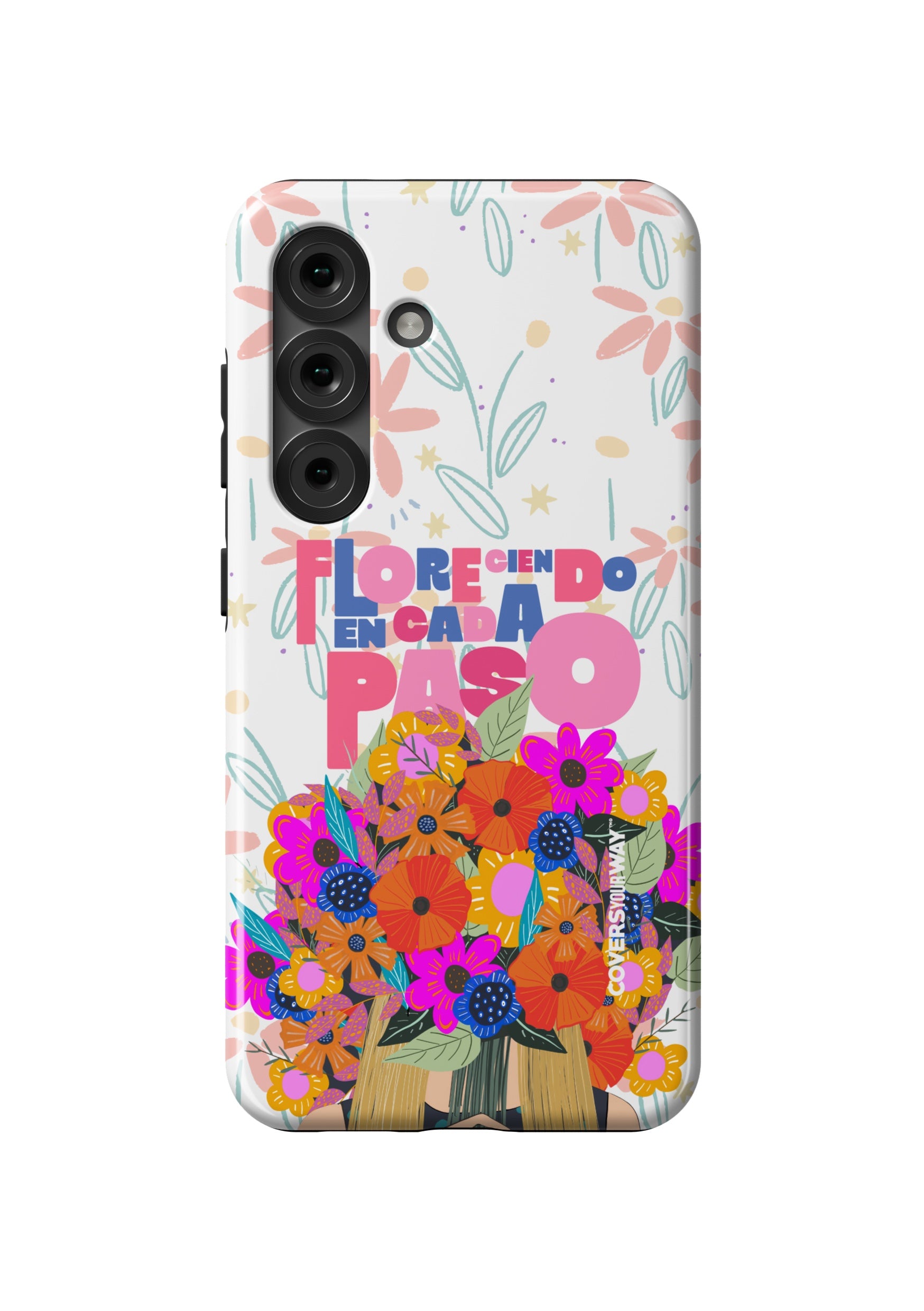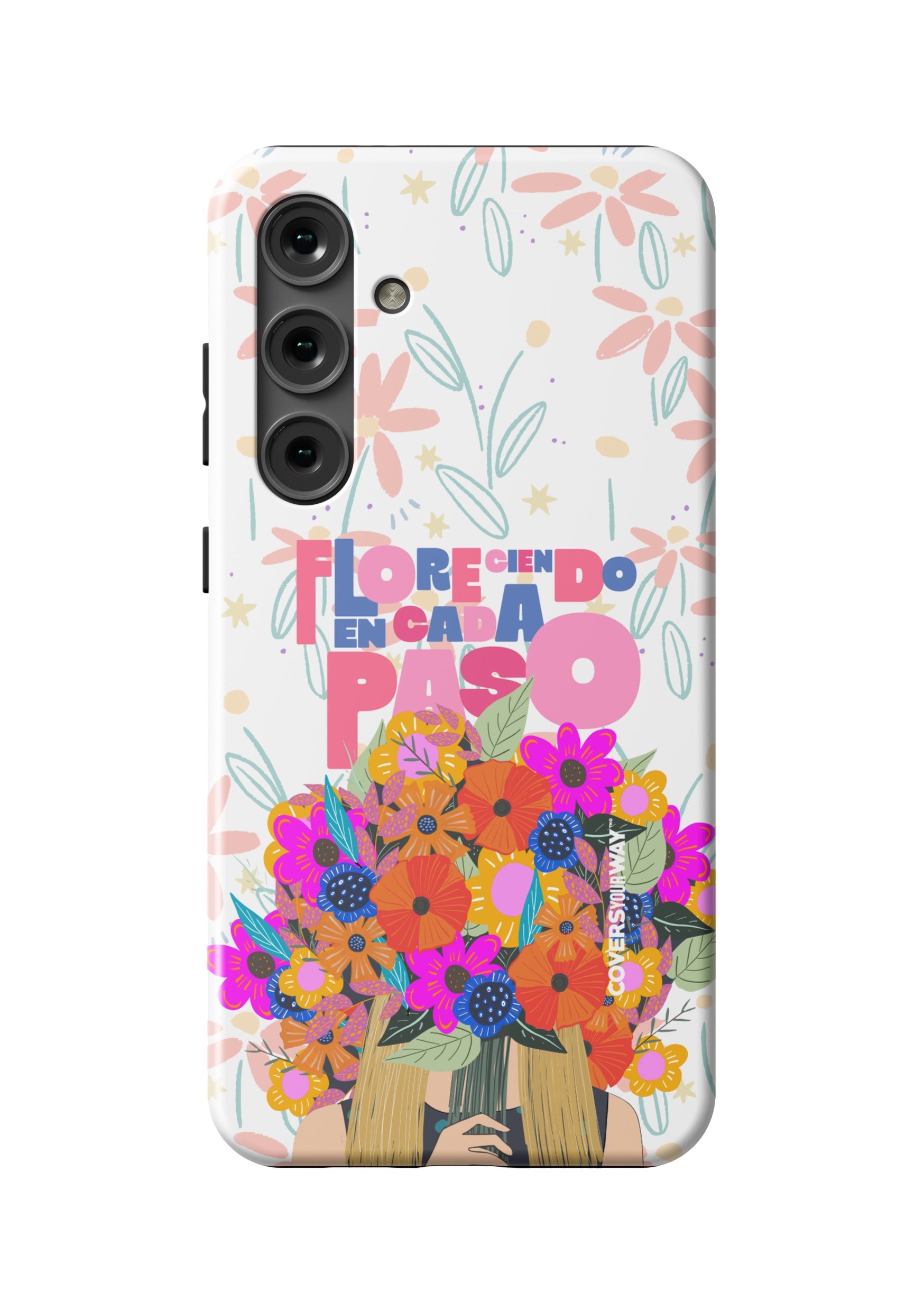 Its delicate design, featuring the phrase "Floreciendo en cada paso", is a gentle reminder that each day is a new chance to grow. Made from durable materials that protect your phone without compromising elegance. Perfect for those who appreciate meaningful details.