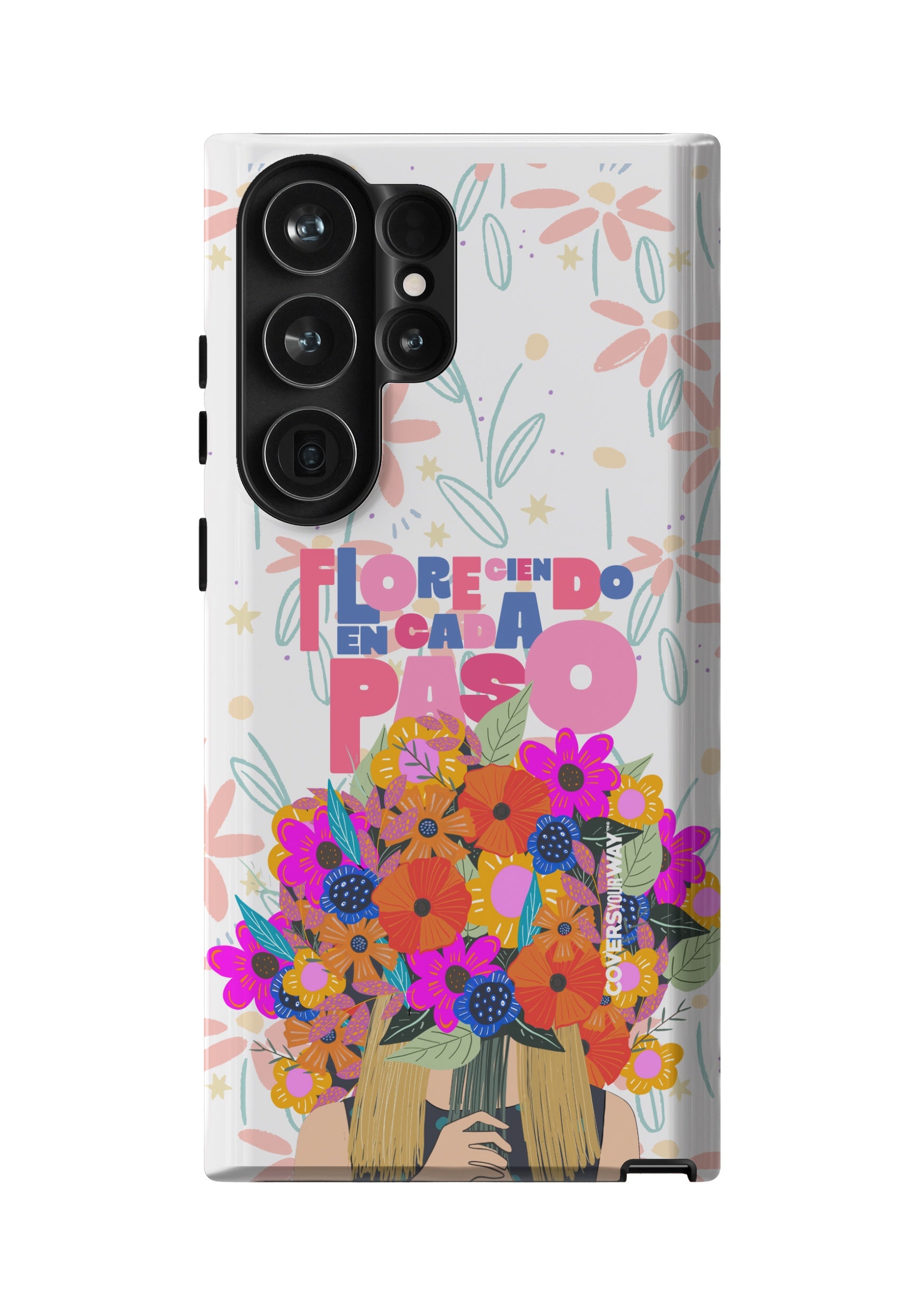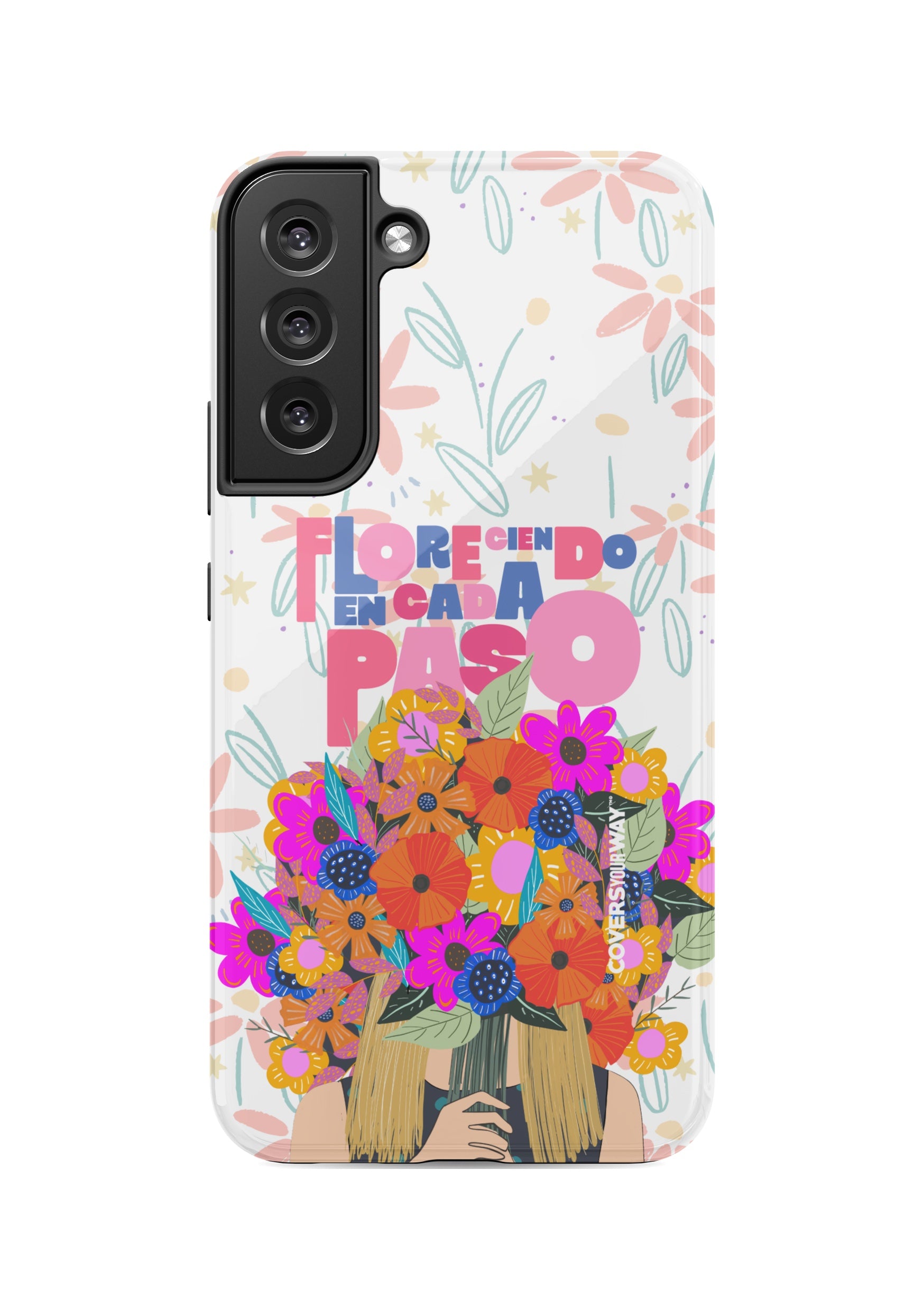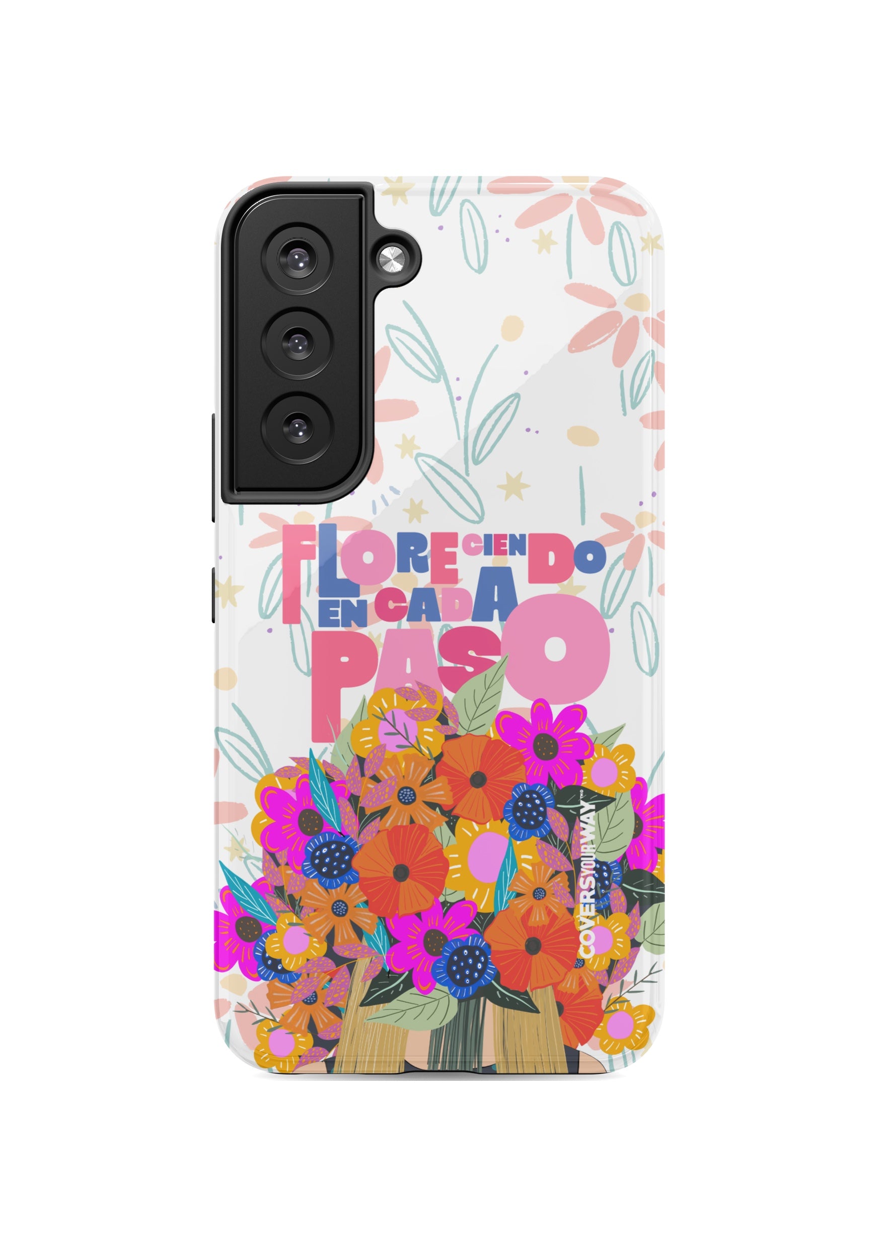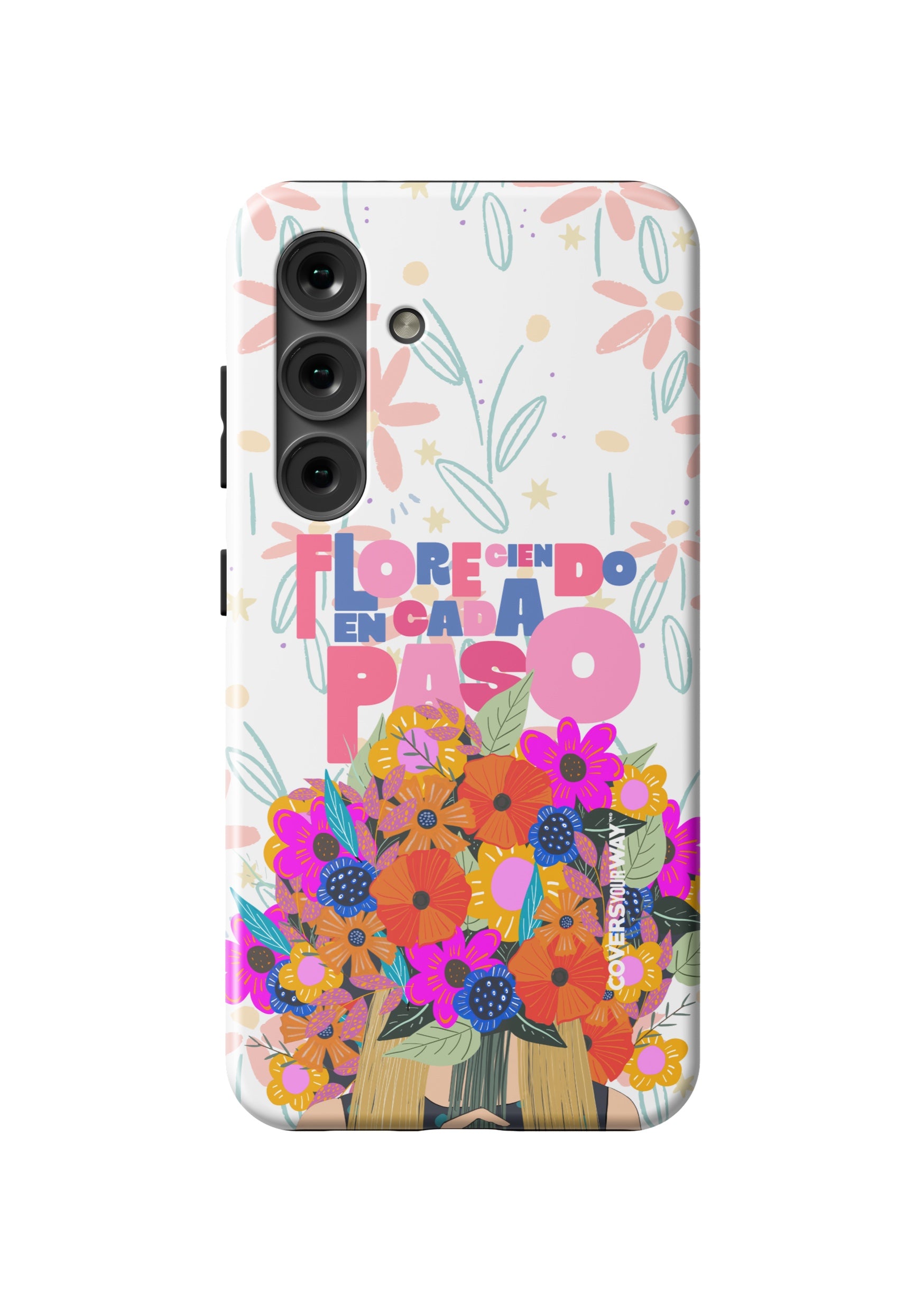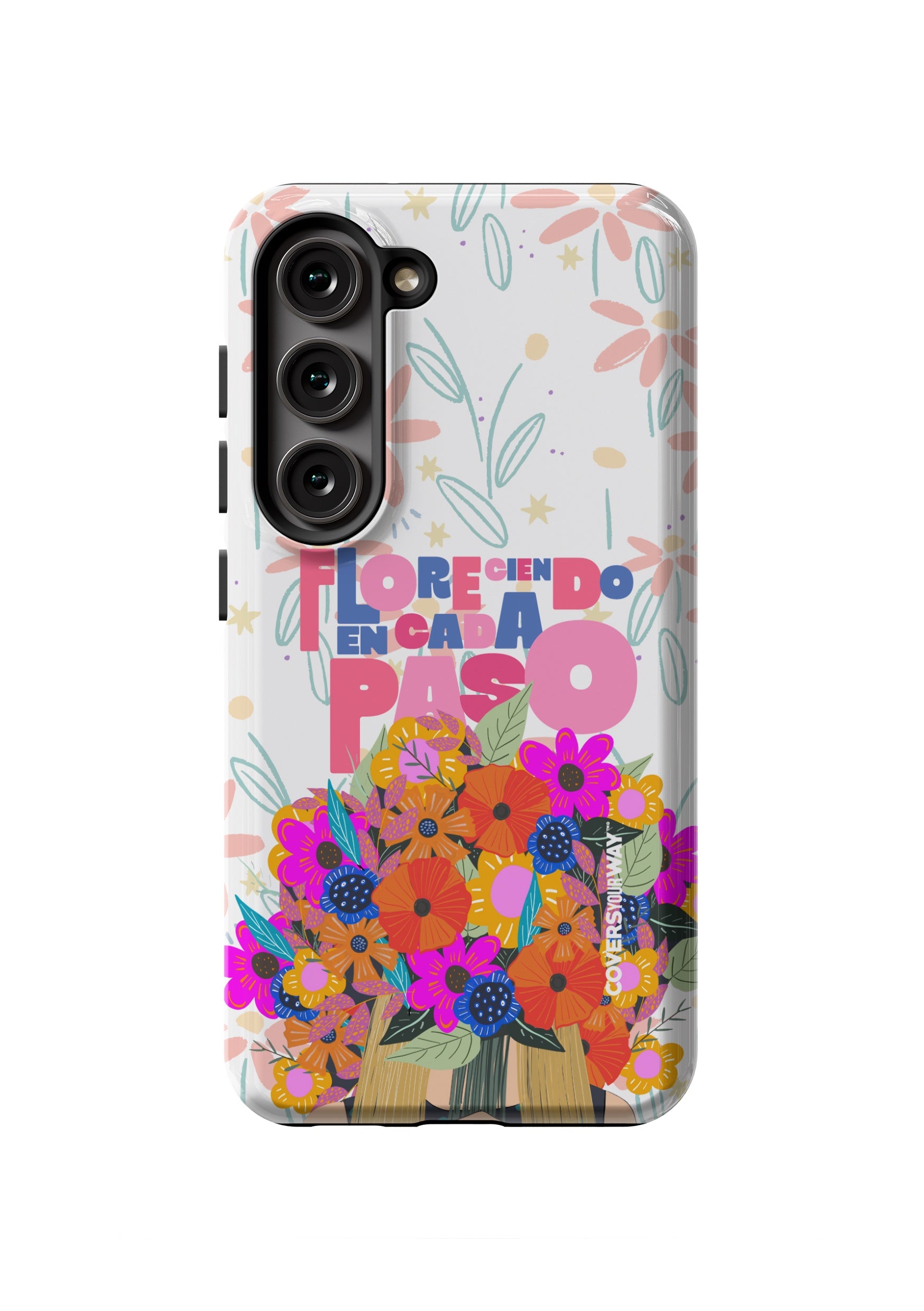Its delicate design, featuring the phrase "Floreciendo en cada paso", is a gentle reminder that each day is a new chance to grow. Made from durable materials that protect your phone without compromising elegance. Perfect for those who appreciate meaningful details.