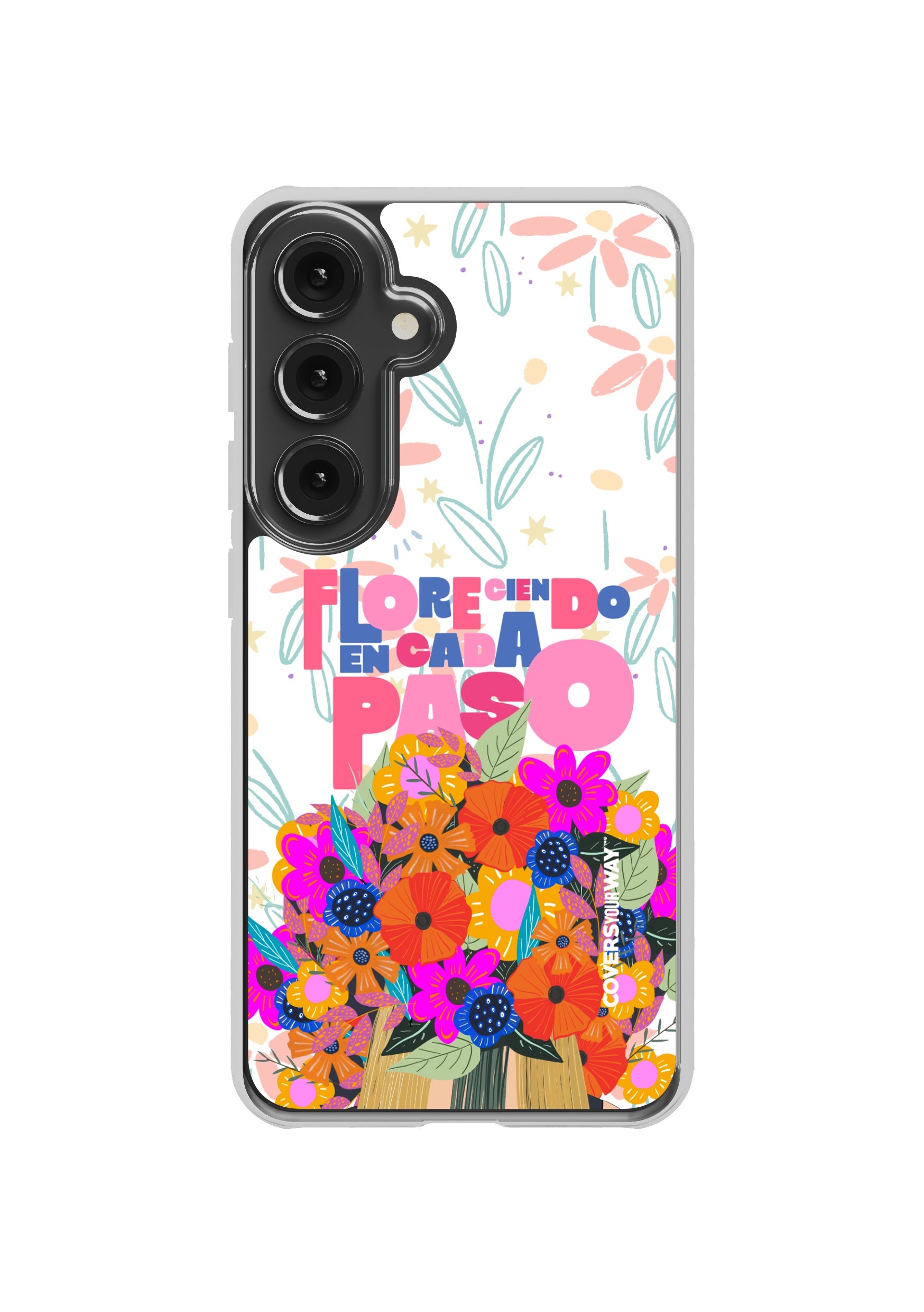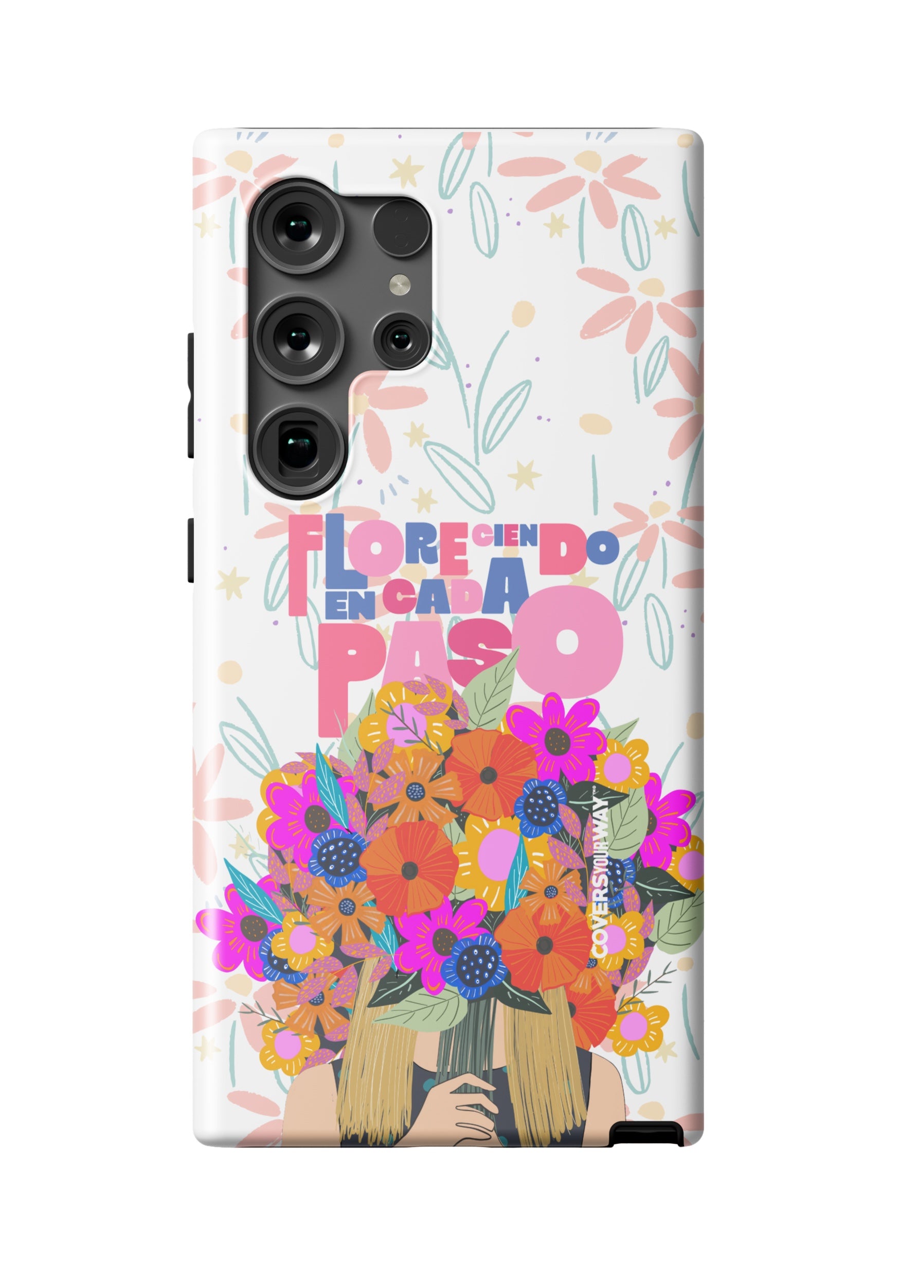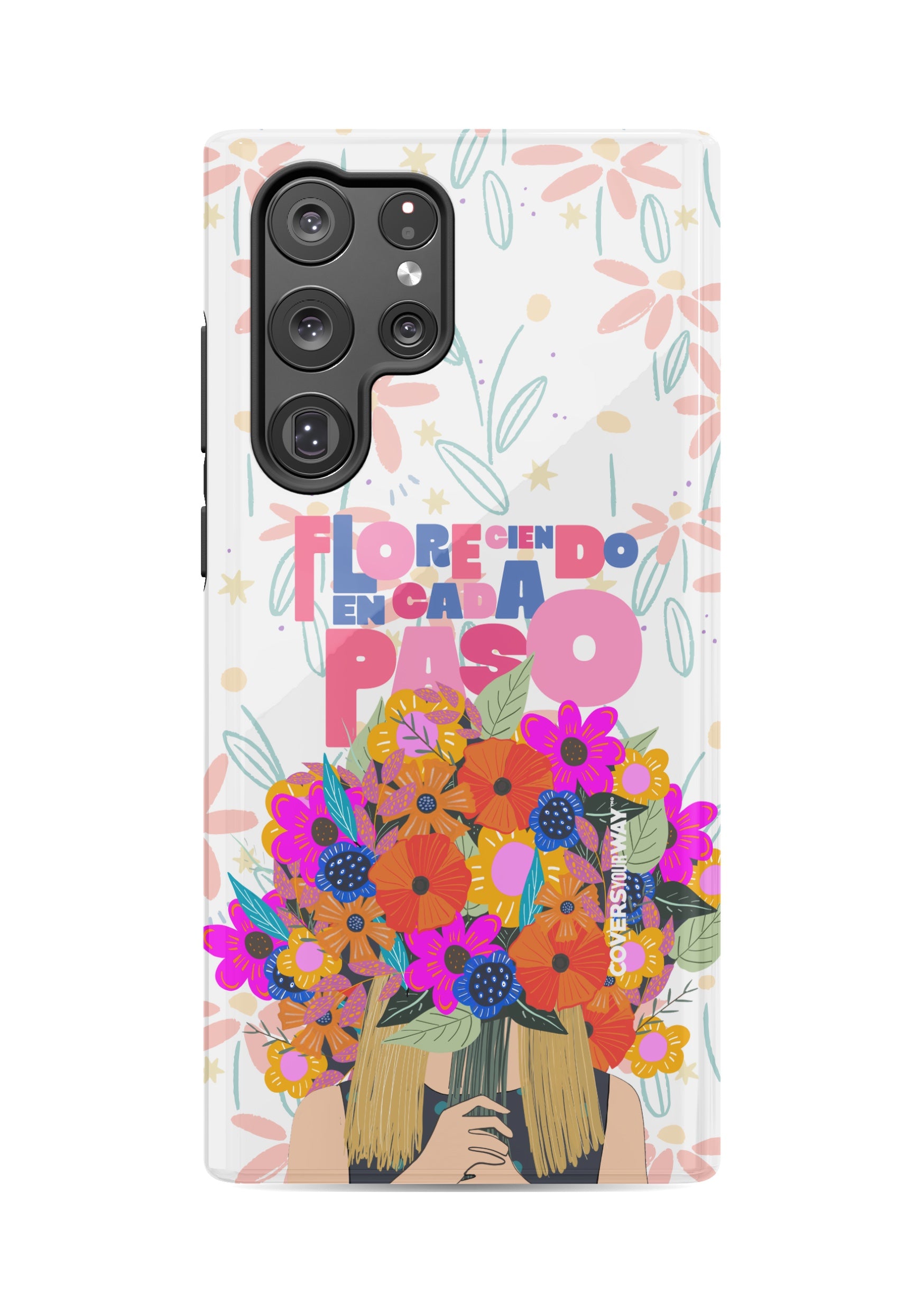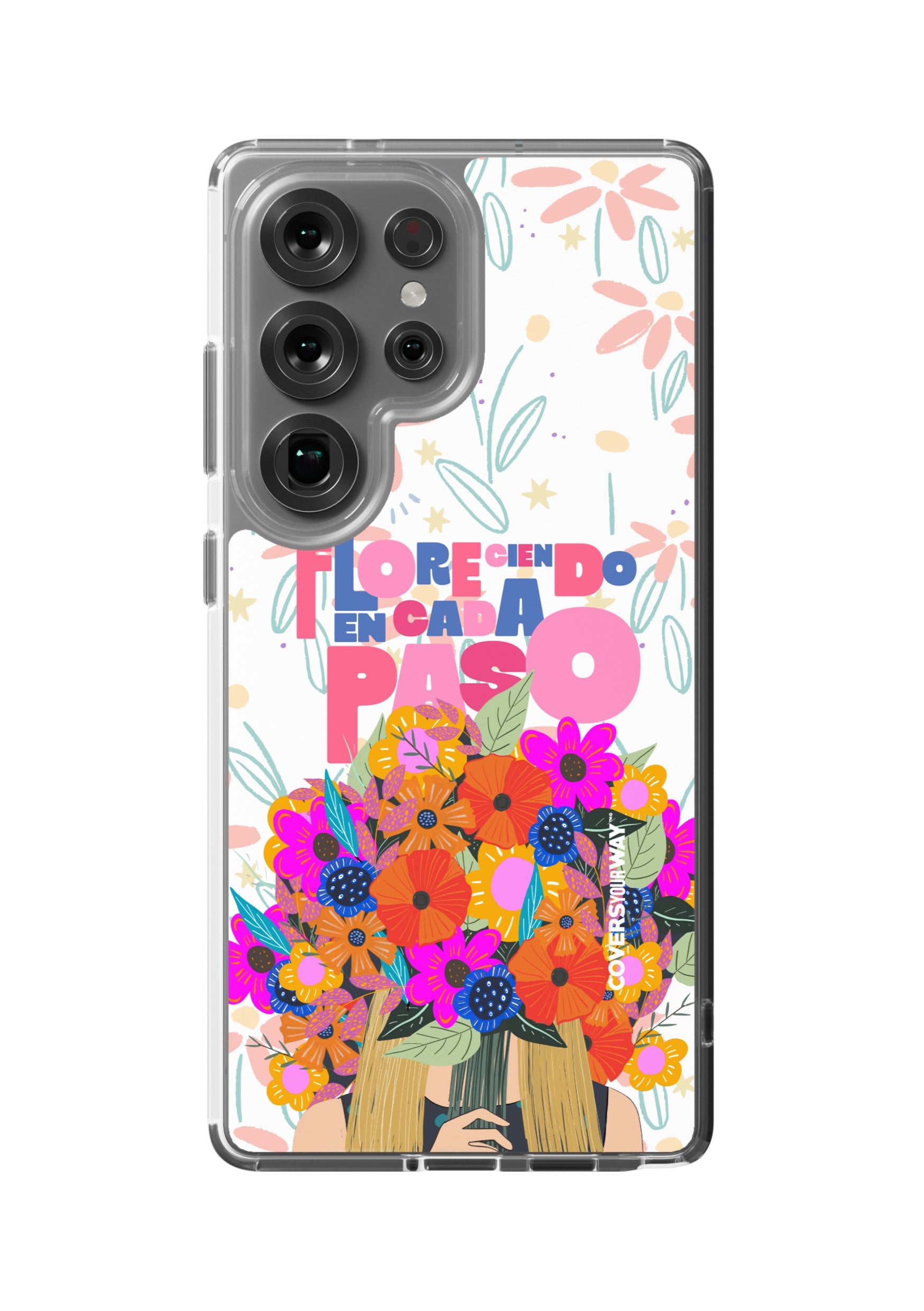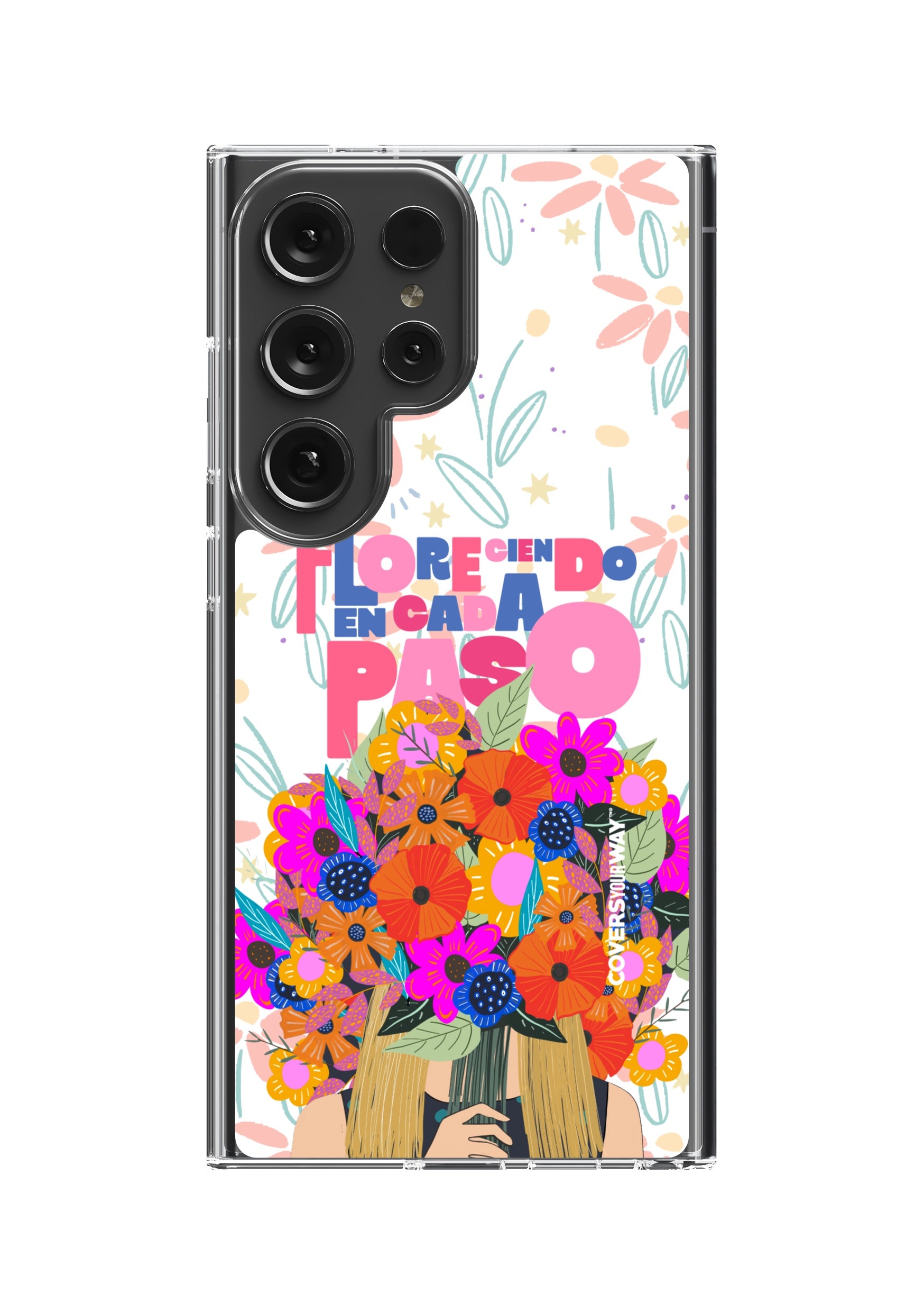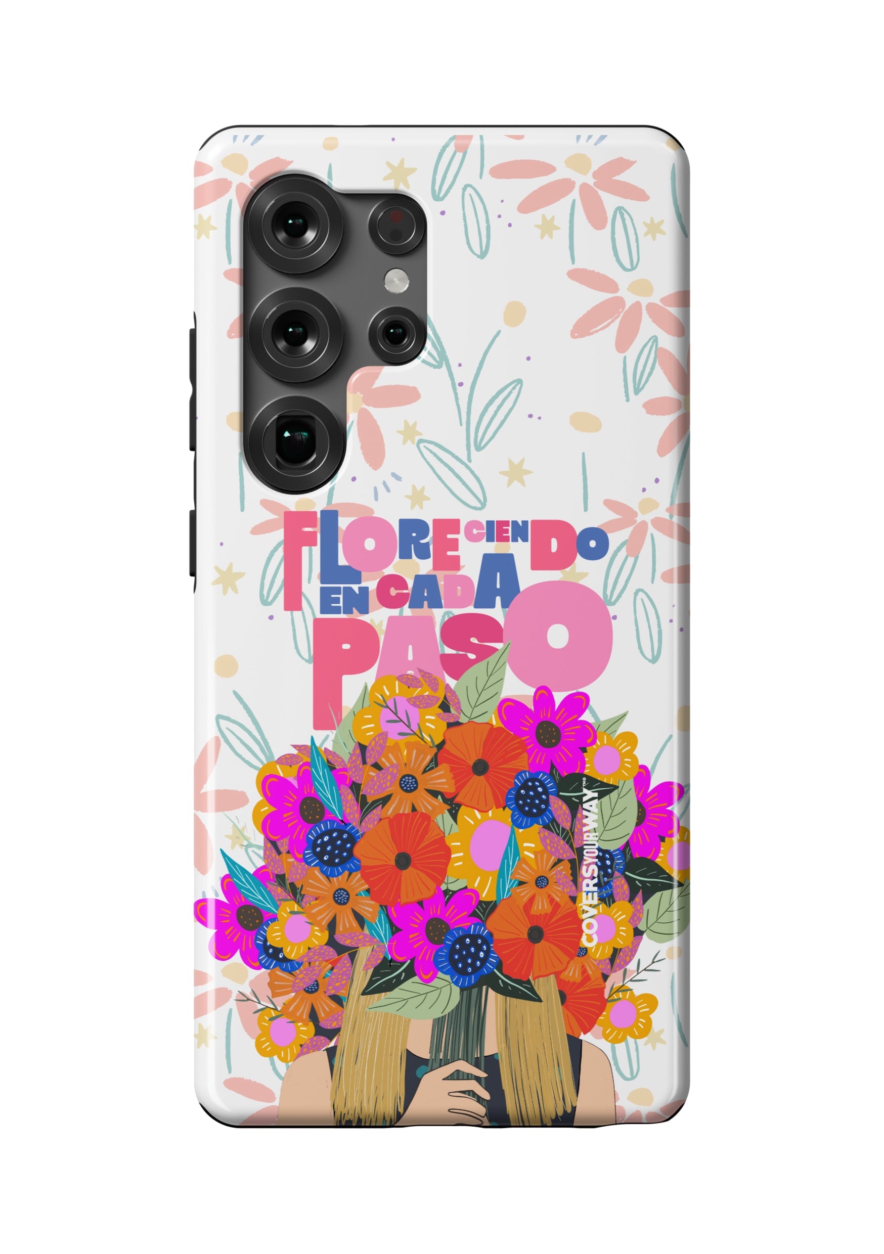 Its delicate design, featuring the phrase "Floreciendo en cada paso", is a gentle reminder that each day is a new chance to grow. Made from durable materials that protect your phone without compromising elegance. Perfect for those who appreciate meaningful details.