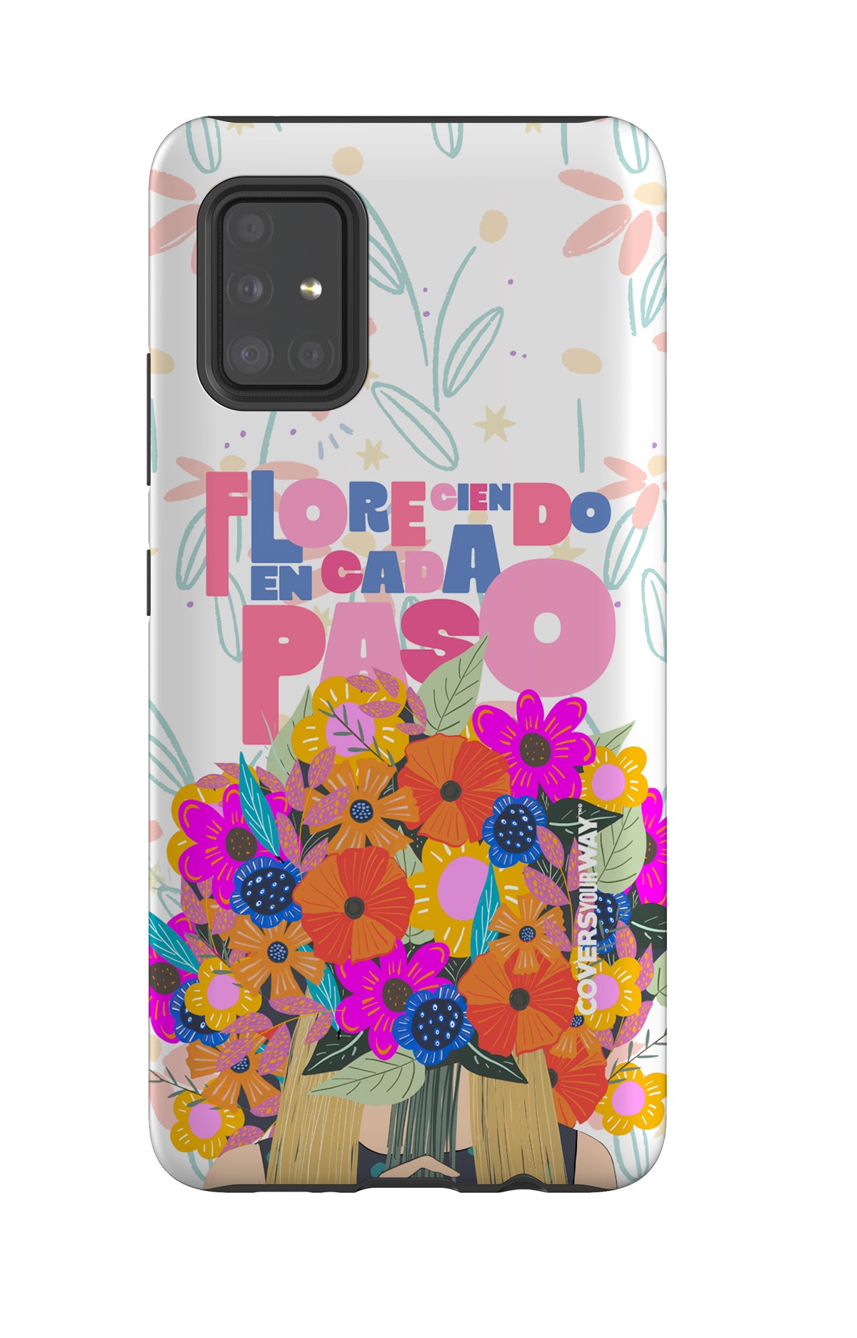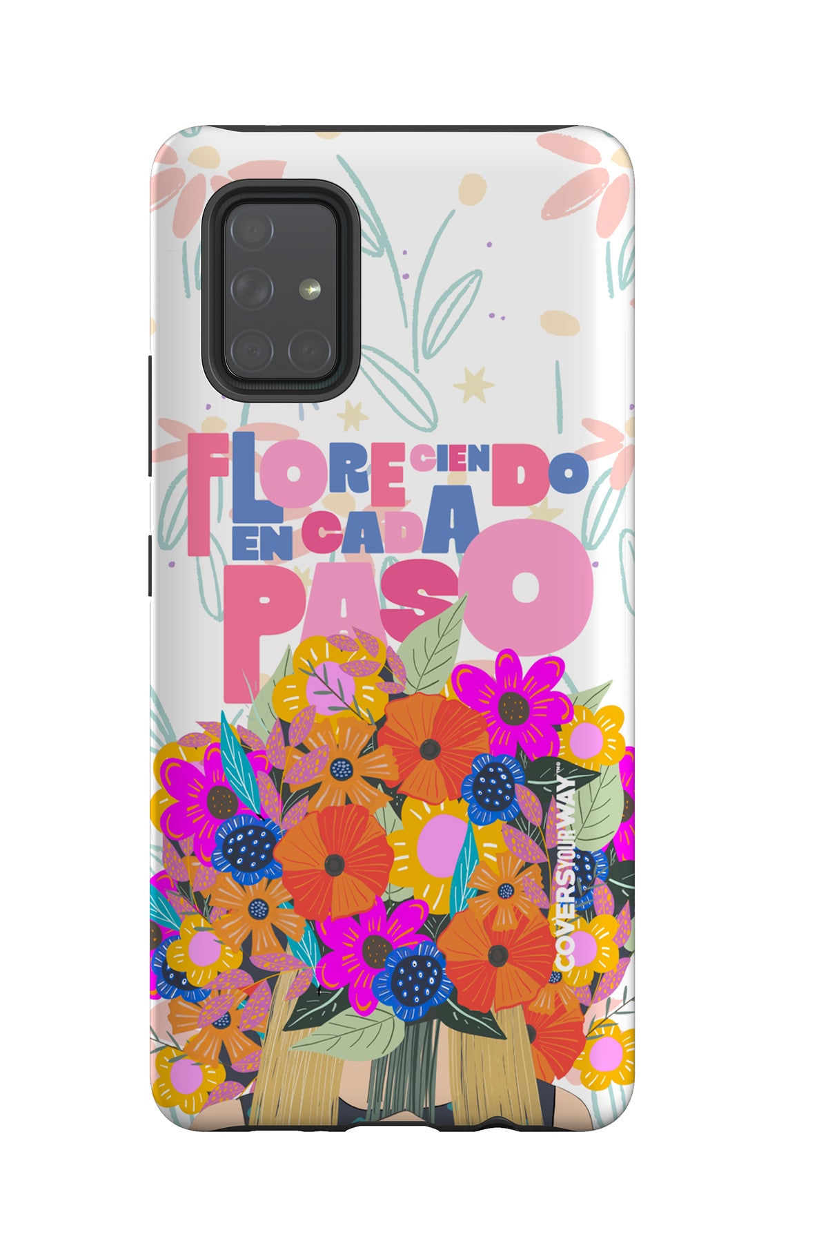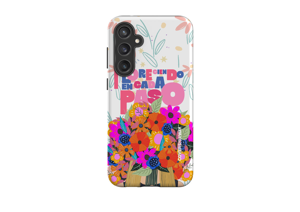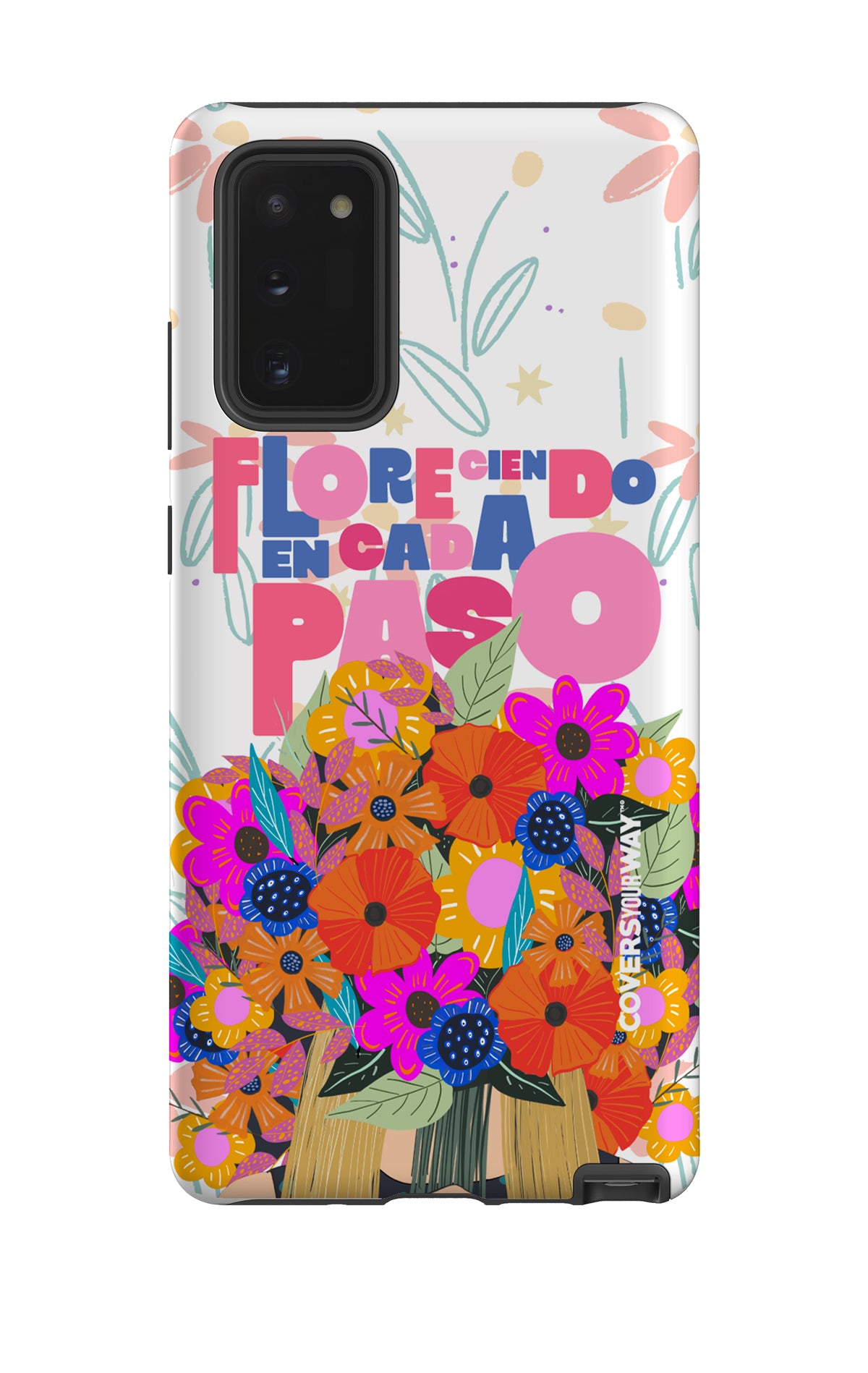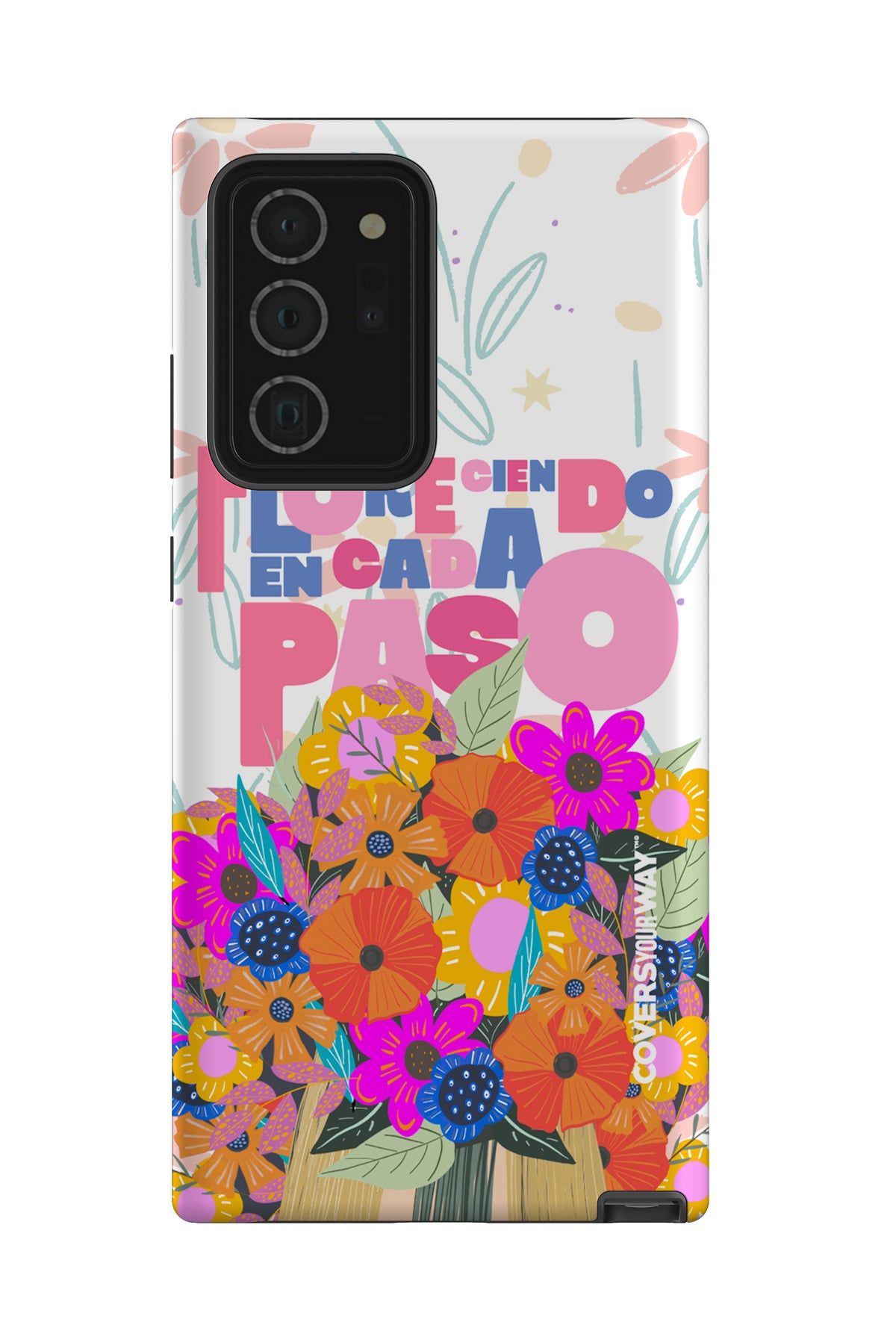 Its delicate design, featuring the phrase "Floreciendo en cada paso", is a gentle reminder that each day is a new chance to grow. Made from durable materials that protect your phone without compromising elegance. Perfect for those who appreciate meaningful details.