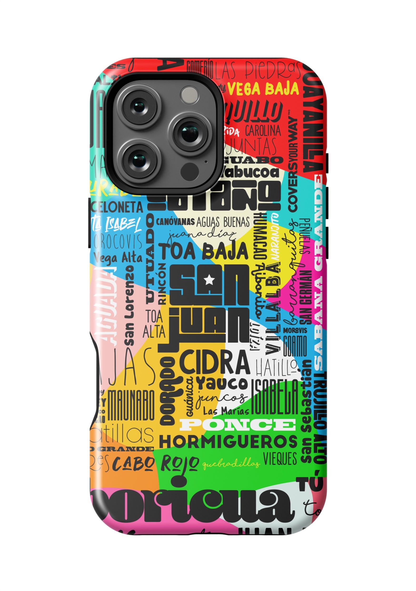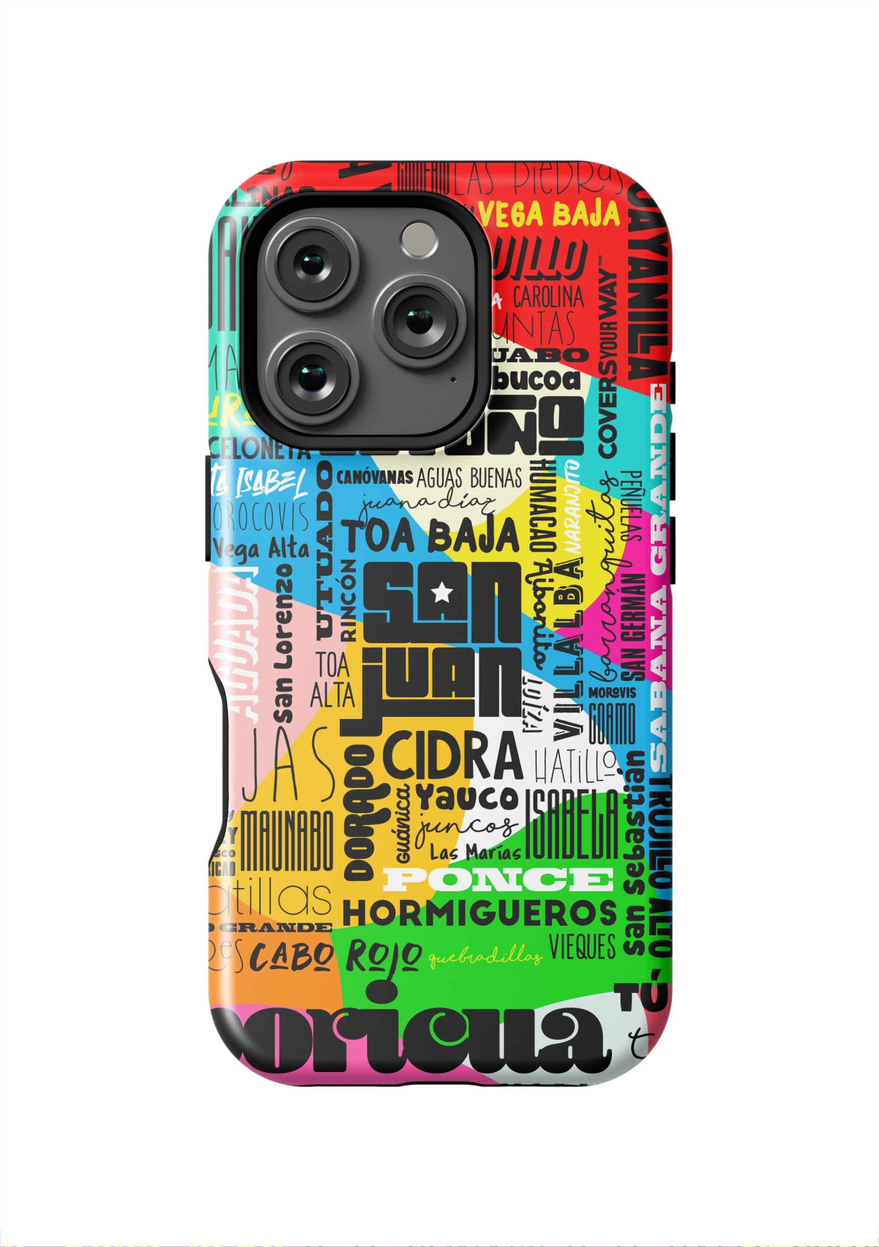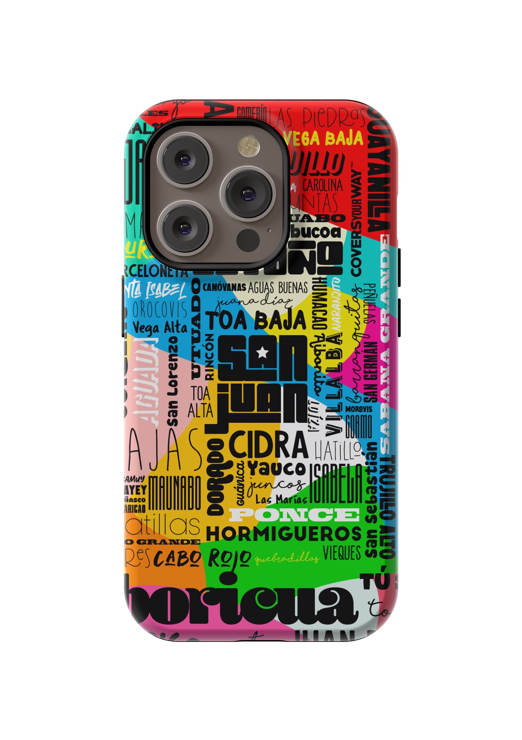Este protector combina estilo y orgullo boricua en un diseño único que celebra la unidad de Puerto Rico. Con la frase emblemática "Somos 78", el diseño incorpora sutilmente el nombre de cada uno de los 78 municipios, formando un mapa tipográfico que destaca la diversidad y la identidad de la Isla. Fabricado con materiales resistentes a golpes y arañazos, este protector no solo protege tu celular, sino que también refleja tu amor por Puerto Rico con elegancia y personalidad.