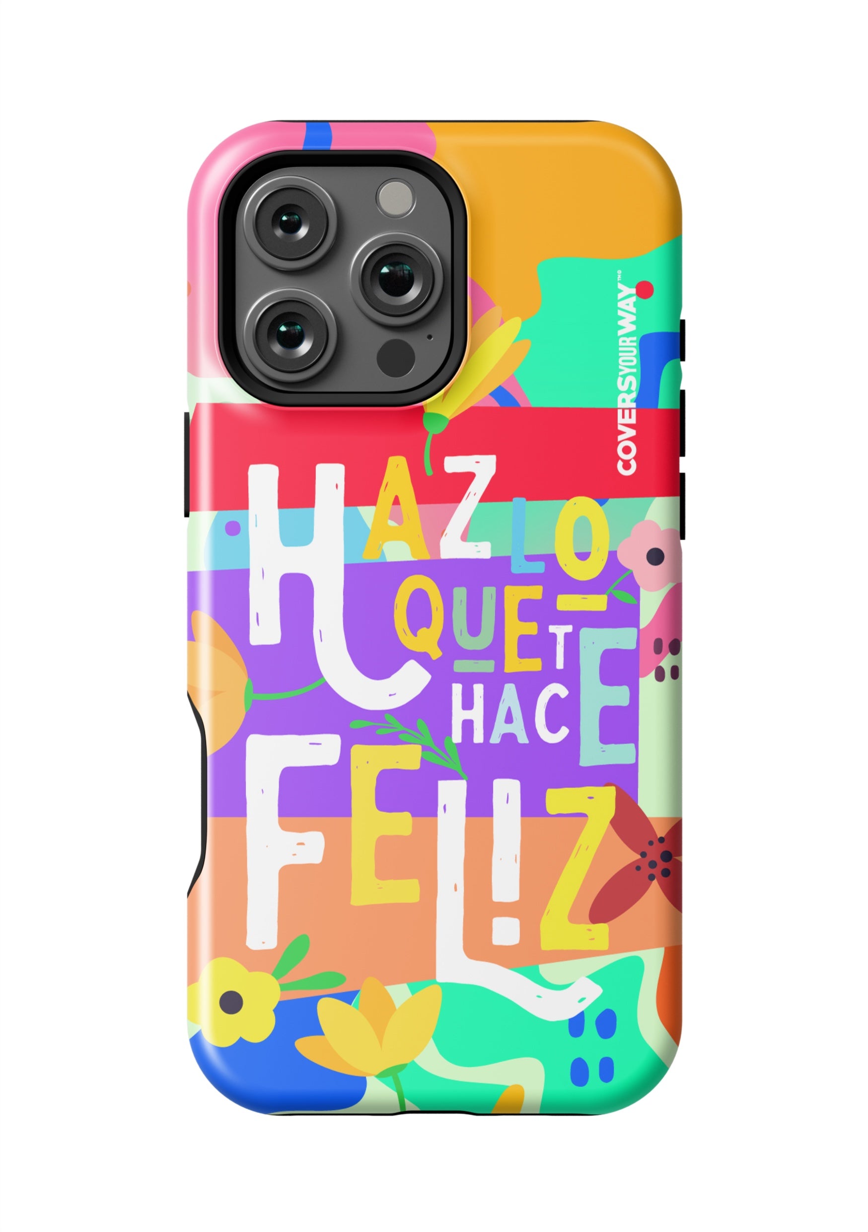 Fill your phone with joy and authenticity with this durable case, designed with the phrase "Haz Lo Que Te Hace Feliz". It protects your device from bumps and scratches while reminding you to prioritize what you love and live with passion.