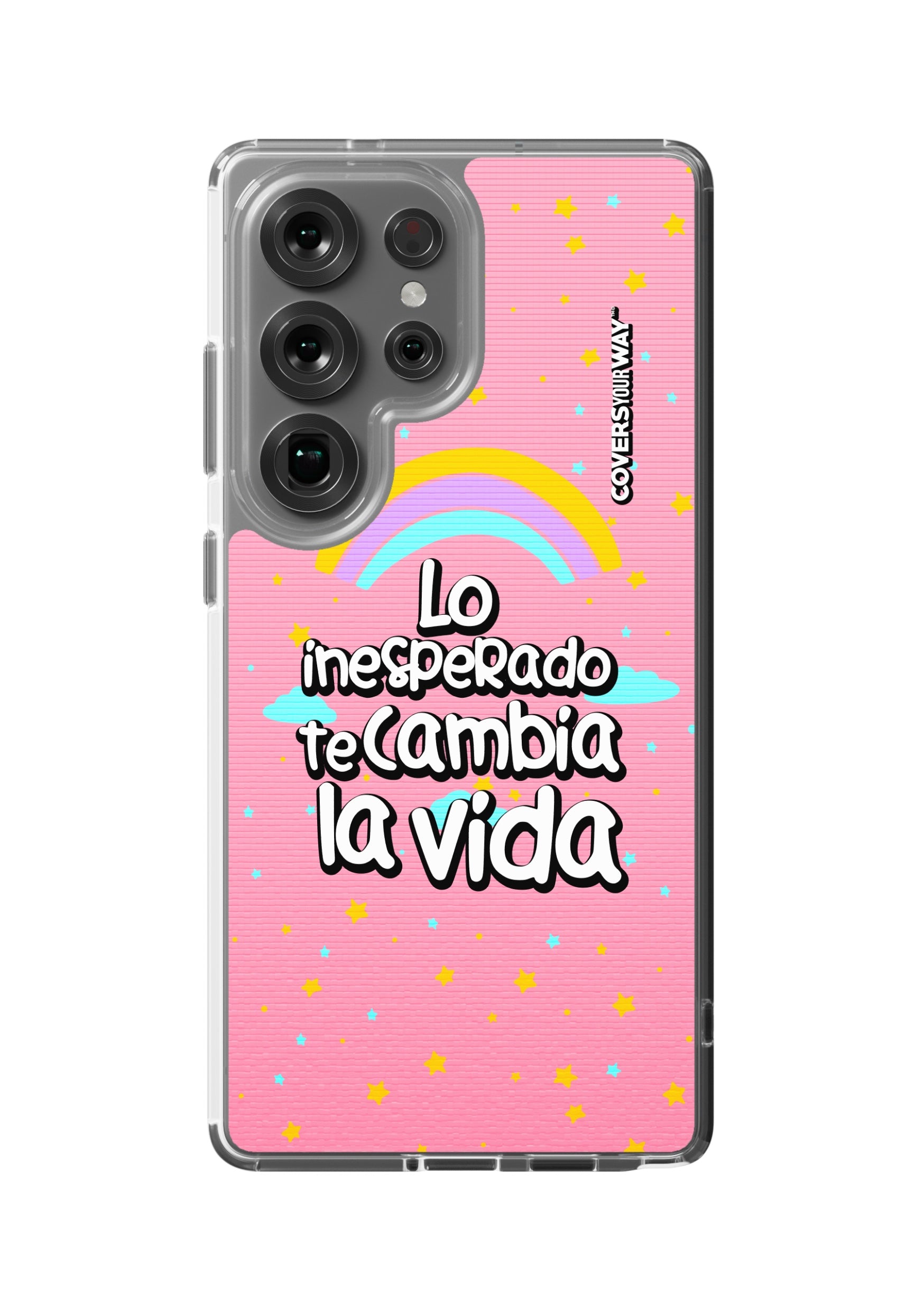 This phone case features an exclusive and motivational design with the phrase "Lo inesperado te cambia la vida" as the central element. The typography is elegant and modern, with a handwritten style that conveys emotion and warmth. Ideal for those who value meaningful messages, this case combines protection and style with an inspiring touch..