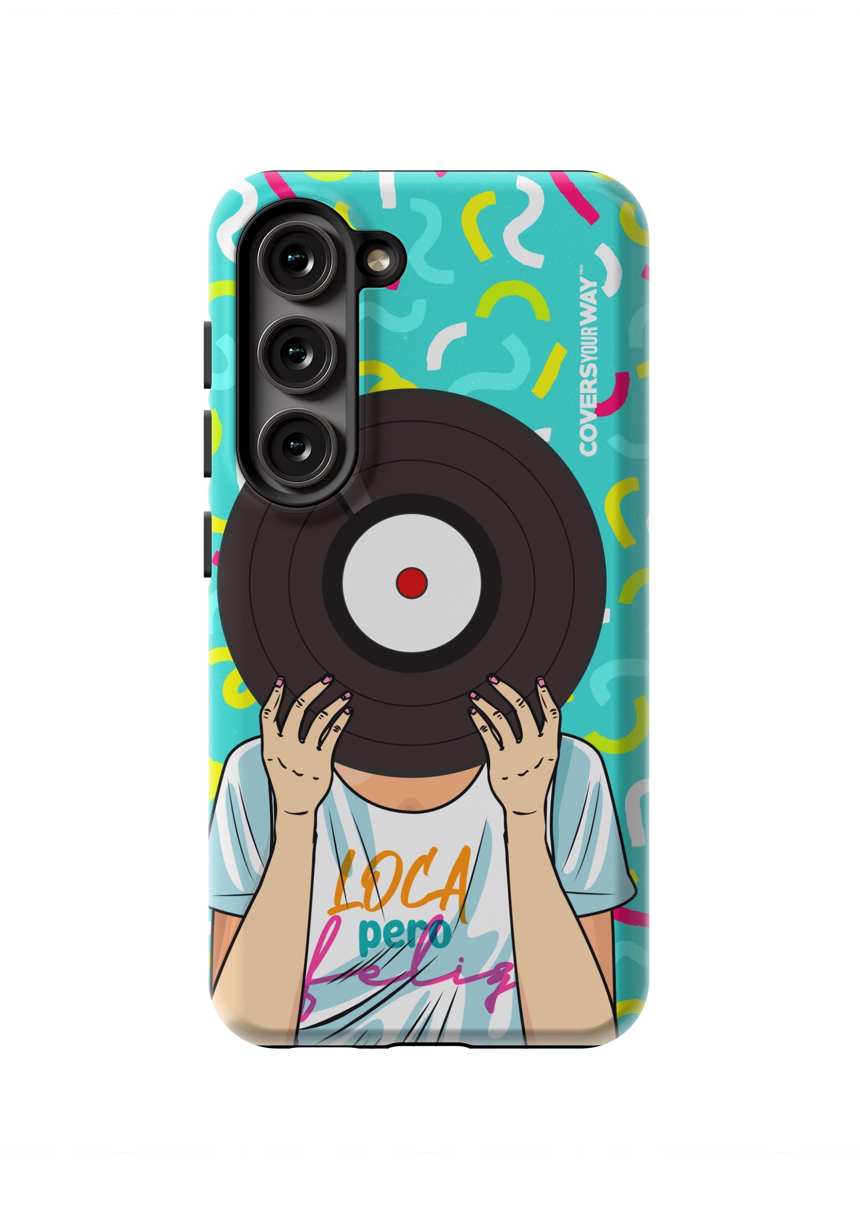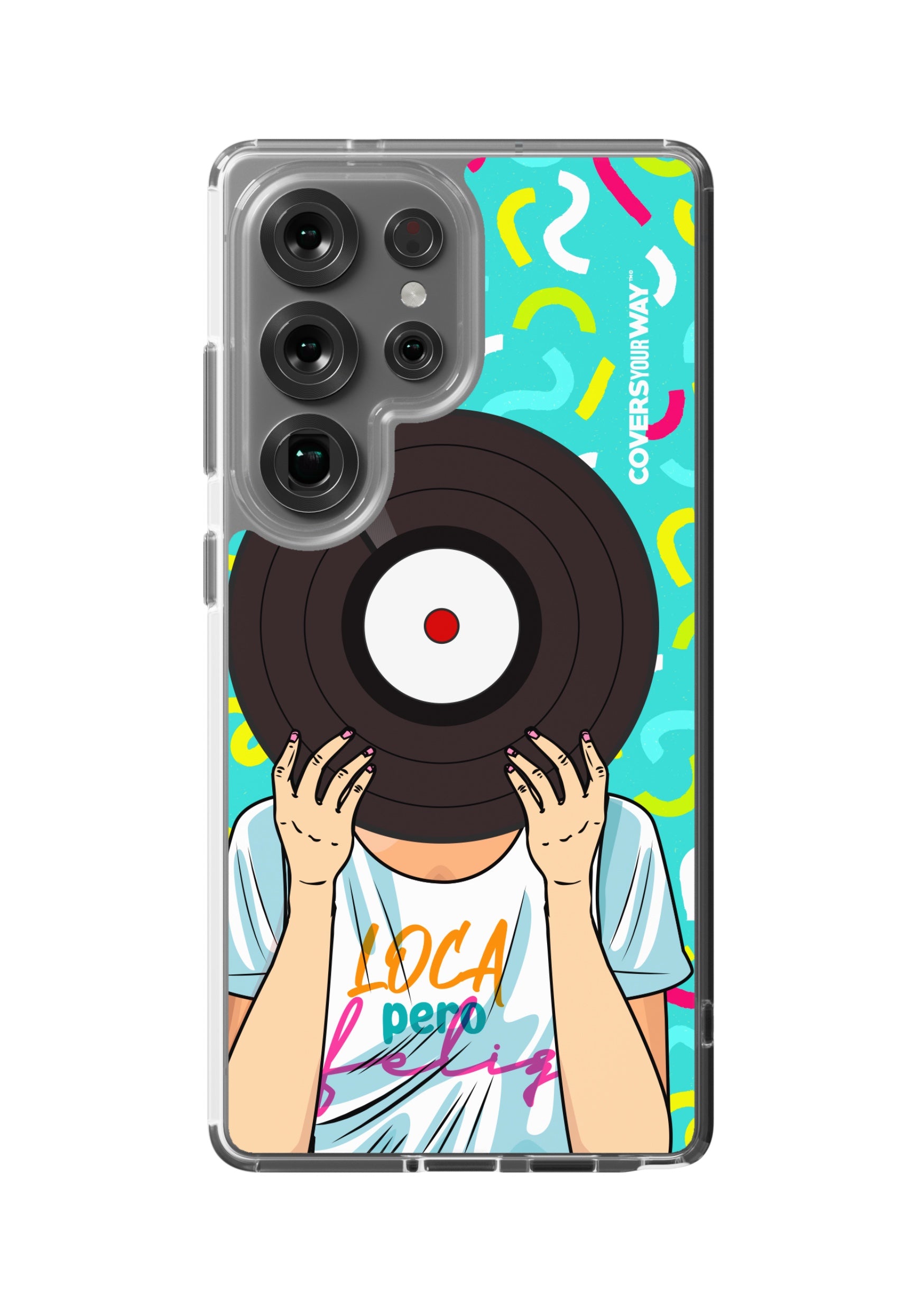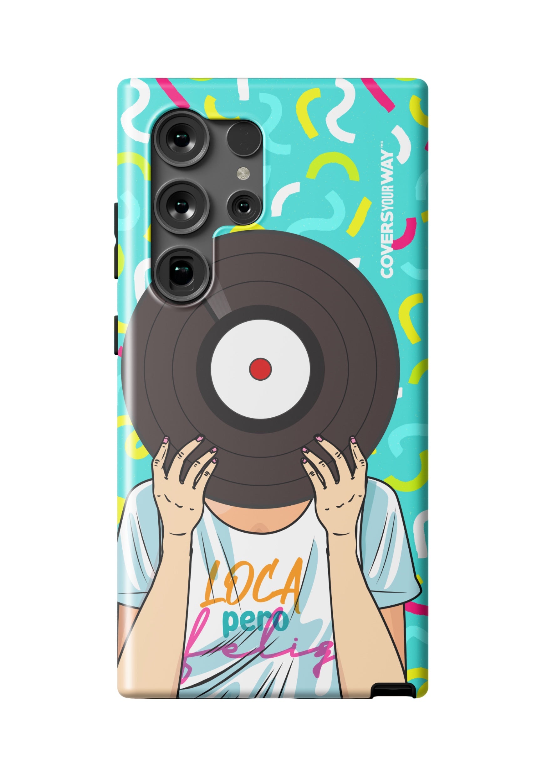 Exclusive phone case full of personality and vibrant style. It features the phrase "Loca pero feliz" in fun typography over a colorful, eye-catching background—perfect for those who live joyfully and unapologetically. Provides reliable protection against bumps and scratches.