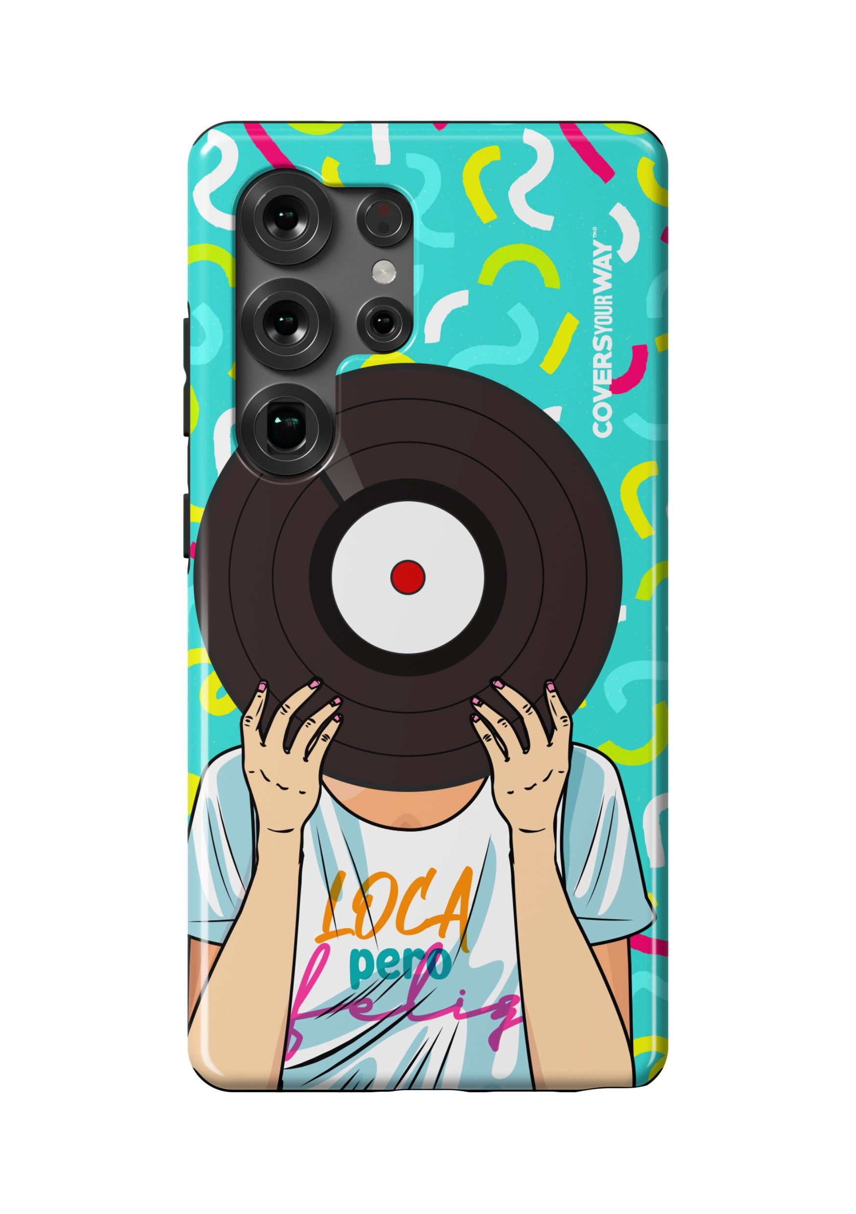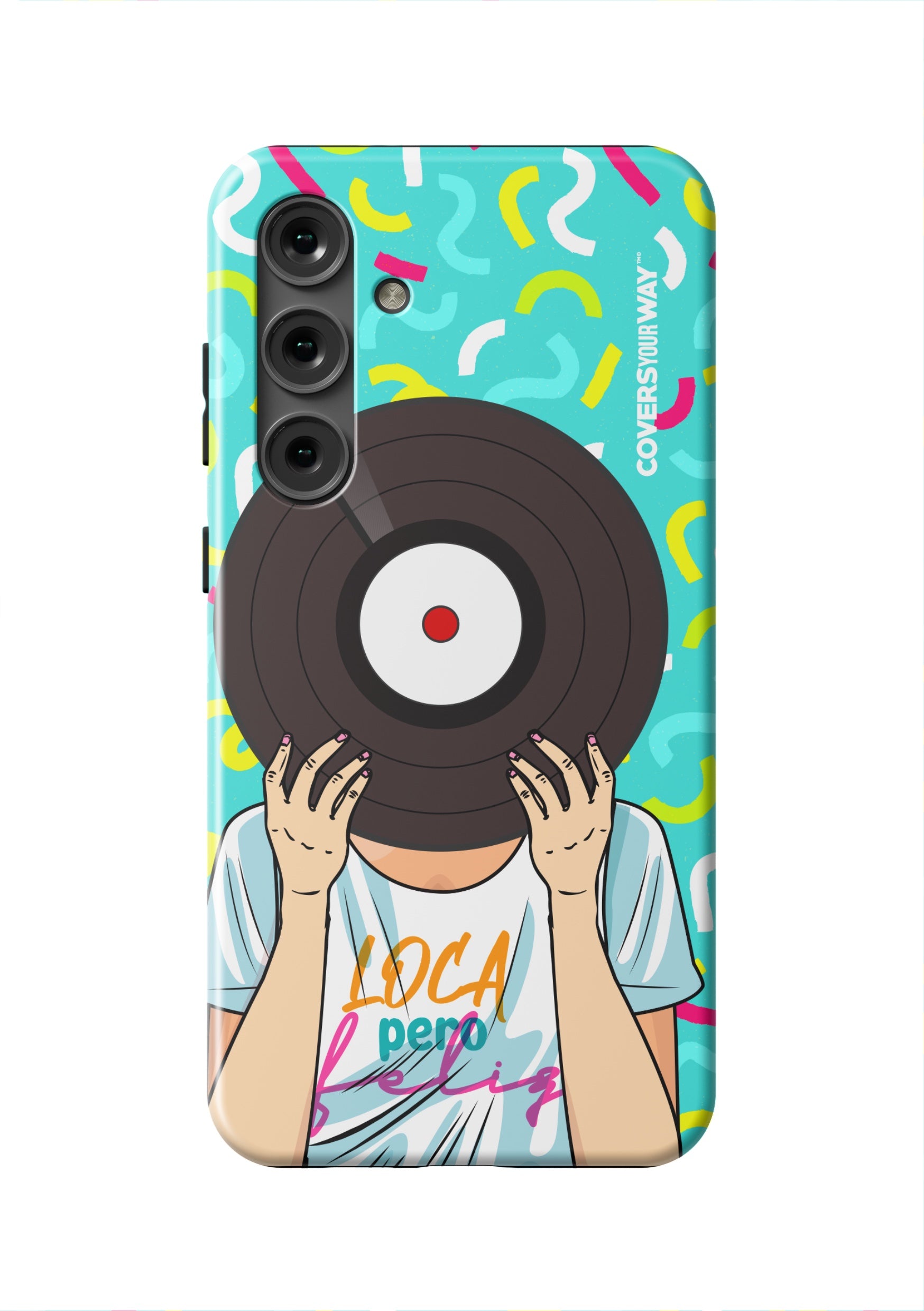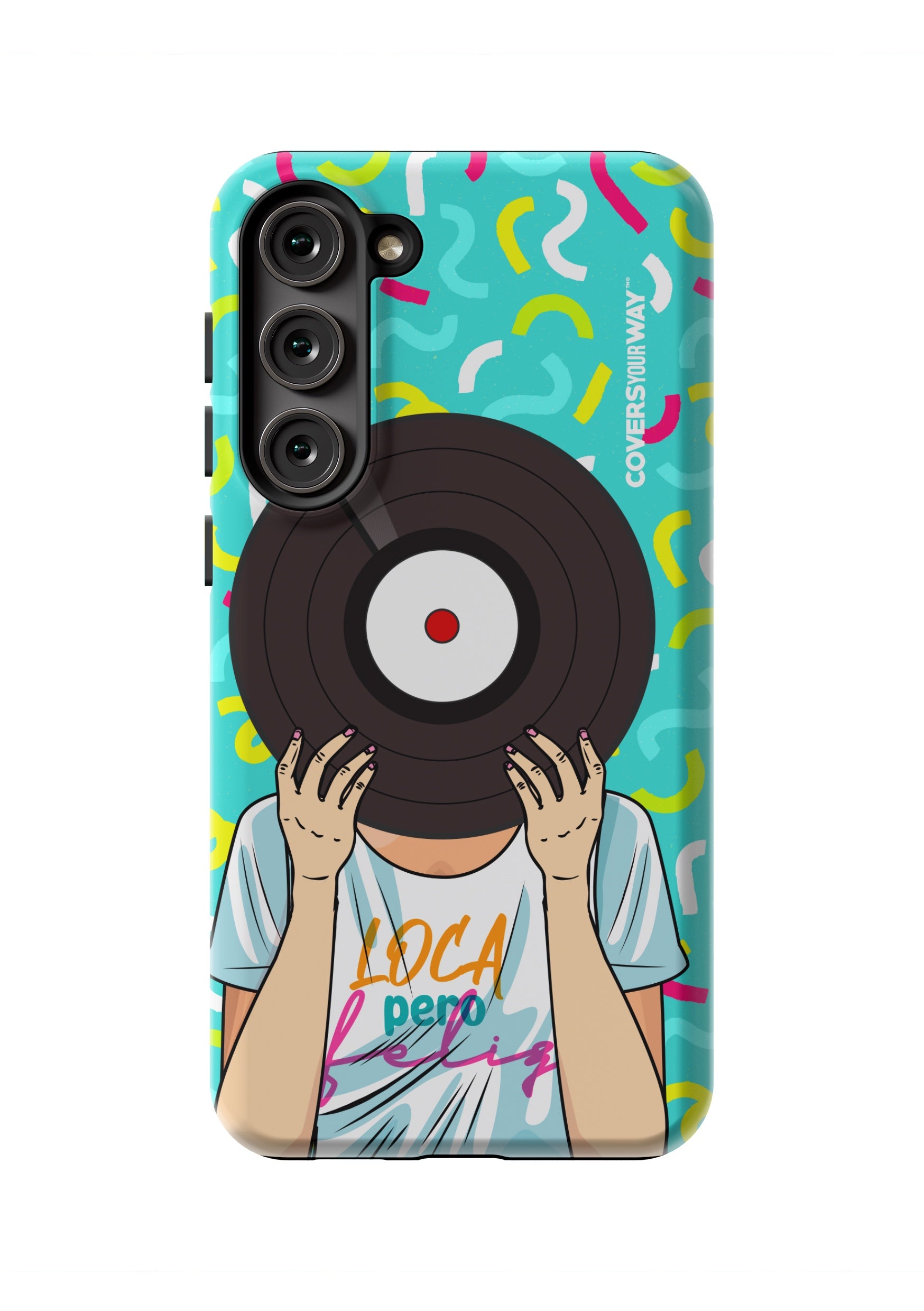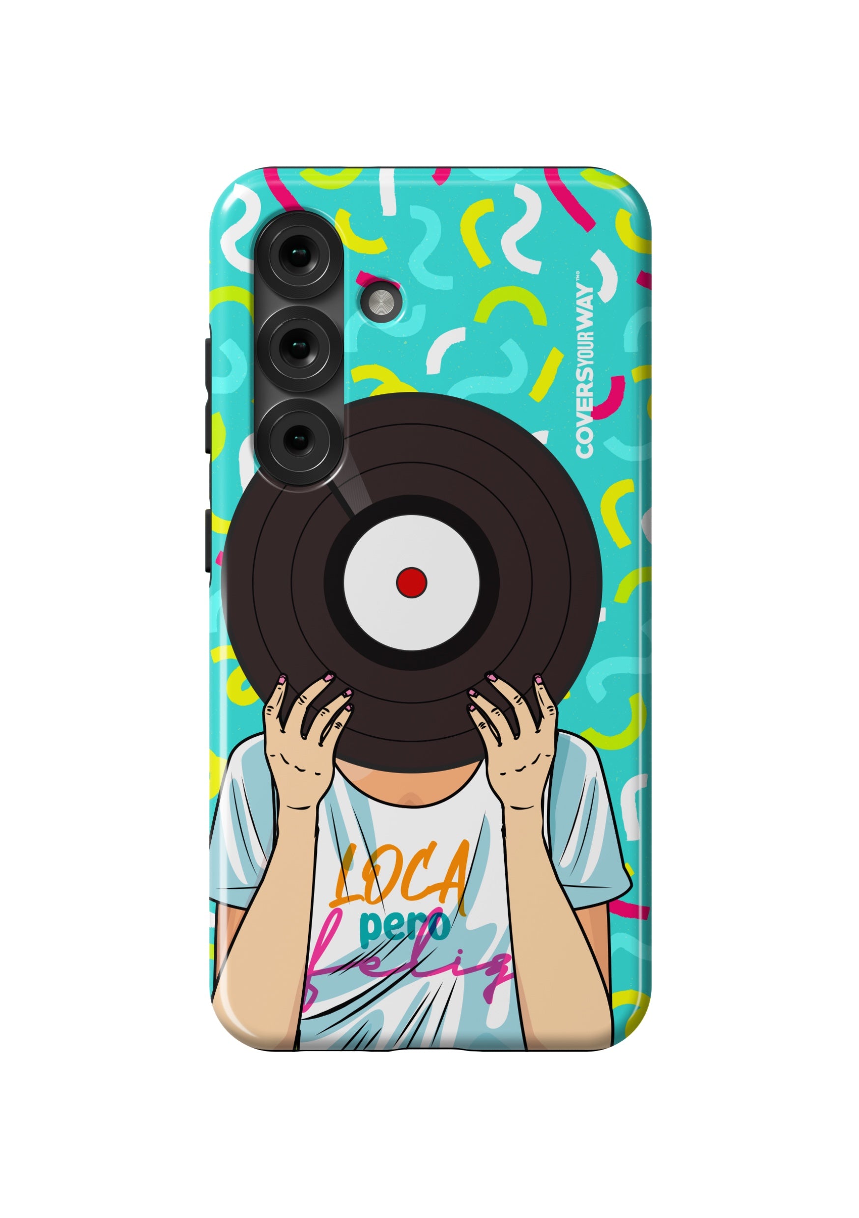 Exclusive phone case full of personality and vibrant style. It features the phrase "Loca pero feliz" in fun typography over a colorful, eye-catching background—perfect for those who live joyfully and unapologetically. Provides reliable protection against bumps and scratches.