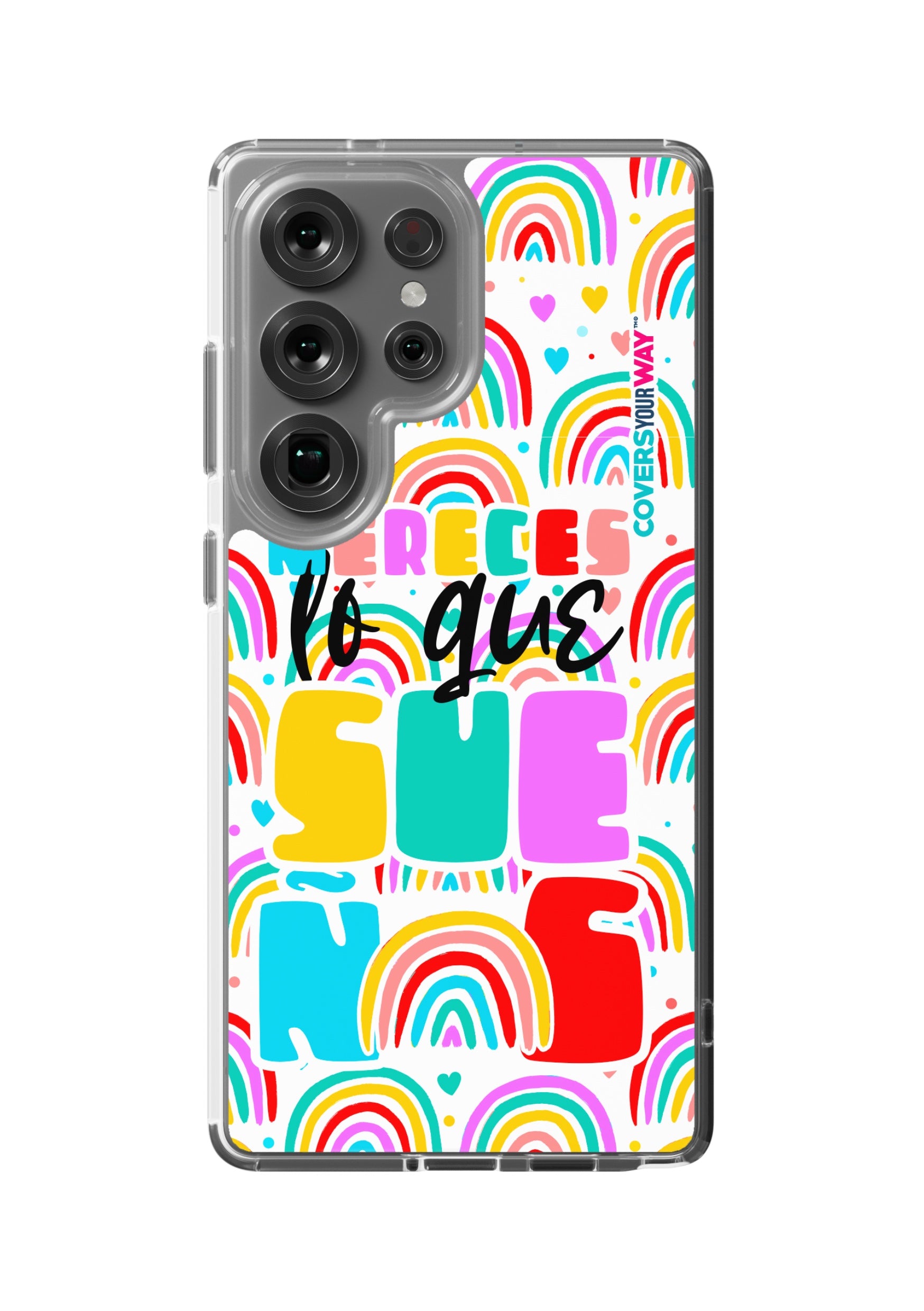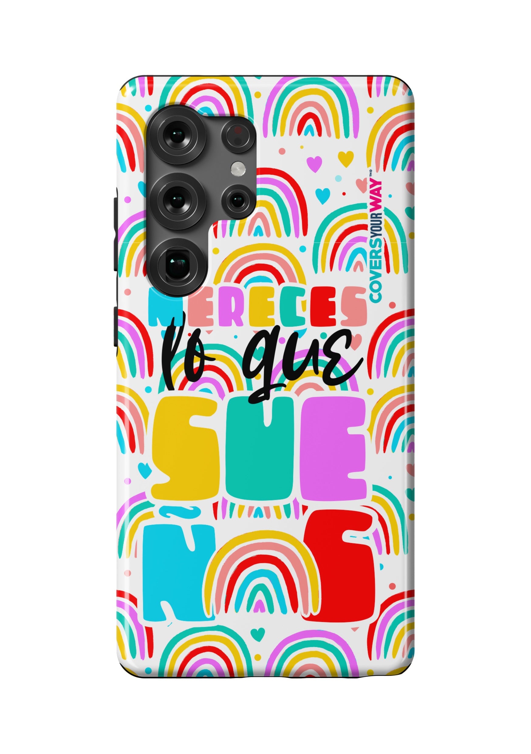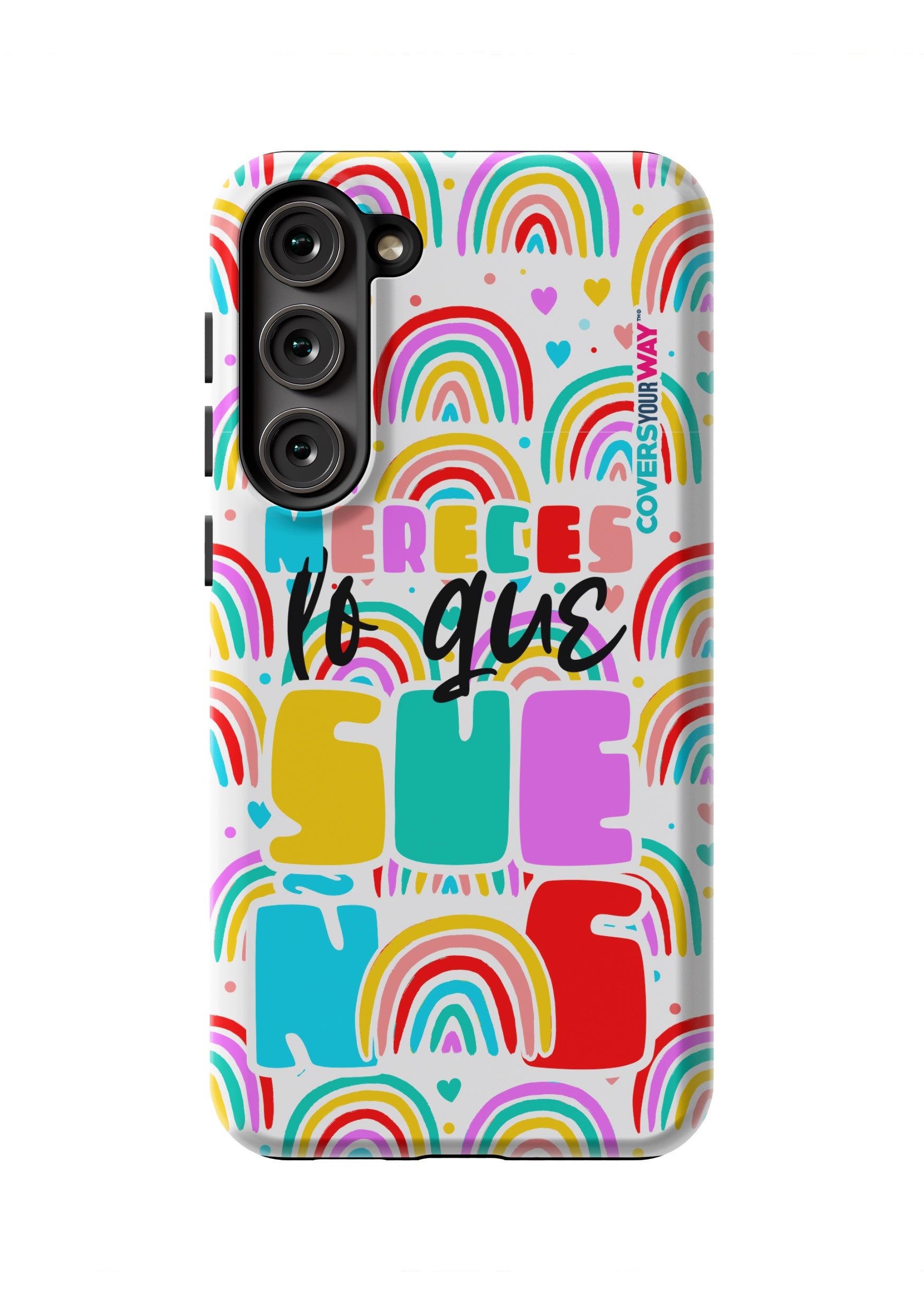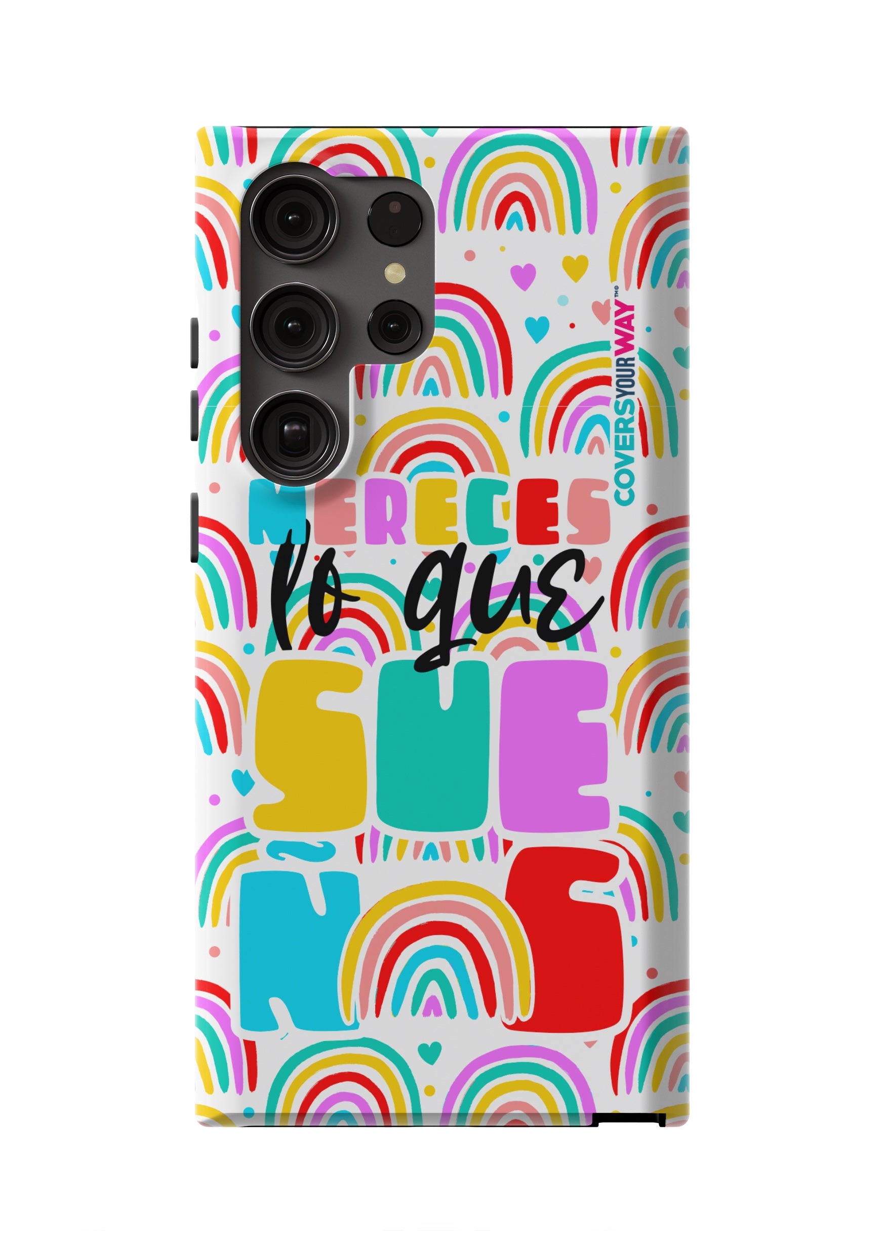 Protect your phone in style with this exclusive case that combines durability and inspiring design. Featuring the phrase “Mereces lo que sueñas”, it stands out with an colorful finish—perfect for those who believe in their goals and want to carry motivation everywhere.