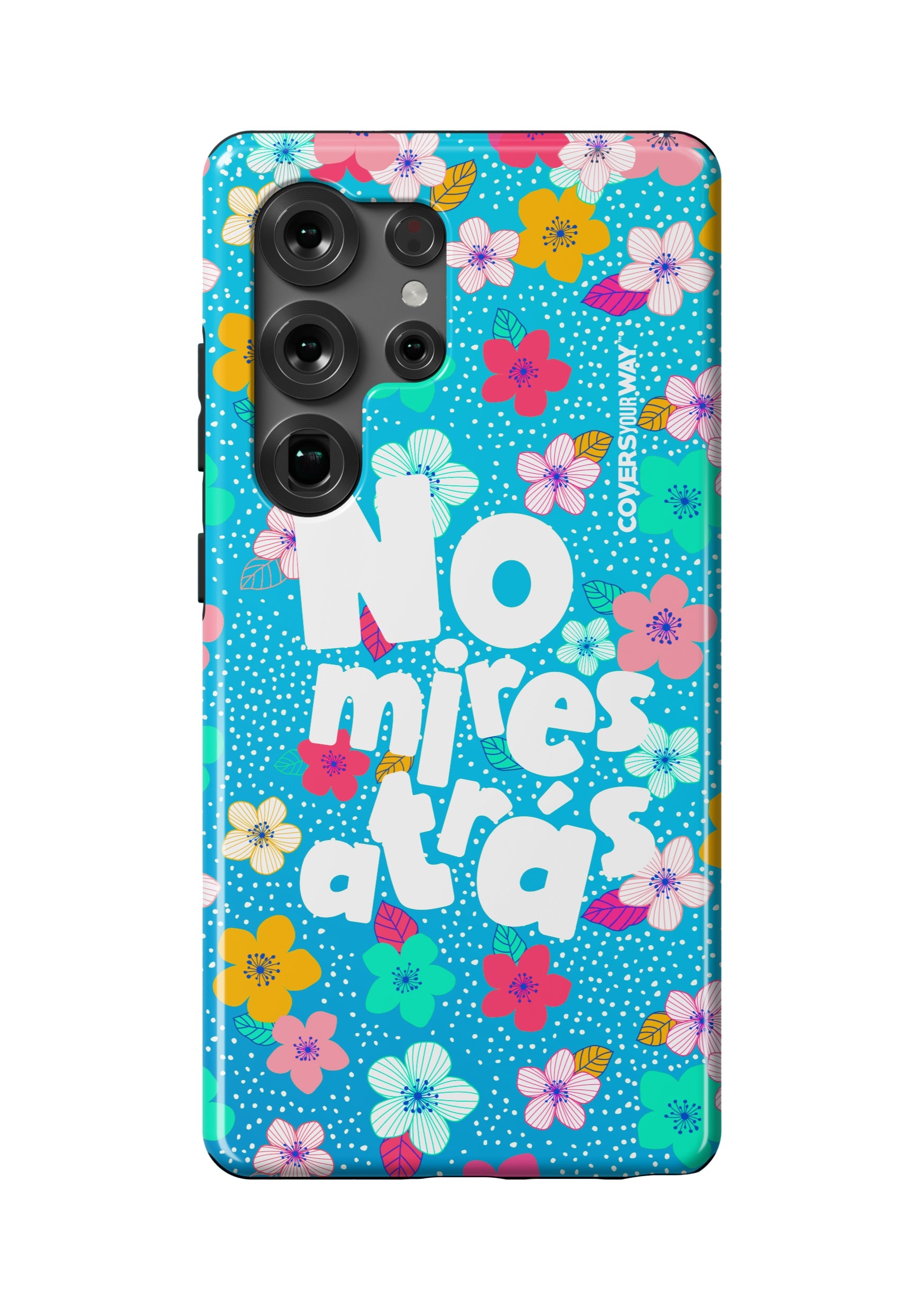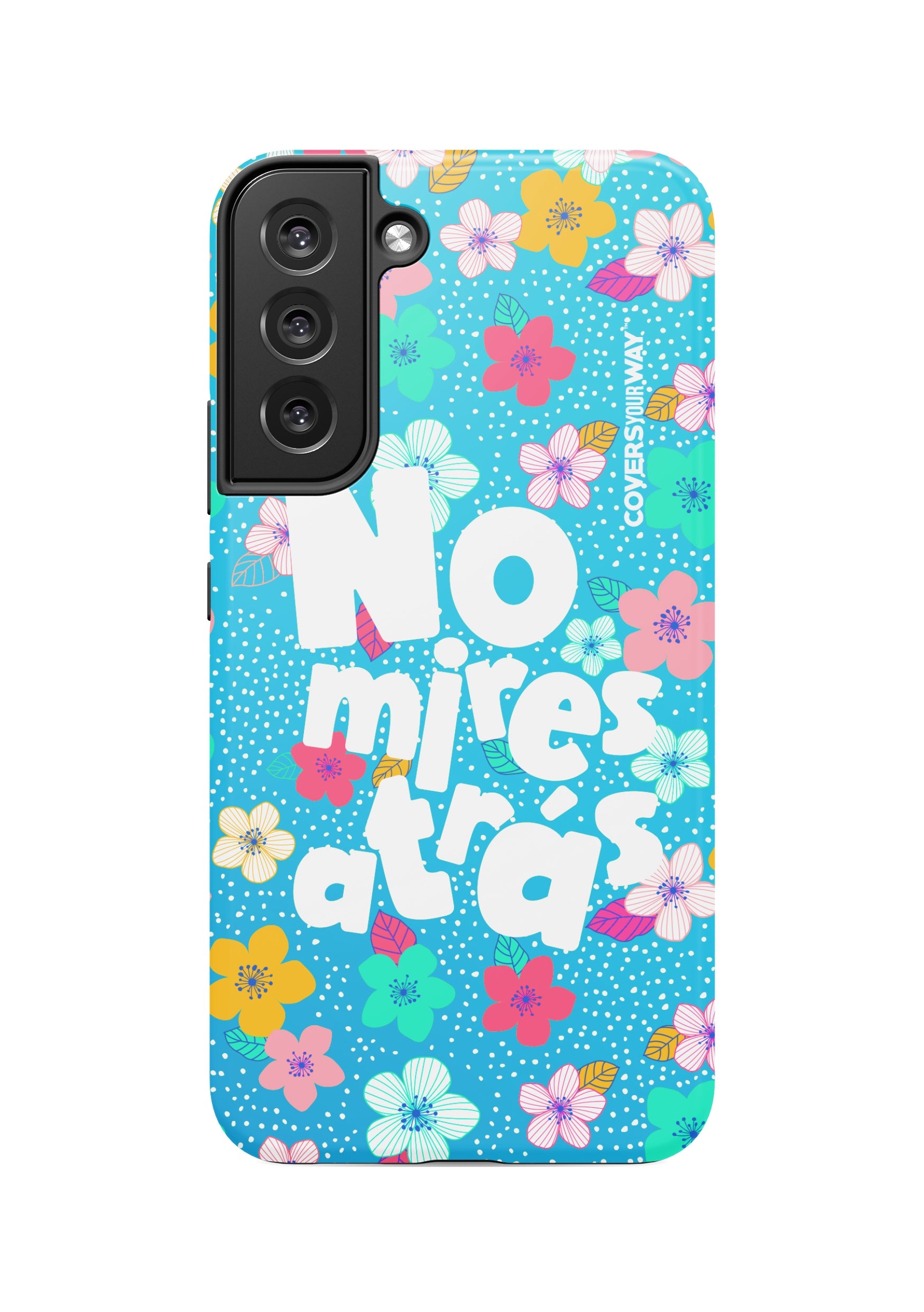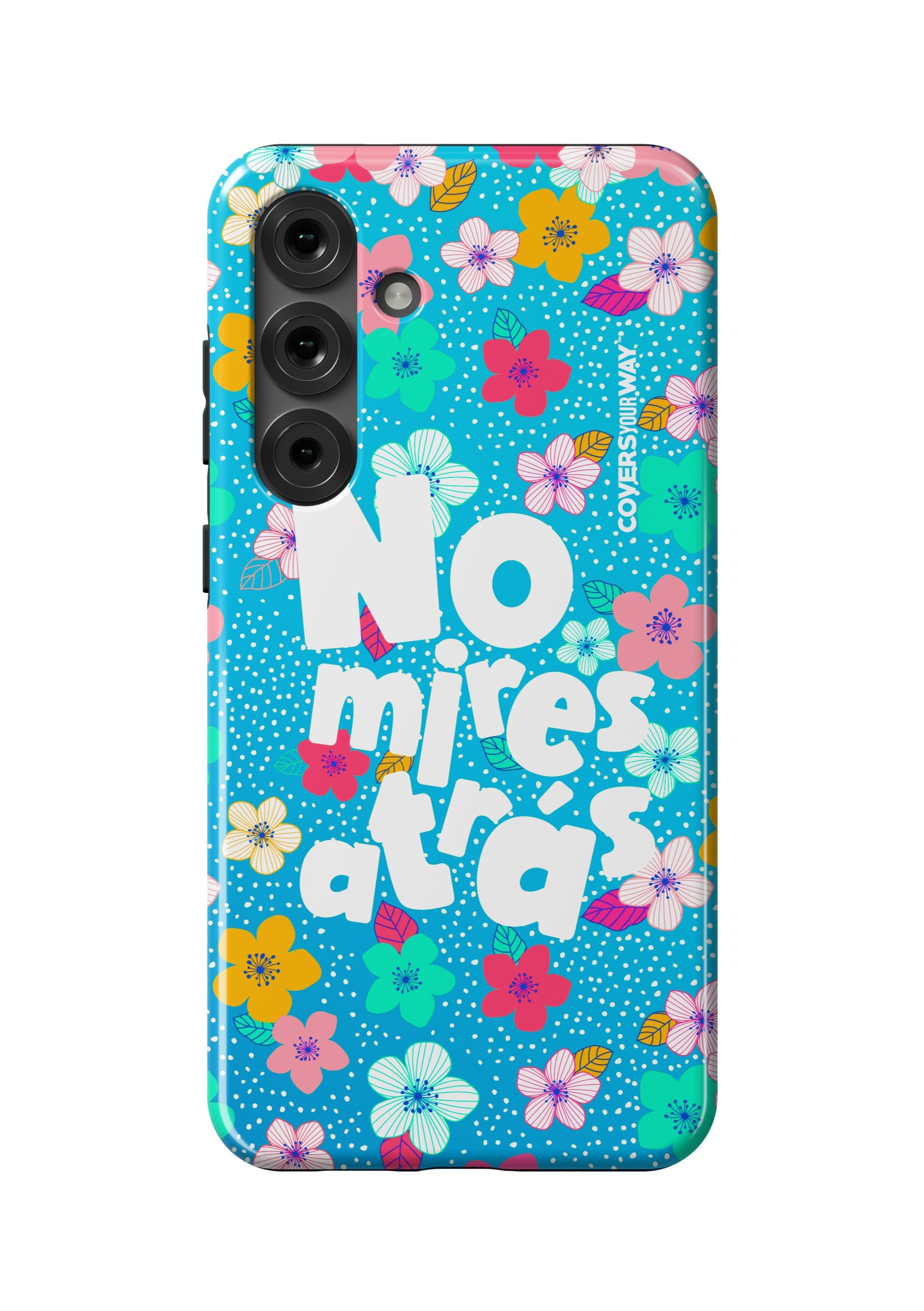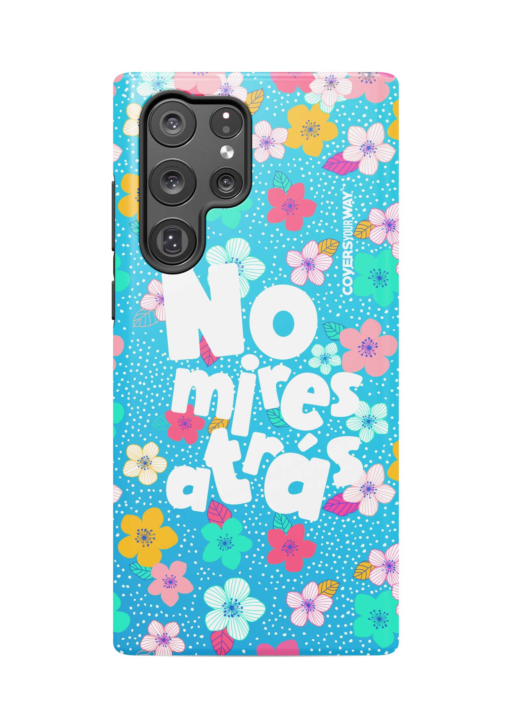 This phone case features an exclusive design with the phrase "No mires atrás" highlighted in bold, stylish lettering, centered over a colorful background. Made from durable materials, it combines style and motivation for those who choose to always look toward the future.