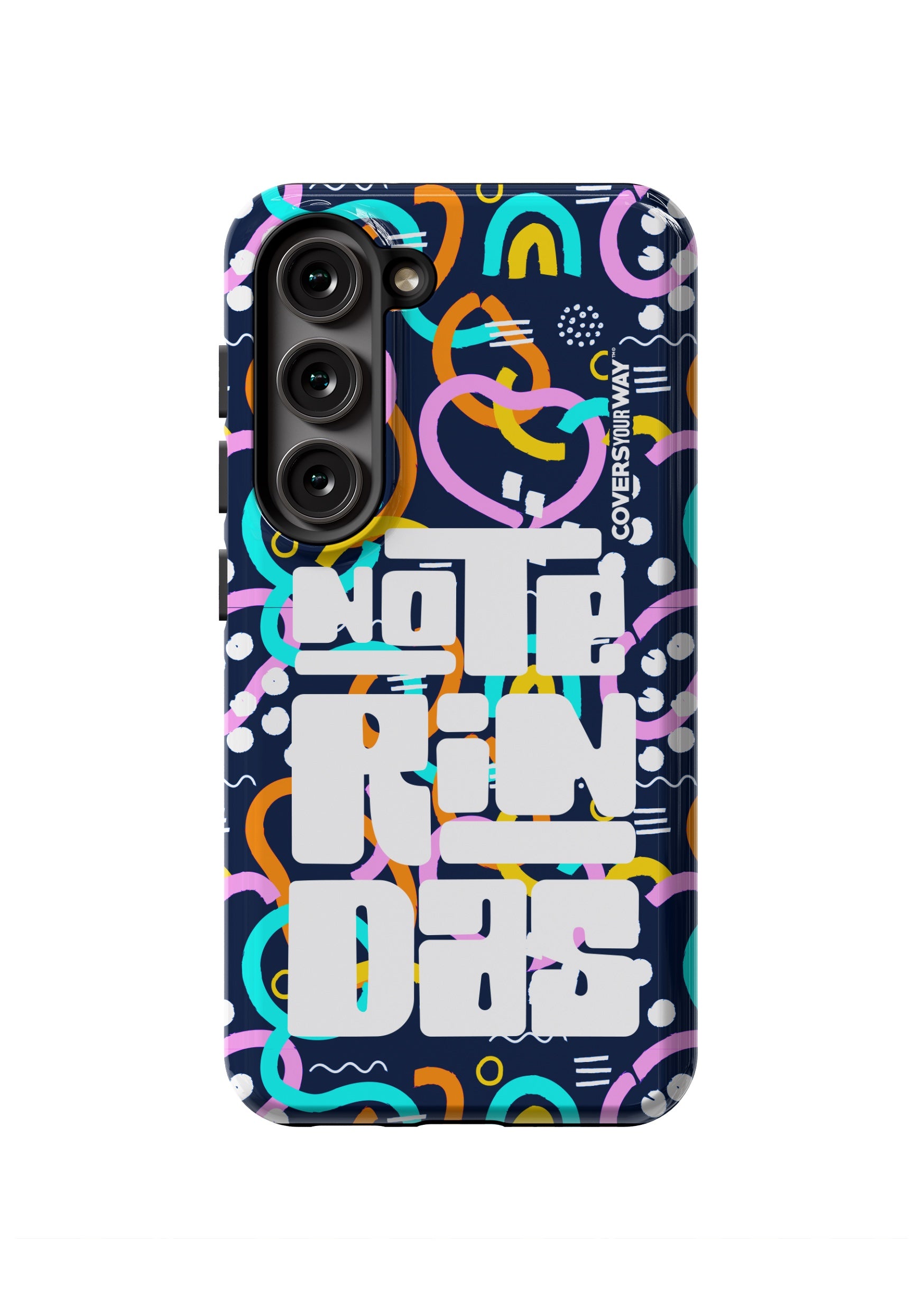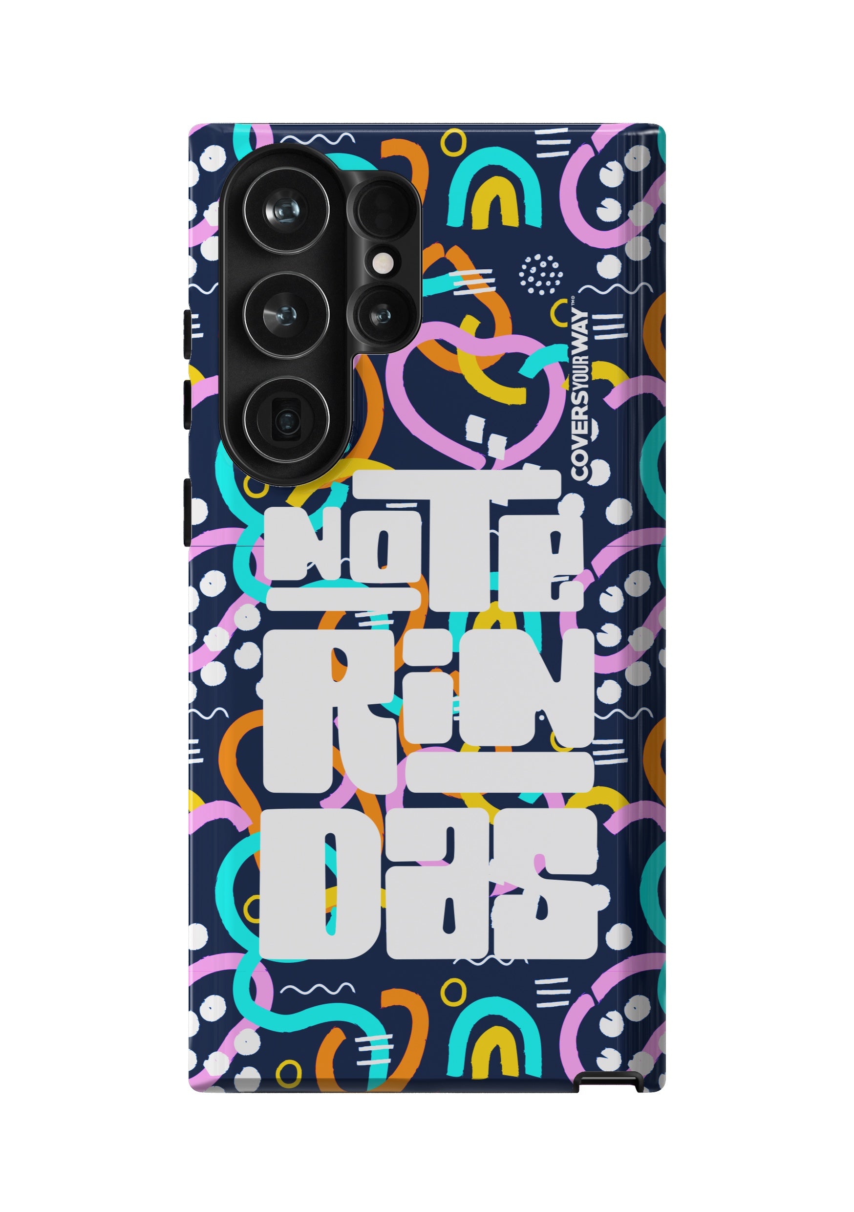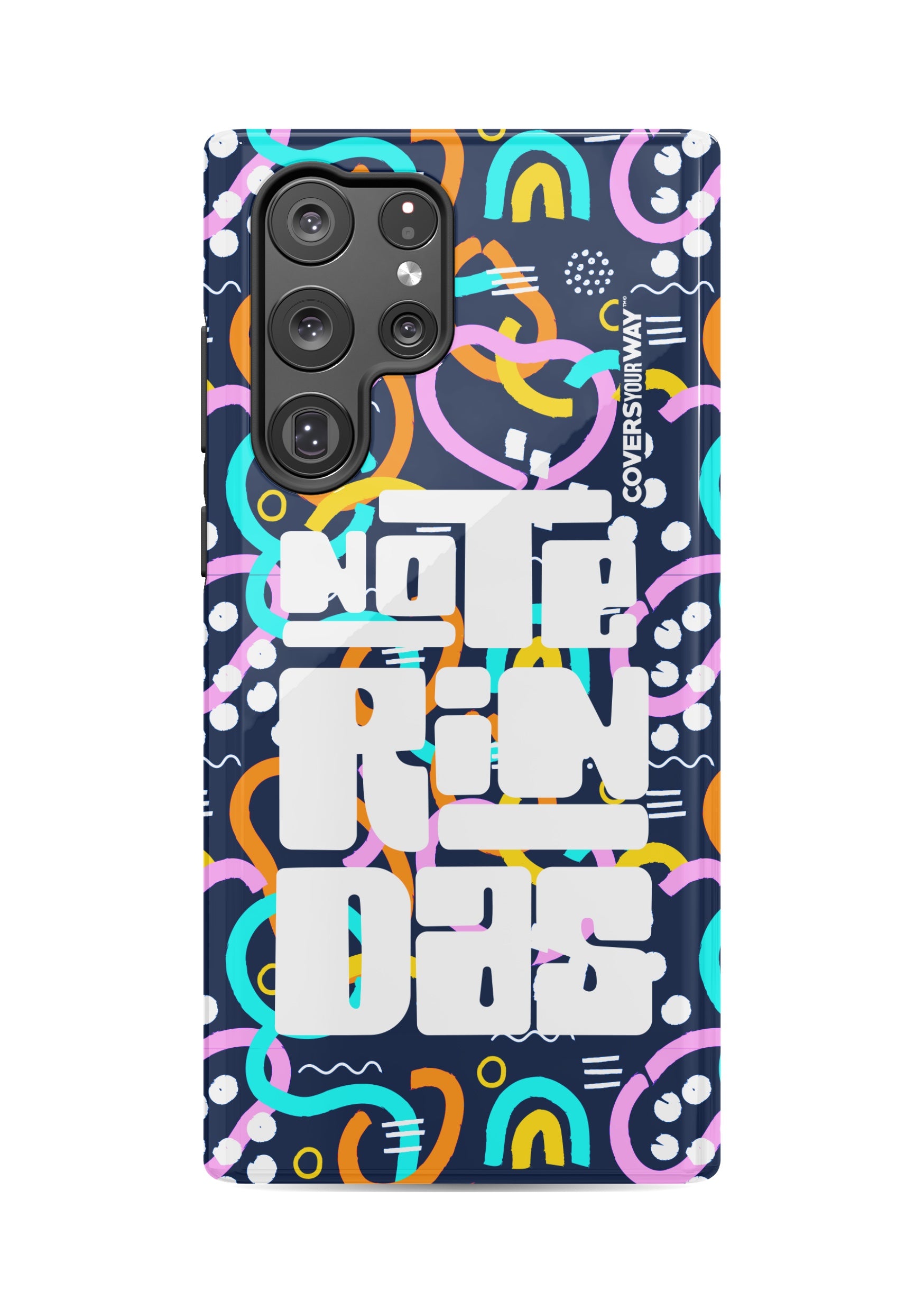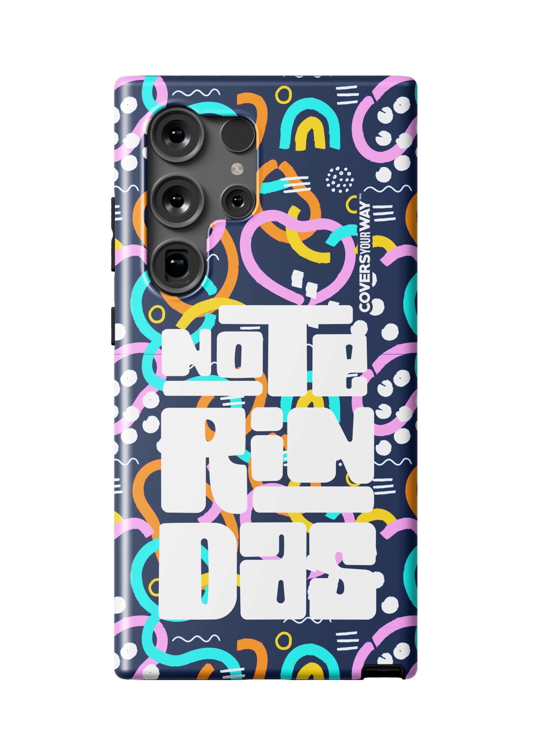 This phone case features an exclusive and powerful design with the phrase "No te RINDAS" prominently displayed at the center. The typography combines bold uppercase letters with an energetic style, conveying determination and strength. The background includes vibrant color accents that highlight the message of perseverance. It's perfect for those seeking daily motivation and a constant reminder to never give up.