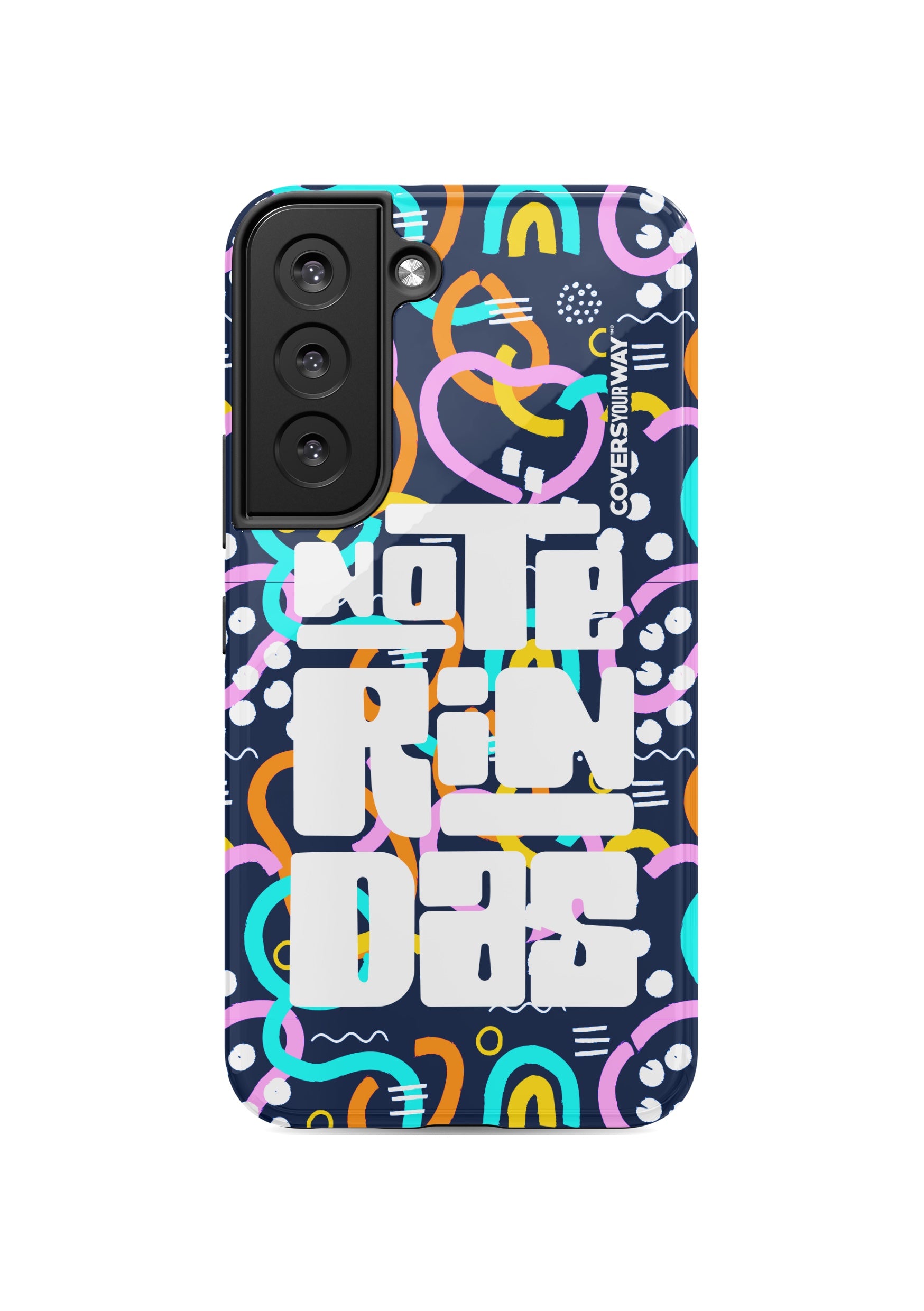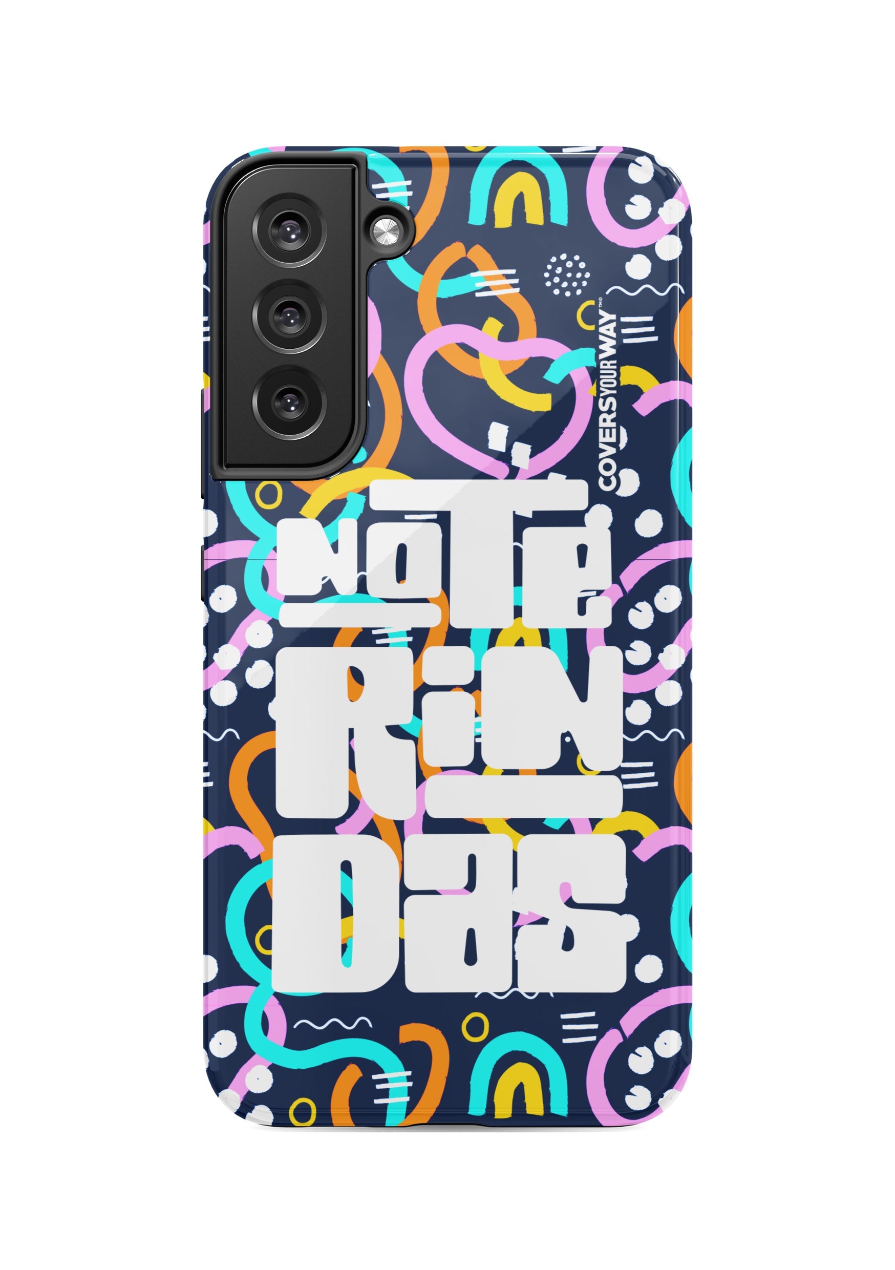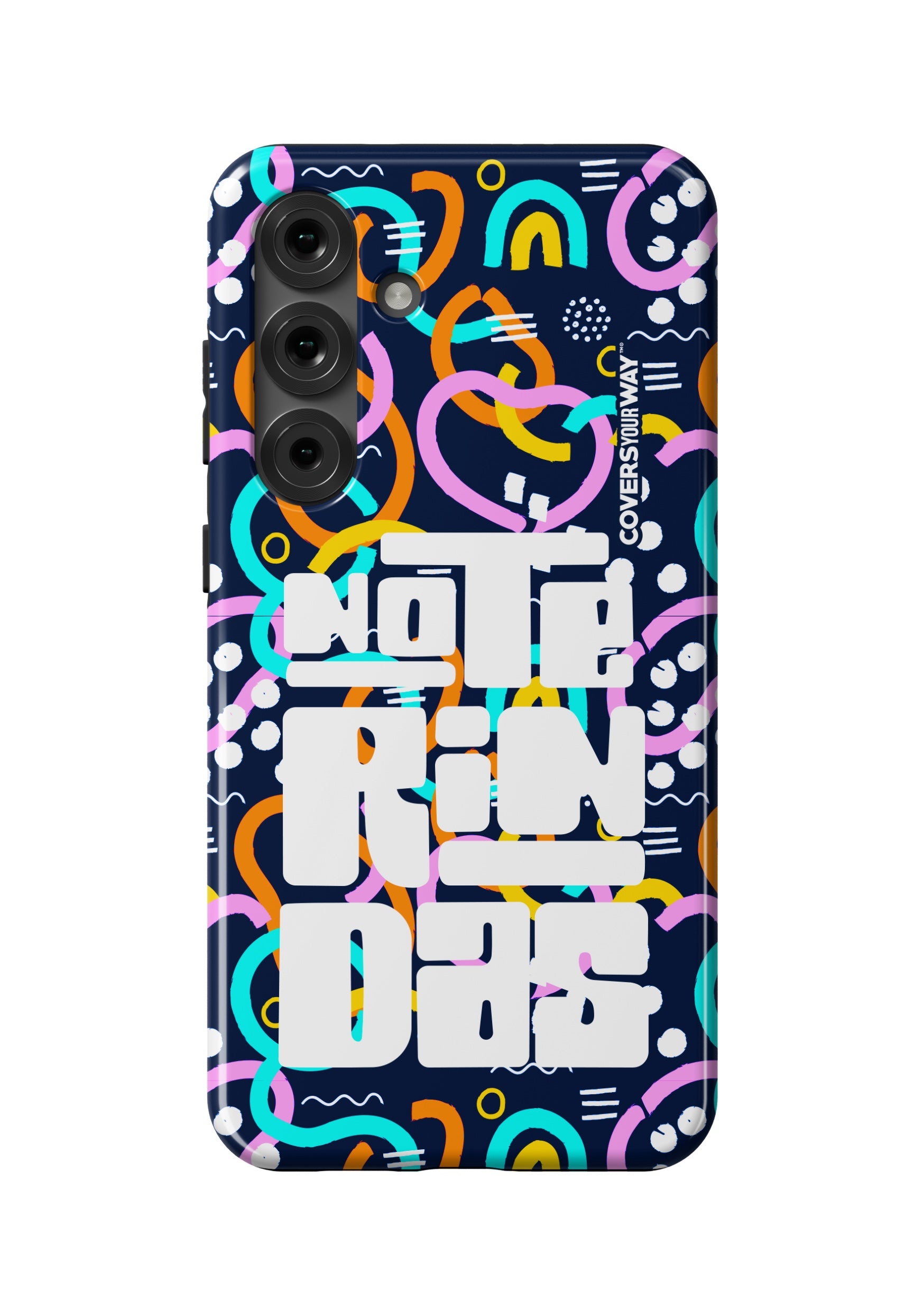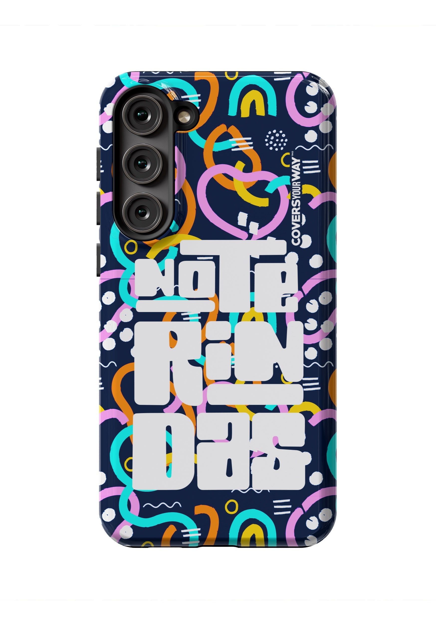 This phone case features an exclusive and powerful design with the phrase "No te RINDAS" prominently displayed at the center. The typography combines bold uppercase letters with an energetic style, conveying determination and strength. The background includes vibrant color accents that highlight the message of perseverance. It's perfect for those seeking daily motivation and a constant reminder to never give up.