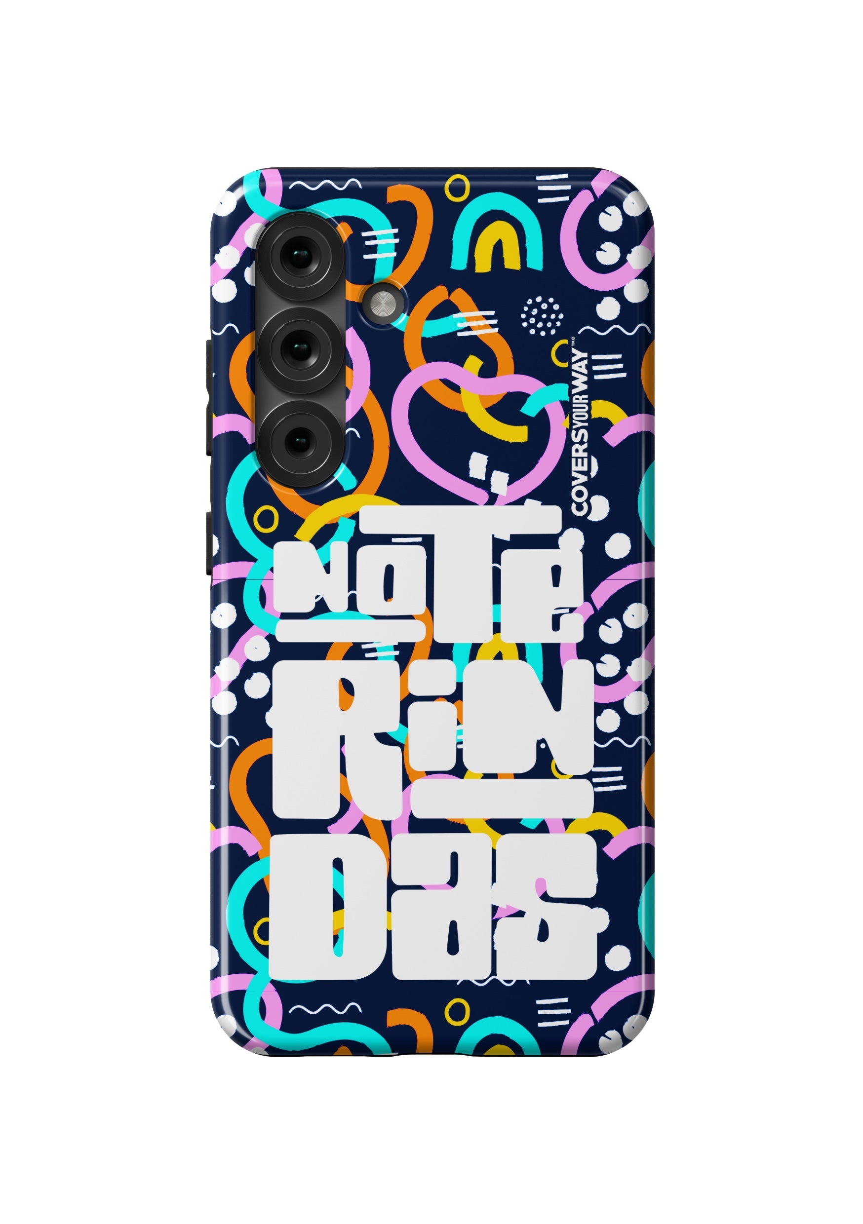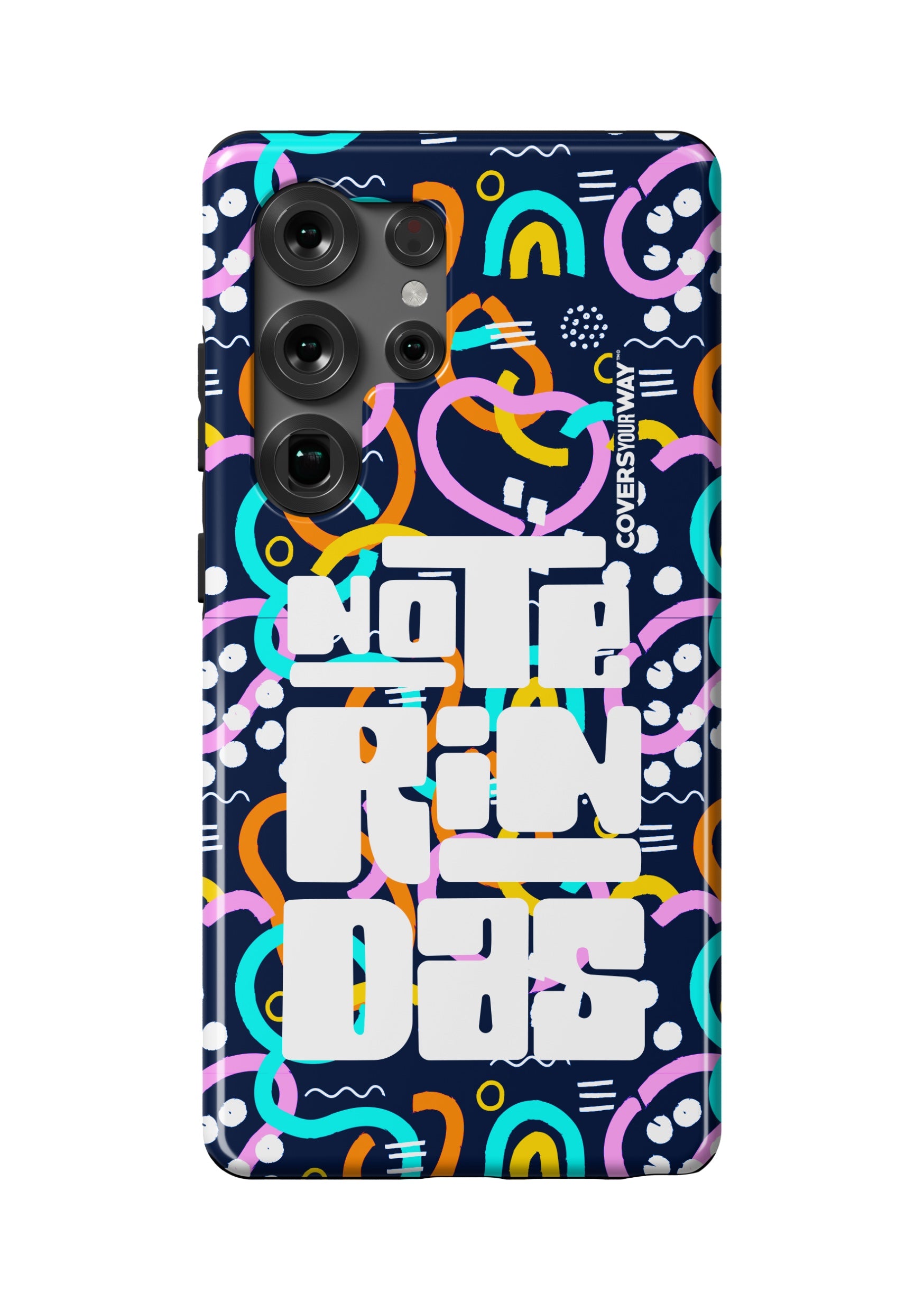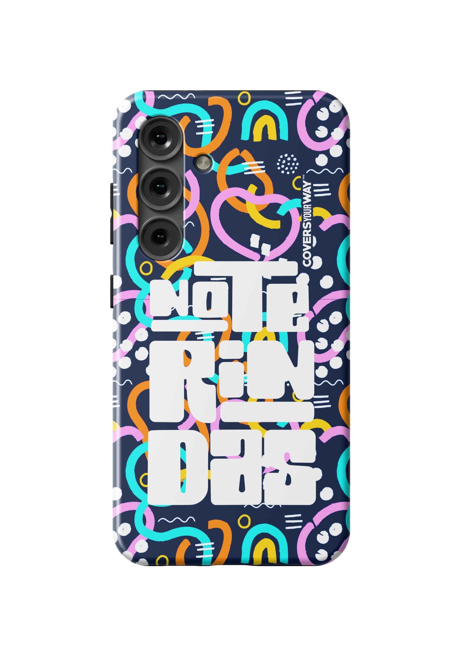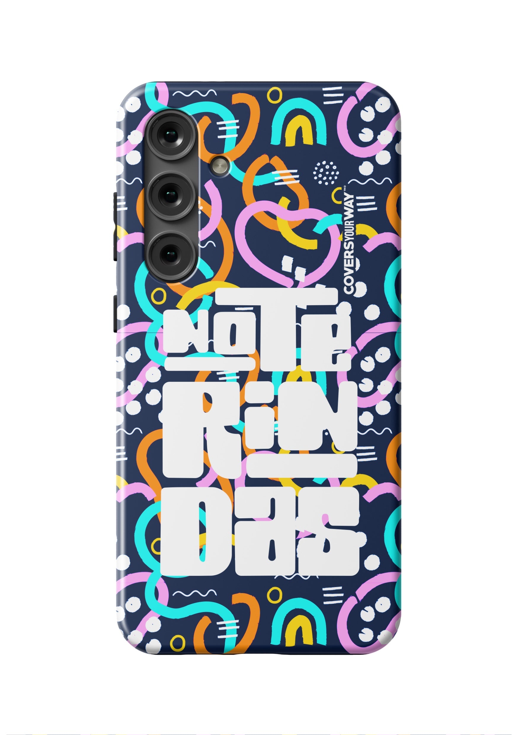 This phone case features an exclusive and powerful design with the phrase "No te RINDAS" prominently displayed at the center. The typography combines bold uppercase letters with an energetic style, conveying determination and strength. The background includes vibrant color accents that highlight the message of perseverance. It's perfect for those seeking daily motivation and a constant reminder to never give up.