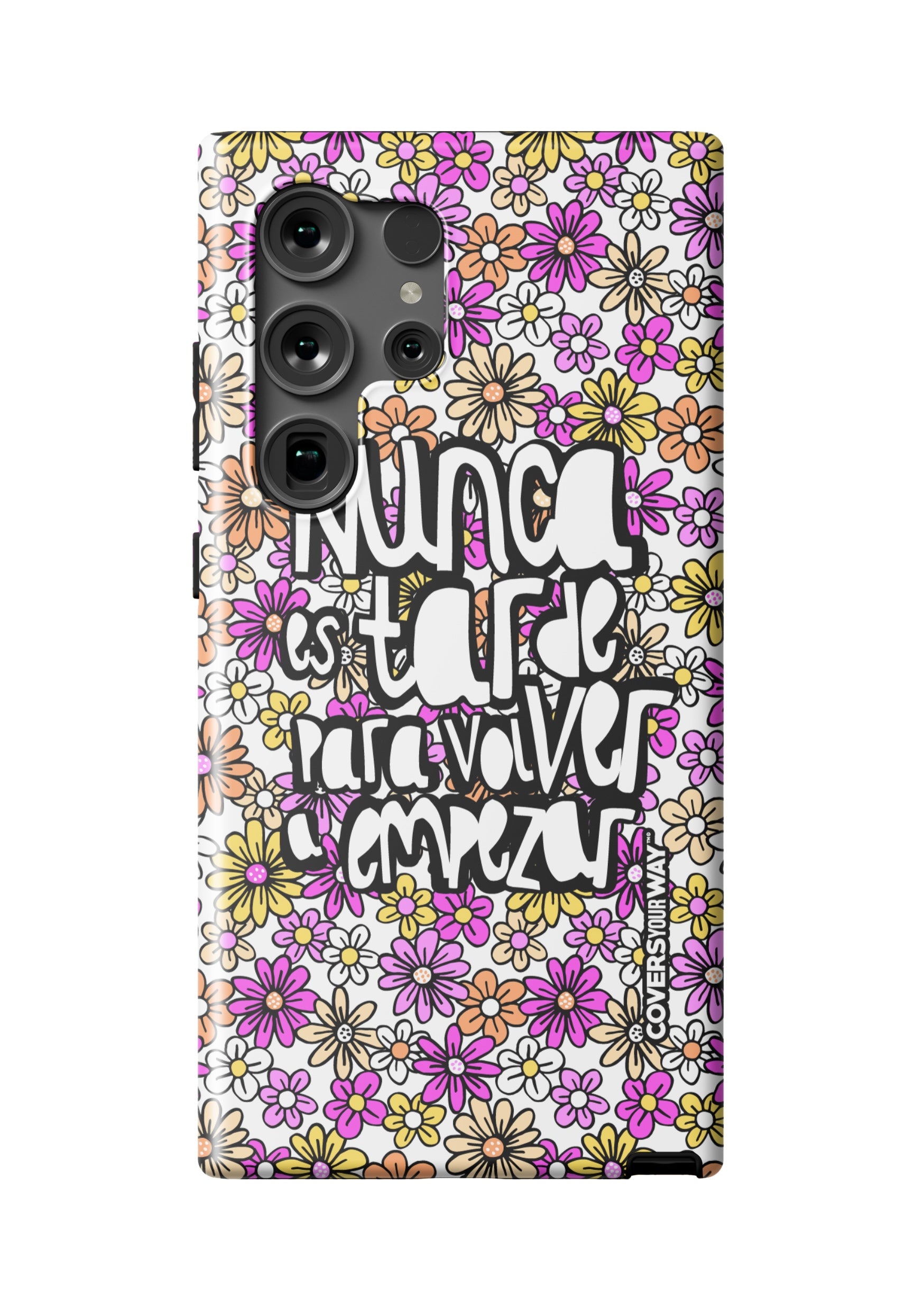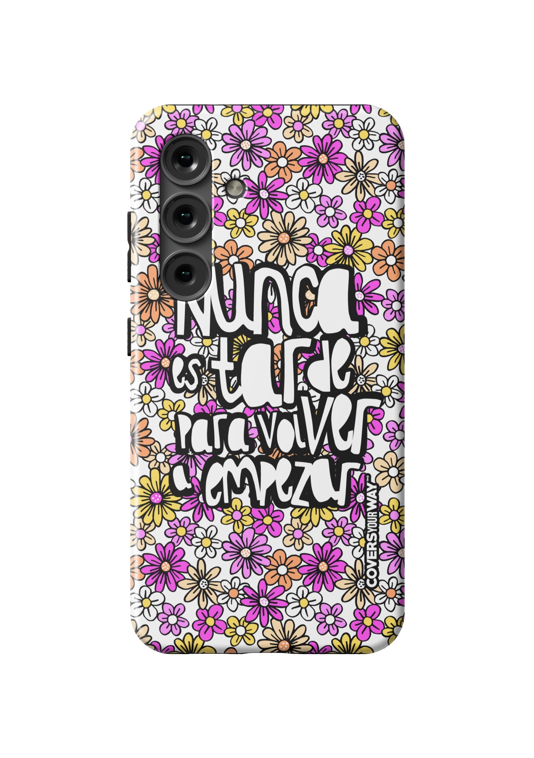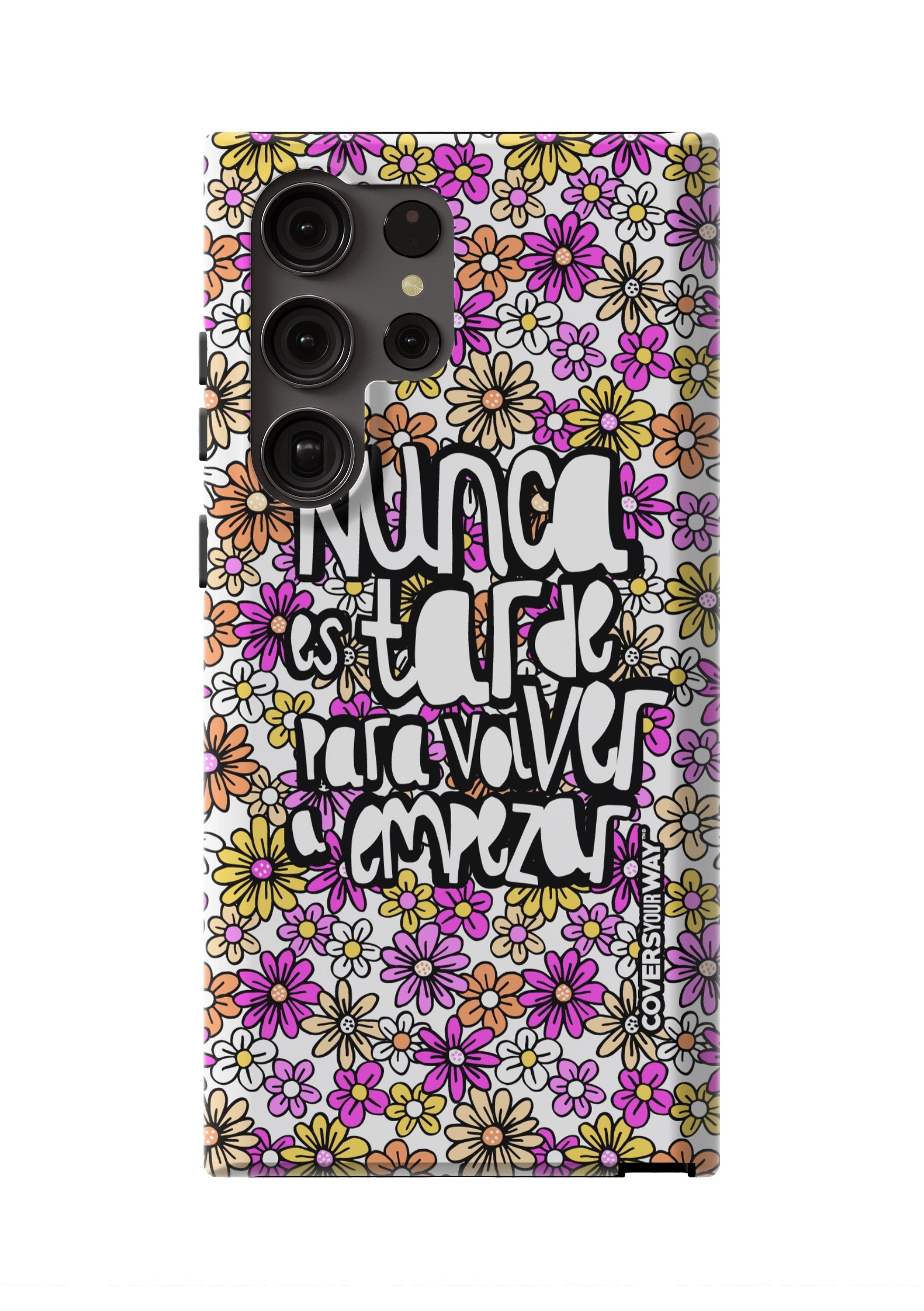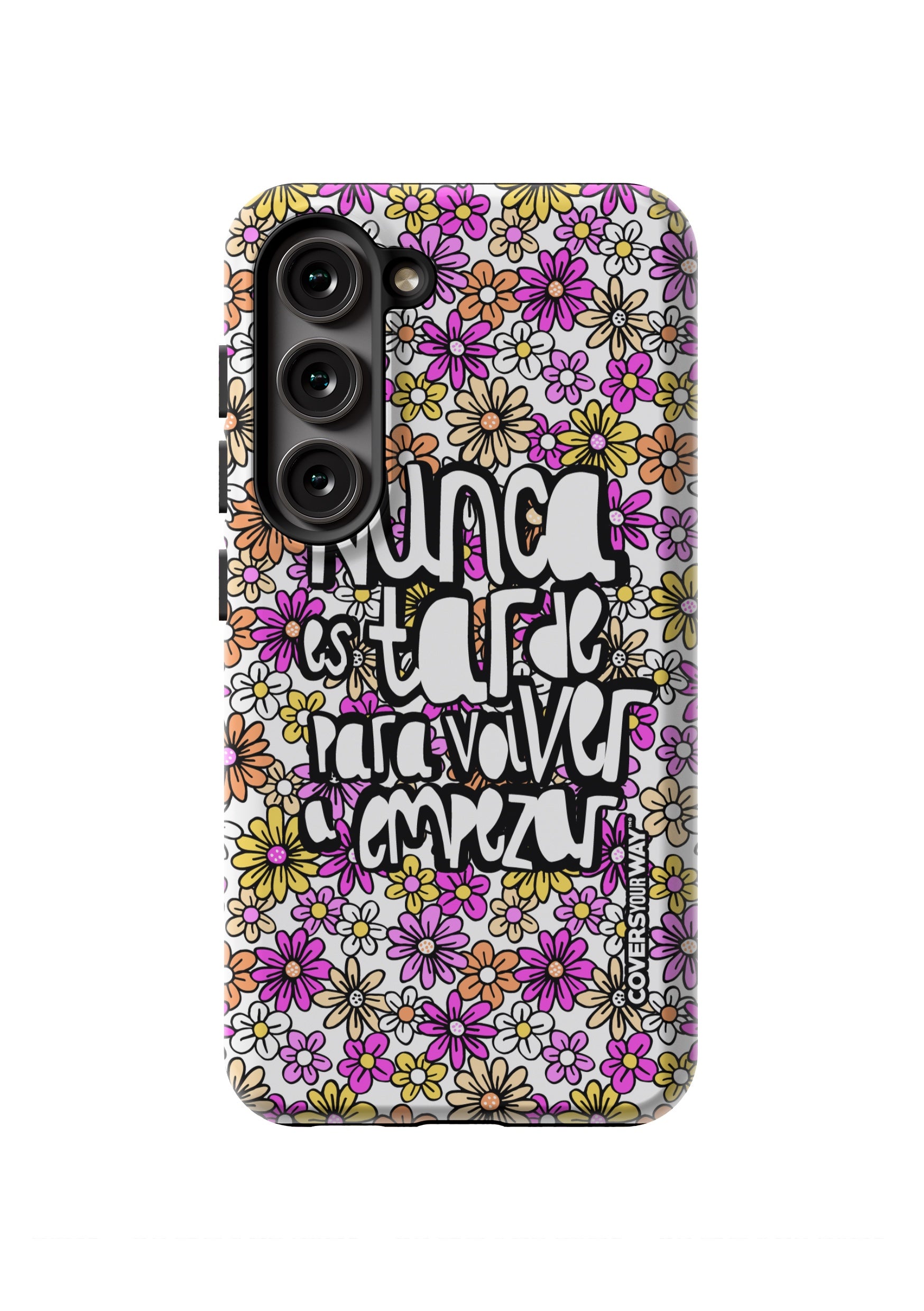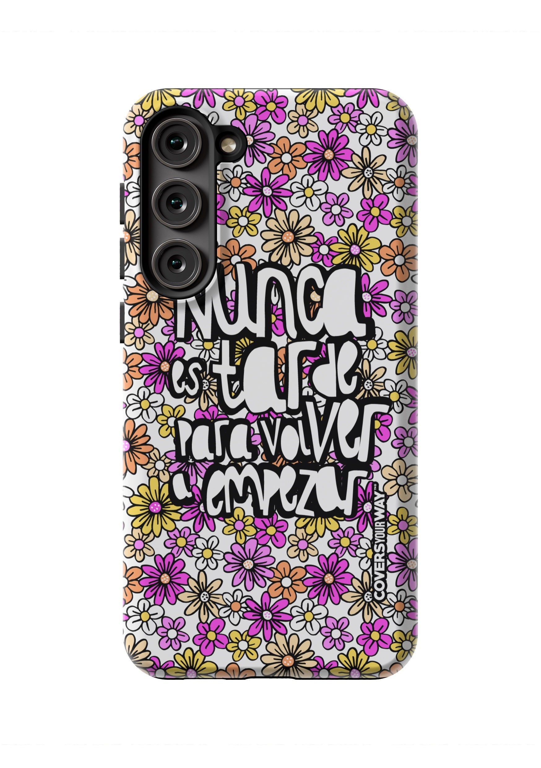 Refresh your style and energy with this durable phone case, designed with the phrase "Nunca Es Tarde Para Volver a Empezar". It protects your device from bumps and scratches while sharing a message of hope, second chances, and new beginnings.