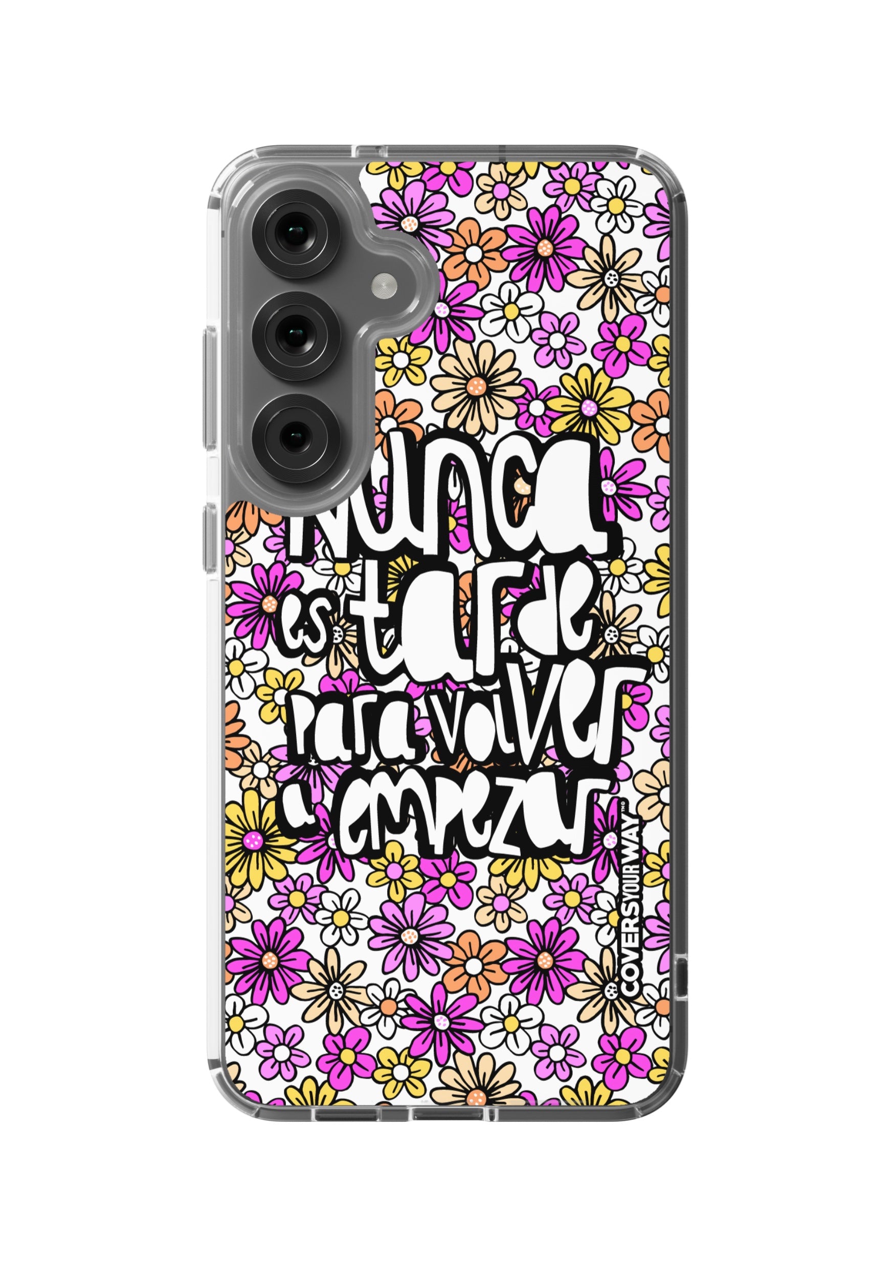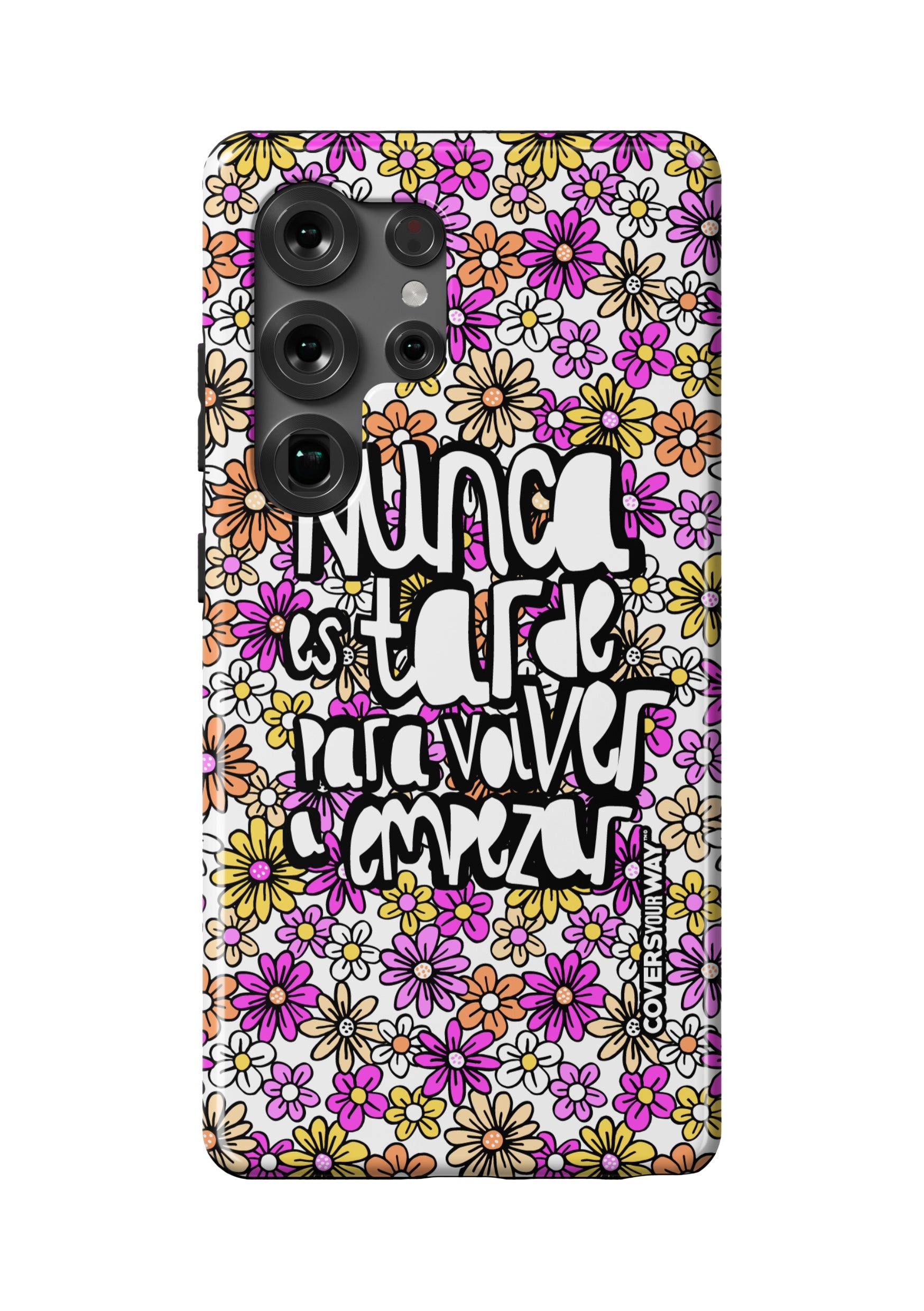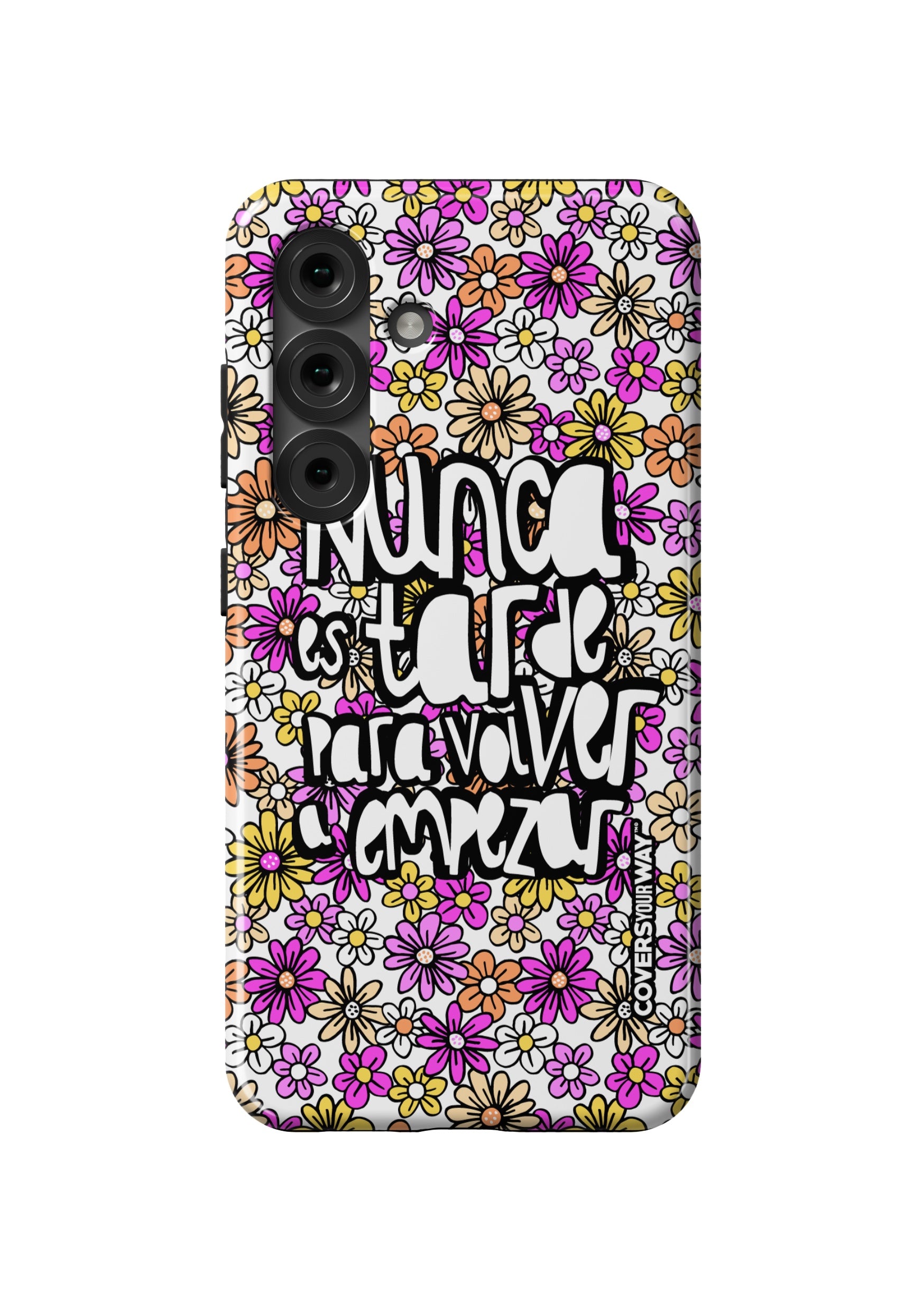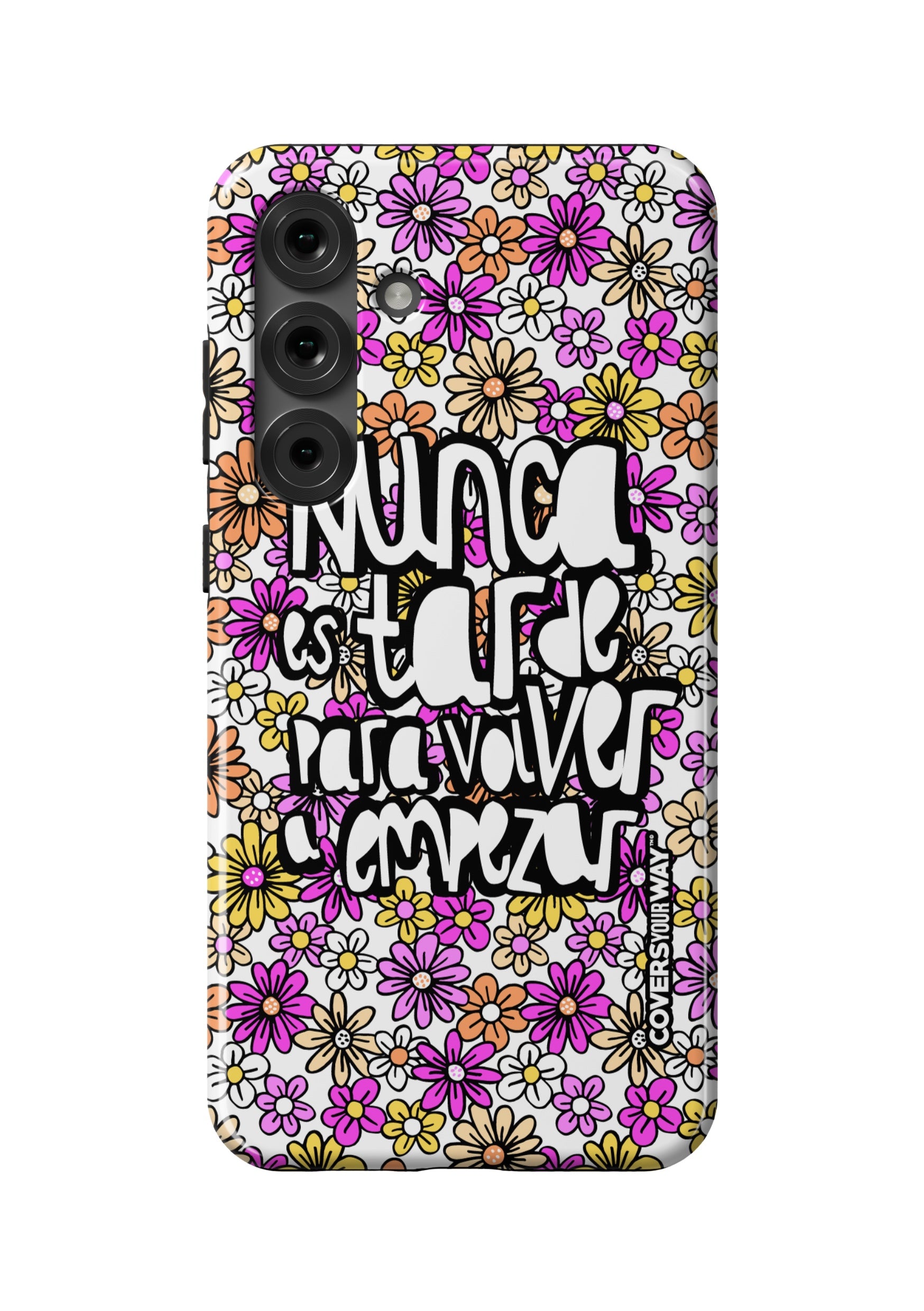 Refresh your style and energy with this durable phone case, designed with the phrase "Nunca Es Tarde Para Volver a Empezar". It protects your device from bumps and scratches while sharing a message of hope, second chances, and new beginnings.