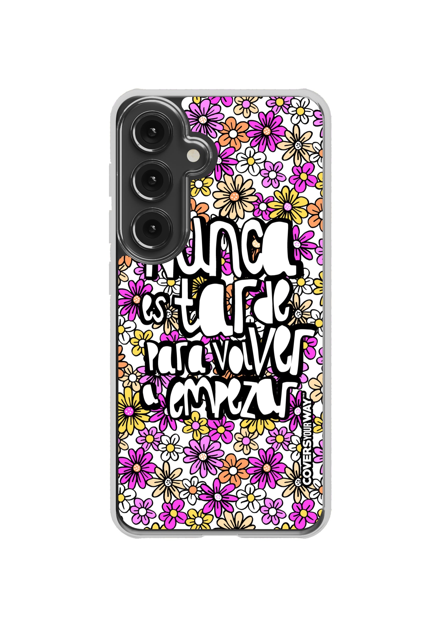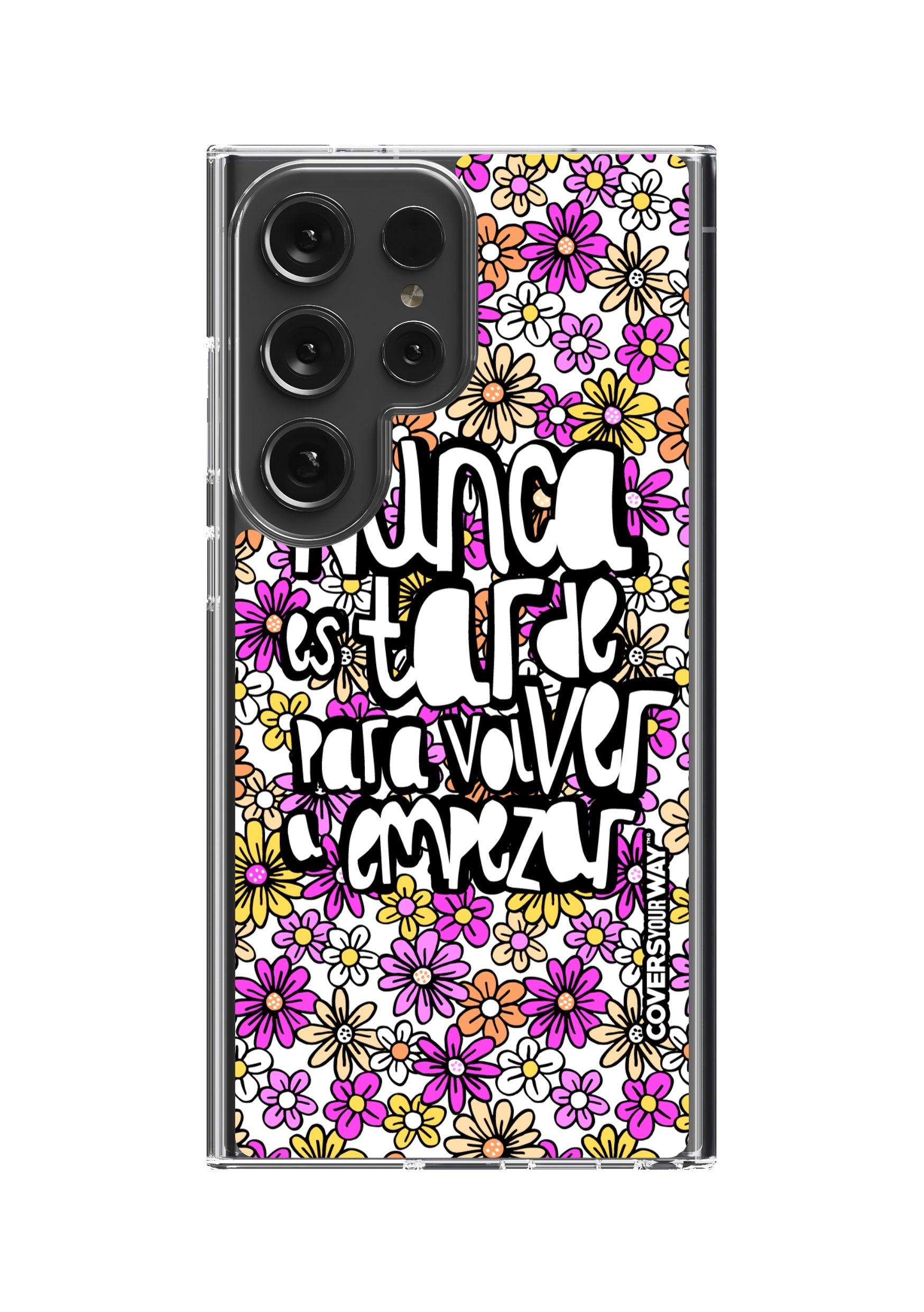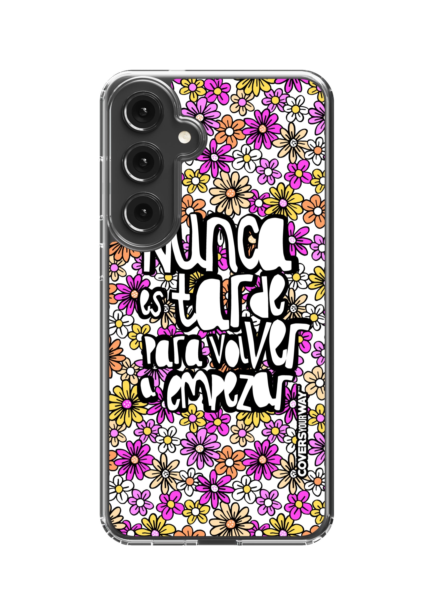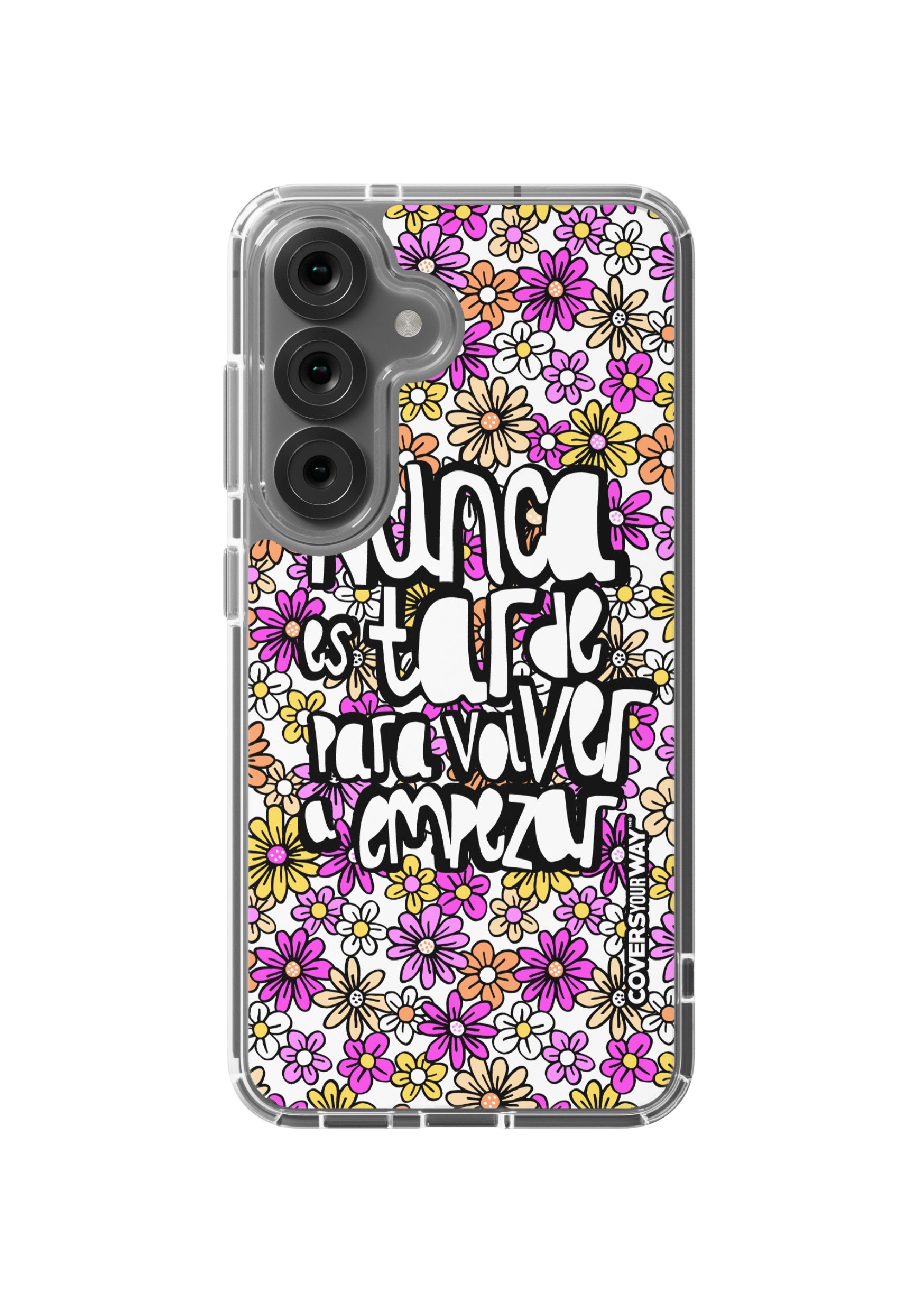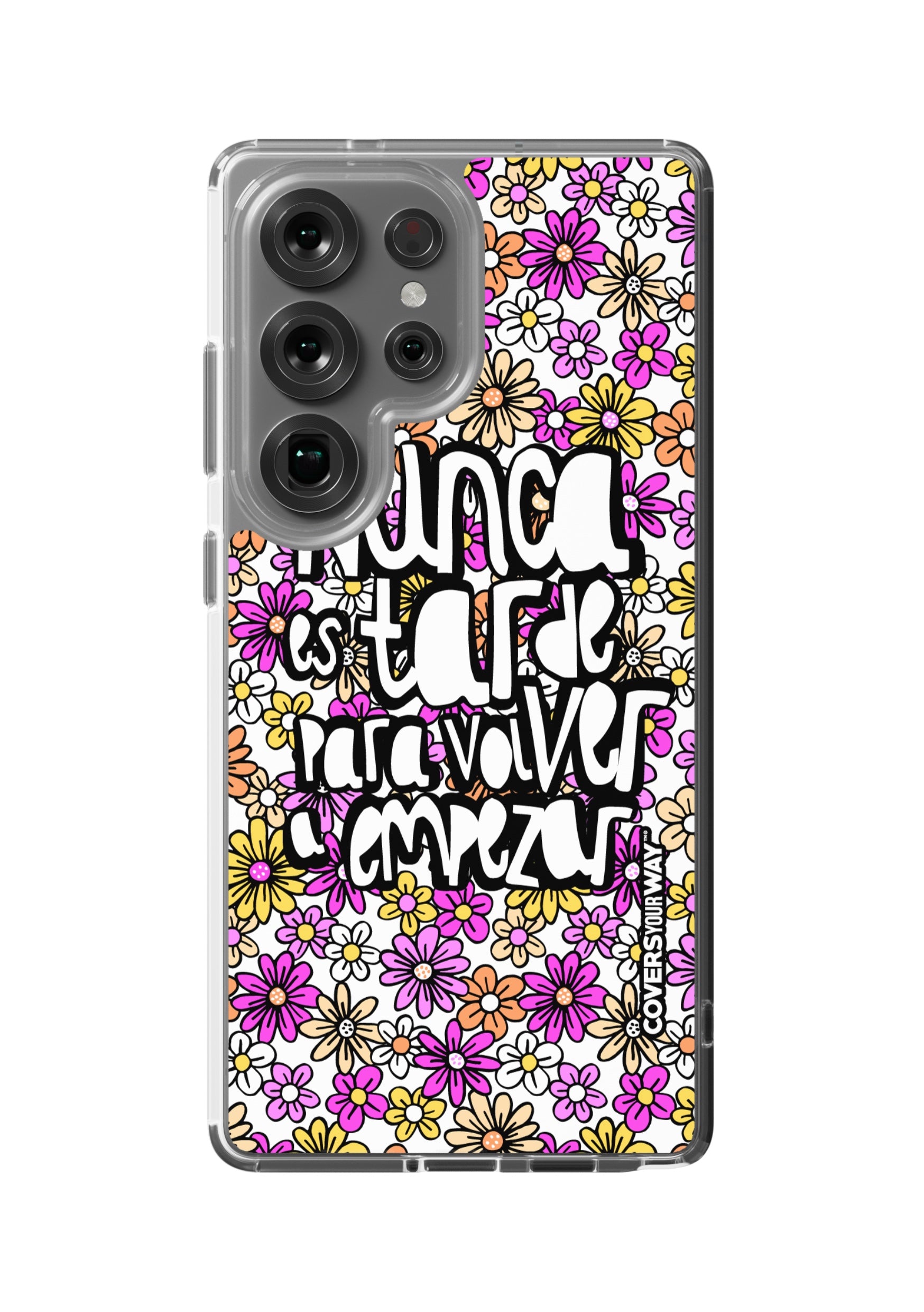Refresh your style and energy with this durable phone case, designed with the phrase "Nunca Es Tarde Para Volver a Empezar". It protects your device from bumps and scratches while sharing a message of hope, second chances, and new beginnings.