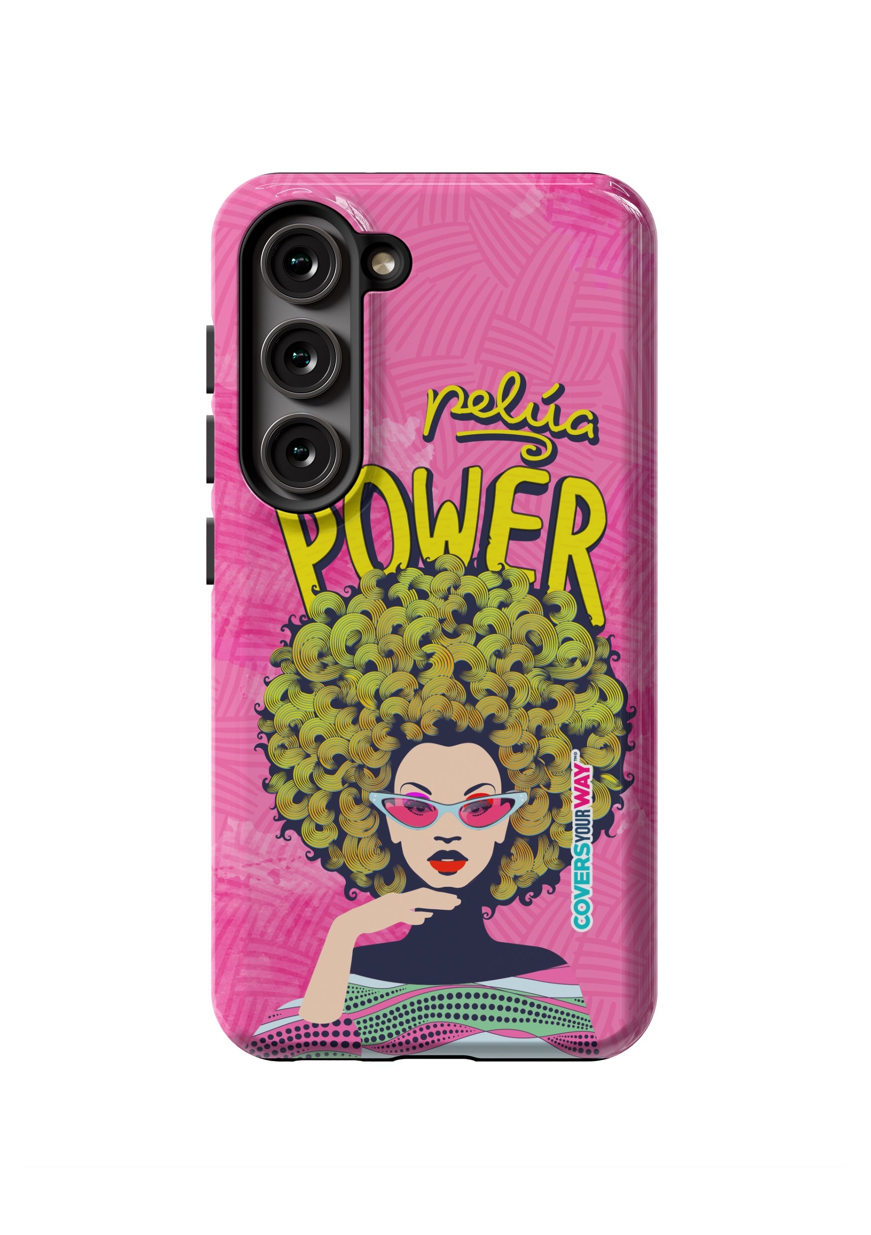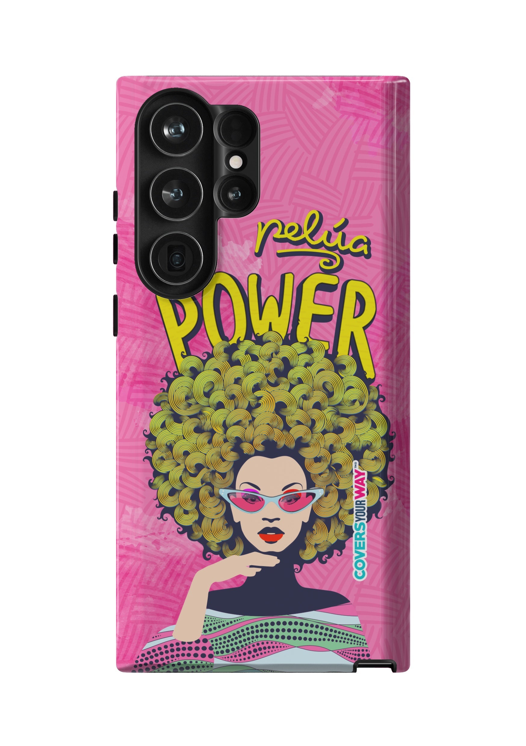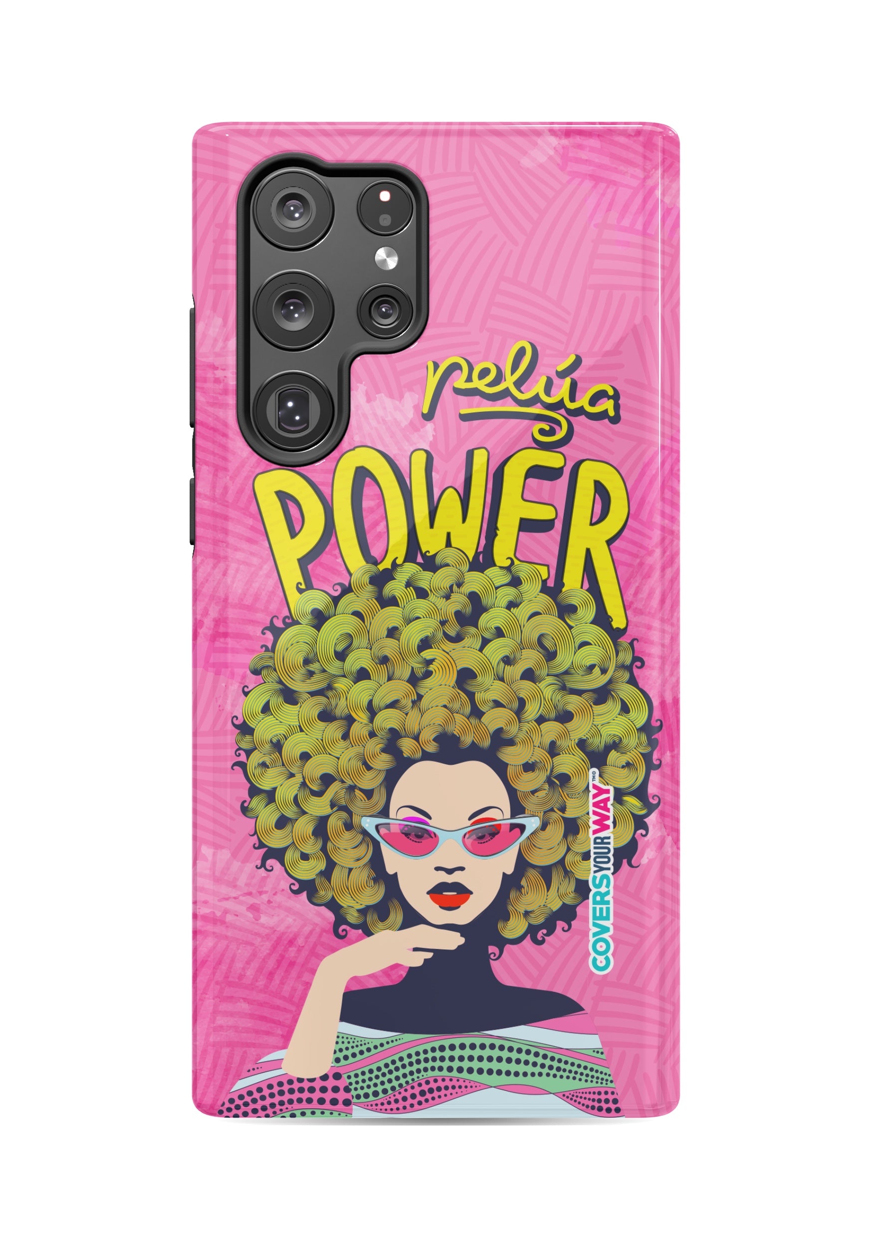This phone case features an exclusive, bold, and identity-filled design with the phrase "PELÚA POWER" as the centerpiece. The typography is striking and full of character, reflecting pride, authenticity, and strength. Perfect for those who embrace their true selves without filters, this case blends style and attitude with a message of self-acceptance and personal power.