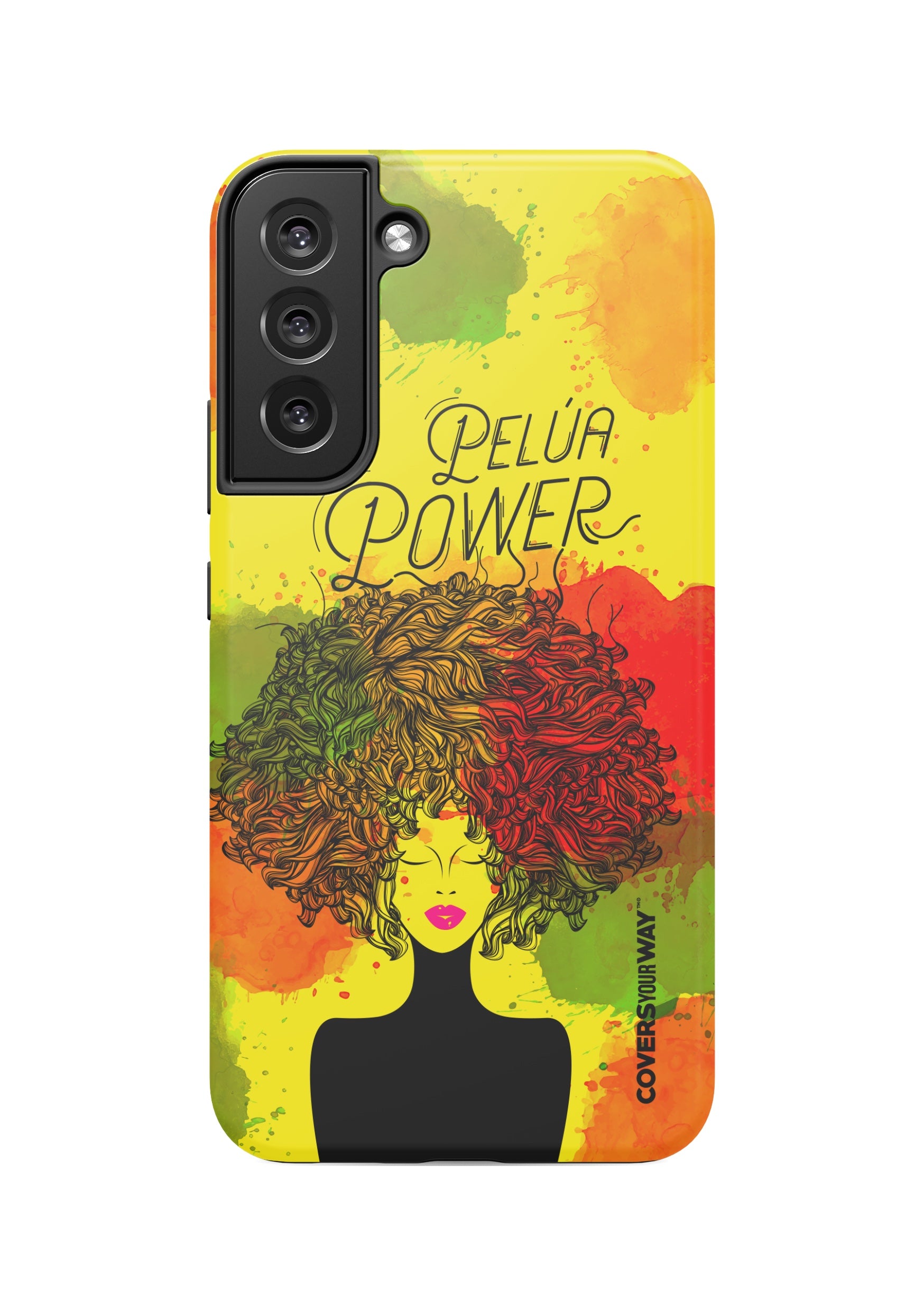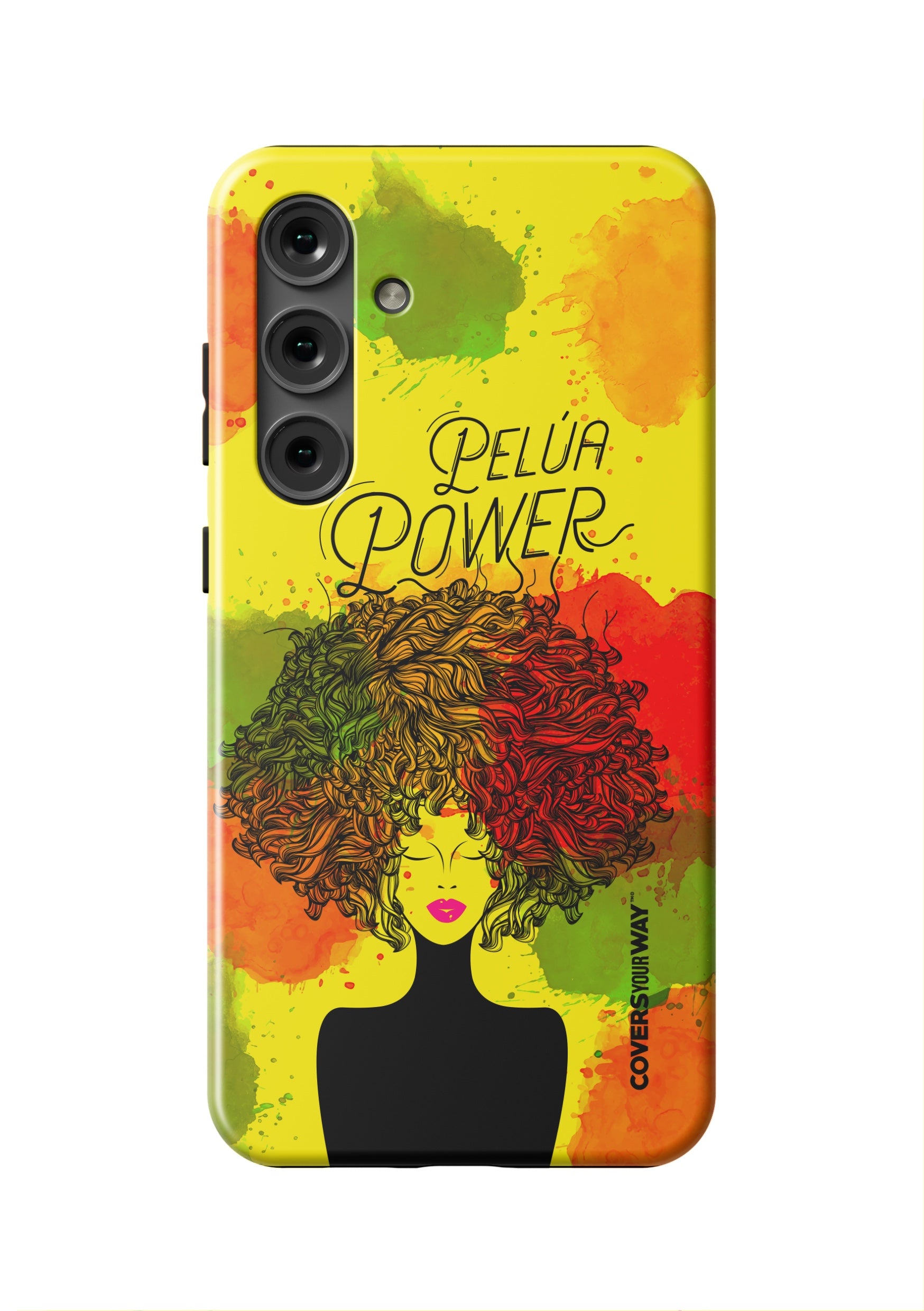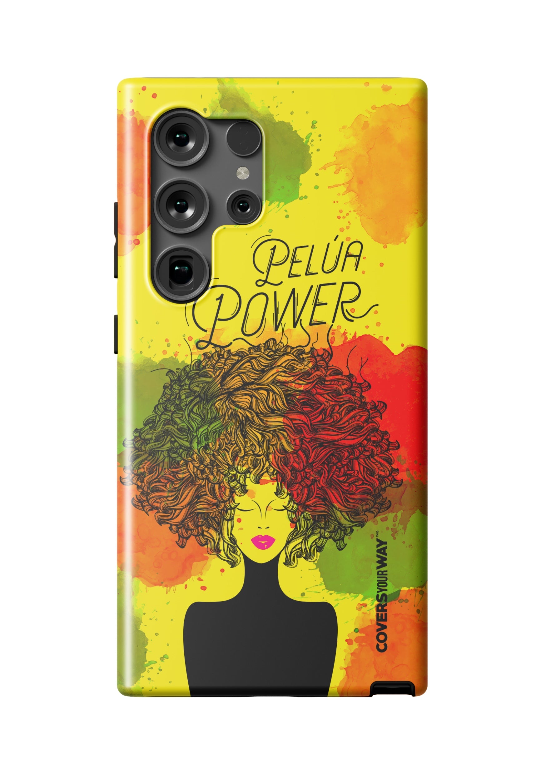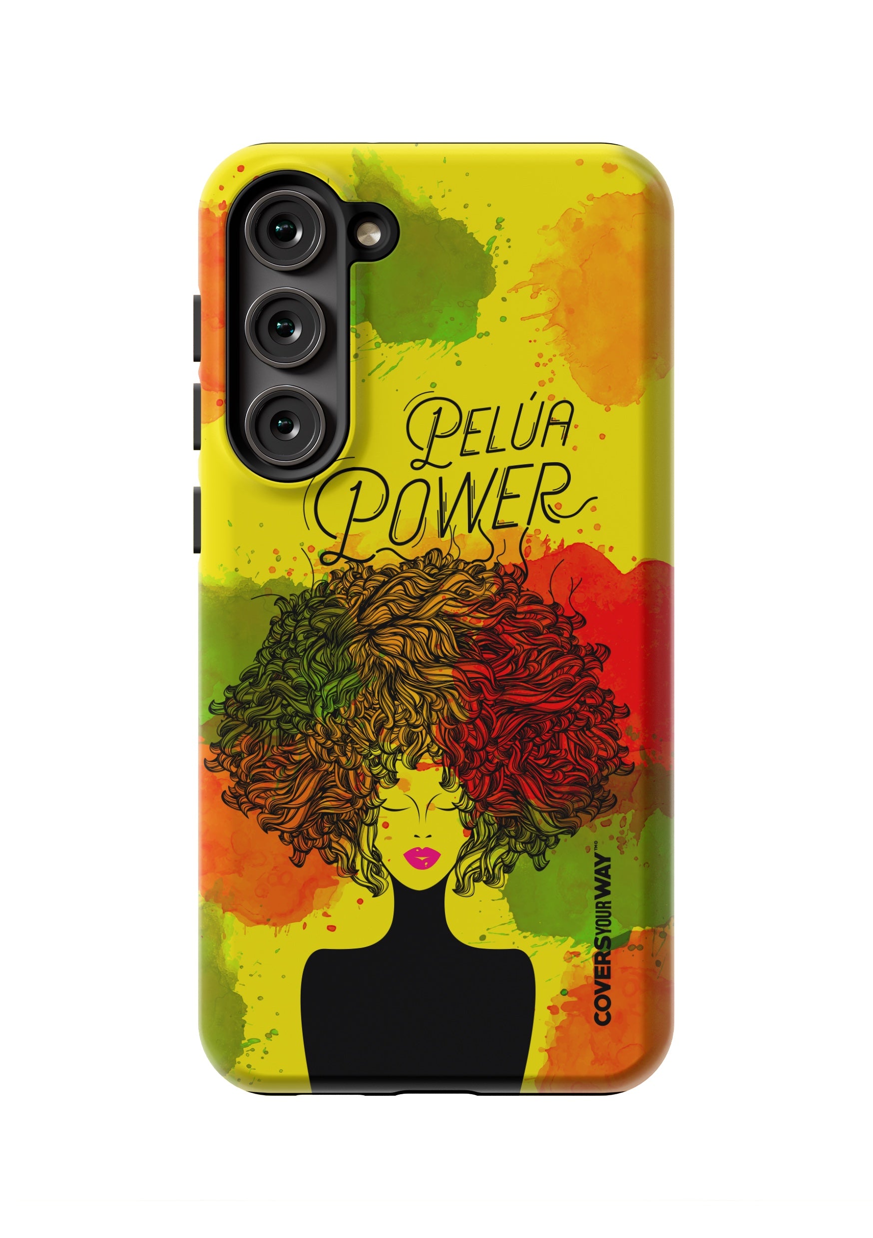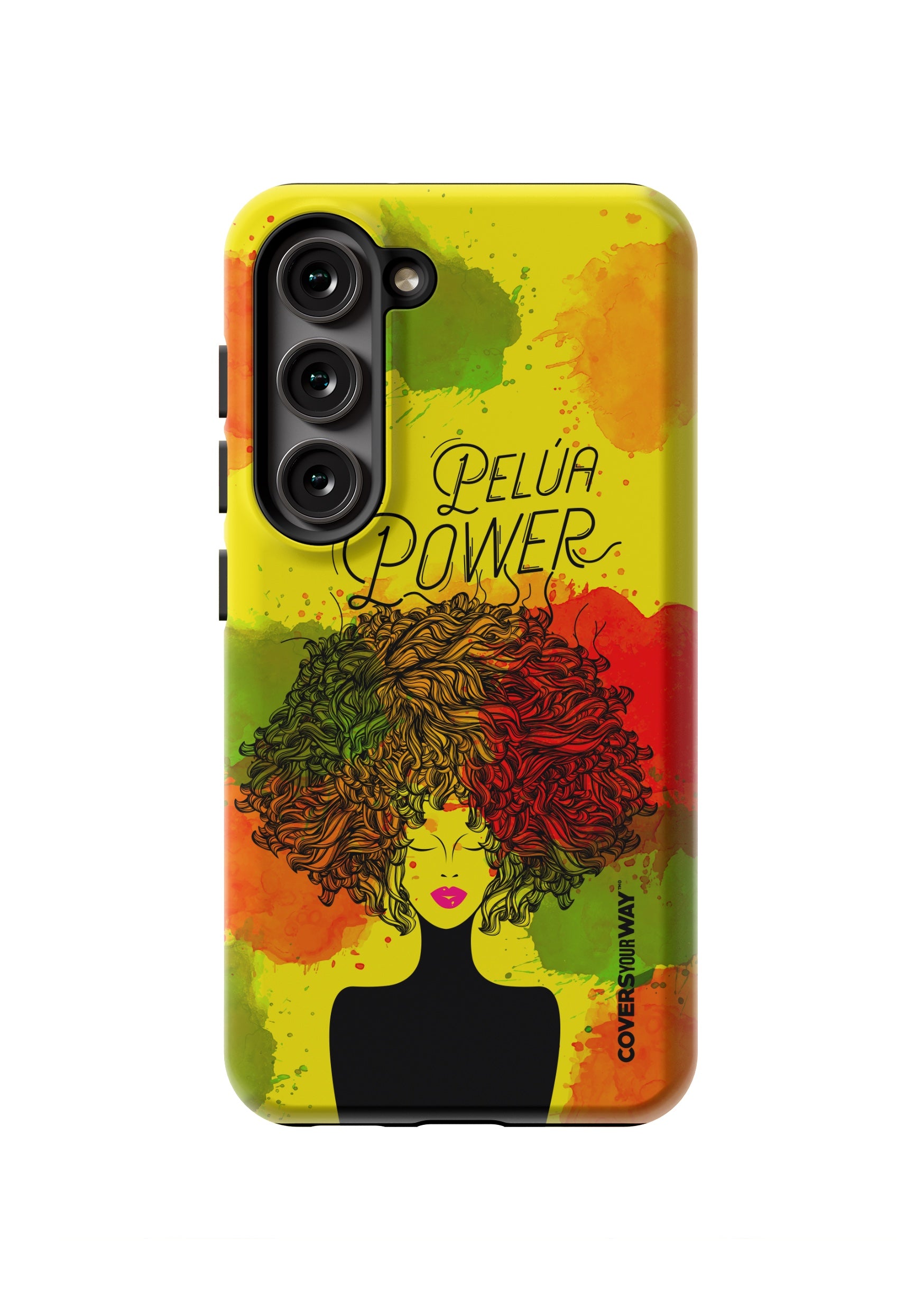 Exclusive phone case that celebrates pride and identity. Features the phrase "Pelúa Power" in bold typography over a vibrant background—perfect for those who embrace their authenticity with strength and style. Provides durable protection against bumps and scratches.