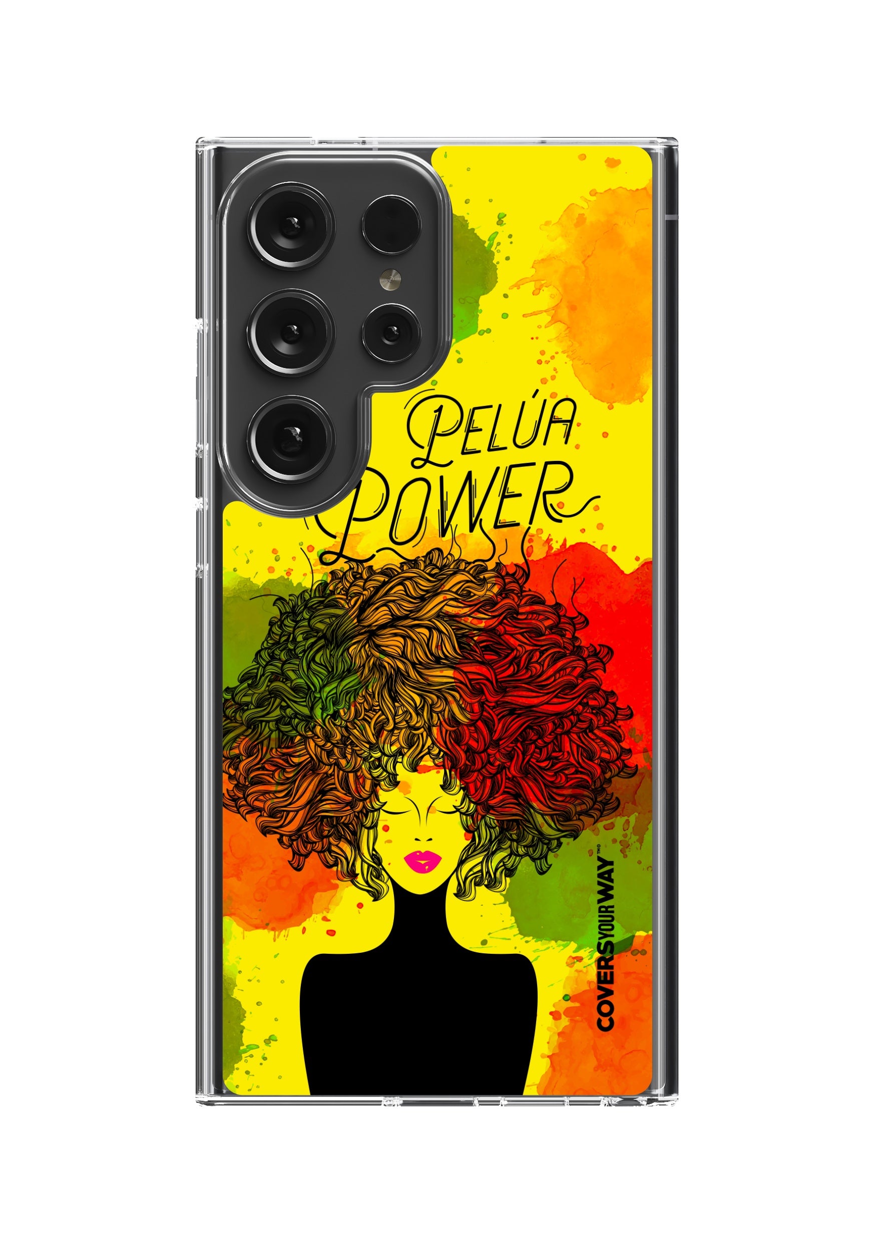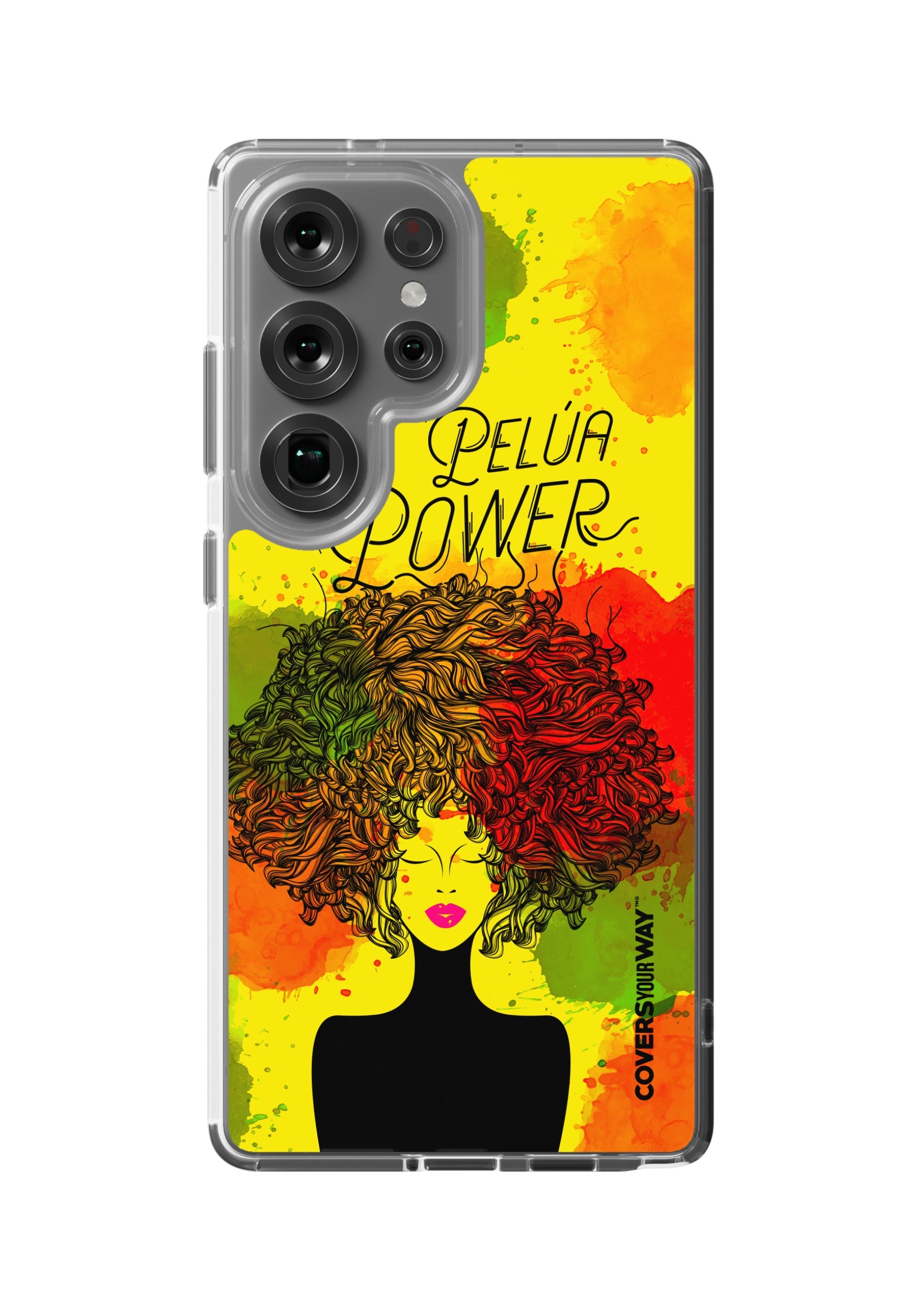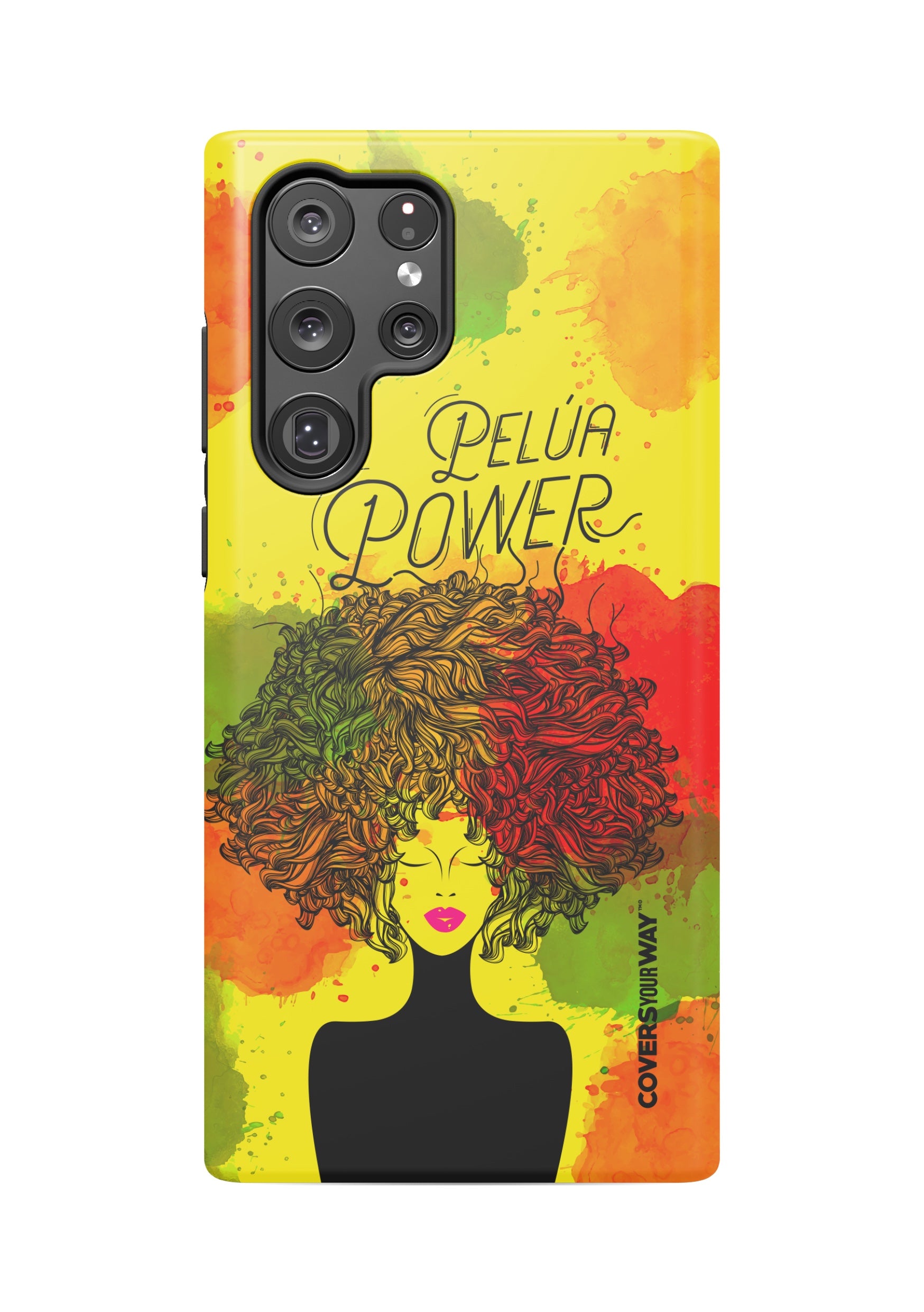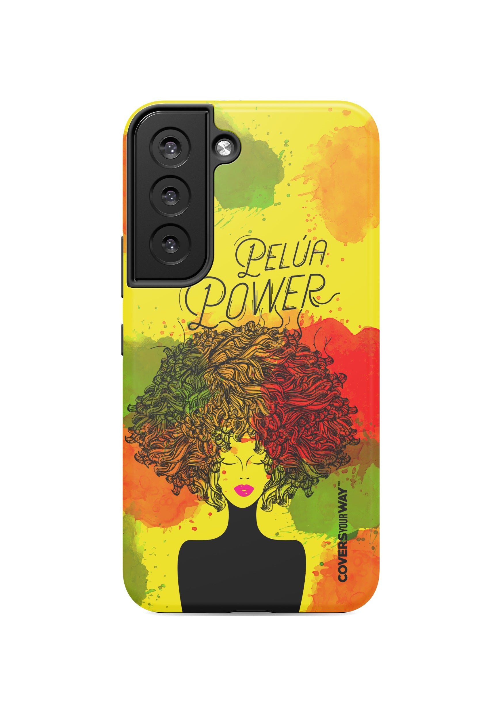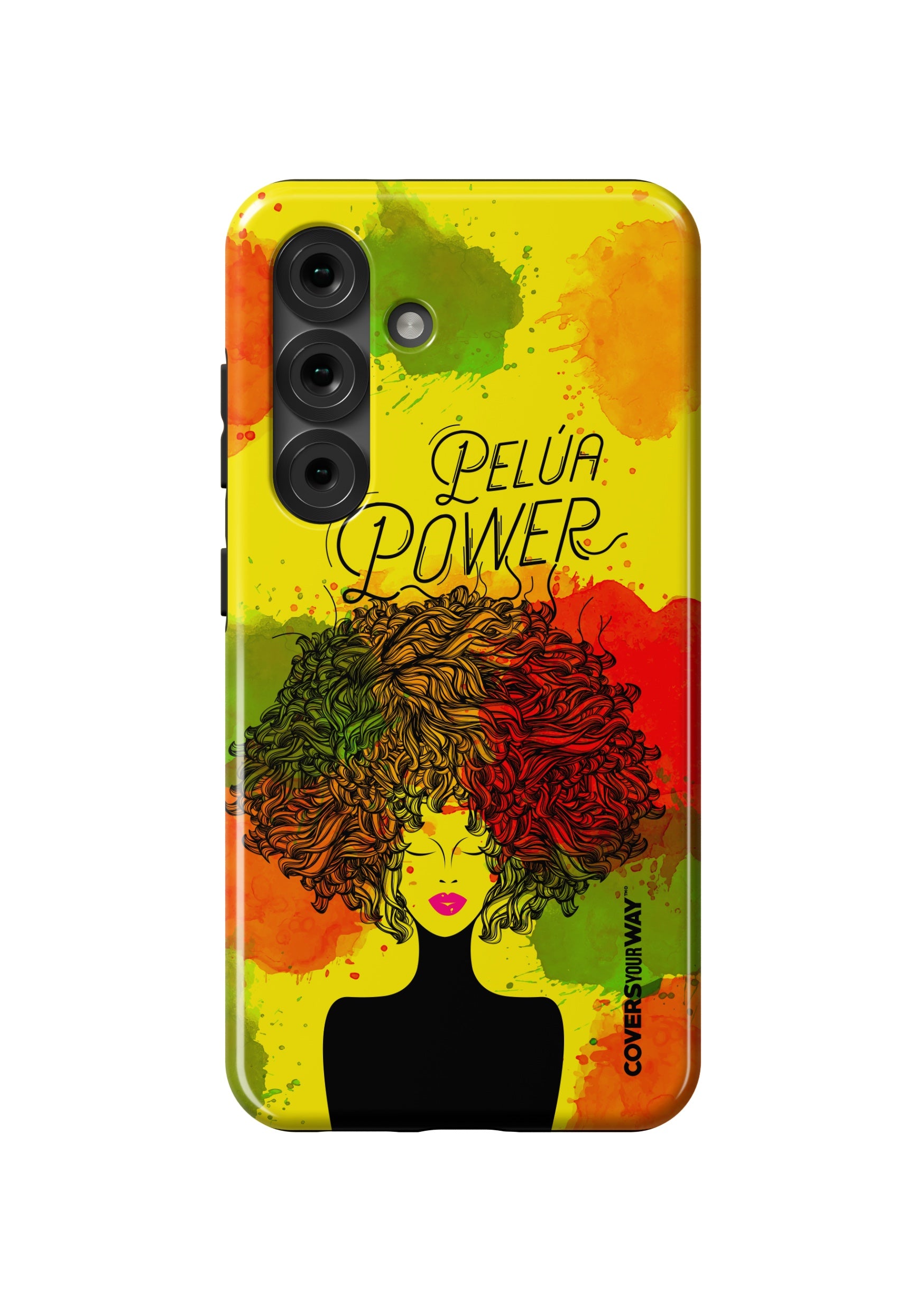 Exclusive phone case that celebrates pride and identity. Features the phrase "Pelúa Power" in bold typography over a vibrant background—perfect for those who embrace their authenticity with strength and style. Provides durable protection against bumps and scratches.