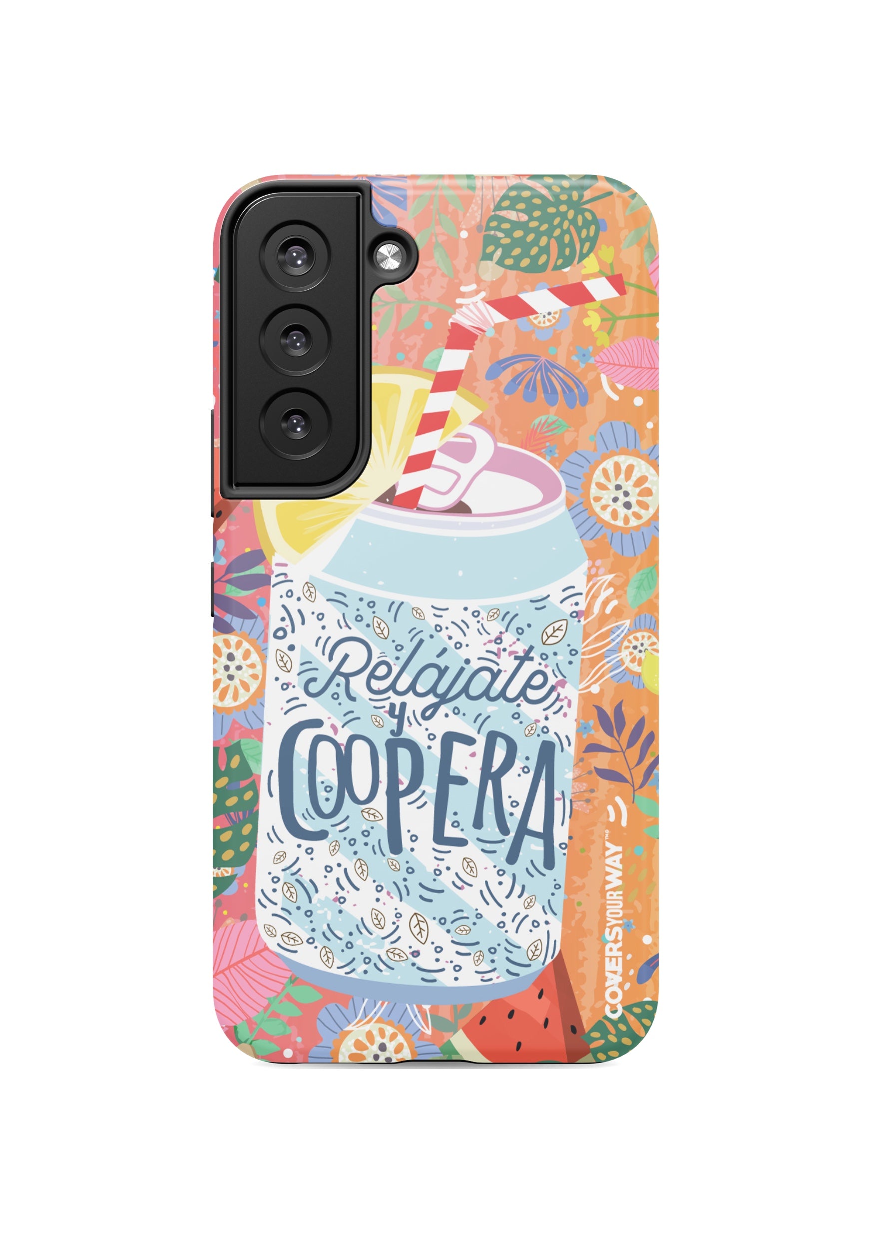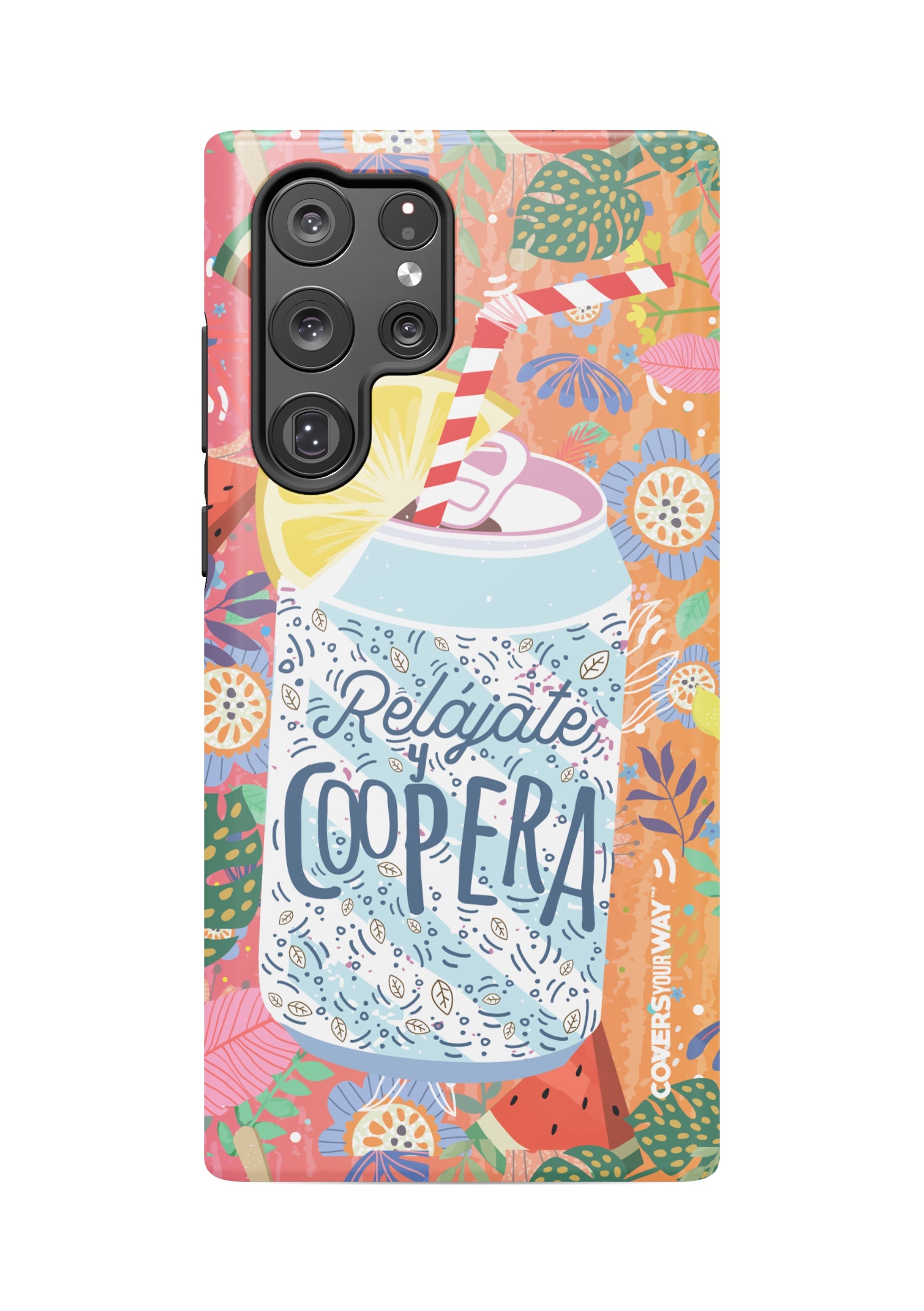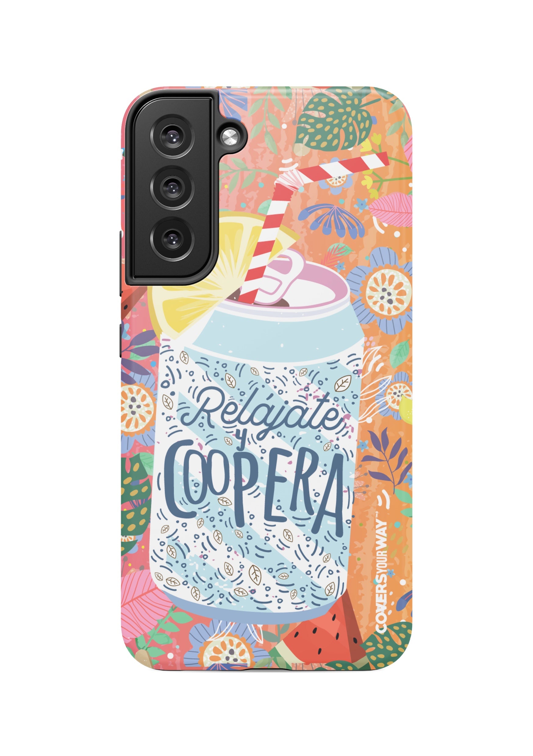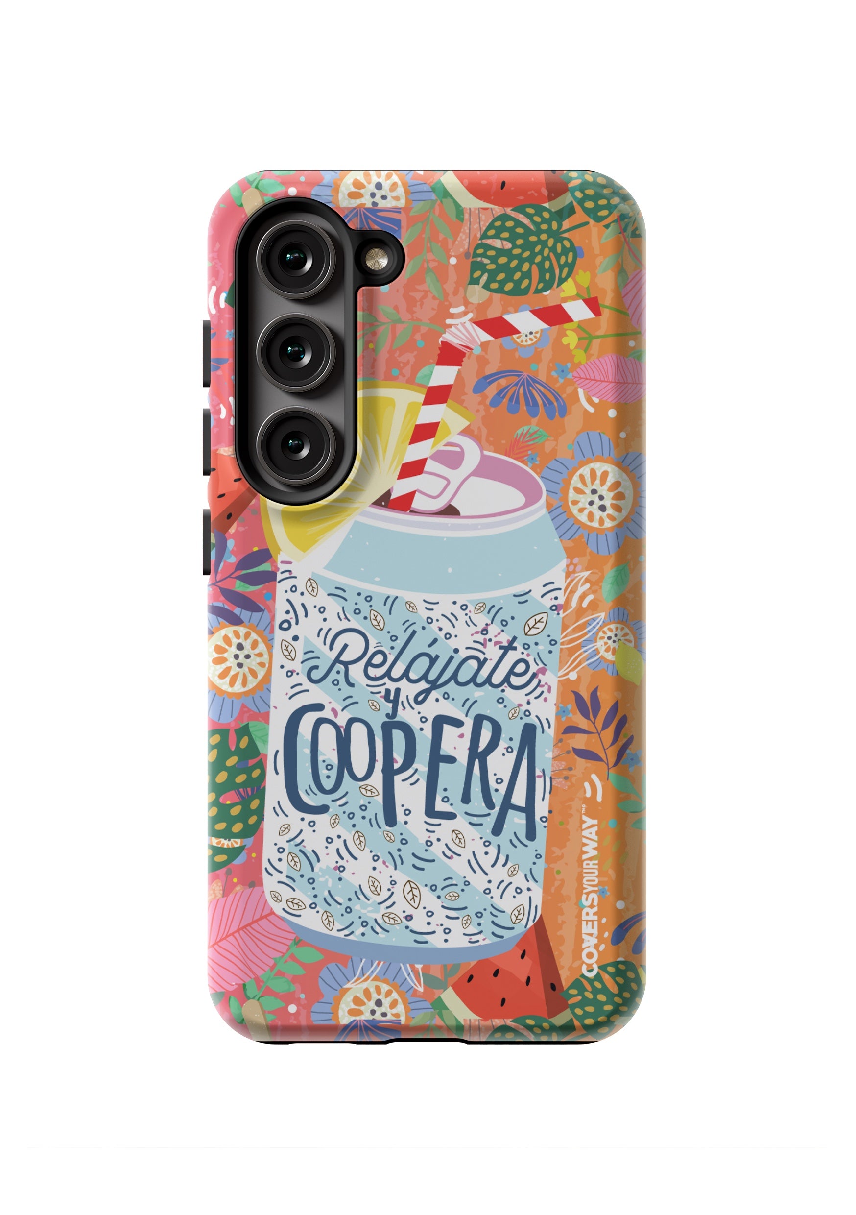 Give your phone a fun and laid-back vibe with this durable case, featuring the phrase "Relájate y Coopera". It protects your device from bumps and scratches while spreading a lighthearted, positive, and humorous message.
