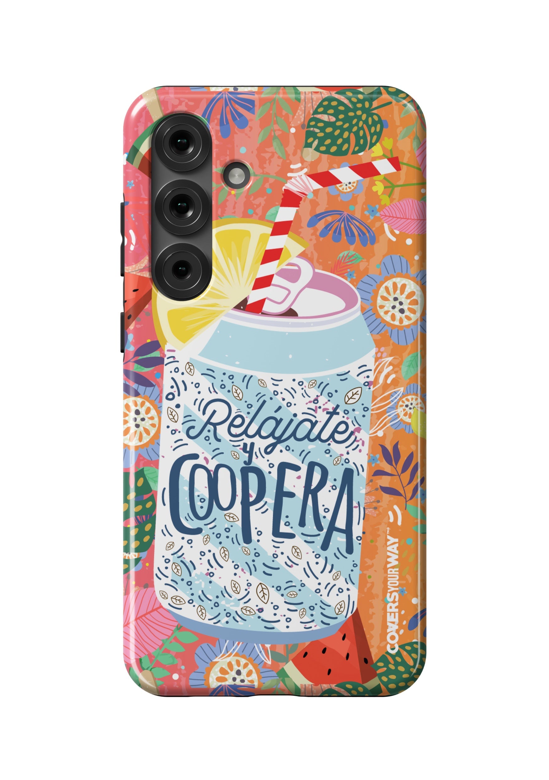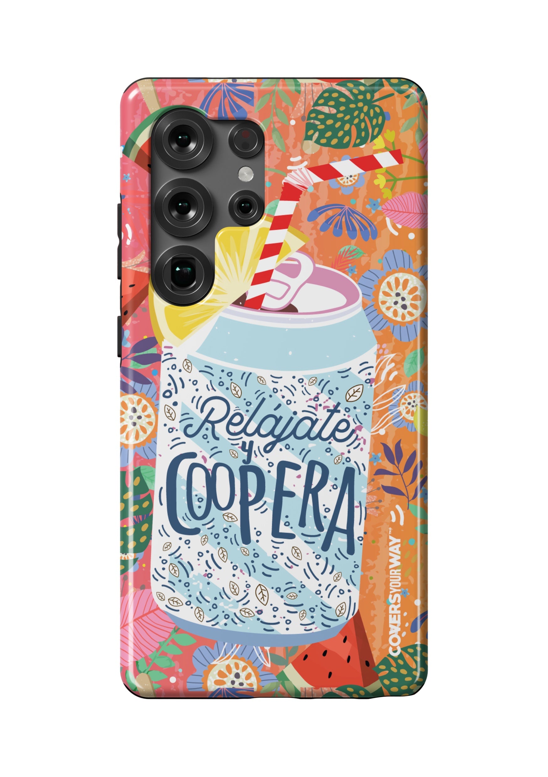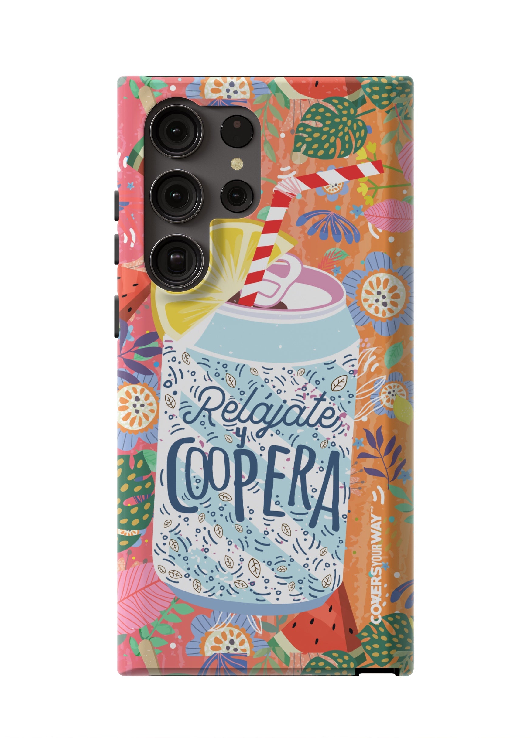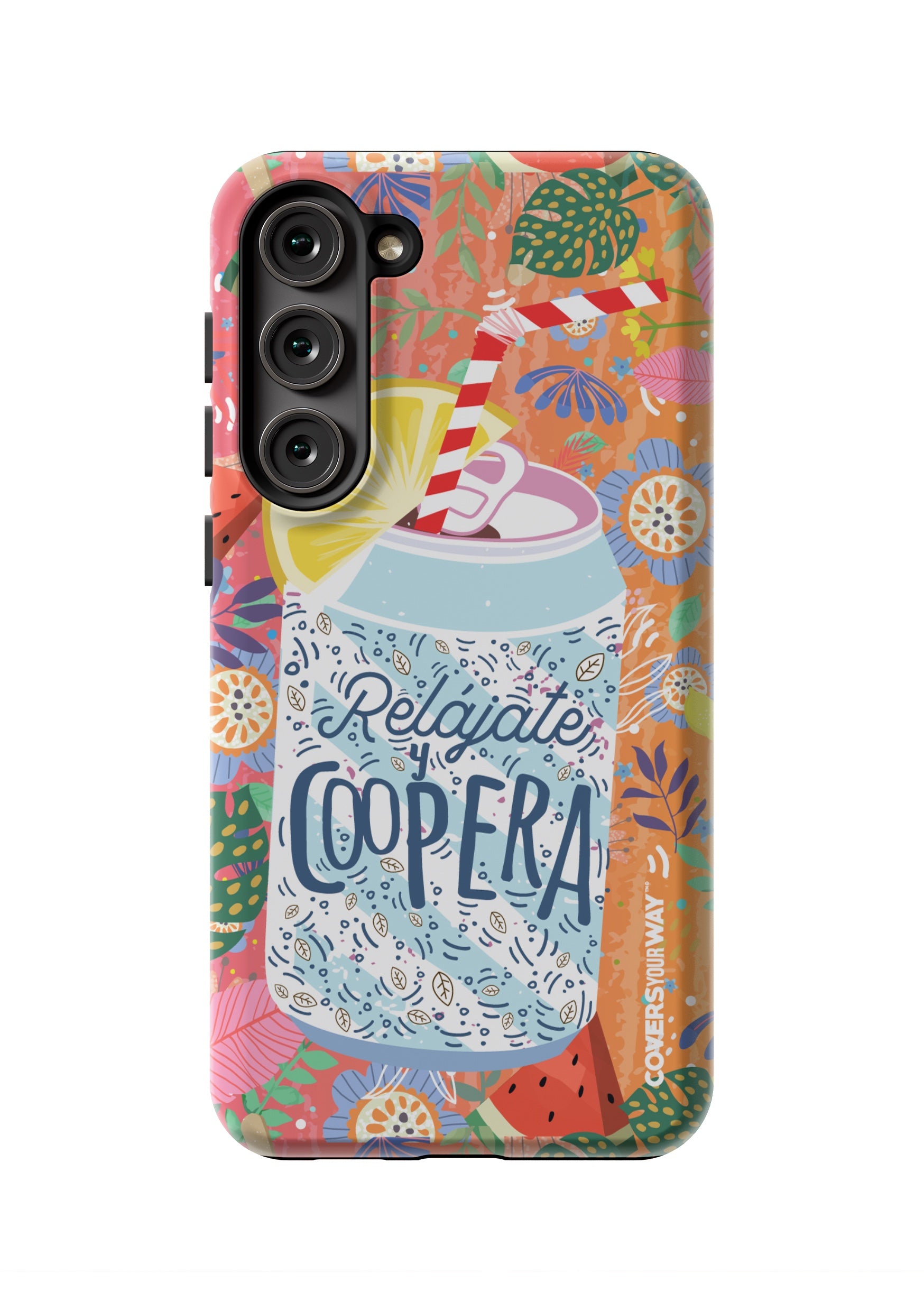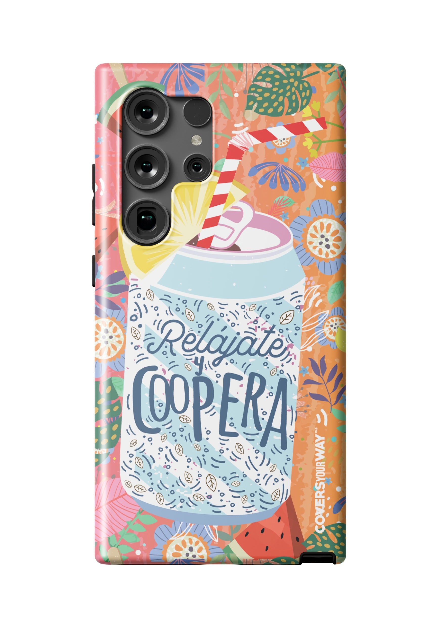 Give your phone a fun and laid-back vibe with this durable case, featuring the phrase "Relájate y Coopera". It protects your device from bumps and scratches while spreading a lighthearted, positive, and humorous message.