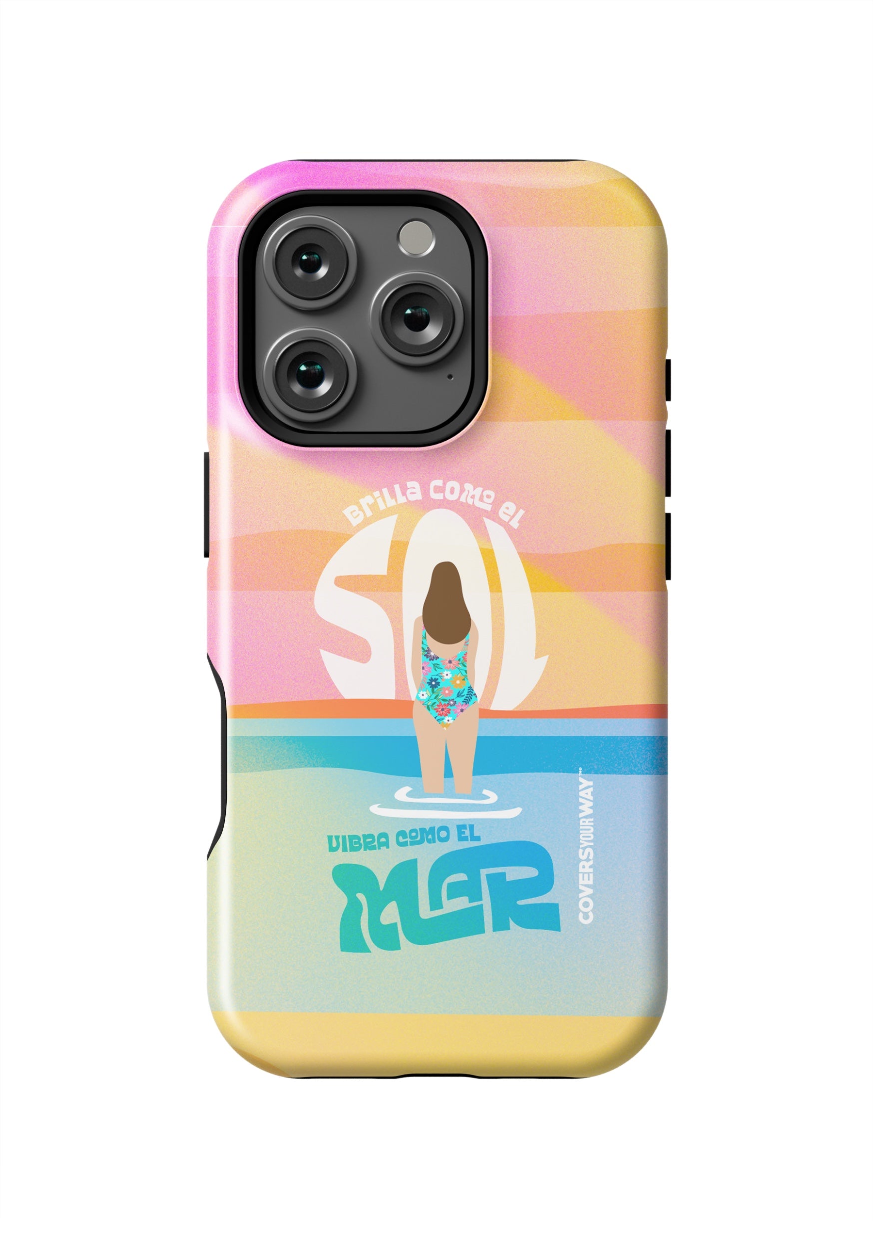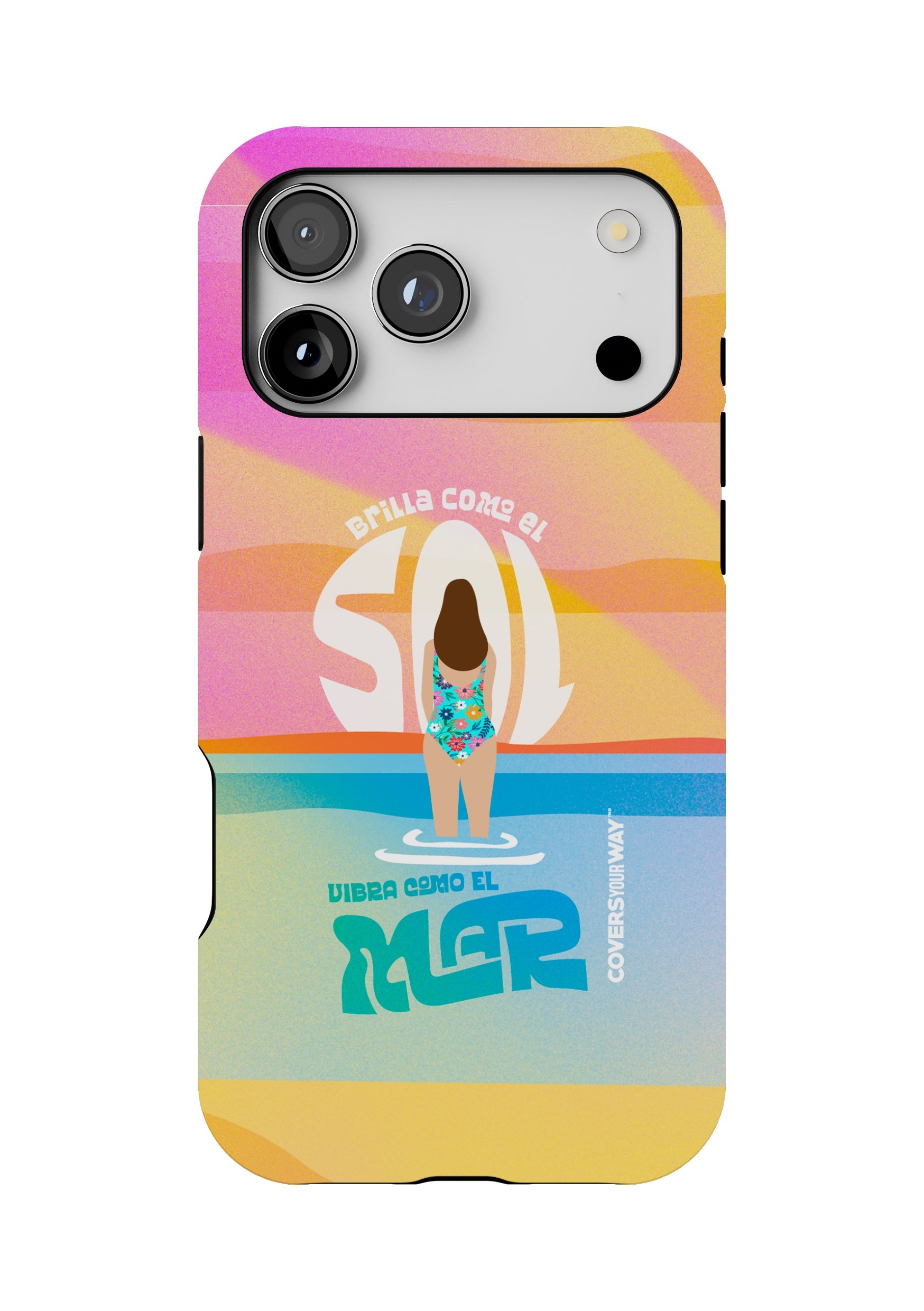 This phone cover is perfect for those who want to showcase a unique style filled with energy. It features an exclusive design that highlights the phrase "Brilla como el sol, vibra como el MAR", inspiring positivity and joy with every use. Made from durable materials like silicone or polycarbonate, it has a striking design with vibrant colors and bold, modern typography. Plus, it protects your phone with style and personality. Ideal for those who love to express their true self!