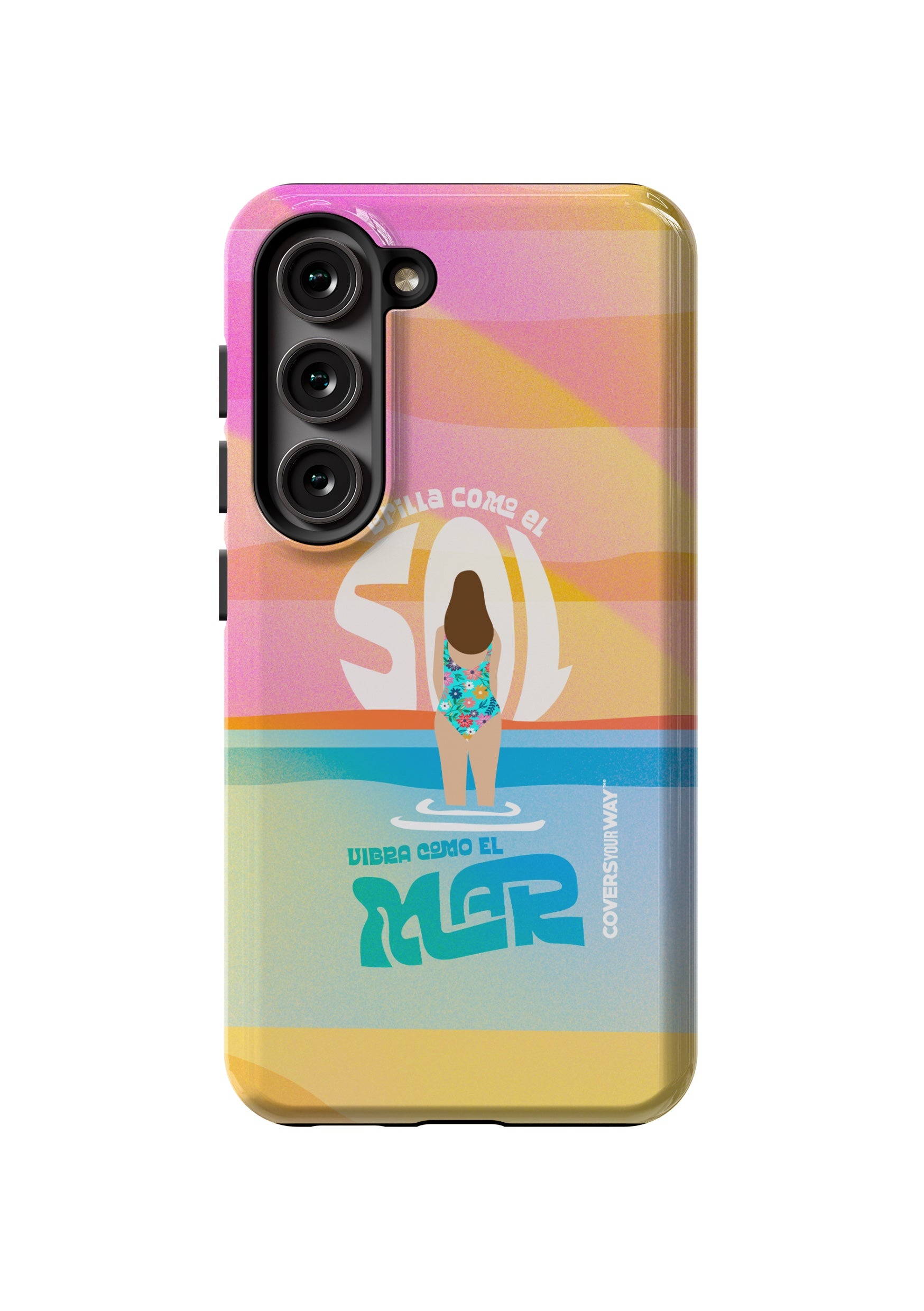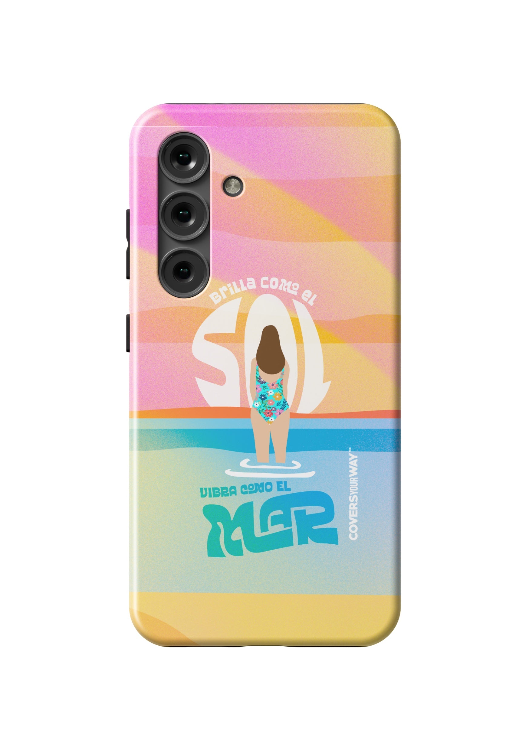 This phone cover is perfect for those who want to showcase a unique style filled with energy. It features an exclusive design that highlights the phrase "Brilla como el sol, vibra como el MAR", inspiring positivity and joy with every use. Made from durable materials like silicone or polycarbonate, it has a striking design with vibrant colors and bold, modern typography. Plus, it protects your phone with style and personality. Ideal for those who love to express their true self!