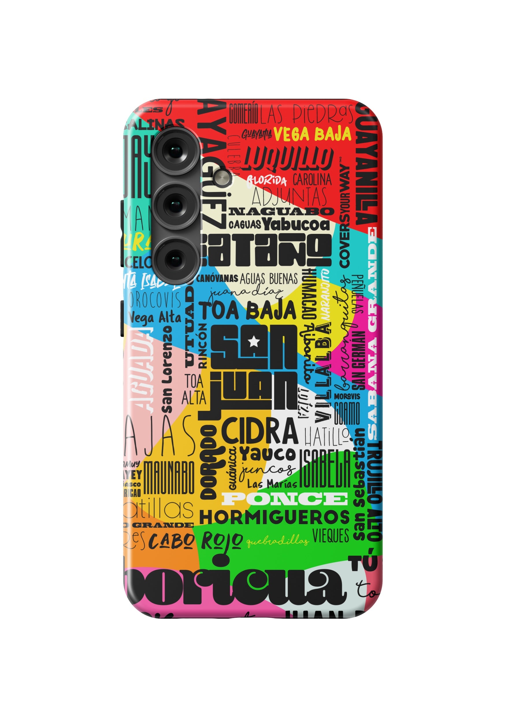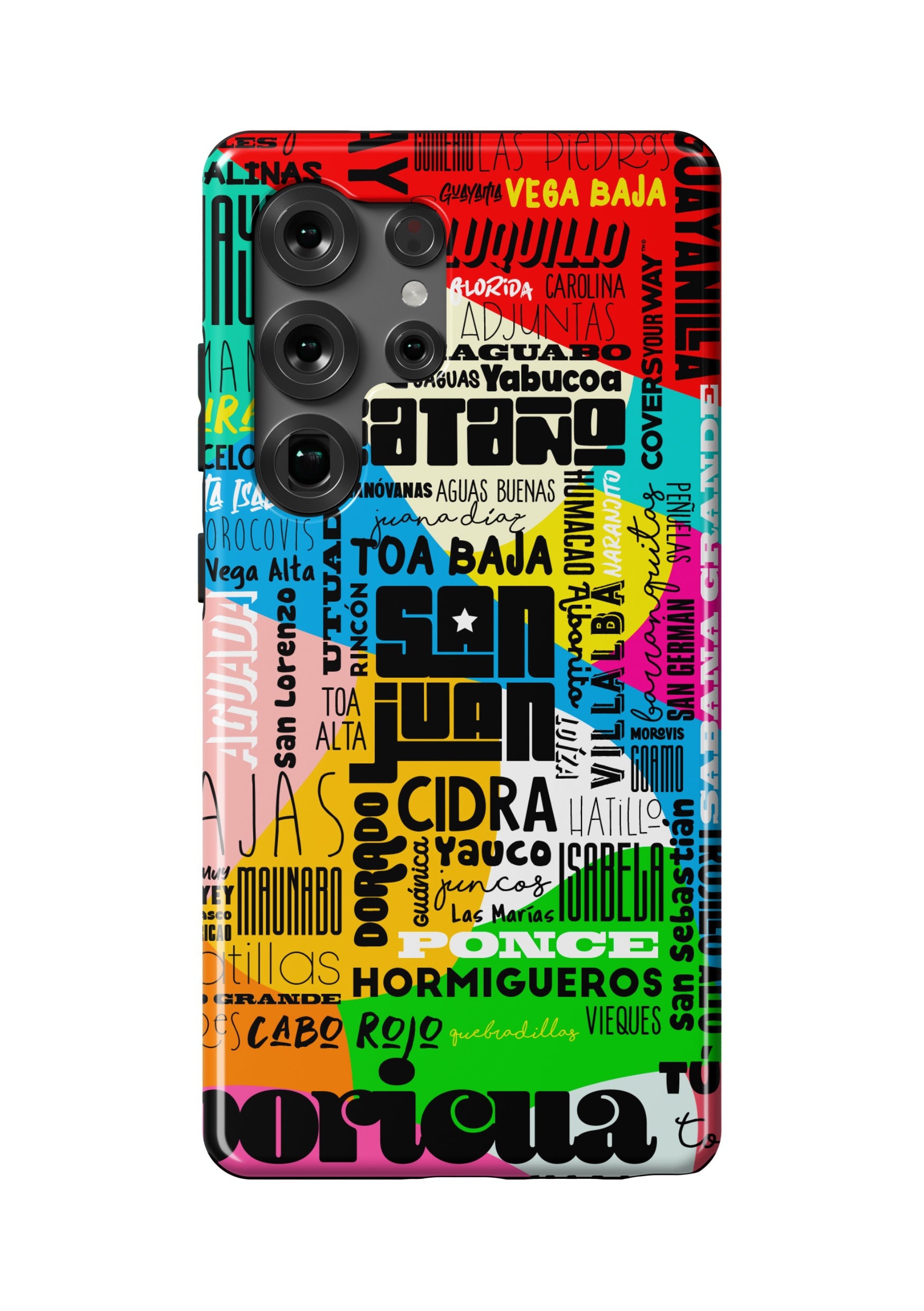 Este protector combina estilo y orgullo boricua en un diseño único que celebra la unidad de Puerto Rico. Con la frase emblemática "Somos 78", el diseño incorpora sutilmente el nombre de cada uno de los 78 municipios, formando un mapa tipográfico que destaca la diversidad y la identidad de la Isla. Fabricado con materiales resistentes a golpes y arañazos, este protector no solo protege tu celular, sino que también refleja tu amor por Puerto Rico con elegancia y personalidad.