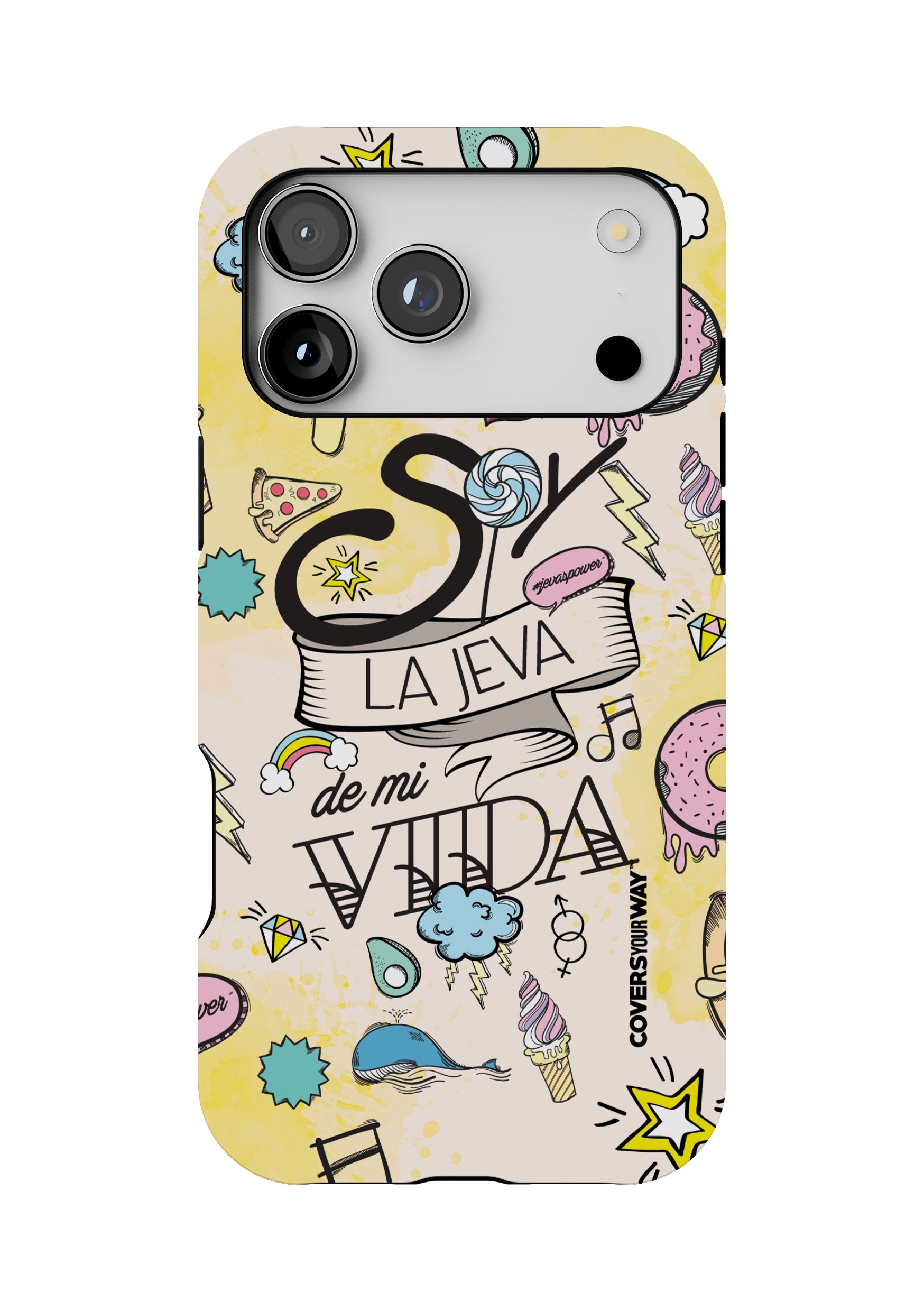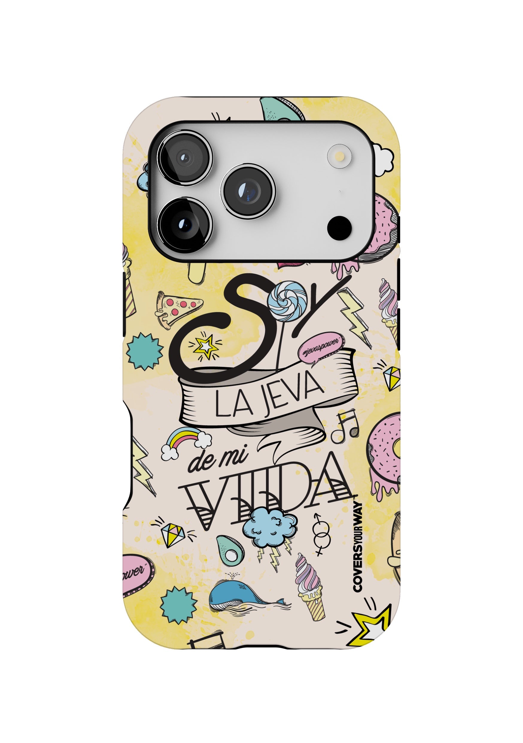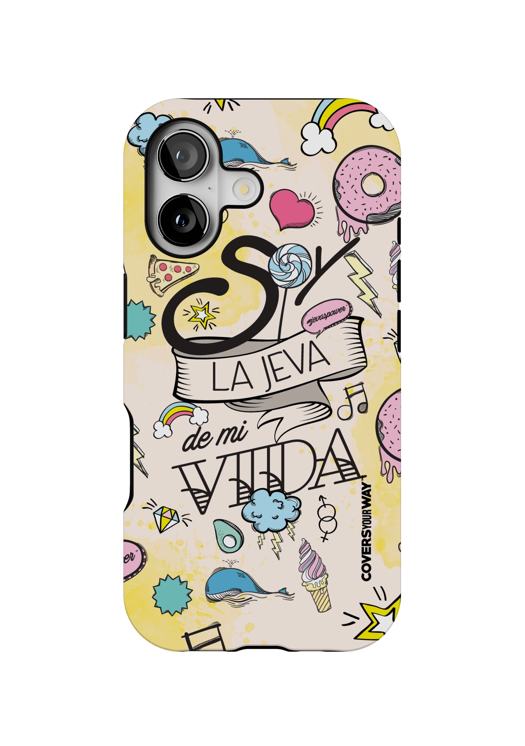 Un protector para celular con el diseño exclusivo que lleva la frase "Soy la jeva de mi vida" irradia empoderamiento y actitud. Fabricado con materiales resistentes como silicona o policarbonato, presenta un diseño llamativo con colores vibrantes y una tipografía audaz y moderna. La frase destaca con fuerza, celebrando la independencia, el amor propio y la confianza. Es el accesorio perfecto para quienes abrazan su autenticidad y se sienten orgullosas de ser las protagonistas de su propia historia.