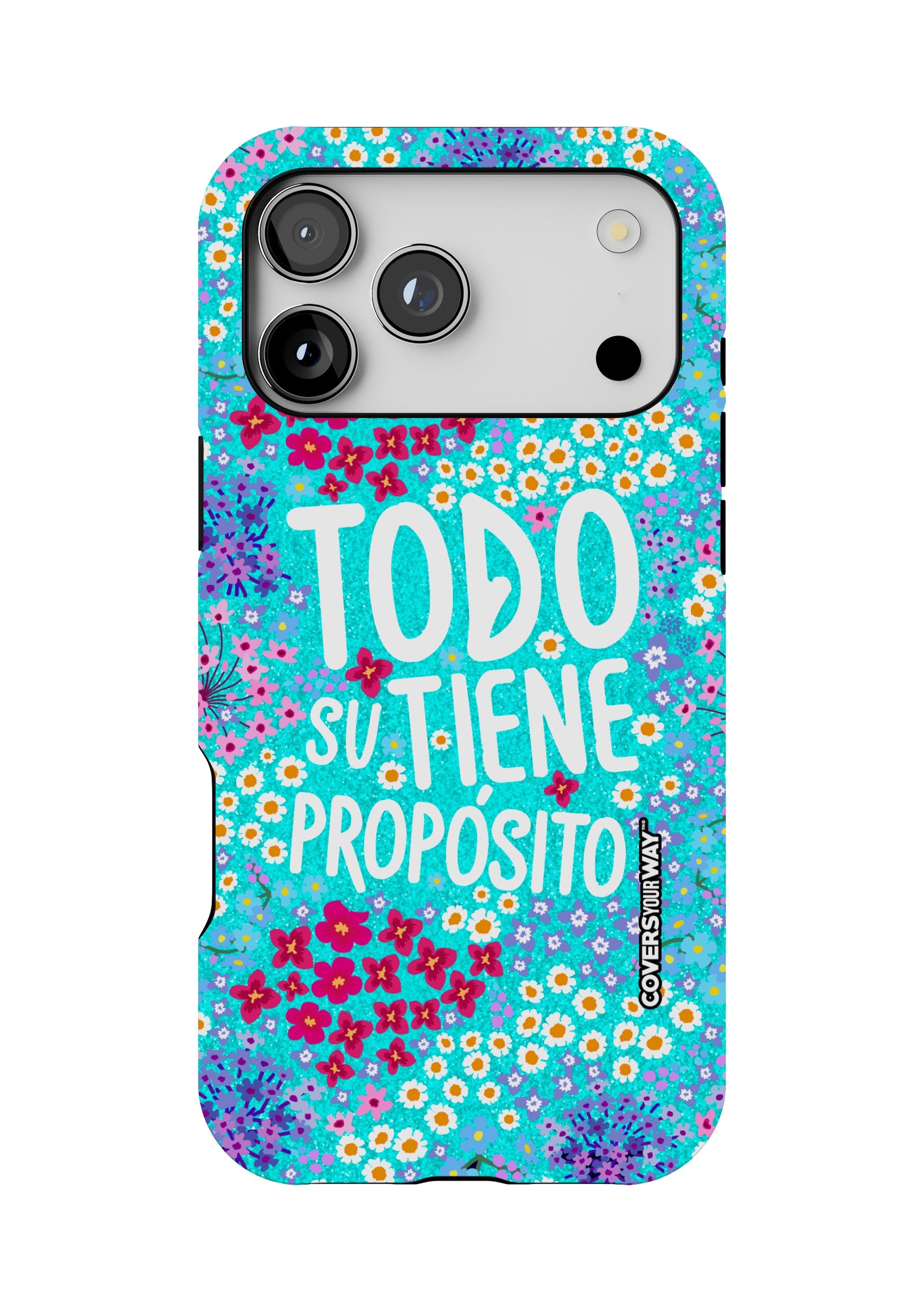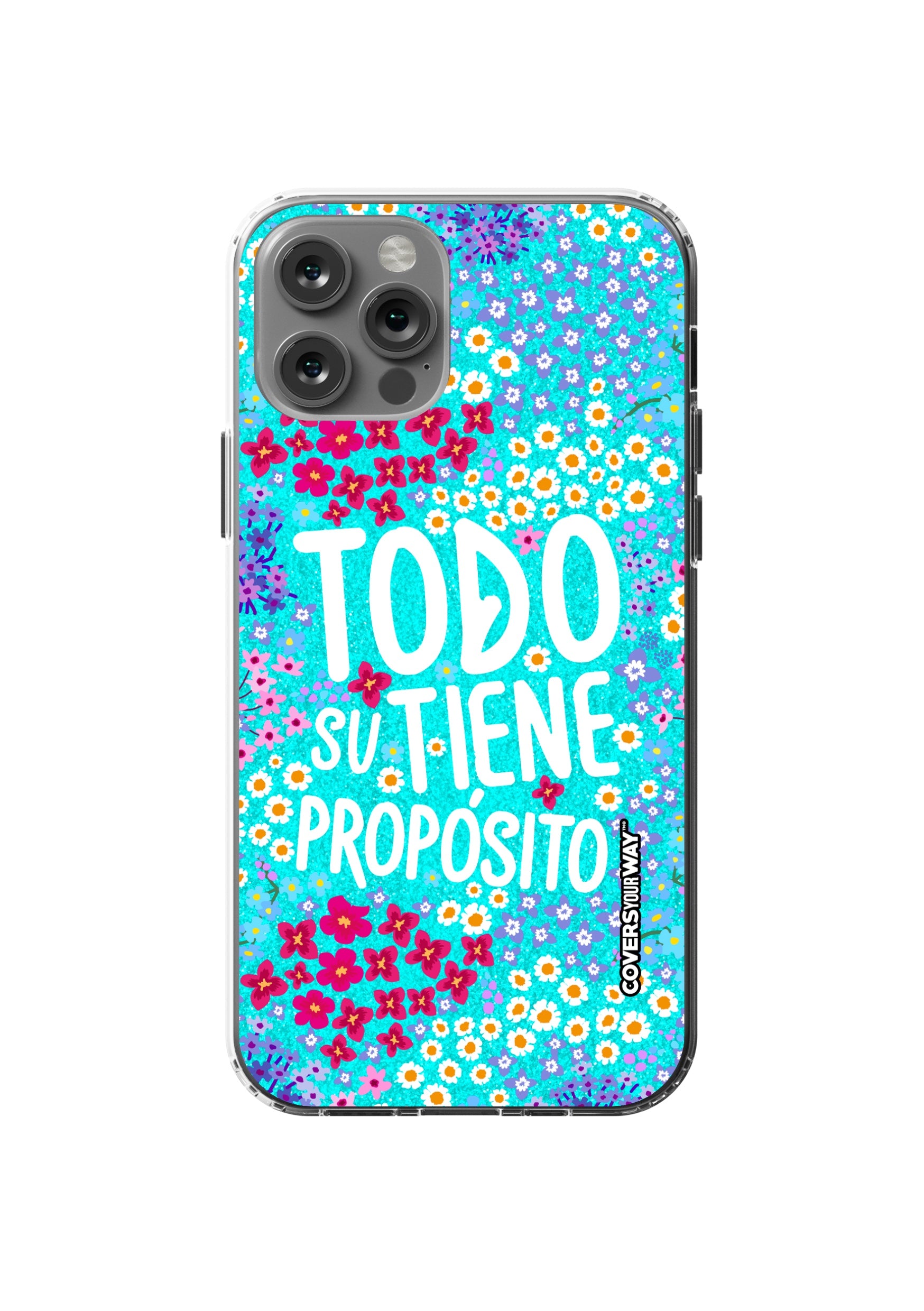 A phone case with the exclusive design featuring the phrase "Todo tiene su propósito" conveys an inspiring message with an elegant and minimalist style. Made from durable materials like silicone or polycarbonate, it features a background in soft or neutral tones and a delicate, modern font. The phrase becomes the focal point of the design, evoking calm and reflection. It’s perfect for those who want a functional accessory that also brings intention and meaning to their everyday life.