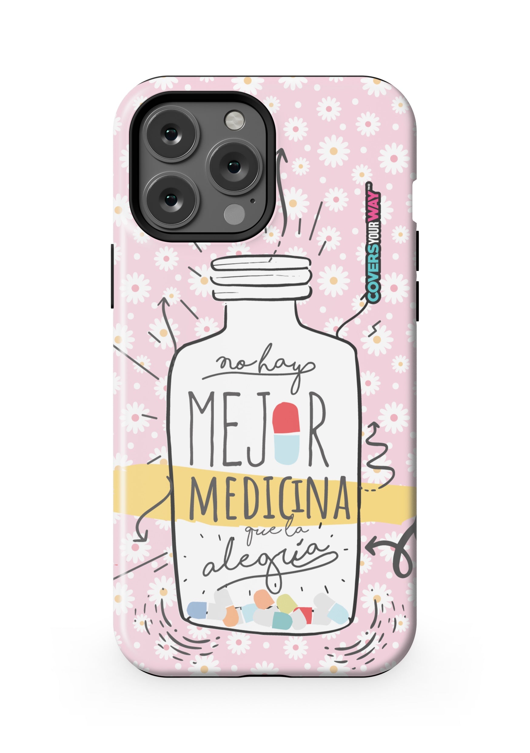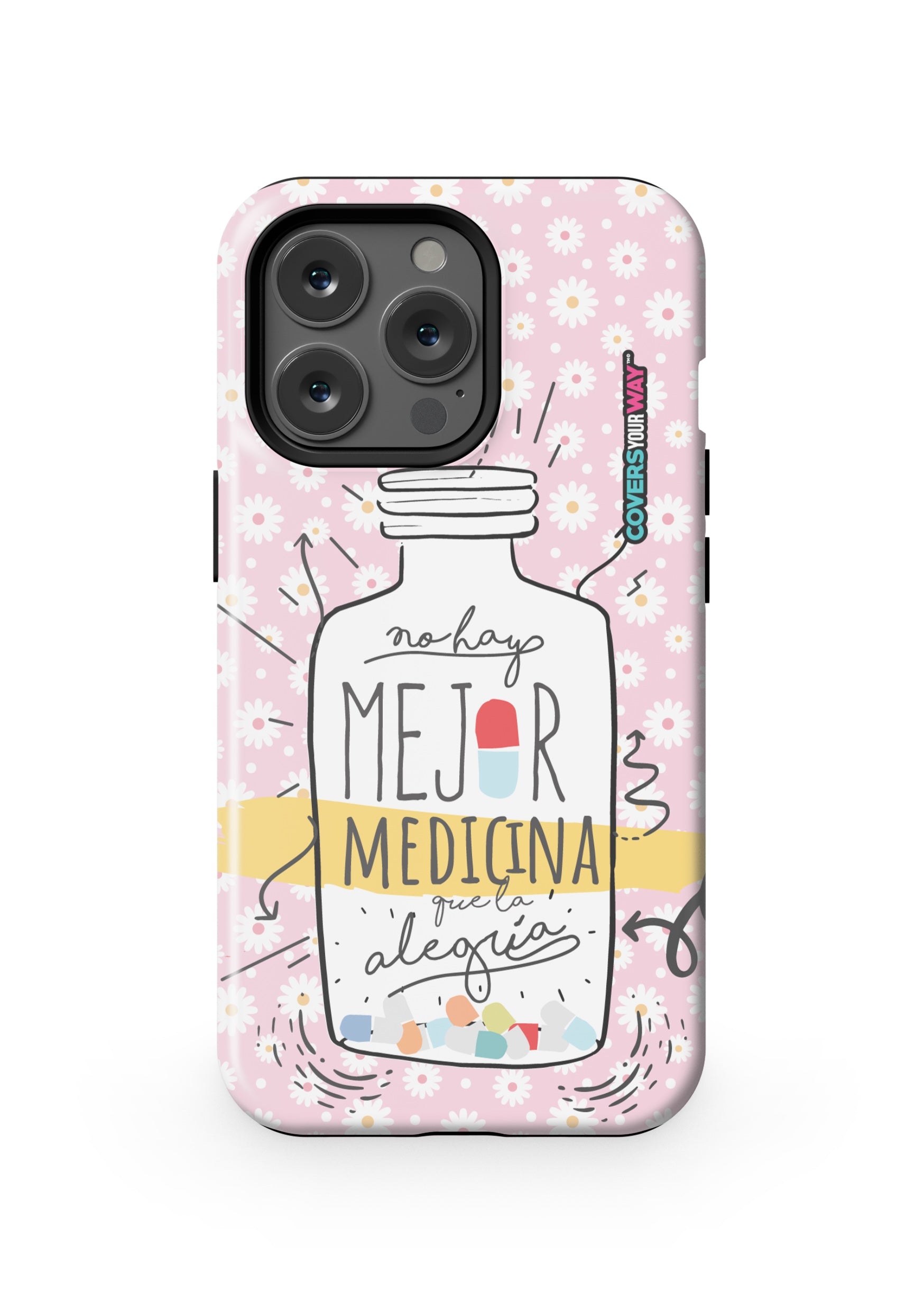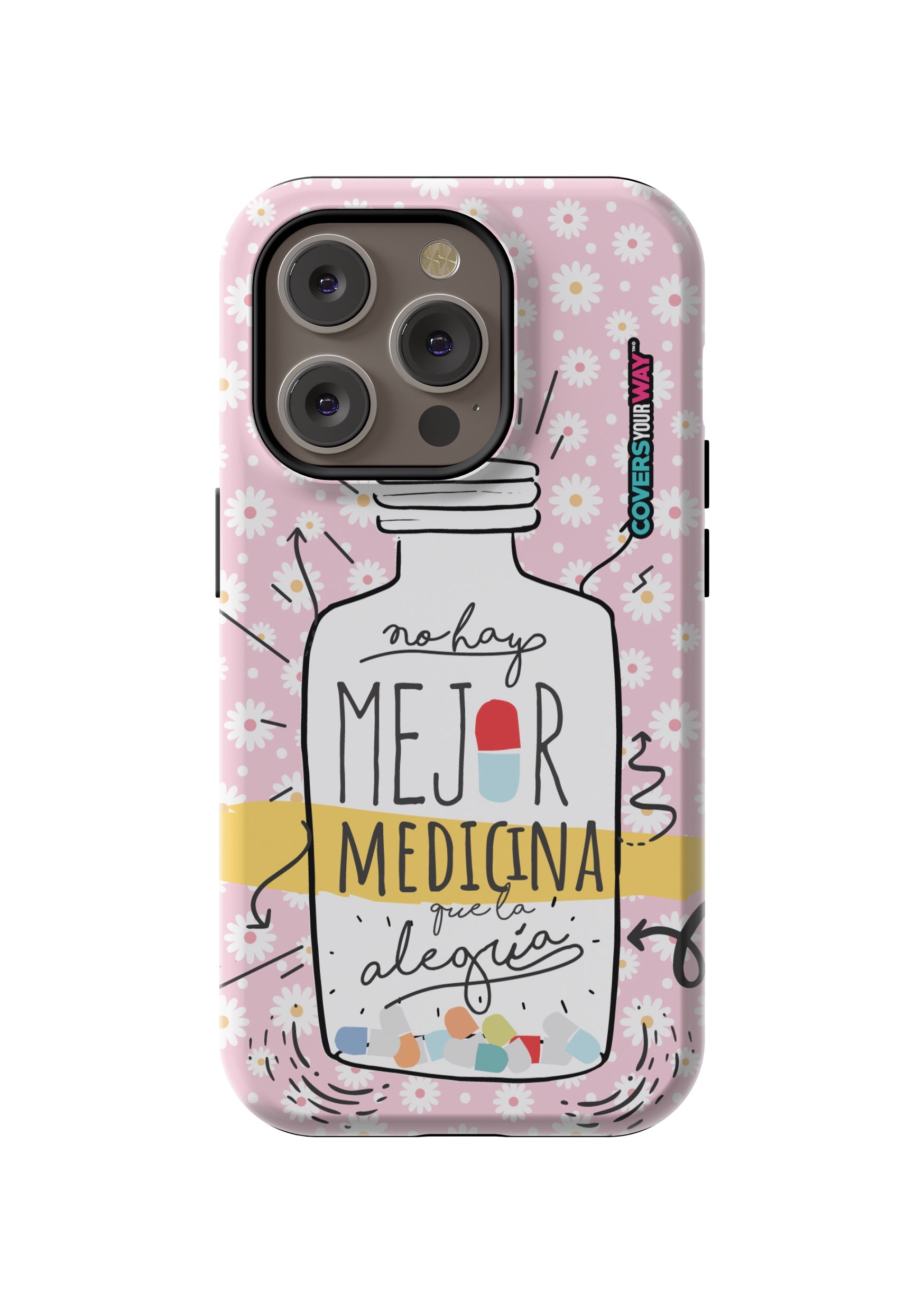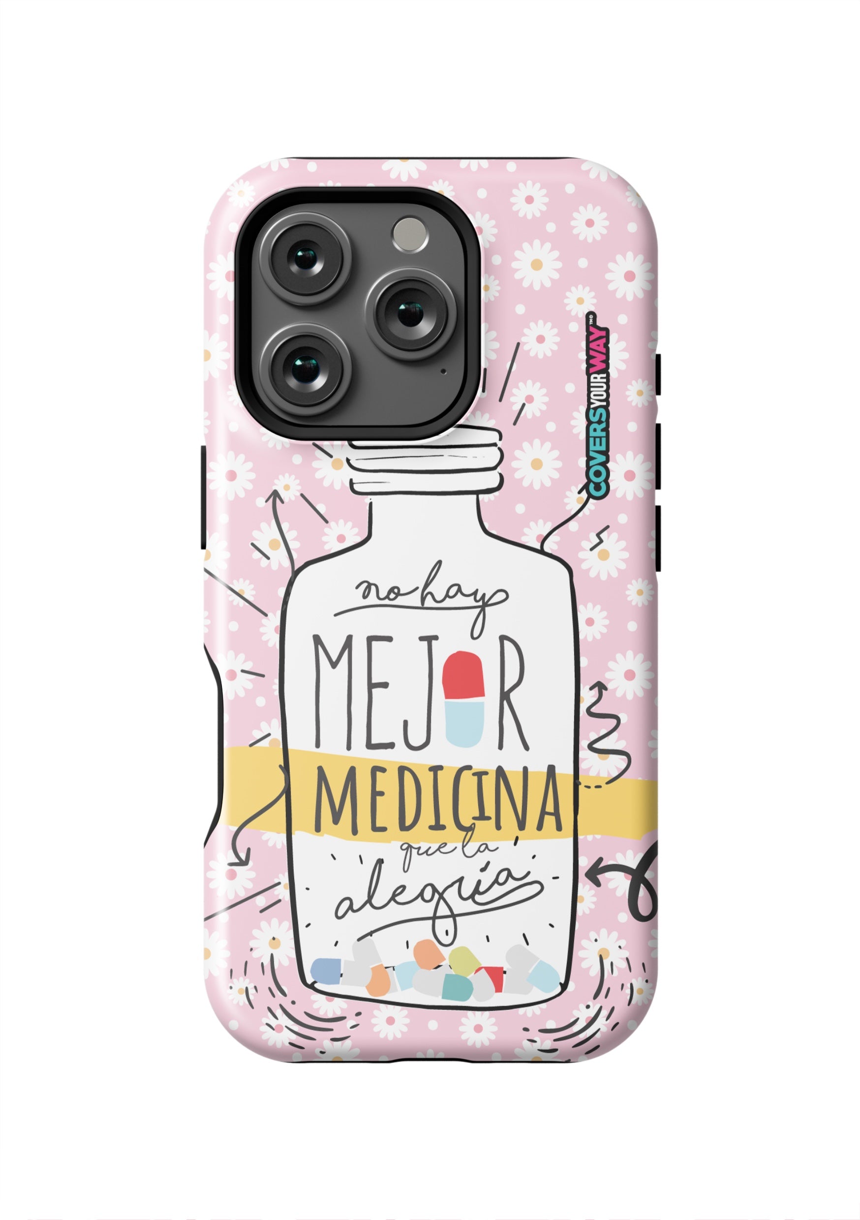 Fill your phone with good vibes with this durable case, designed with the phrase "Alegría RX". It not only keeps your device protected from bumps and scratches but also spreads a daily dose of happiness. Perfect for those who prescribe joy wherever they go!