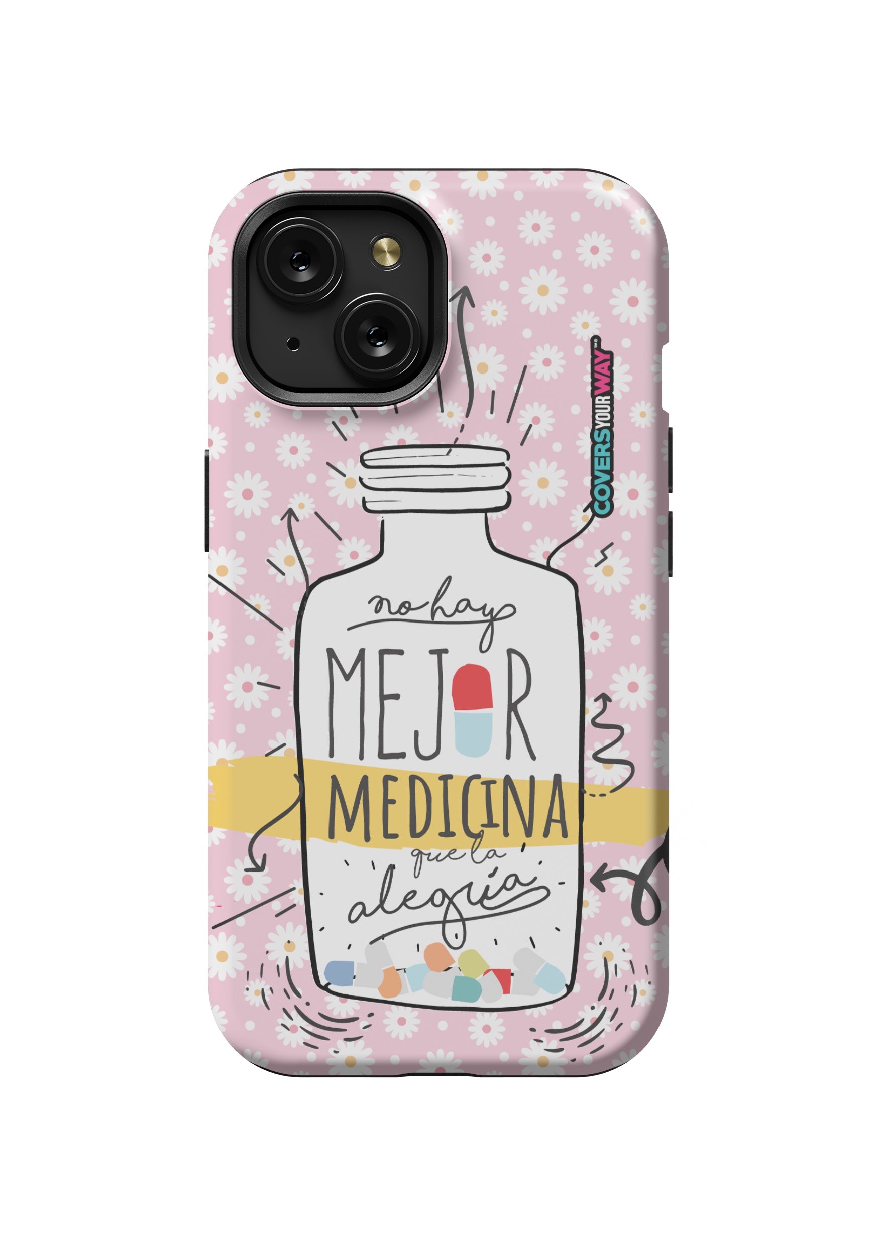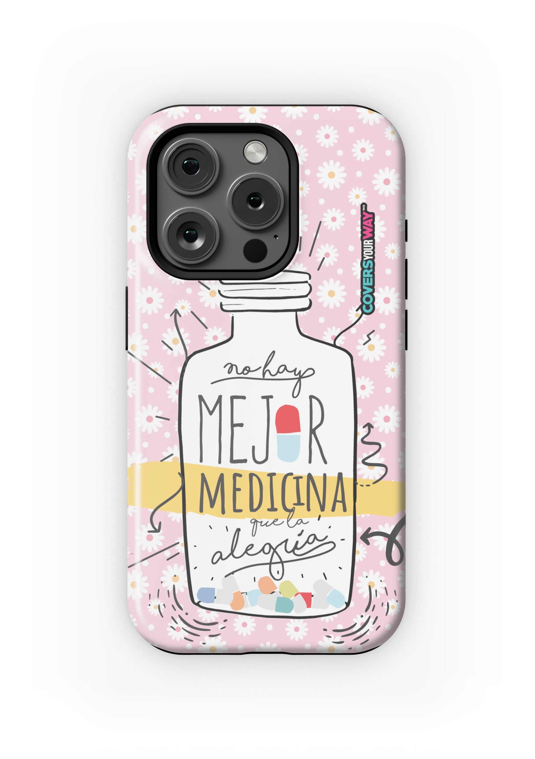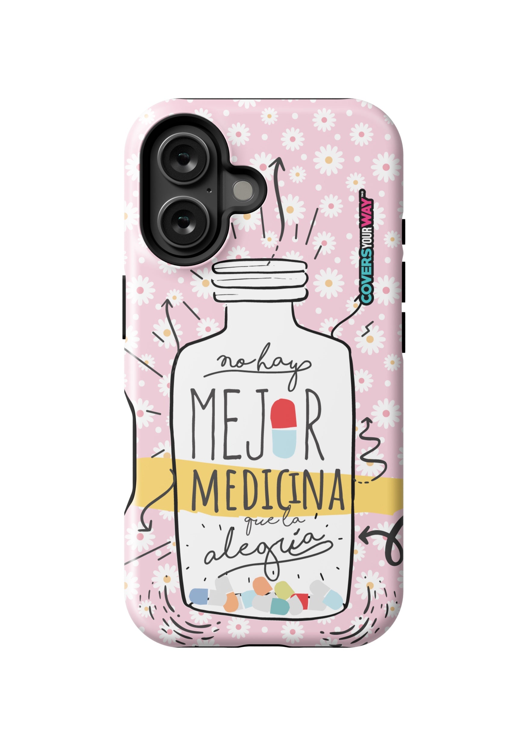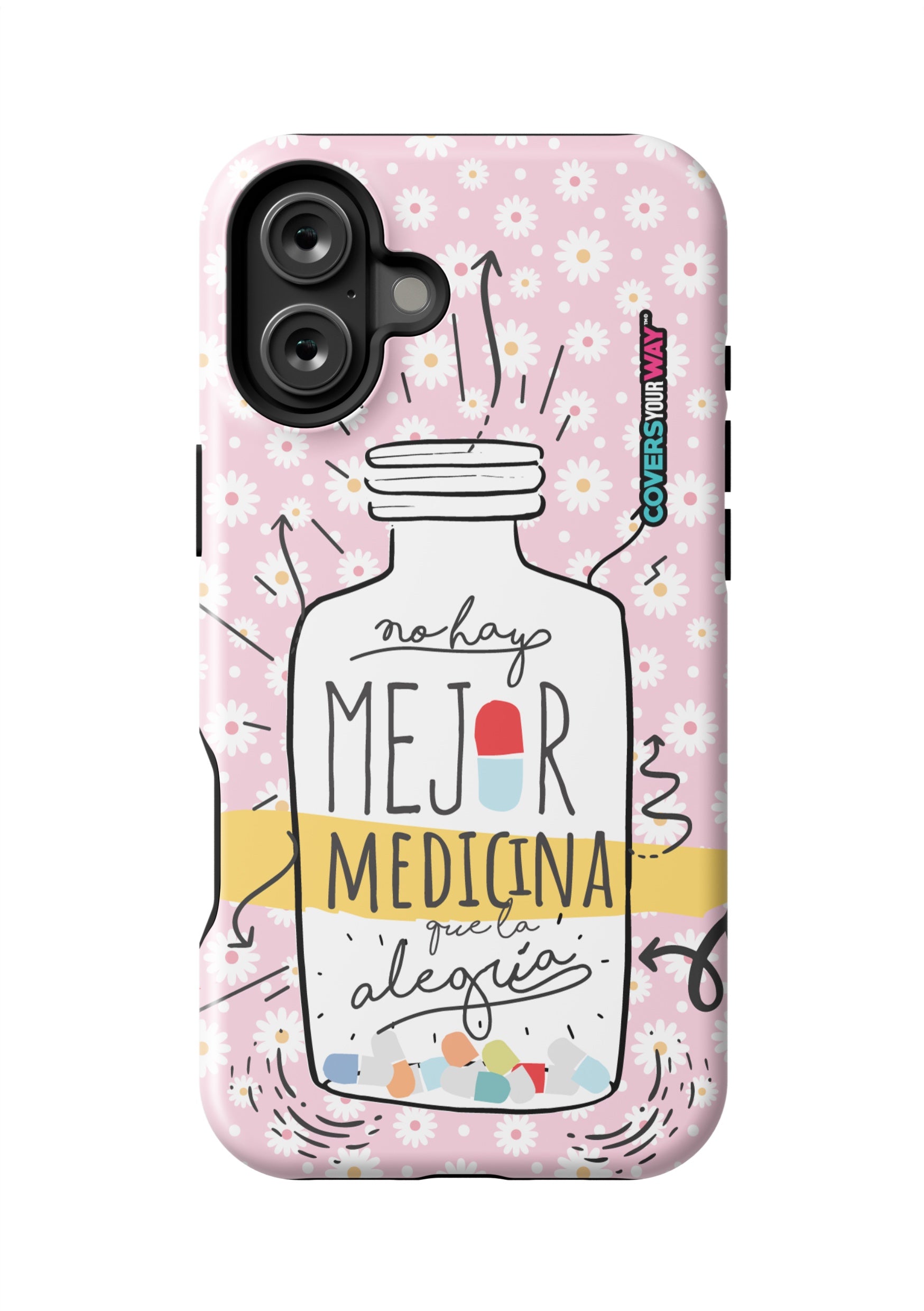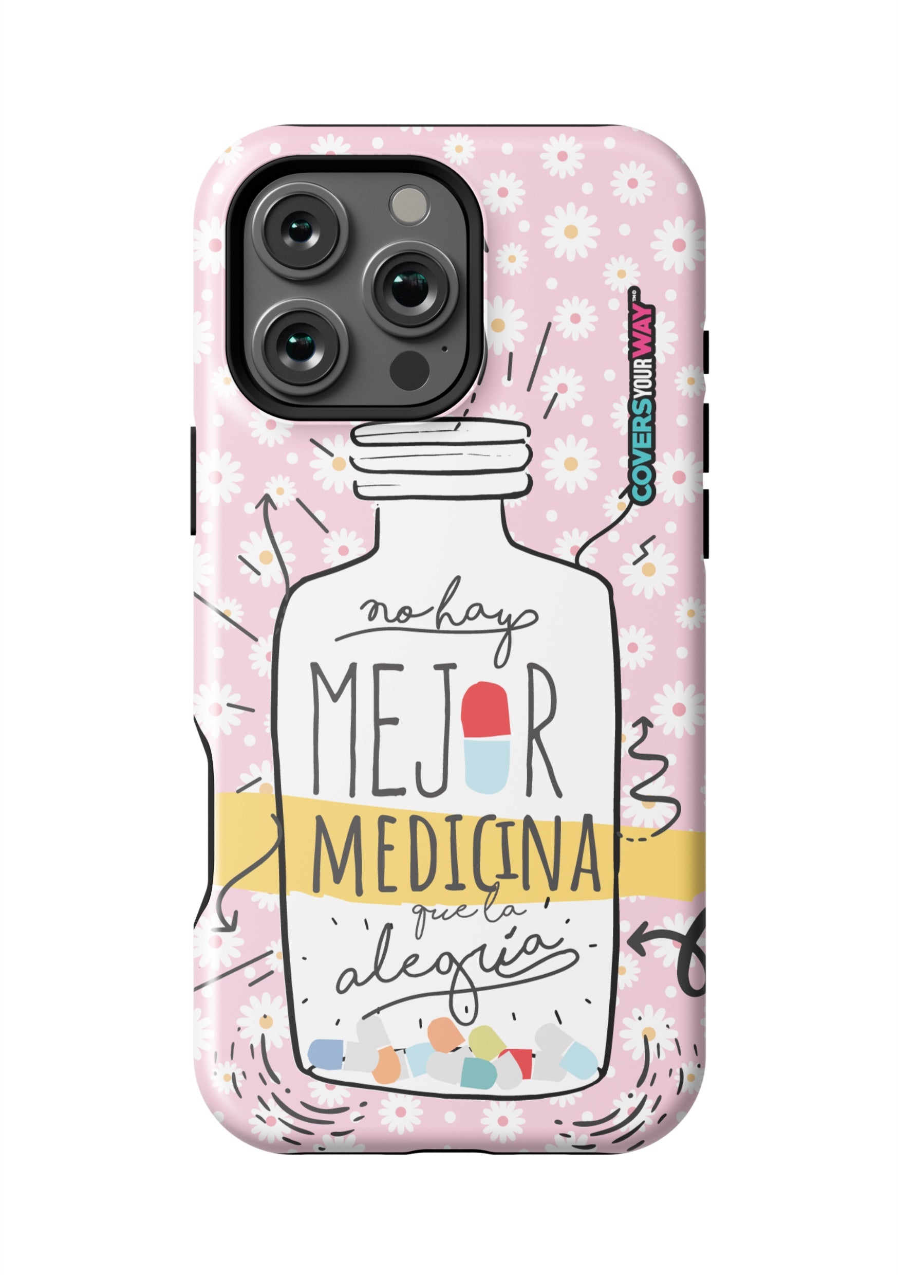 Fill your phone with good vibes with this durable case, designed with the phrase "Alegría RX". It not only keeps your device protected from bumps and scratches but also spreads a daily dose of happiness. Perfect for those who prescribe joy wherever they go!