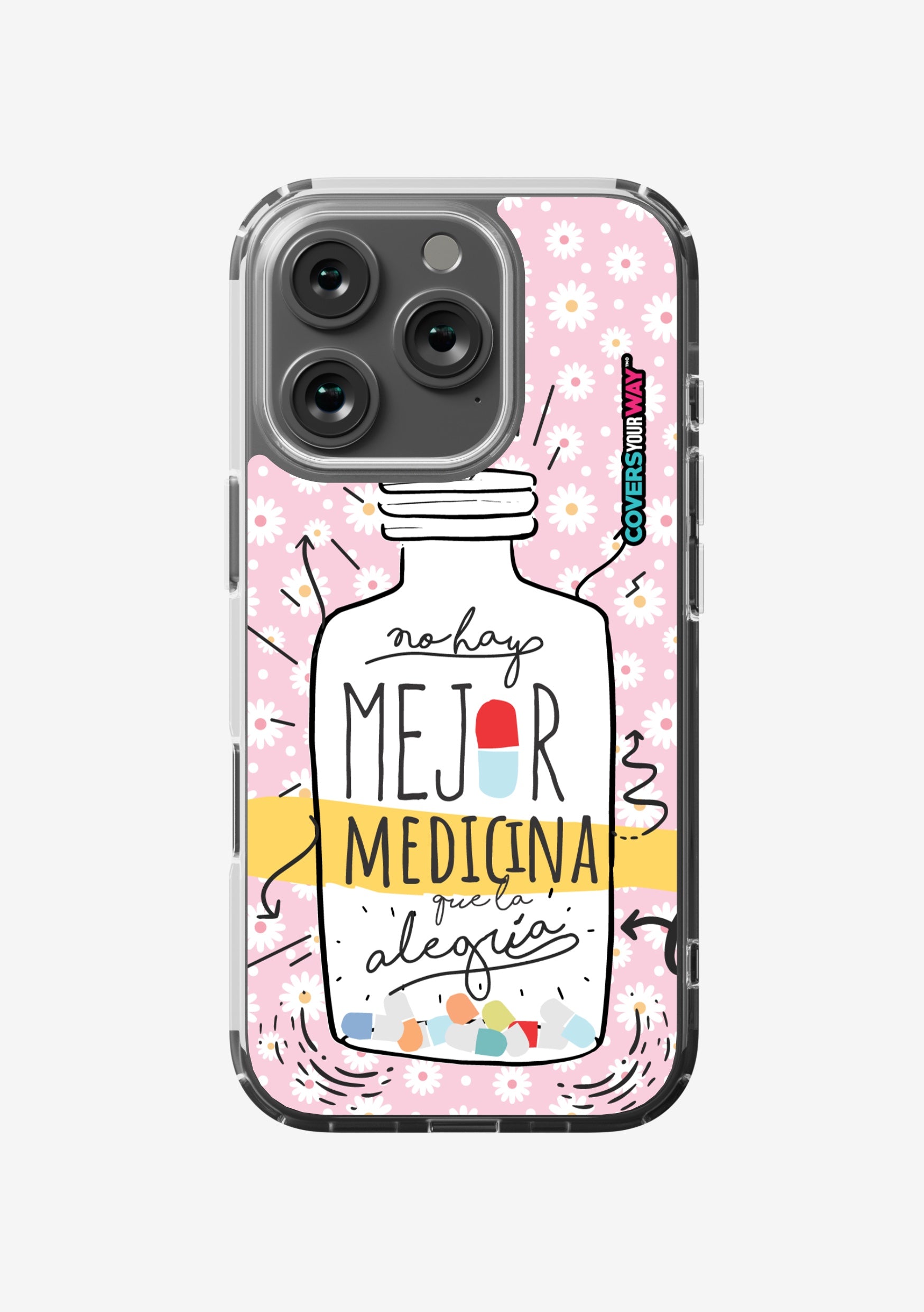 Llena tu celular de buena vibra con este protector resistente, diseñado con la frase "Alegría RX". No solo mantiene tu dispositivo protegido de golpes y rayaduras, sino que también transmite un mensaje de felicidad como receta diaria. ¡Perfecto para quienes recetan alegría a donde quiera que van!