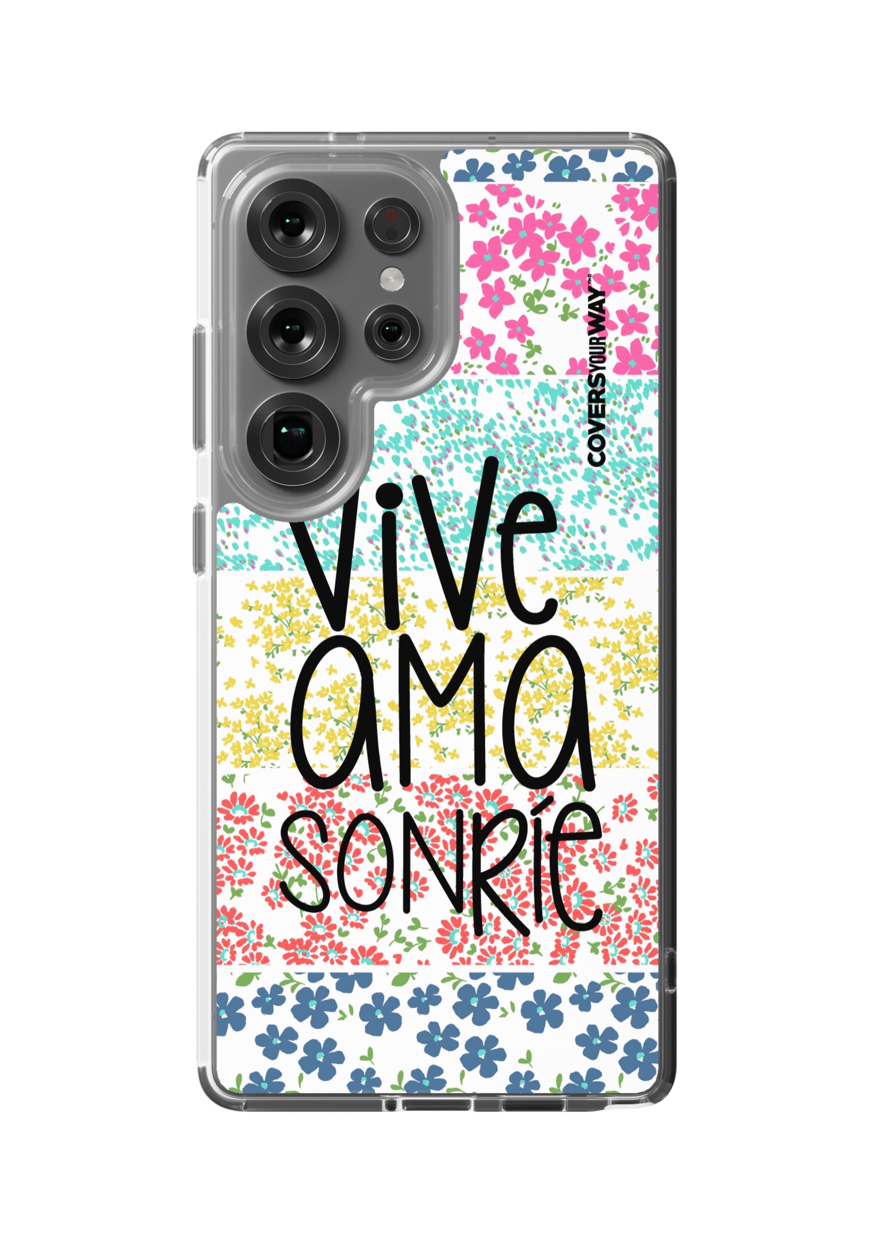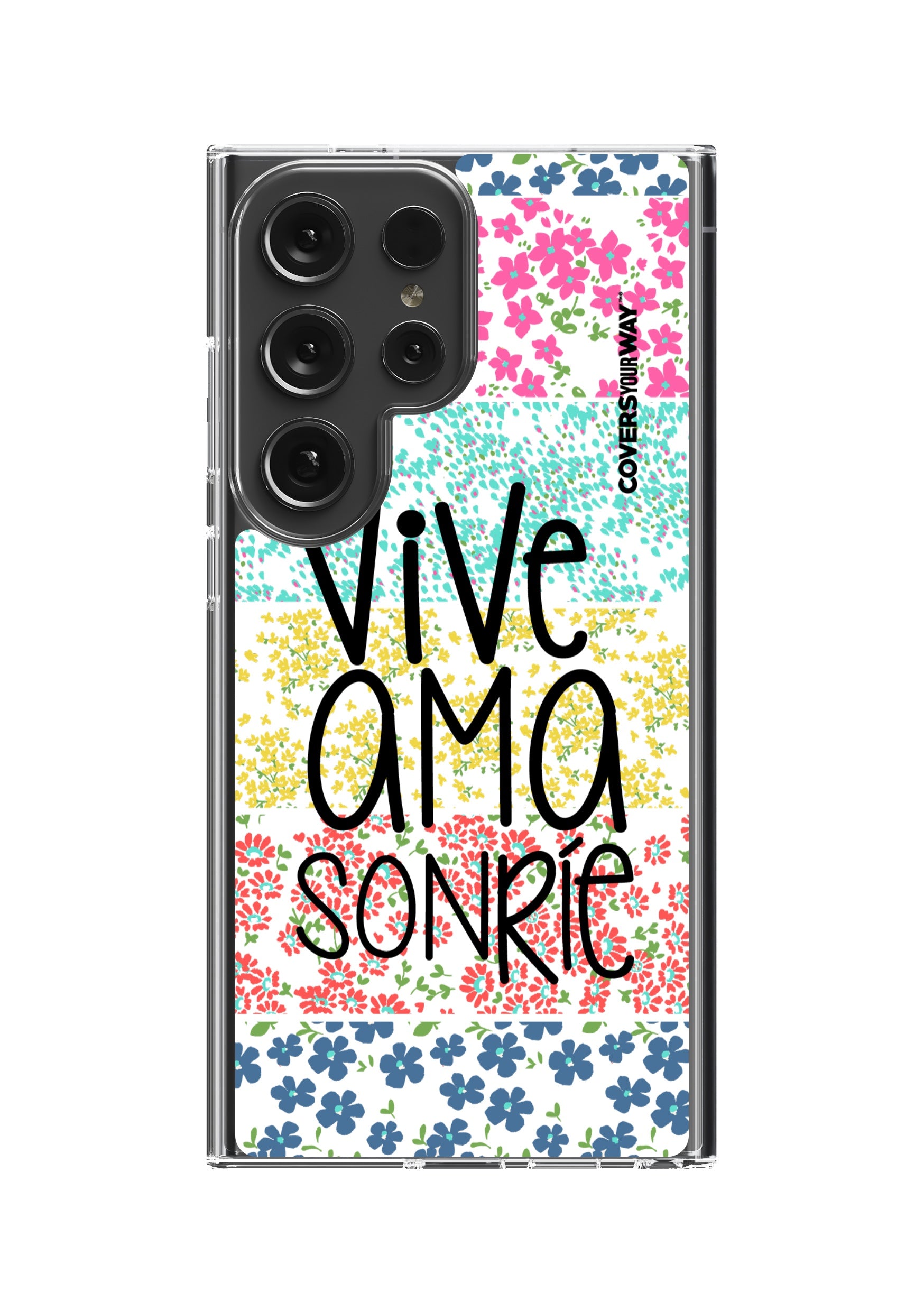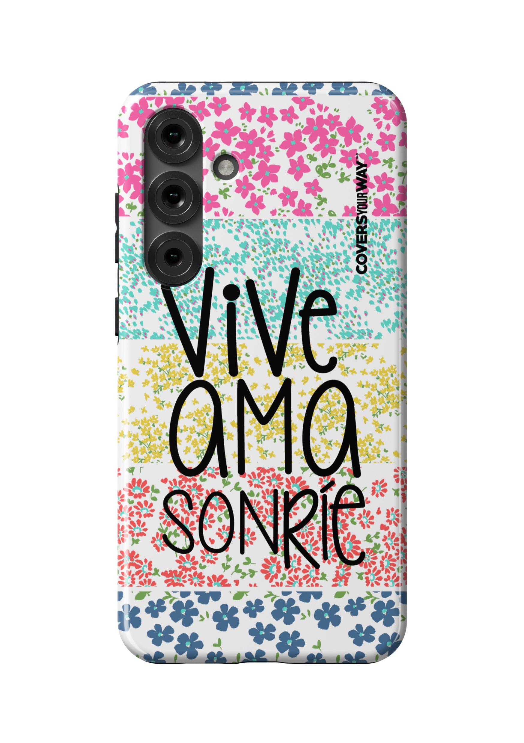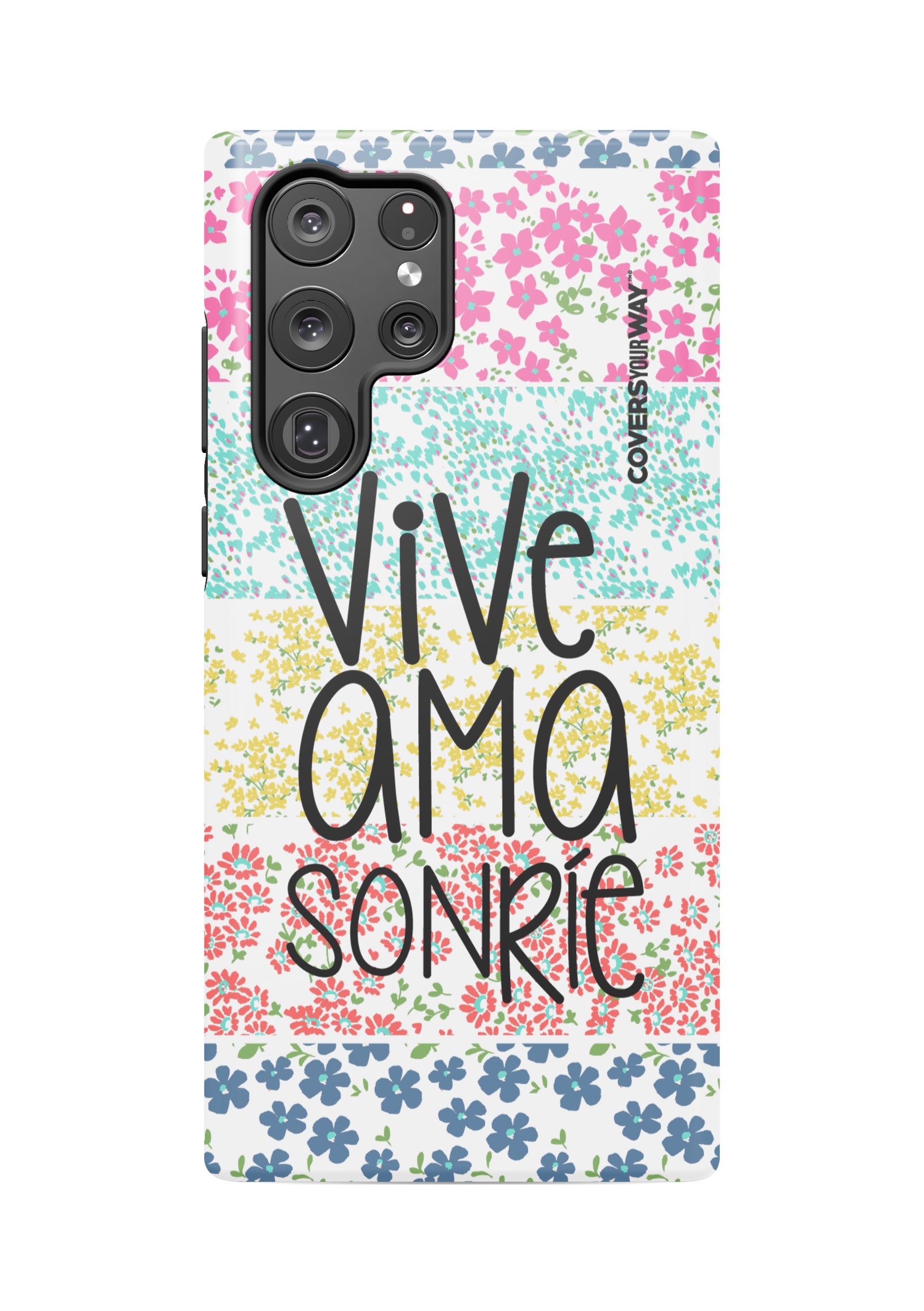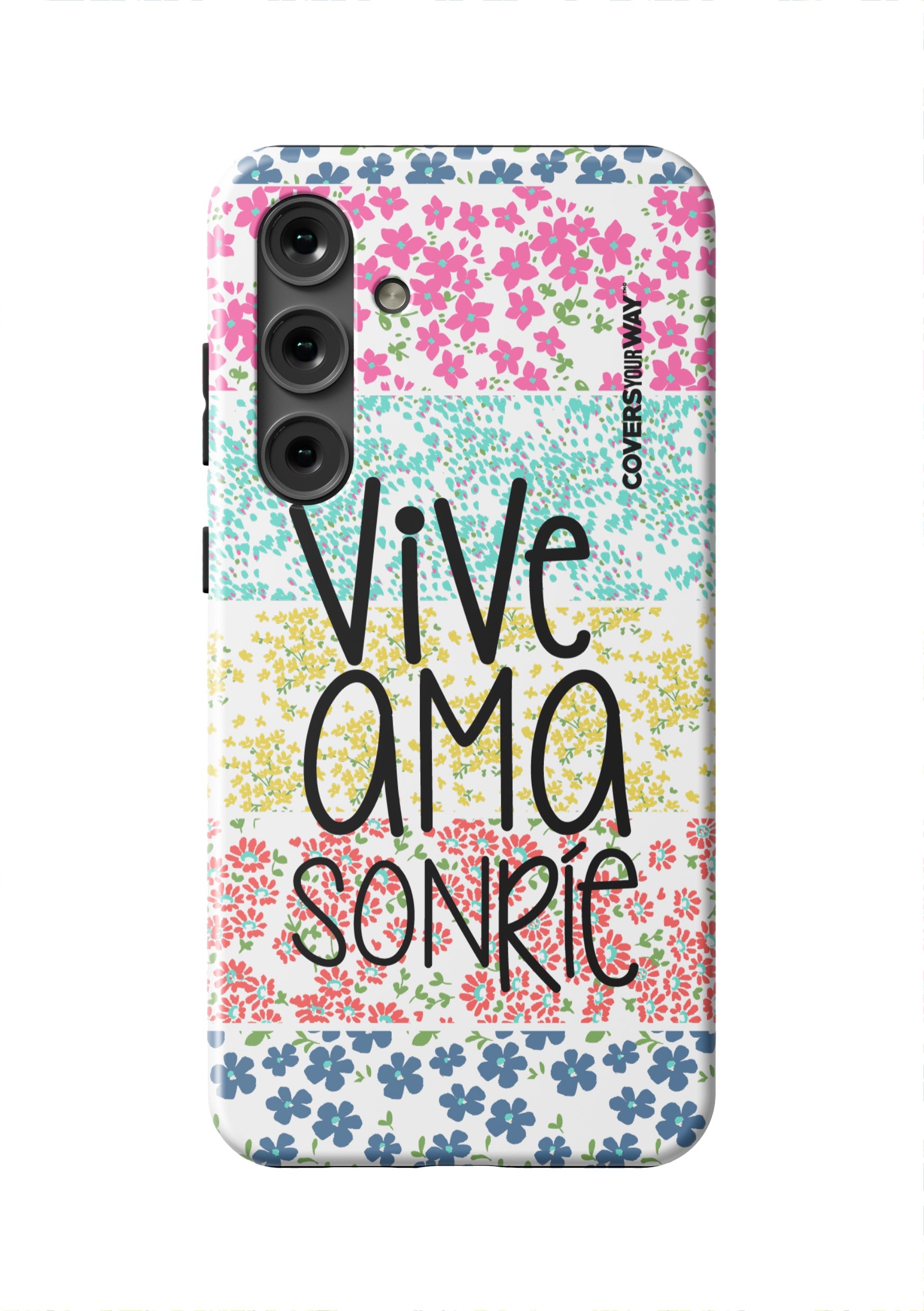 Fill your day with good vibes with this durable phone case, designed with the phrase "Vive Ama Sonríe". It protects your phone from bumps and scratches while reminding you to enjoy life, love deeply, and always smile. Perfect for those who choose happiness every single day!