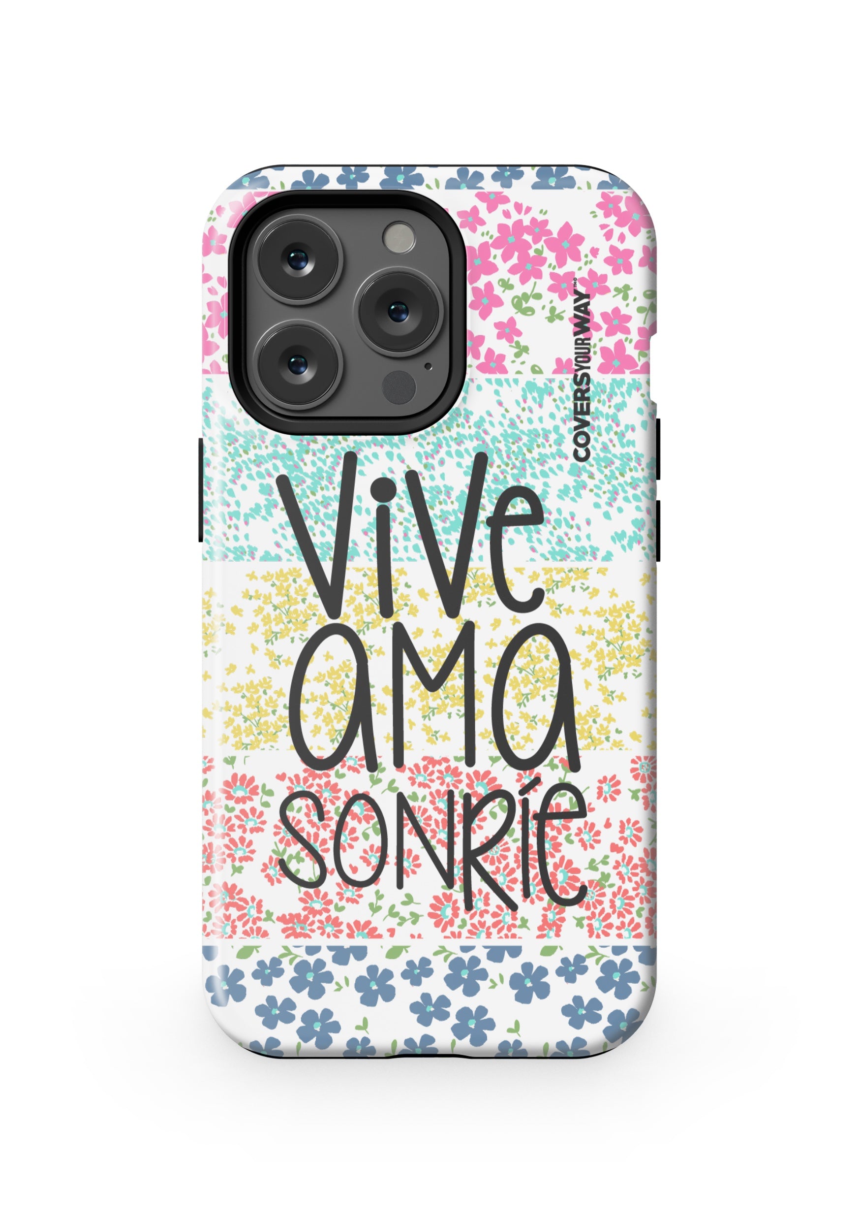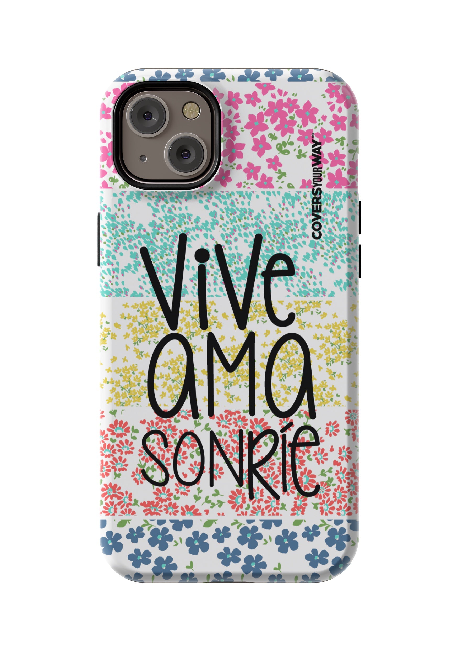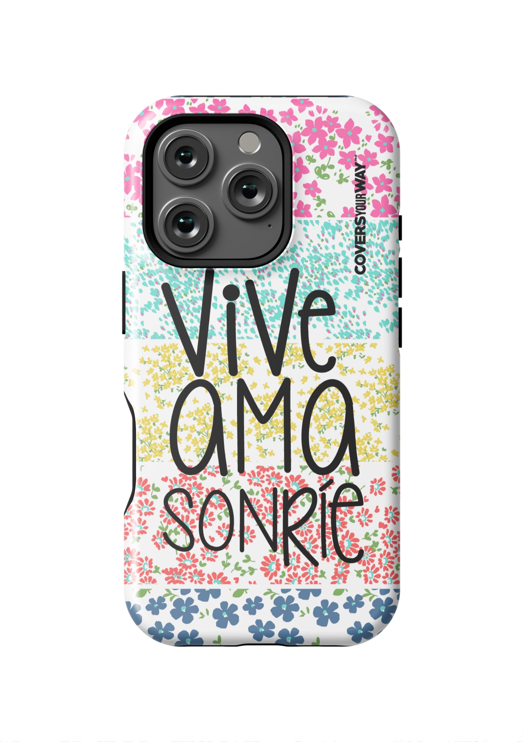 Fill your day with good vibes with this durable phone case, designed with the phrase "Vive Ama Sonríe". It protects your phone from bumps and scratches while reminding you to enjoy life, love deeply, and always smile. Perfect for those who choose happiness every single day!