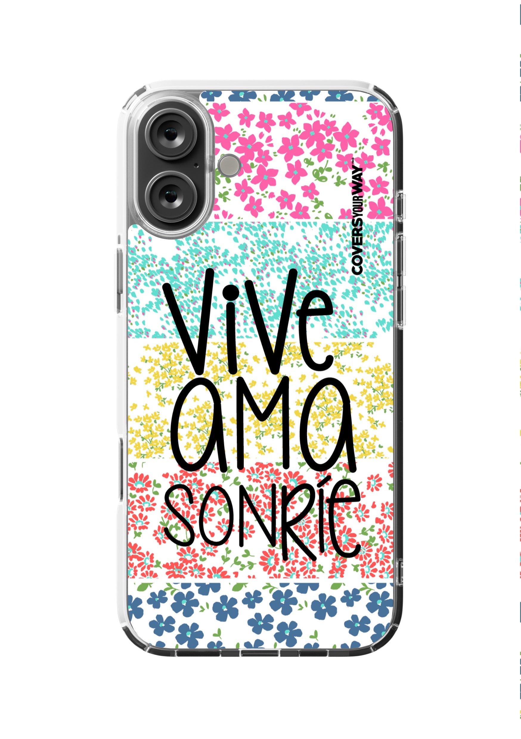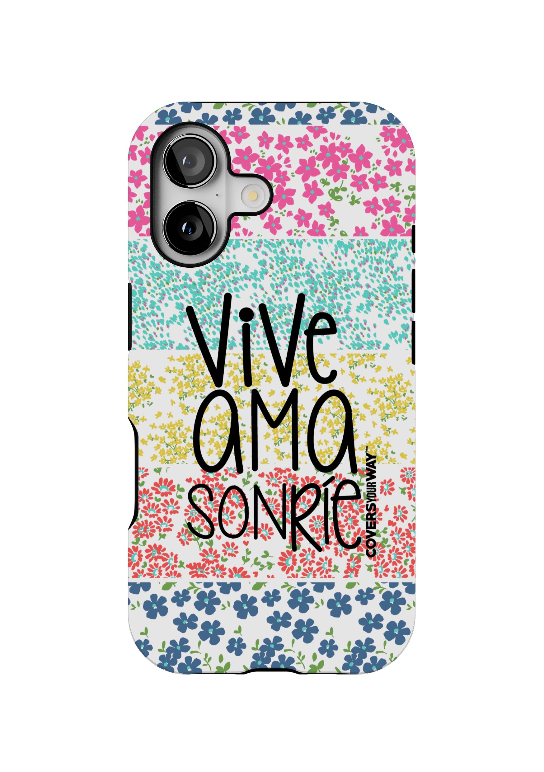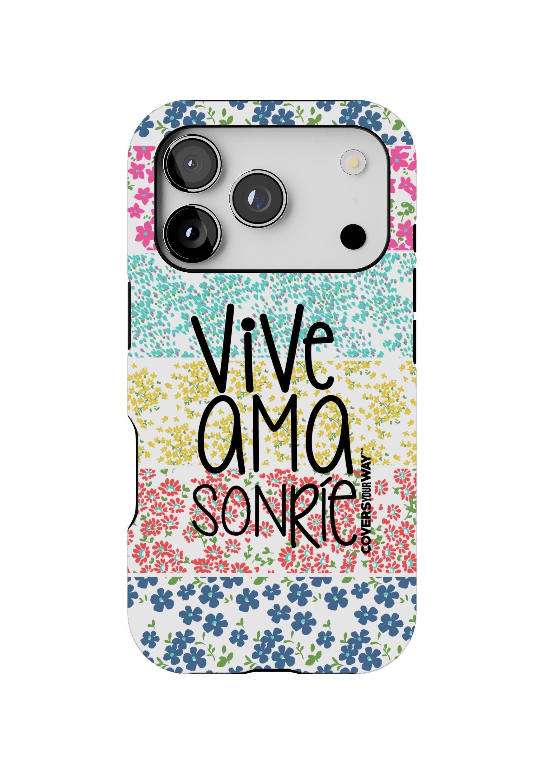 Fill your day with good vibes with this durable phone case, designed with the phrase "Vive Ama Sonríe". It protects your phone from bumps and scratches while reminding you to enjoy life, love deeply, and always smile. Perfect for those who choose happiness every single day!