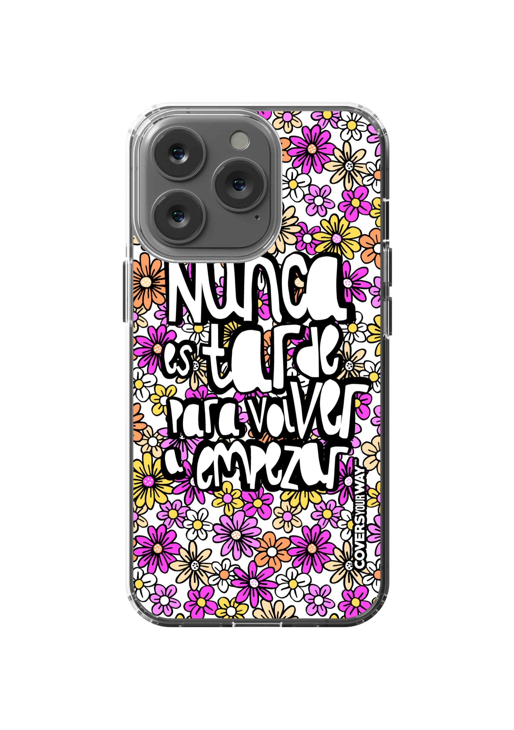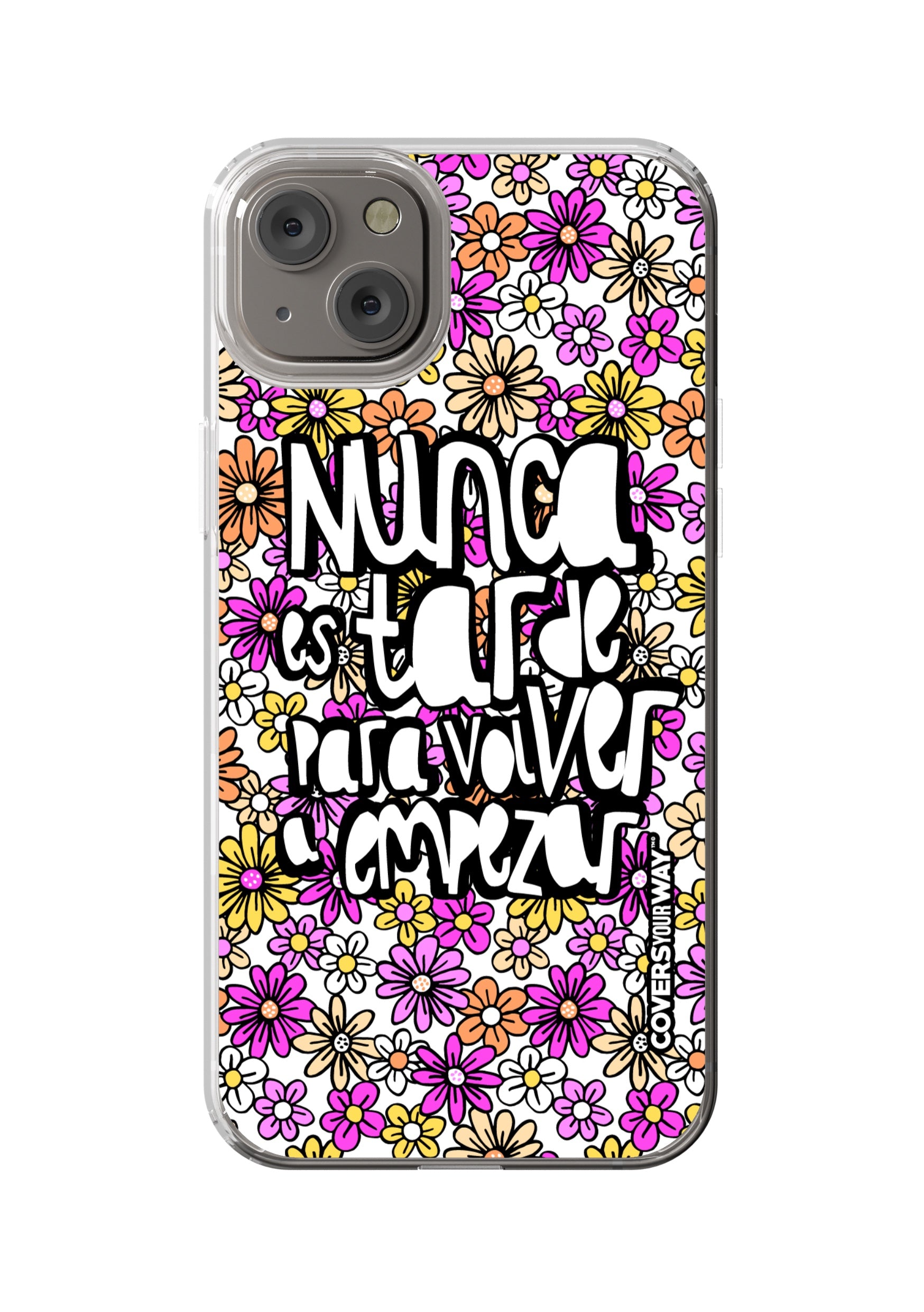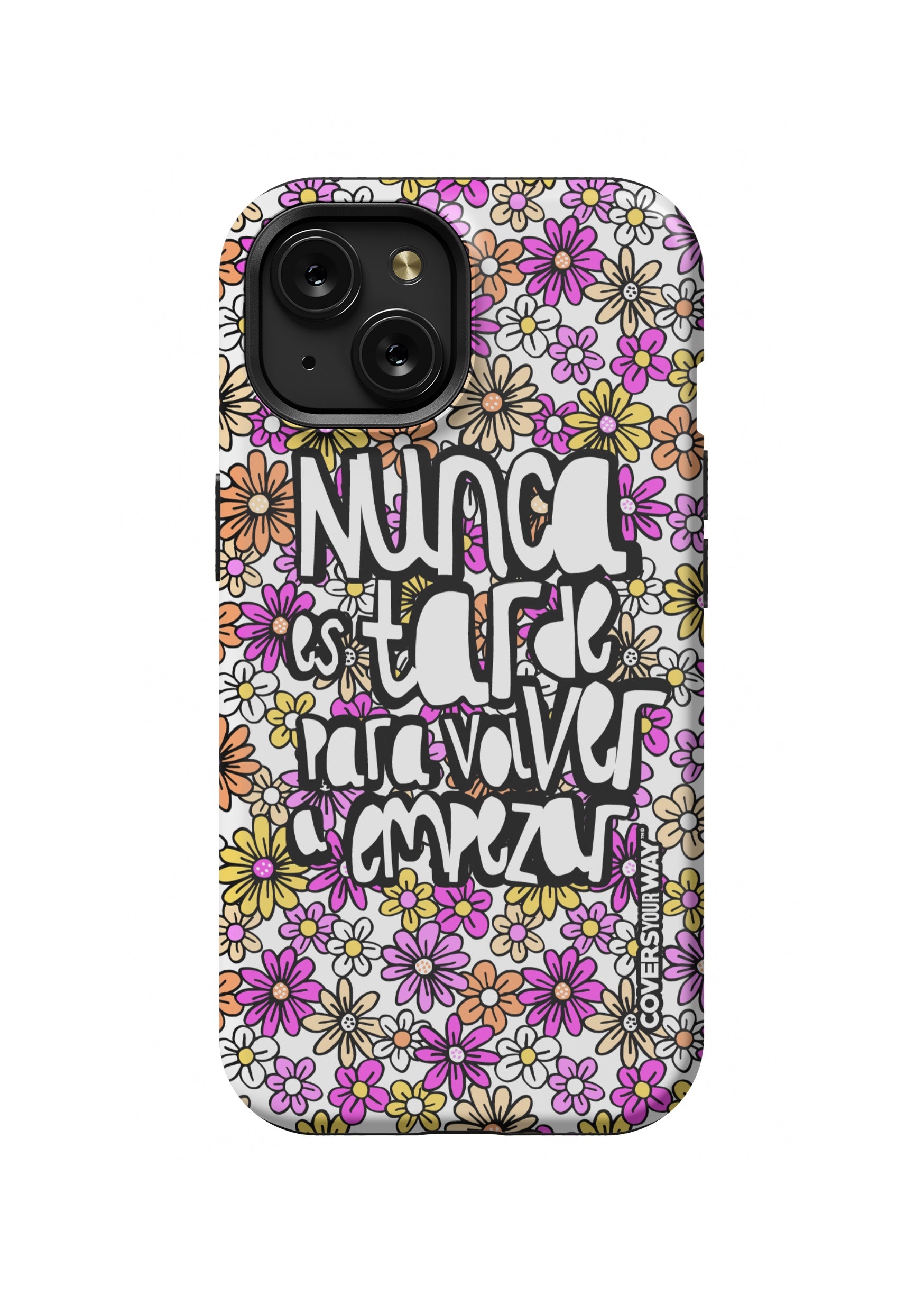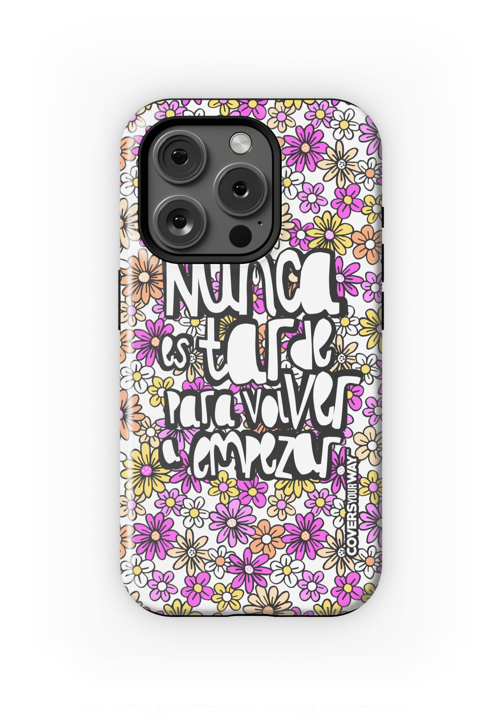 Refresh your style and energy with this durable phone case, designed with the phrase "Nunca Es Tarde Para Volver a Empezar". It protects your device from bumps and scratches while sharing a message of hope, second chances, and new beginnings.