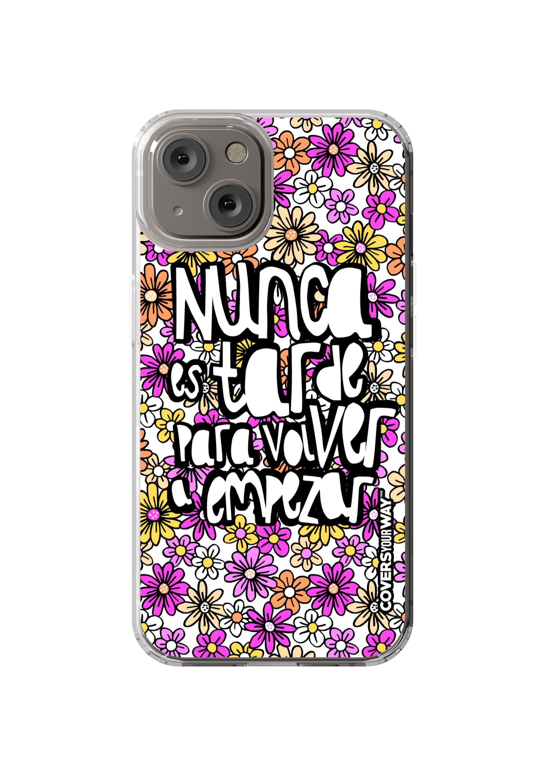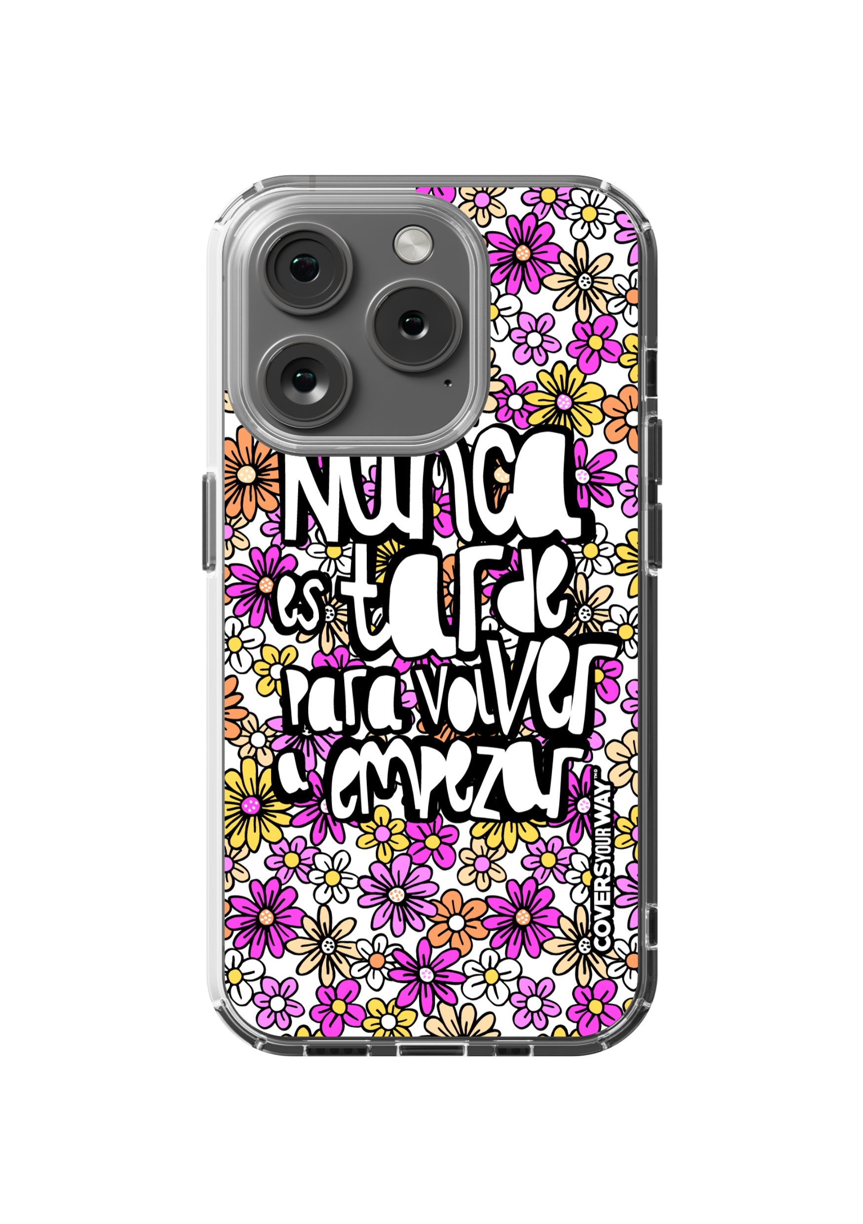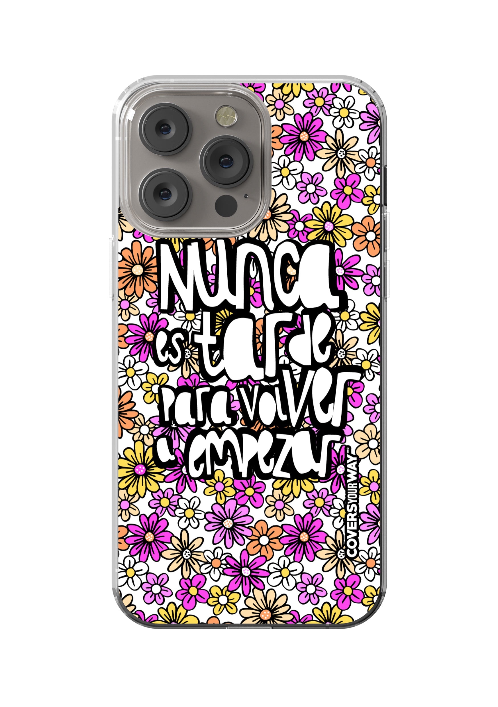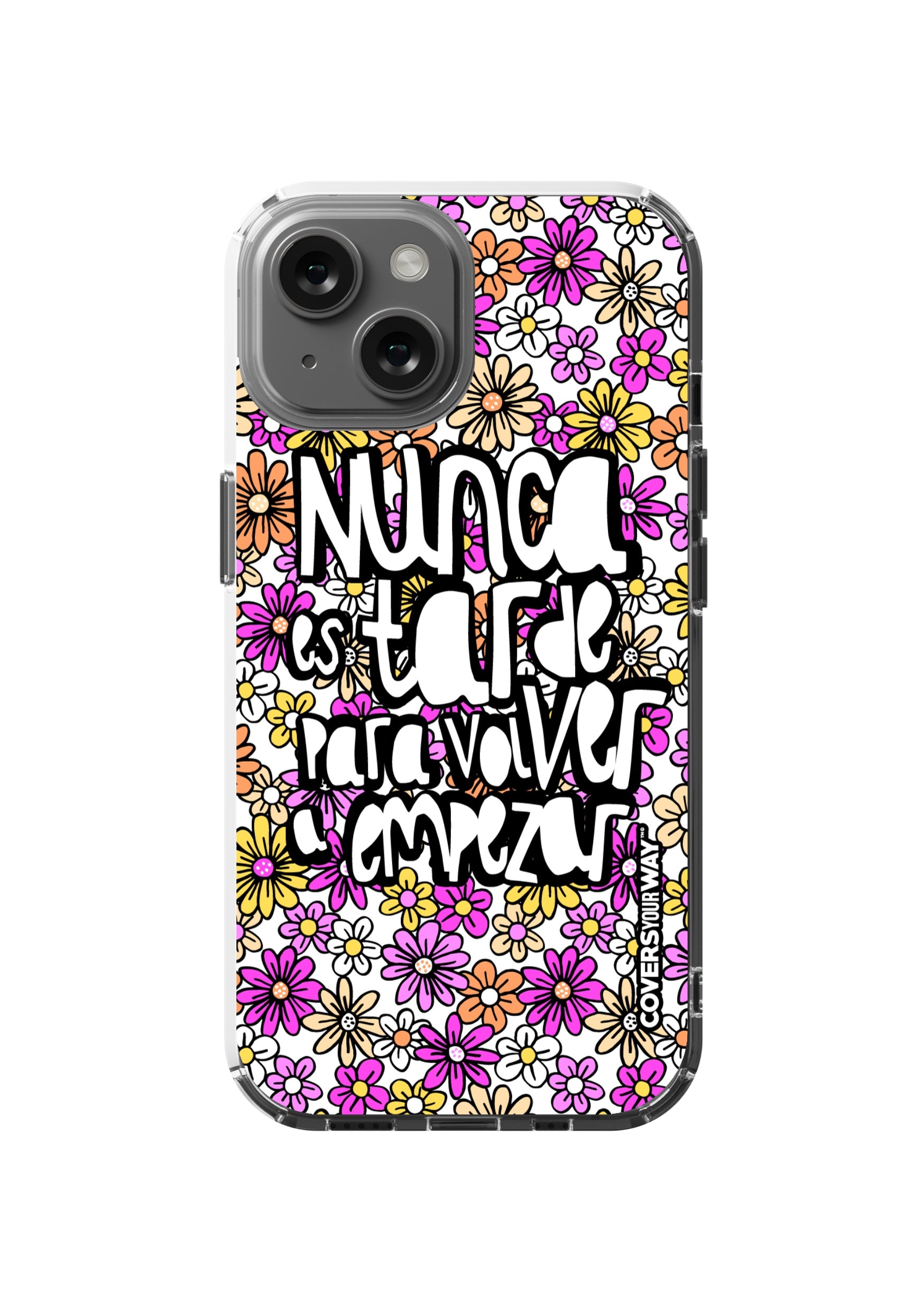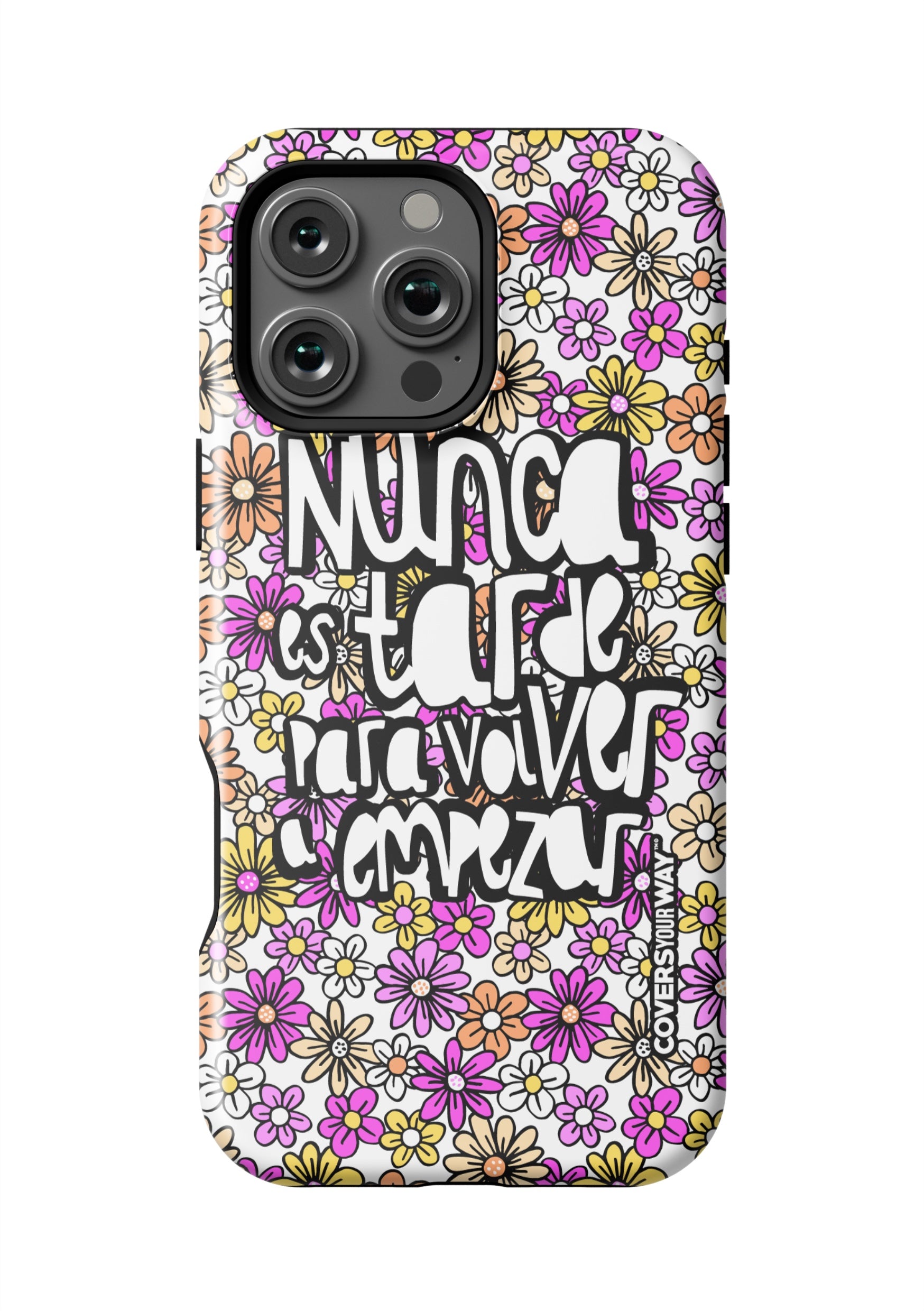 Refresh your style and energy with this durable phone case, designed with the phrase "Nunca Es Tarde Para Volver a Empezar". It protects your device from bumps and scratches while sharing a message of hope, second chances, and new beginnings.