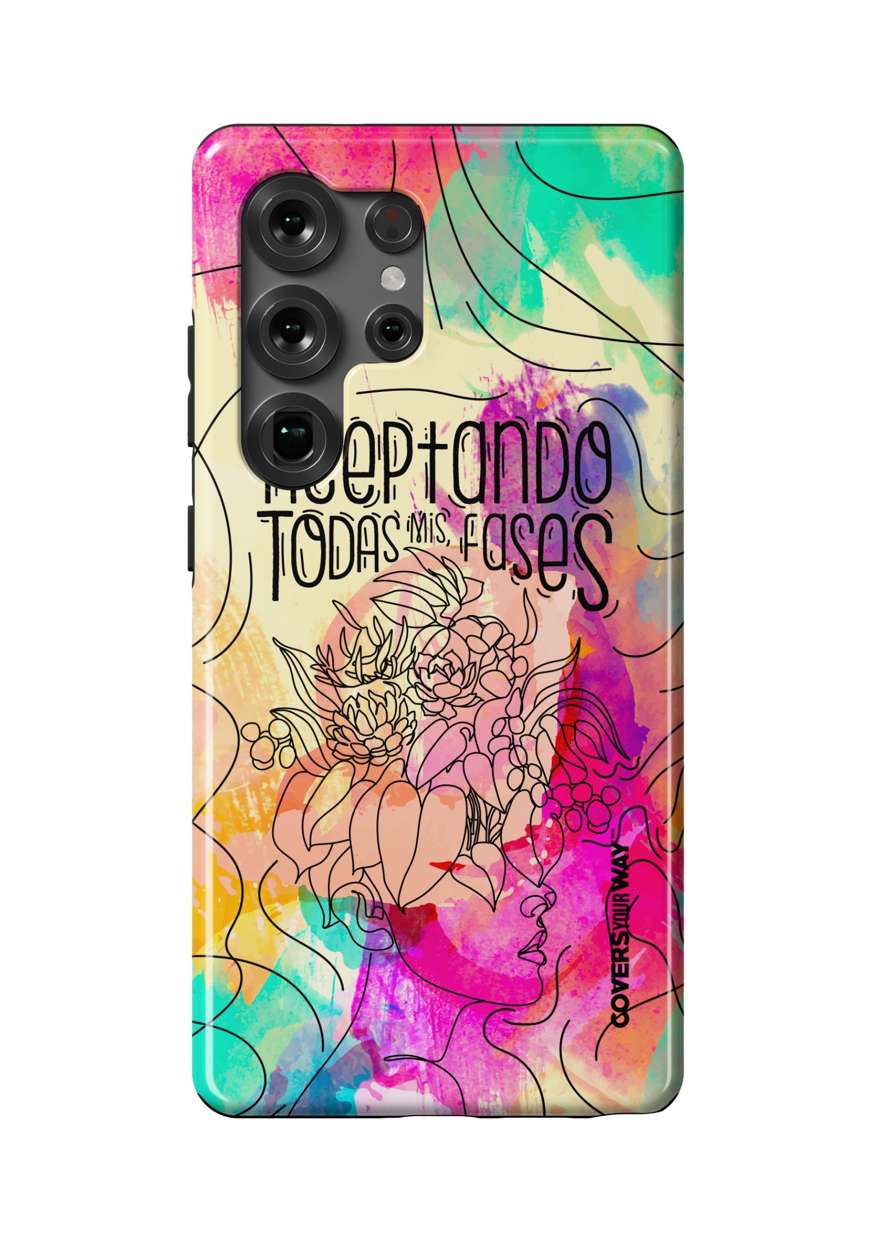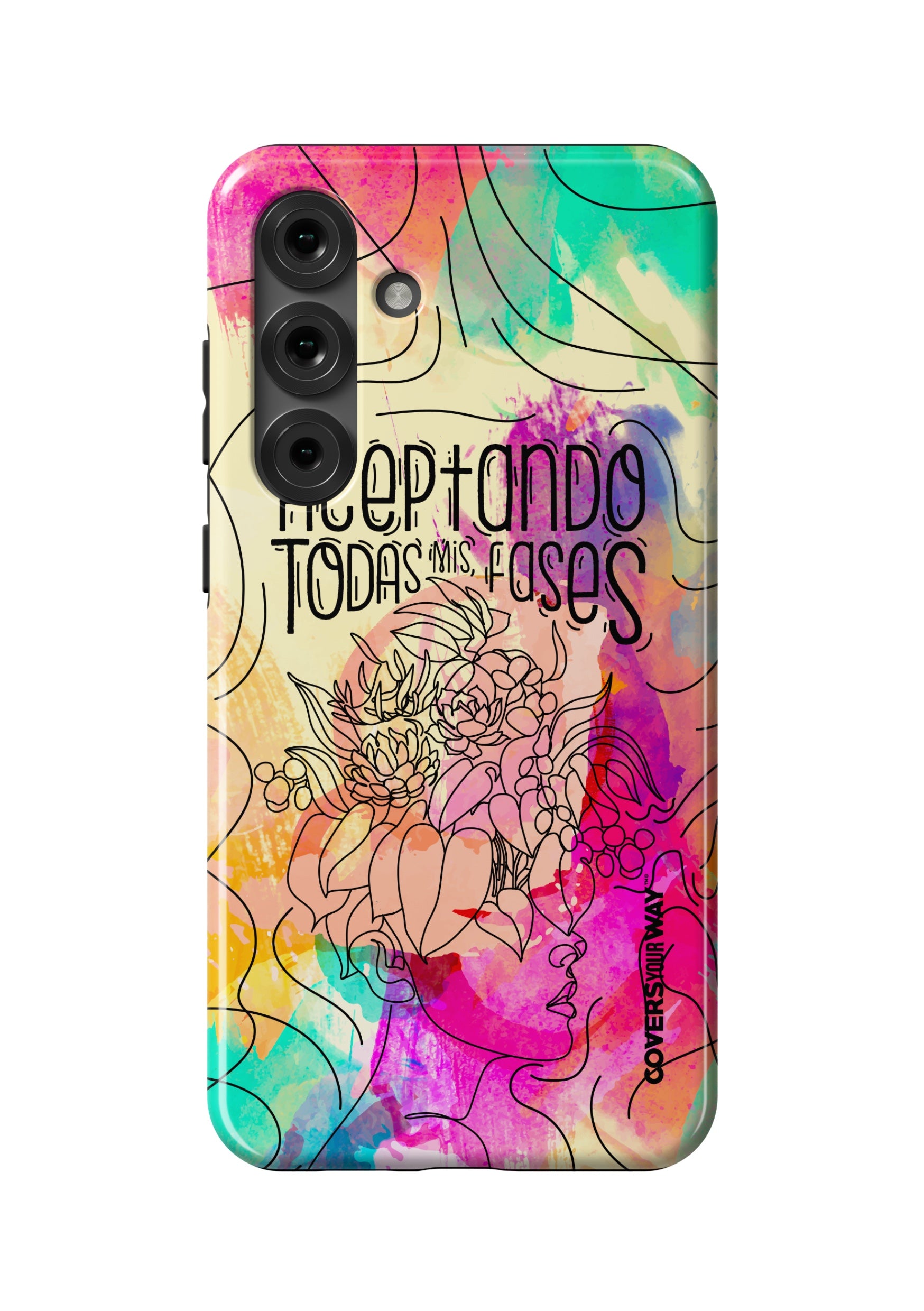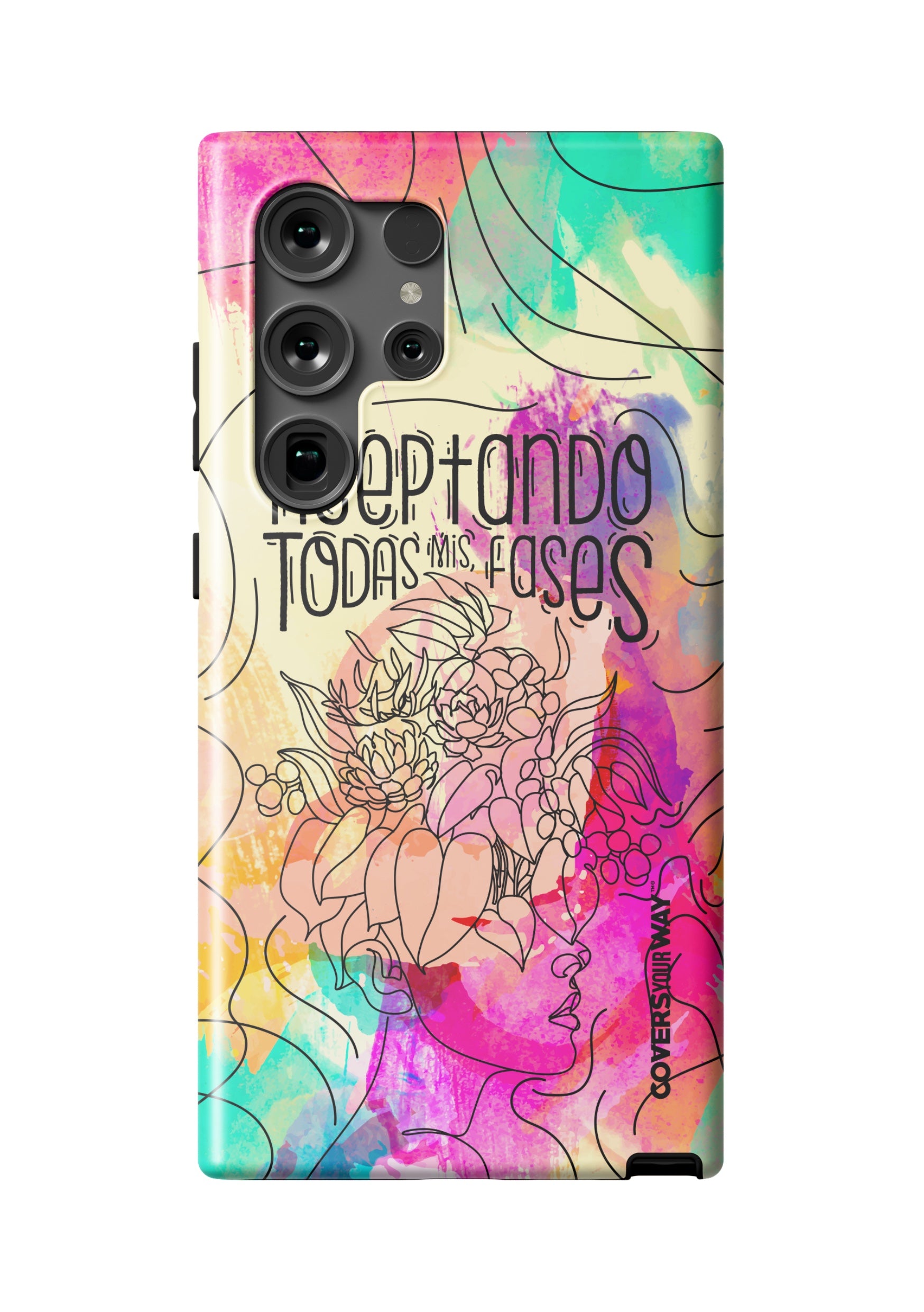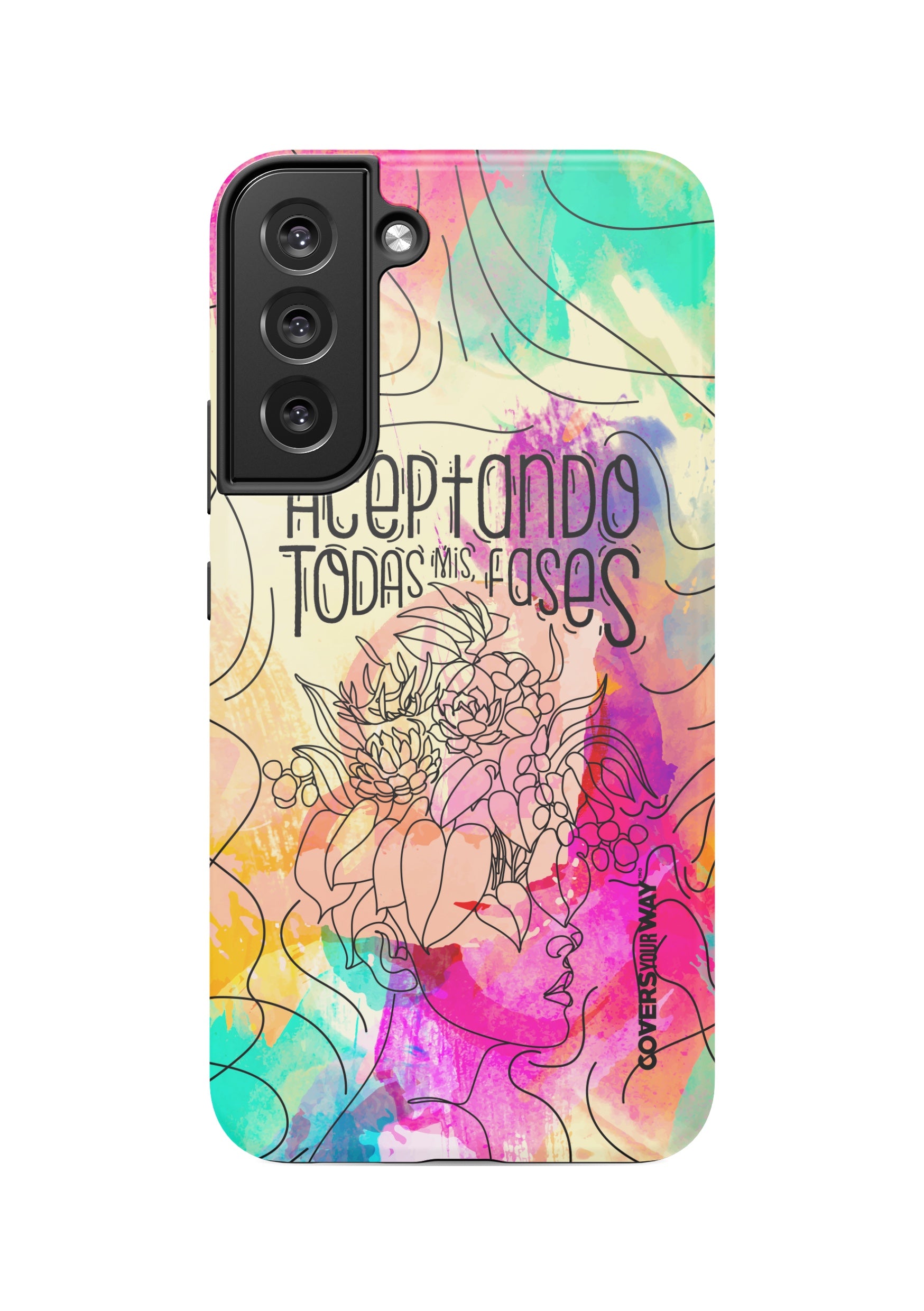 Inspired by the beauty of change and personal growth, this exclusive phone case features the phrase "Aceptando todas mis fases" in an elegant design, accented with subtle illustrations of the moon phases. Made from durable materials, it protects your phone while celebrating every stage of your evolution with style and meaning.