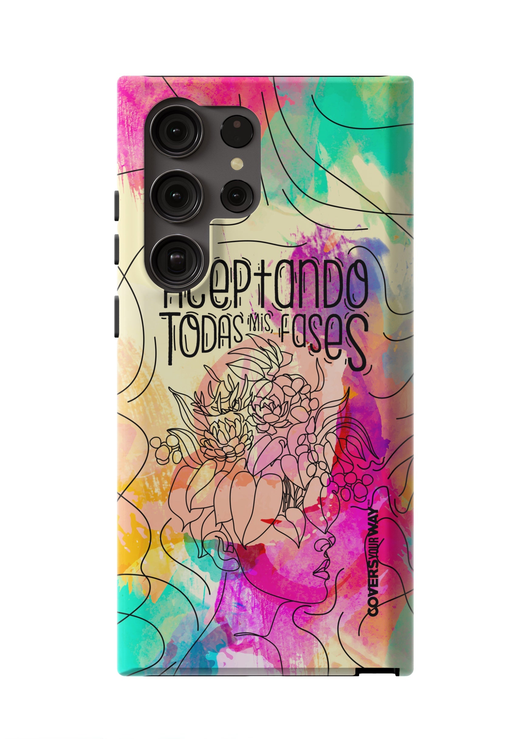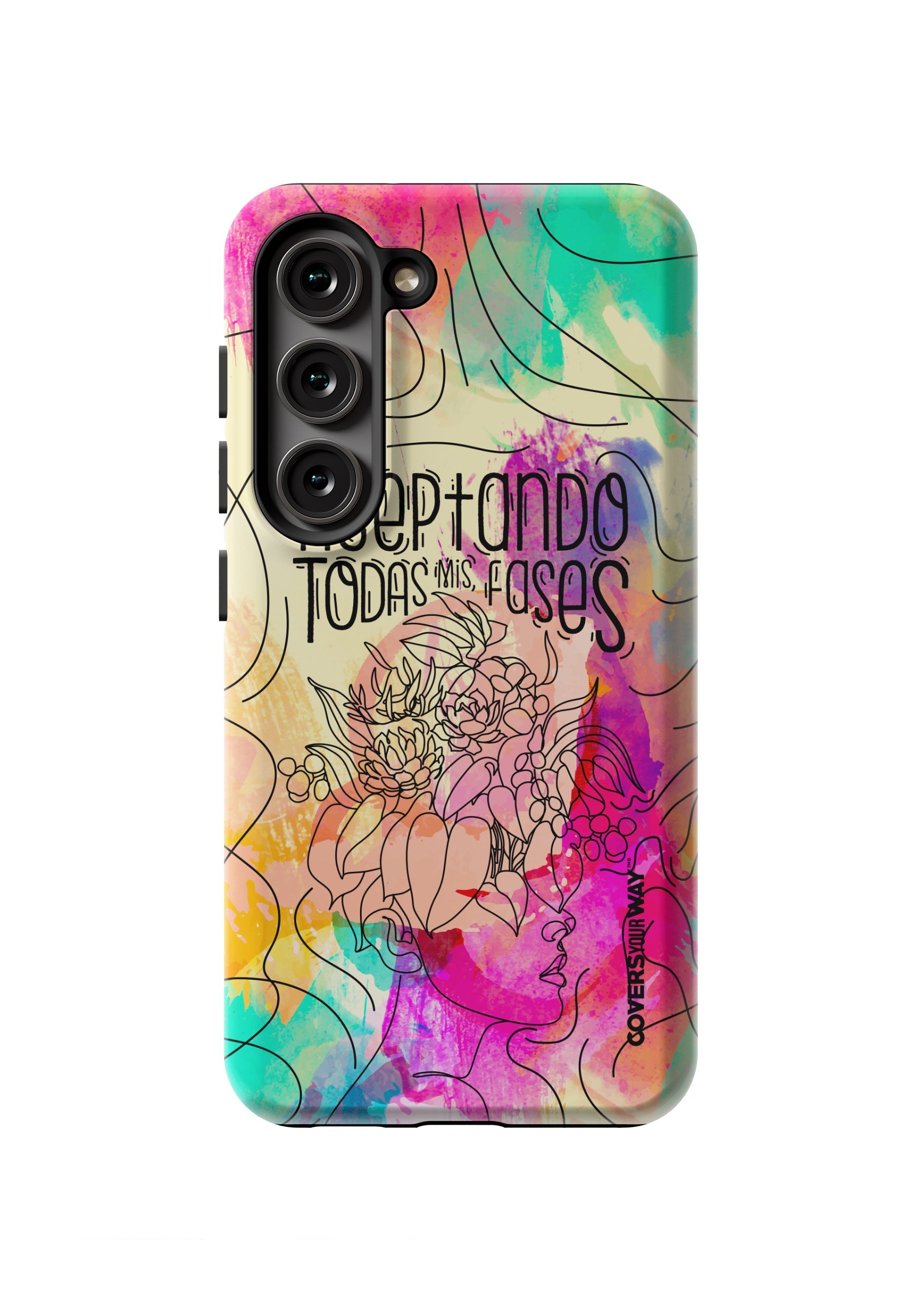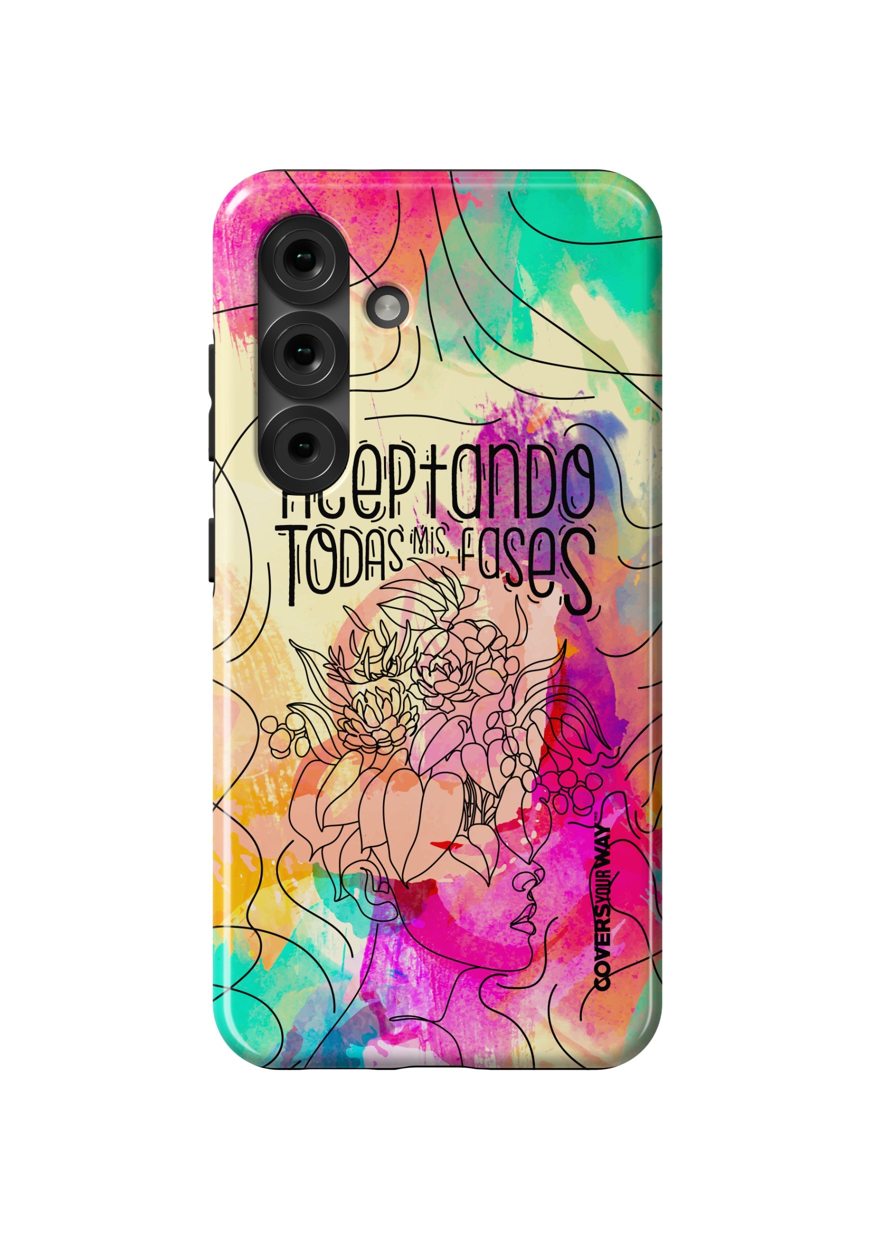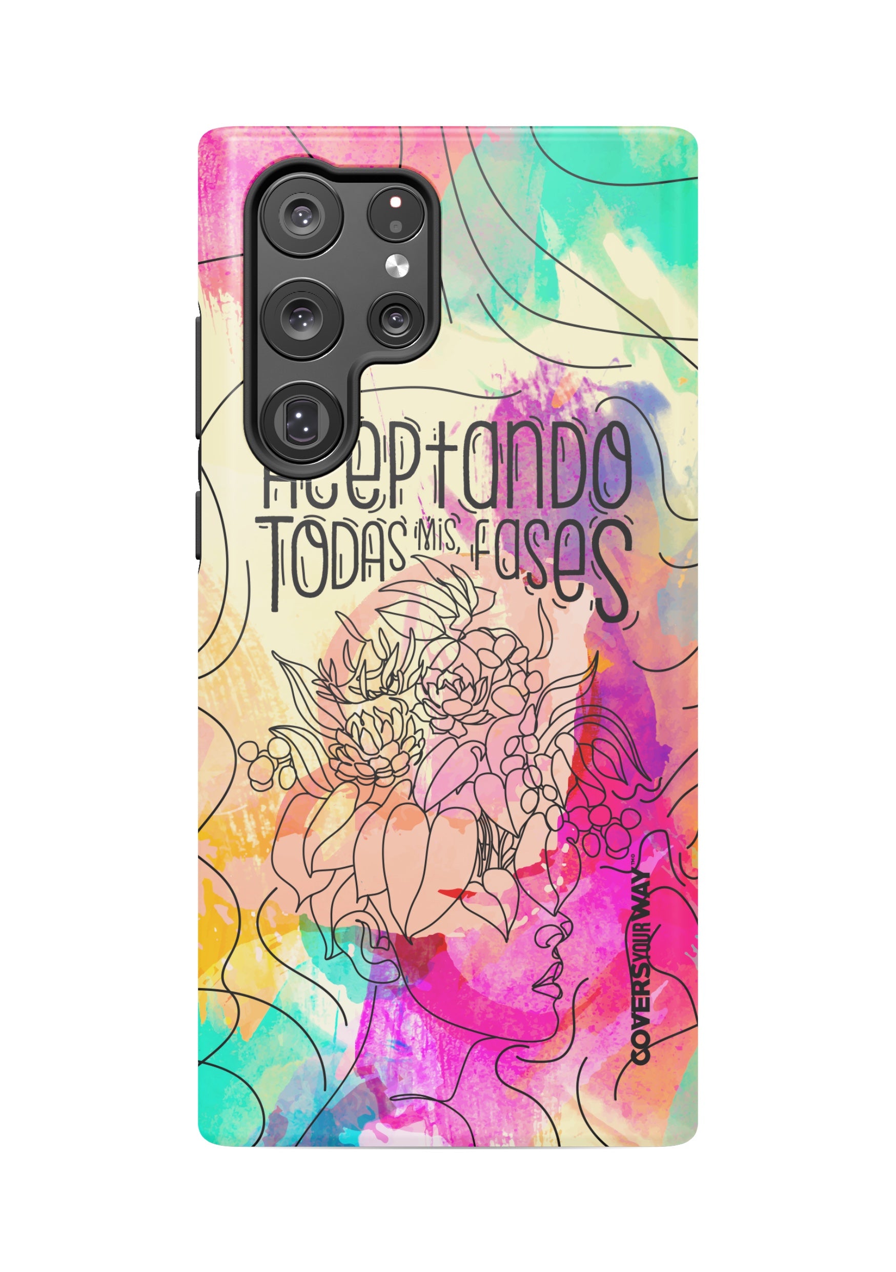 Inspired by the beauty of change and personal growth, this exclusive phone case features the phrase "Aceptando todas mis fases" in an elegant design, accented with subtle illustrations of the moon phases. Made from durable materials, it protects your phone while celebrating every stage of your evolution with style and meaning.