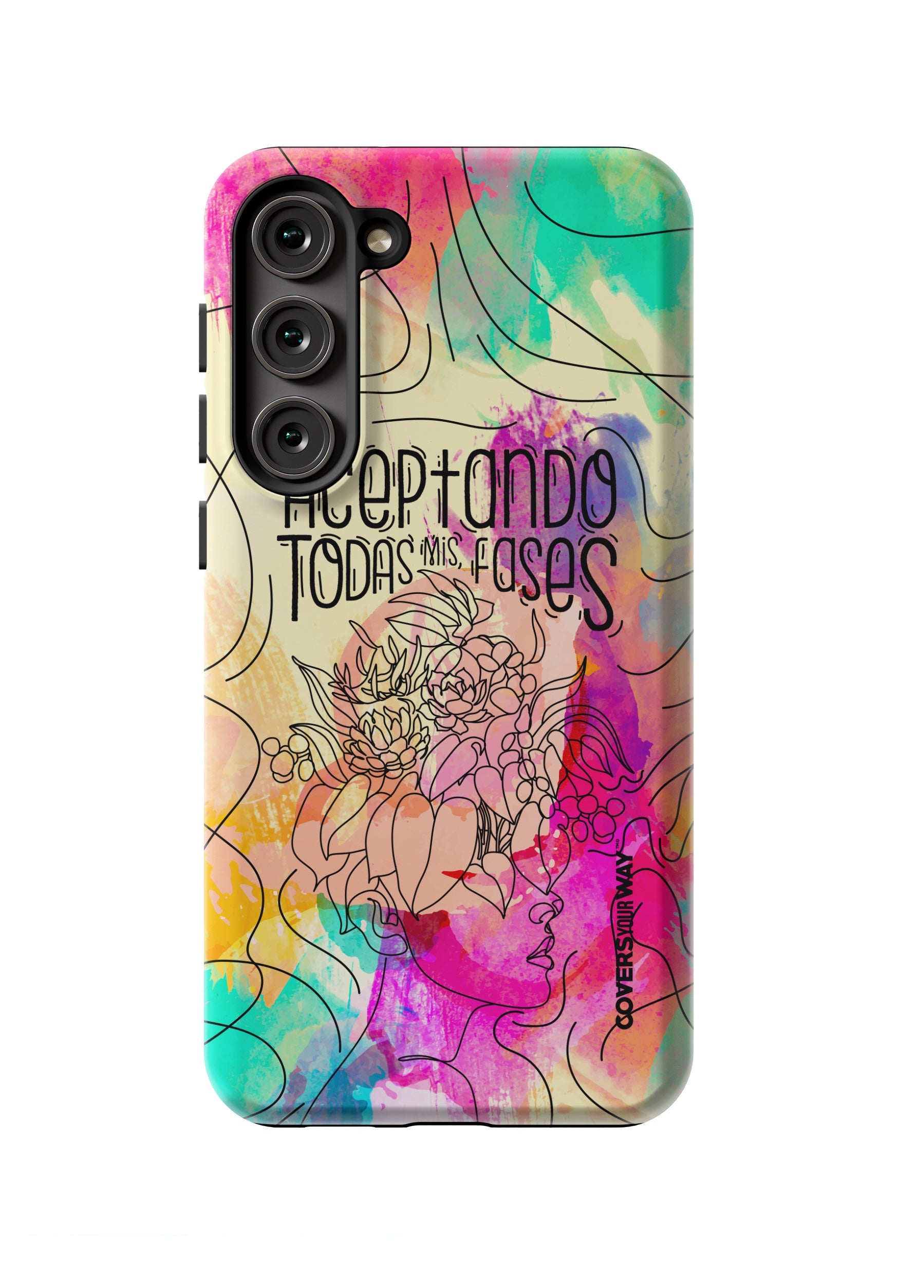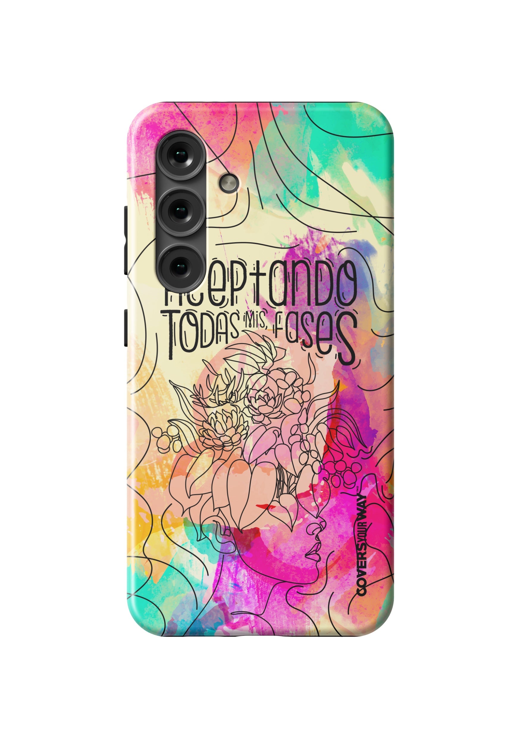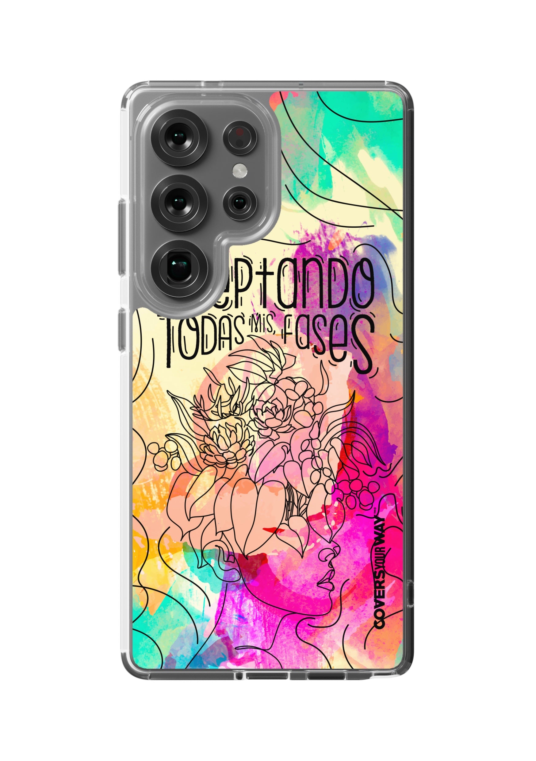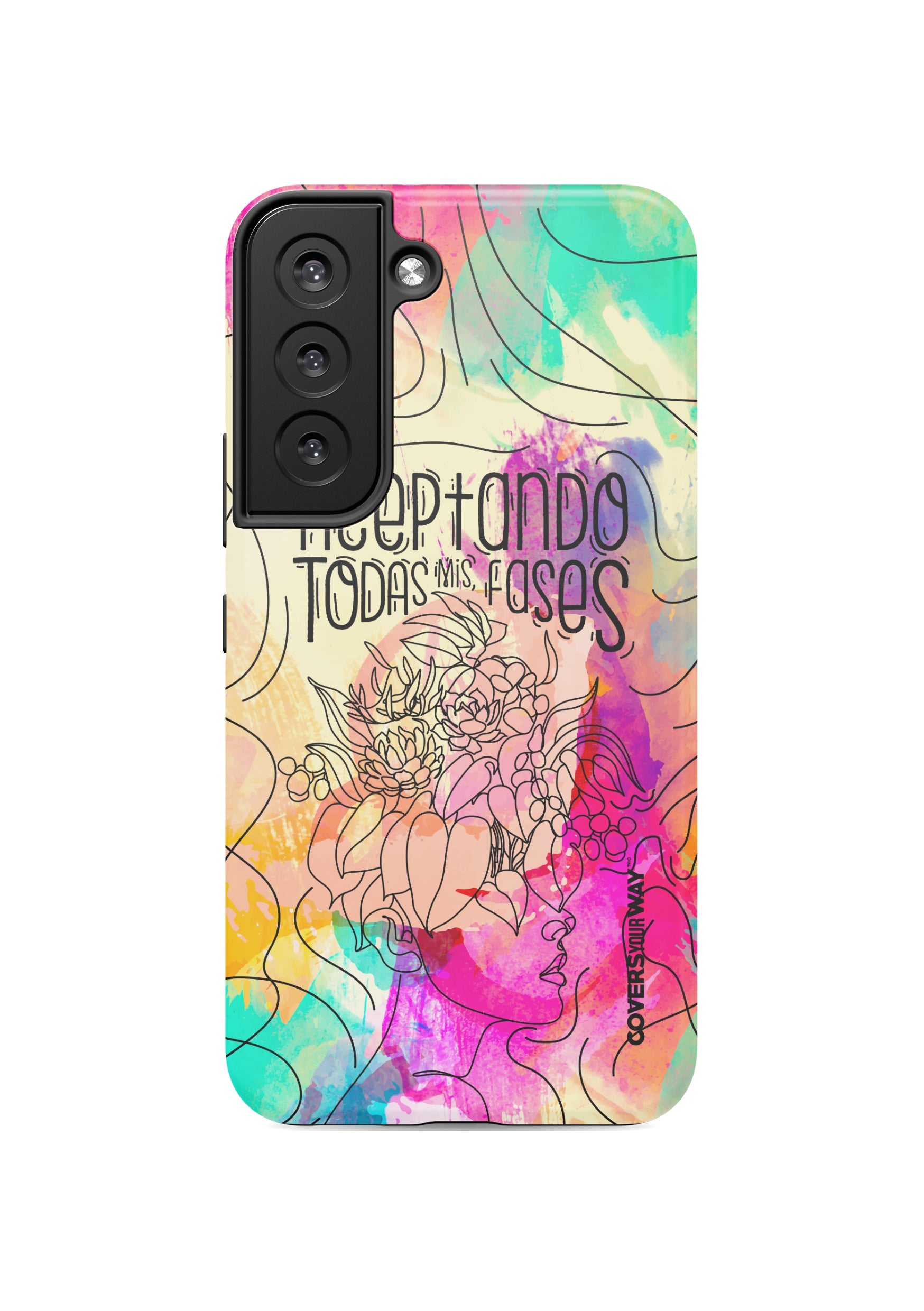 Inspired by the beauty of change and personal growth, this exclusive phone case features the phrase "Aceptando todas mis fases" in an elegant design, accented with subtle illustrations of the moon phases. Made from durable materials, it protects your phone while celebrating every stage of your evolution with style and meaning.