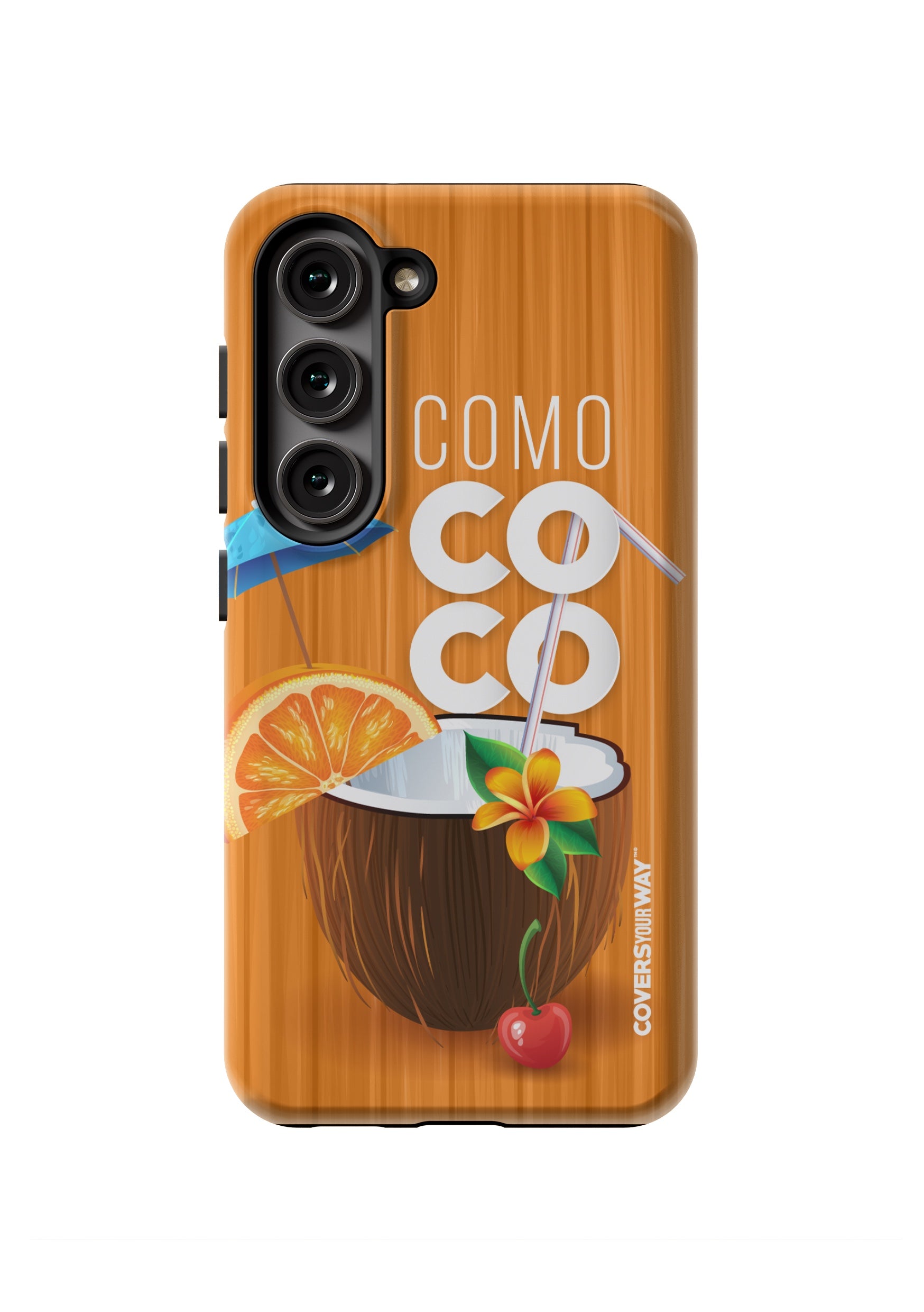 Give your phone a tropical twist and bold personality with this durable case, designed with the phrase "Como Coco". It protects your device from bumps and scratches while sharing a fresh, authentic, island-inspired vibe.