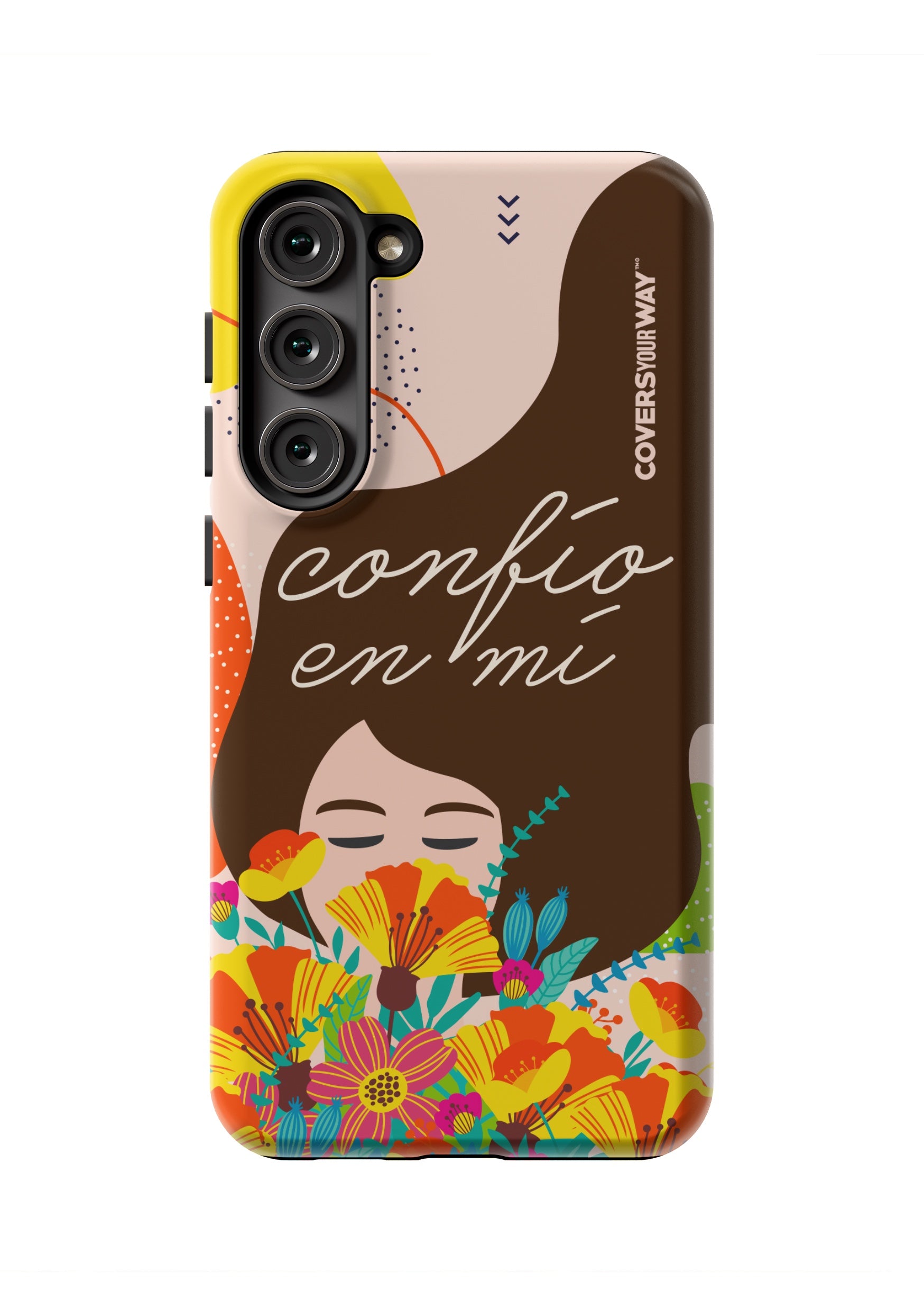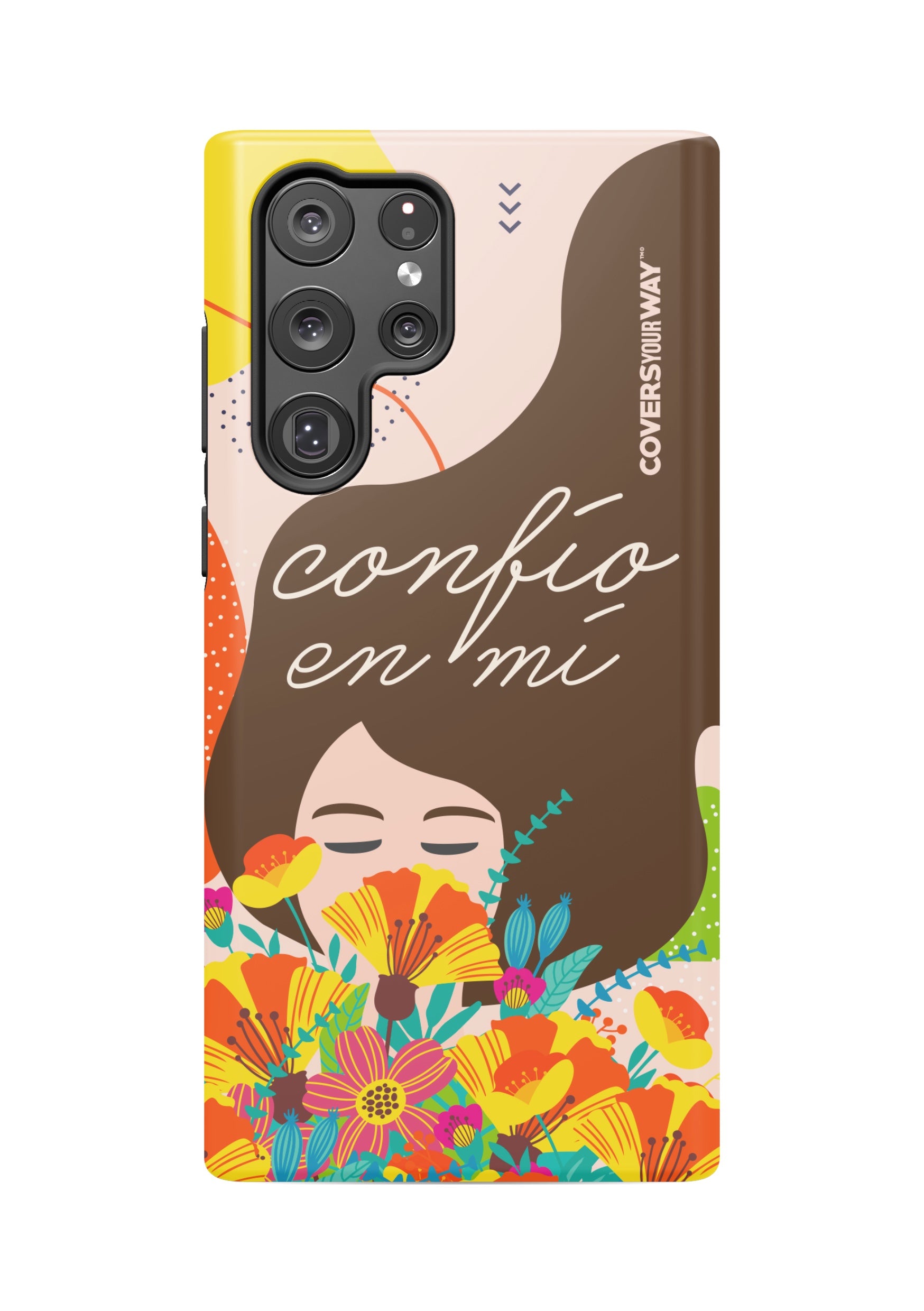 Exclusive phone case that inspires confidence and self-esteem. It features the phrase "Confío en mí" in elegant typography over a calm, harmonious background. Perfect for those who believe in their inner strength. Provides durable protection against bumps and scratches.