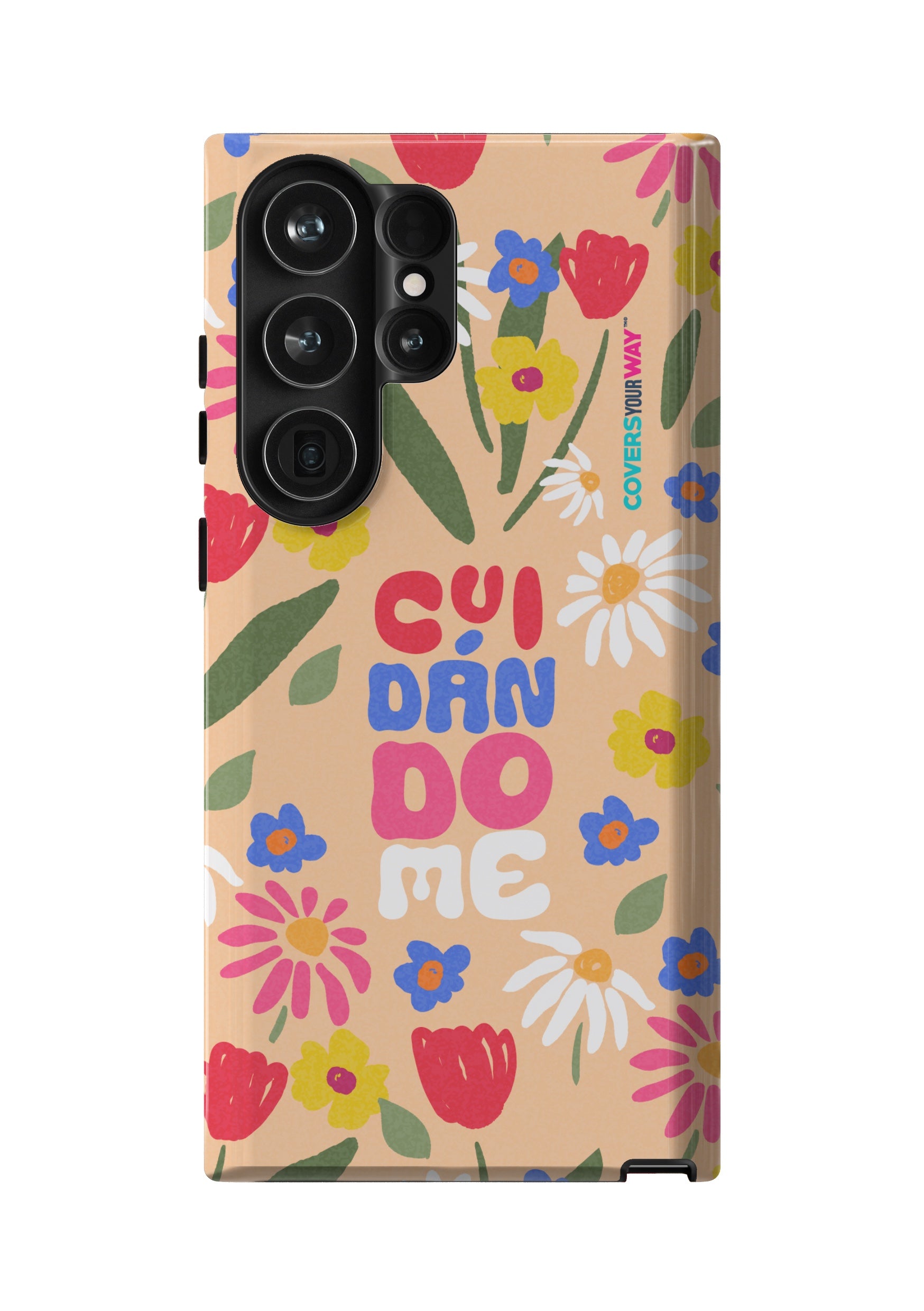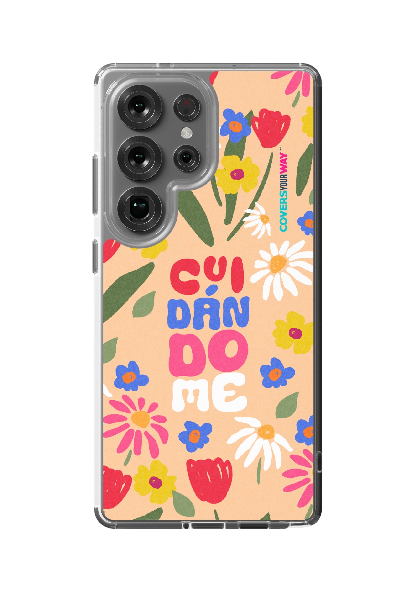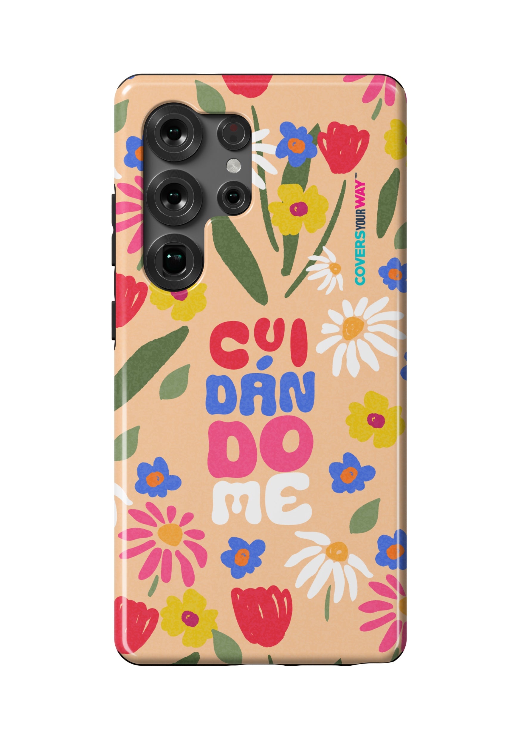 This exclusive phone cover features the word "CUIDÁNDOME" in a modern, minimalist design perfect for those who value self-care and protection. Made from durable materials, it's lightweight, non-slip, and compatible with various models. A daily reminder to take care of yourself, always with you.
