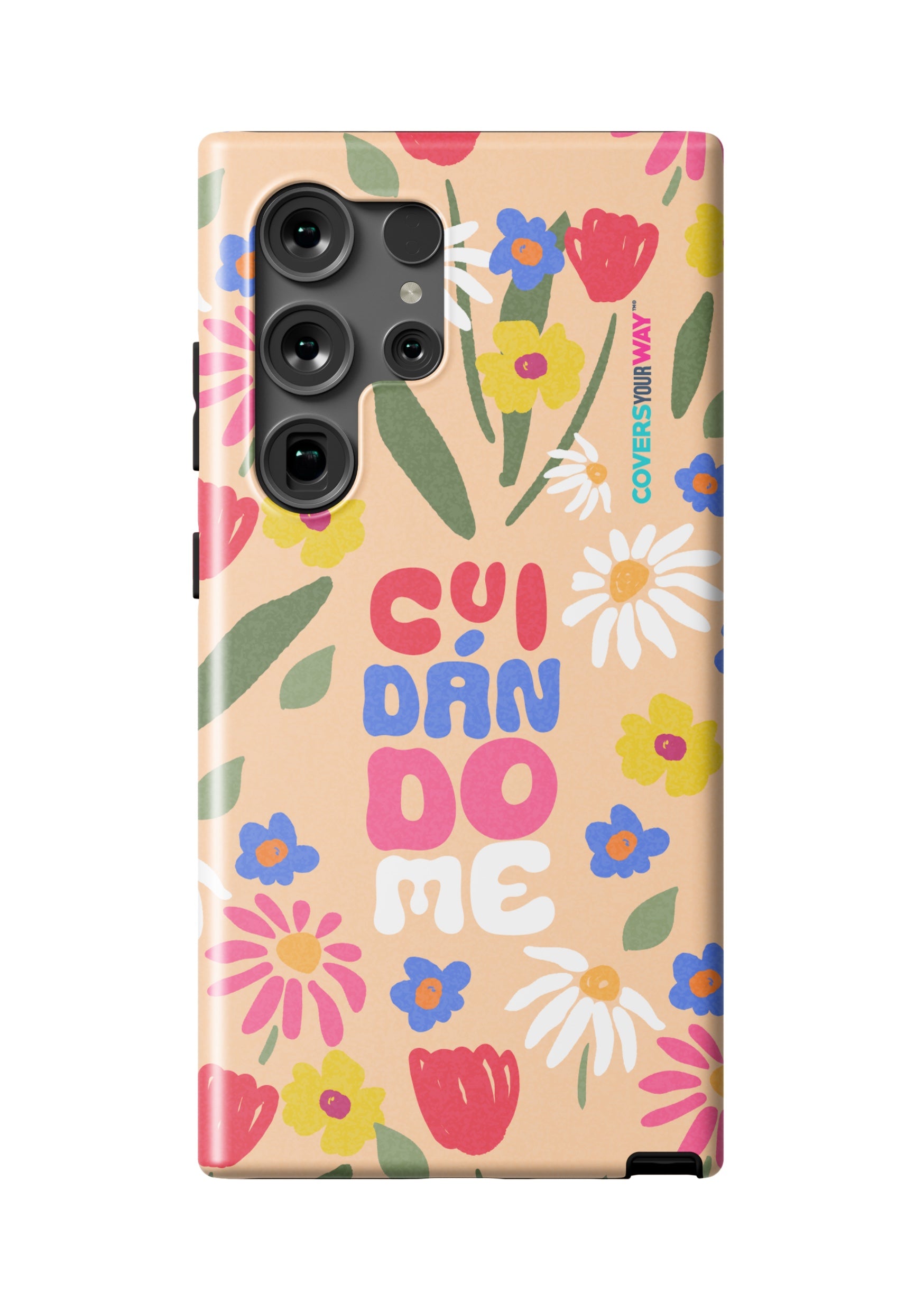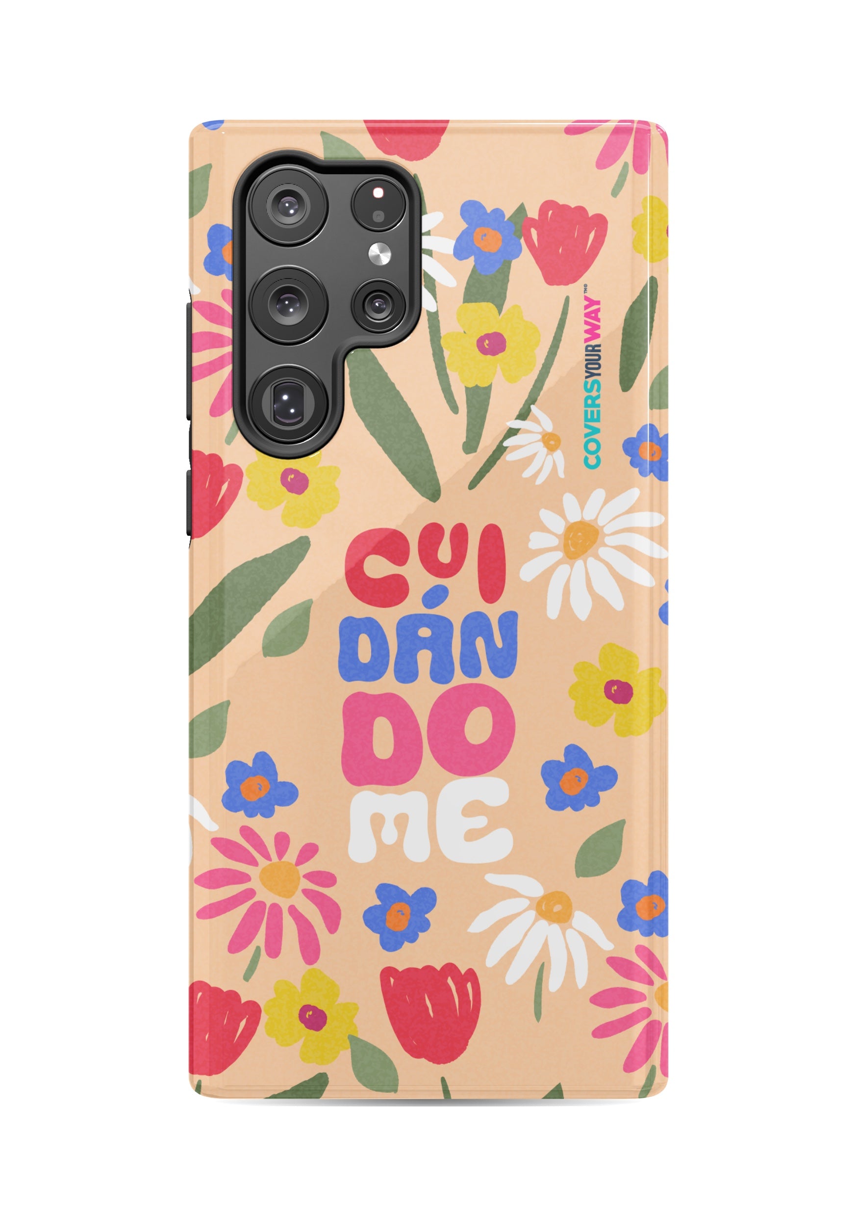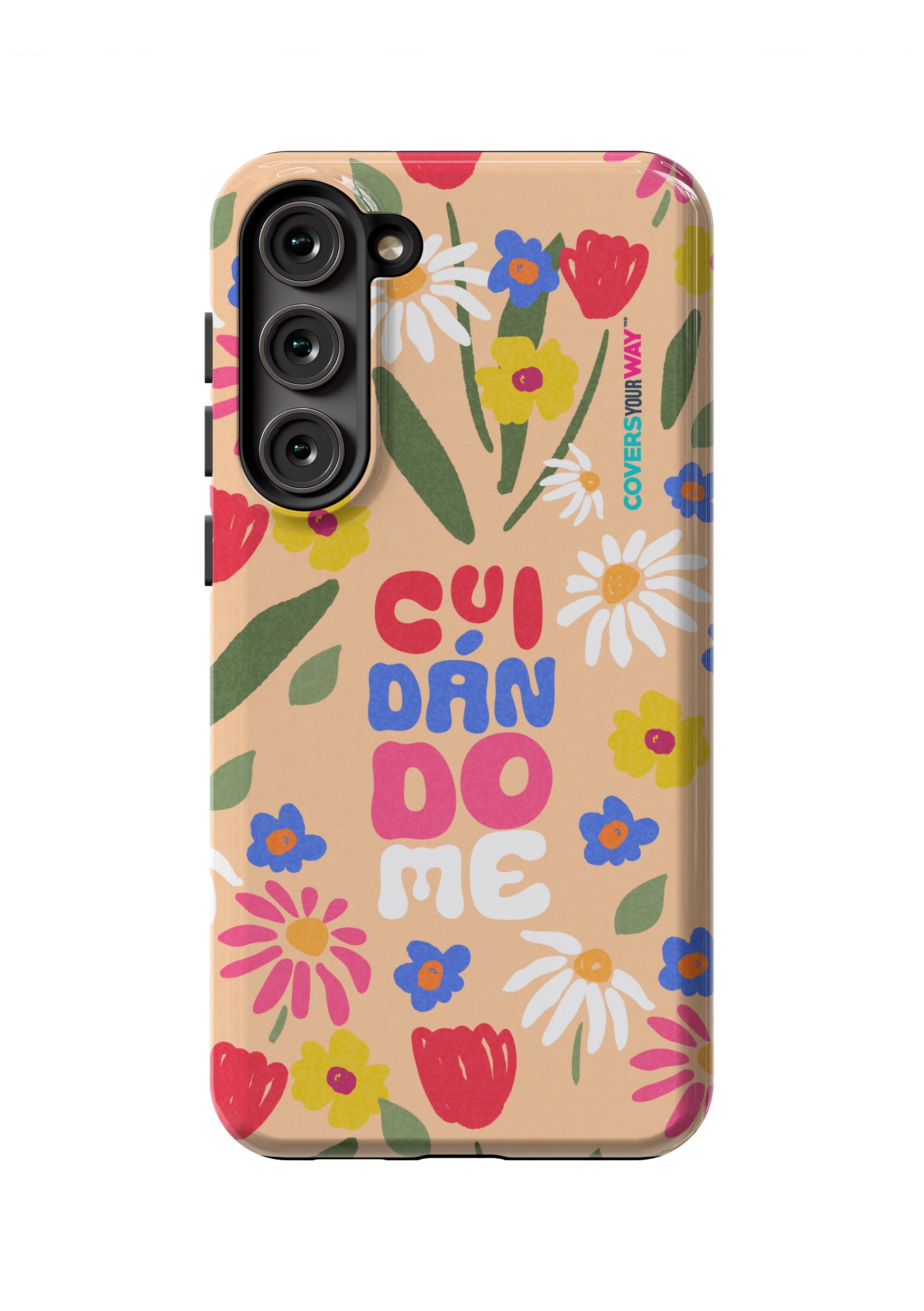 This exclusive phone cover features the word "CUIDÁNDOME" in a modern, minimalist design perfect for those who value self-care and protection. Made from durable materials, it's lightweight, non-slip, and compatible with various models. A daily reminder to take care of yourself, always with you.